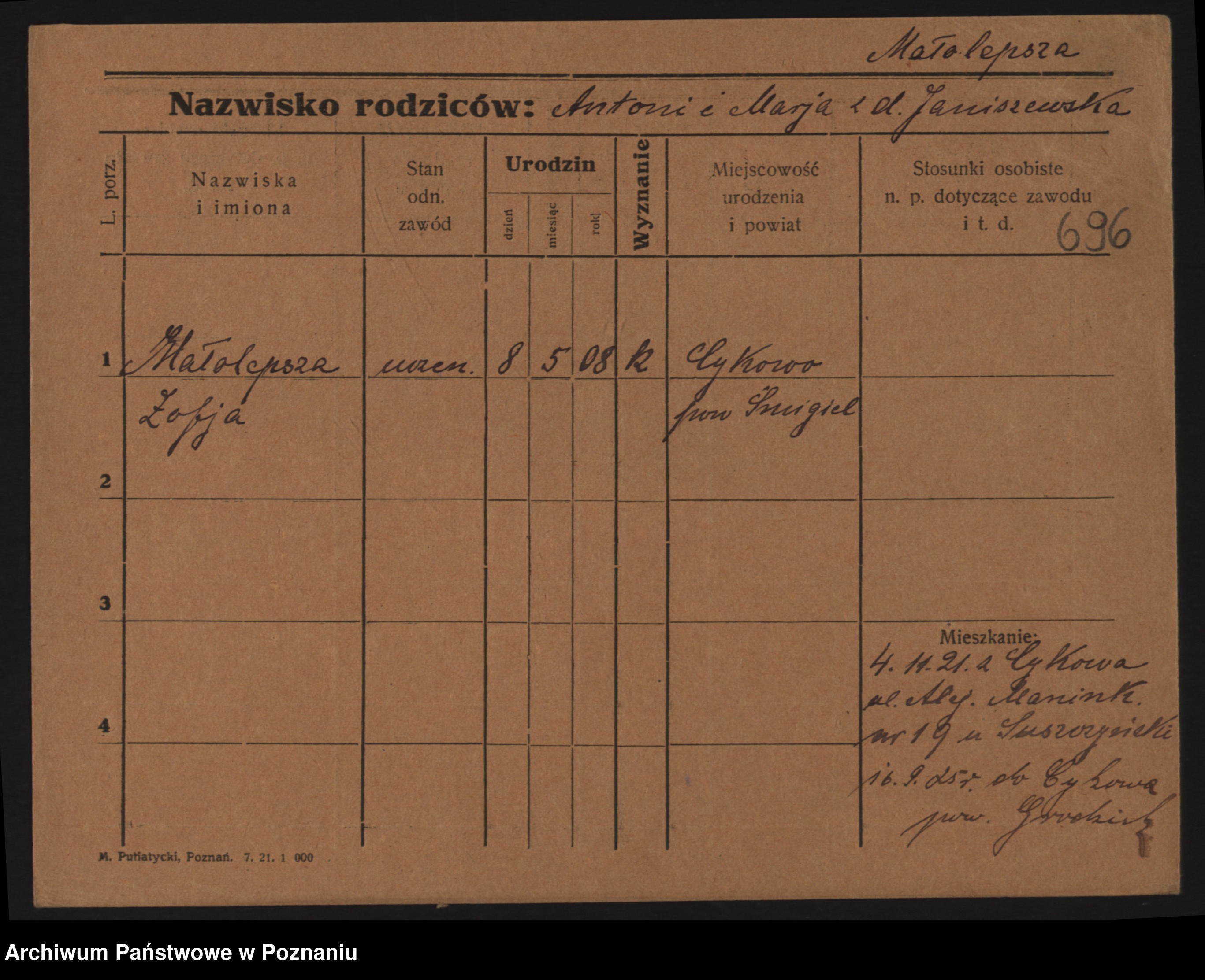 Malyszka, Zofja