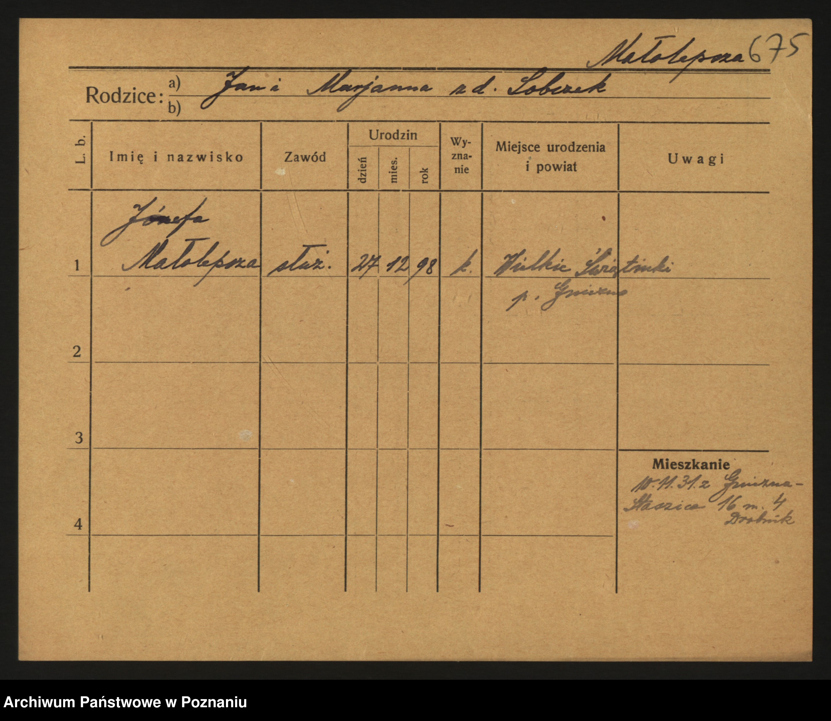 Malinski zd. Lawniczak, Josefa