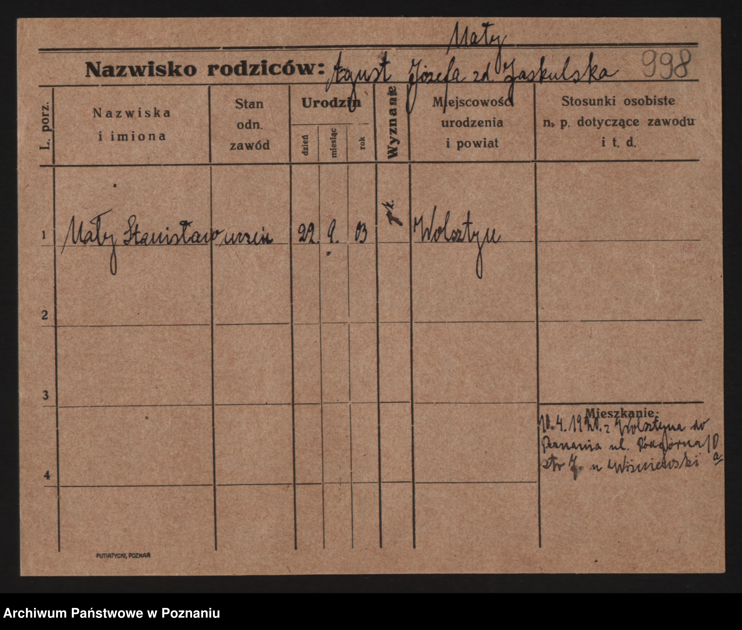 Maływojtek, Stanislaus