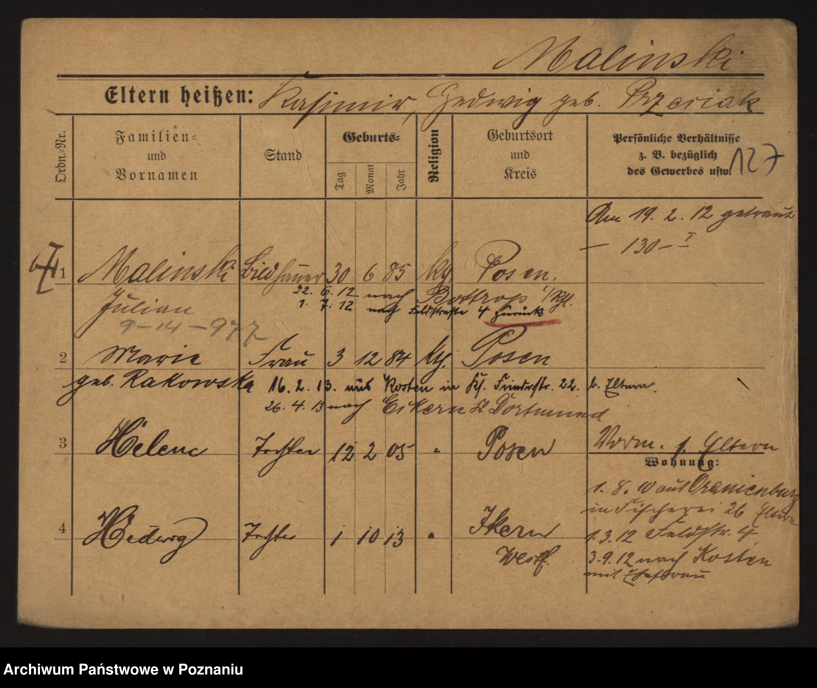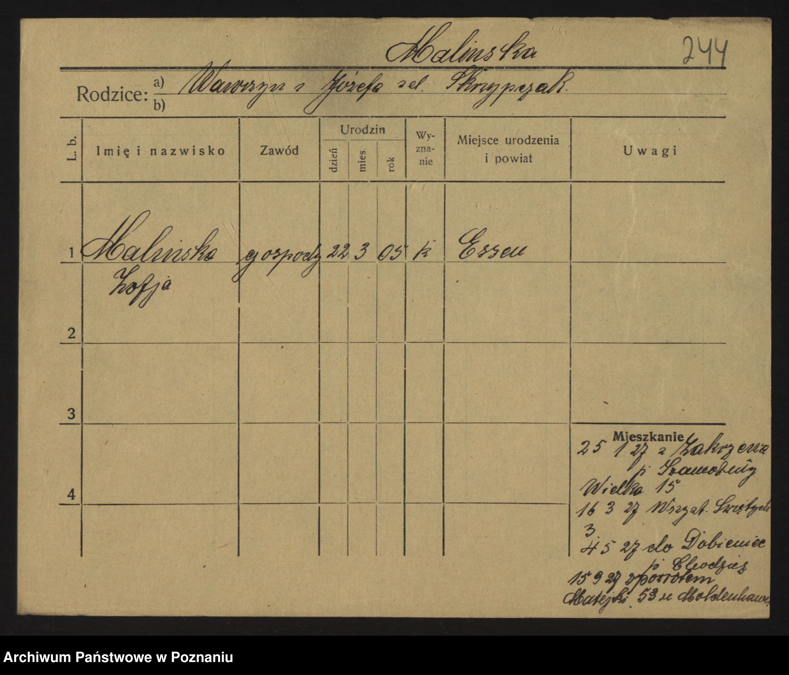 Malinski zd. Gryska, Hedwig