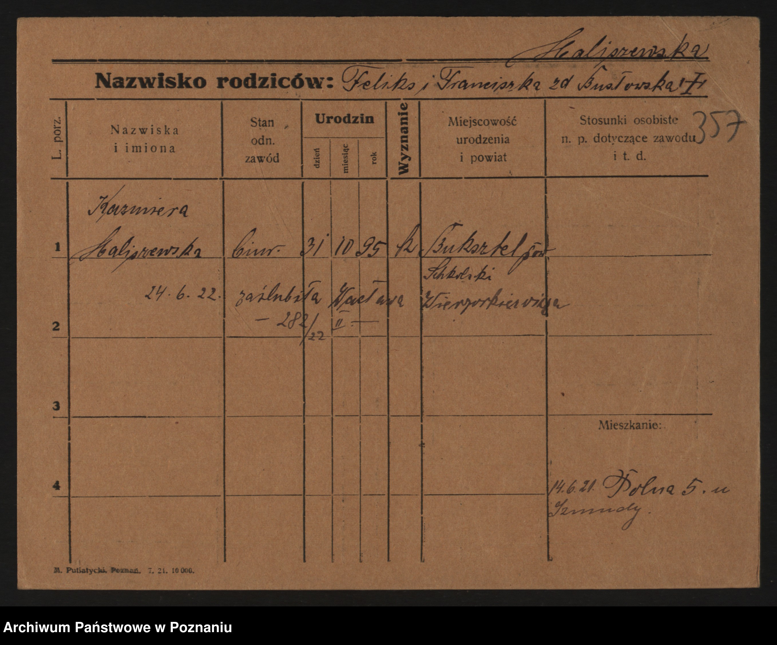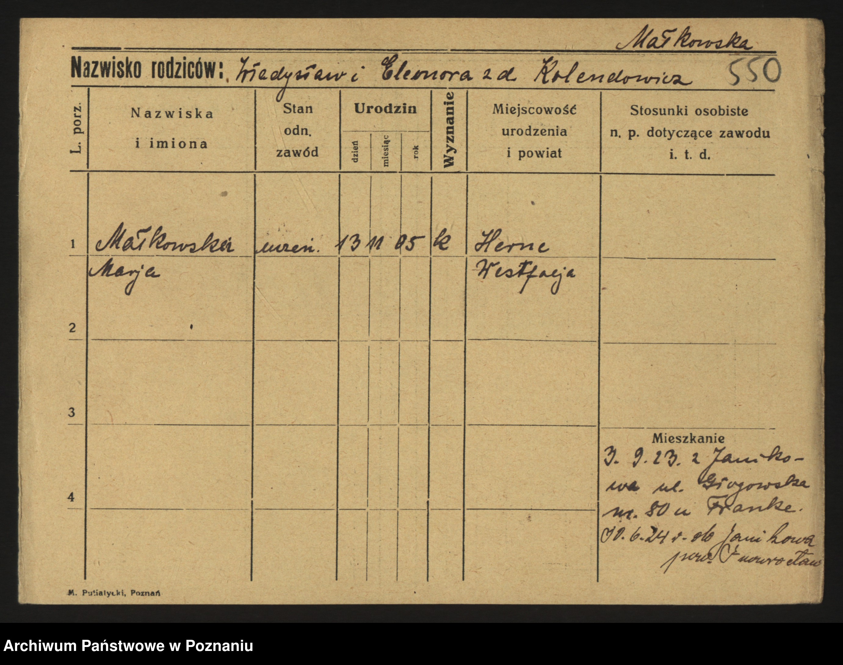 Maliński zd. Januszkiewicz, Kazimiera
