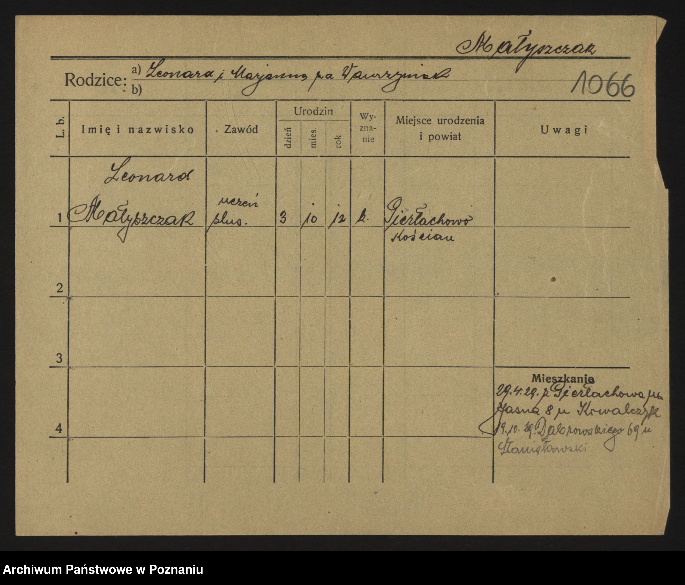 Małyszka, Leonard