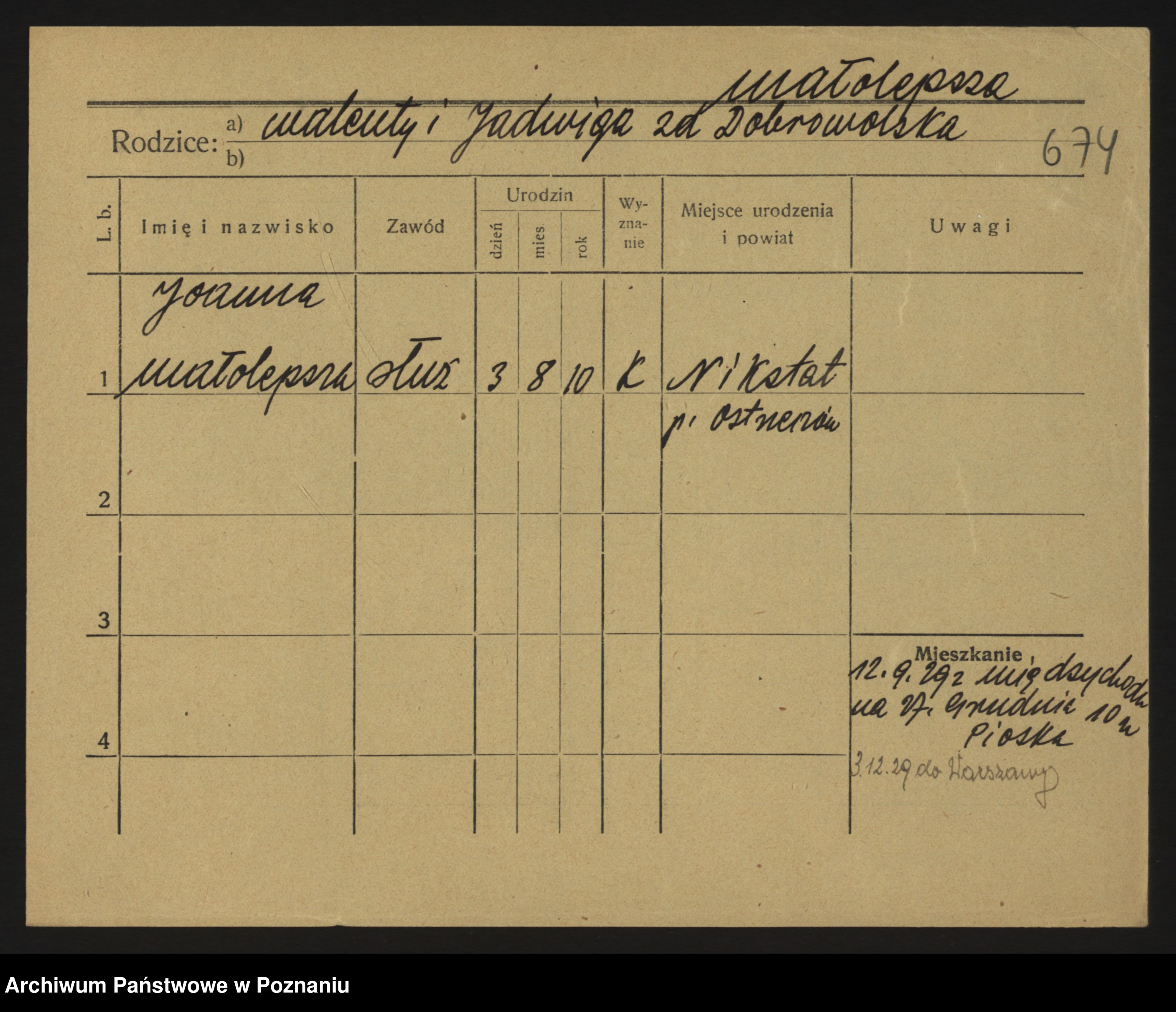 Malinski, Zofja