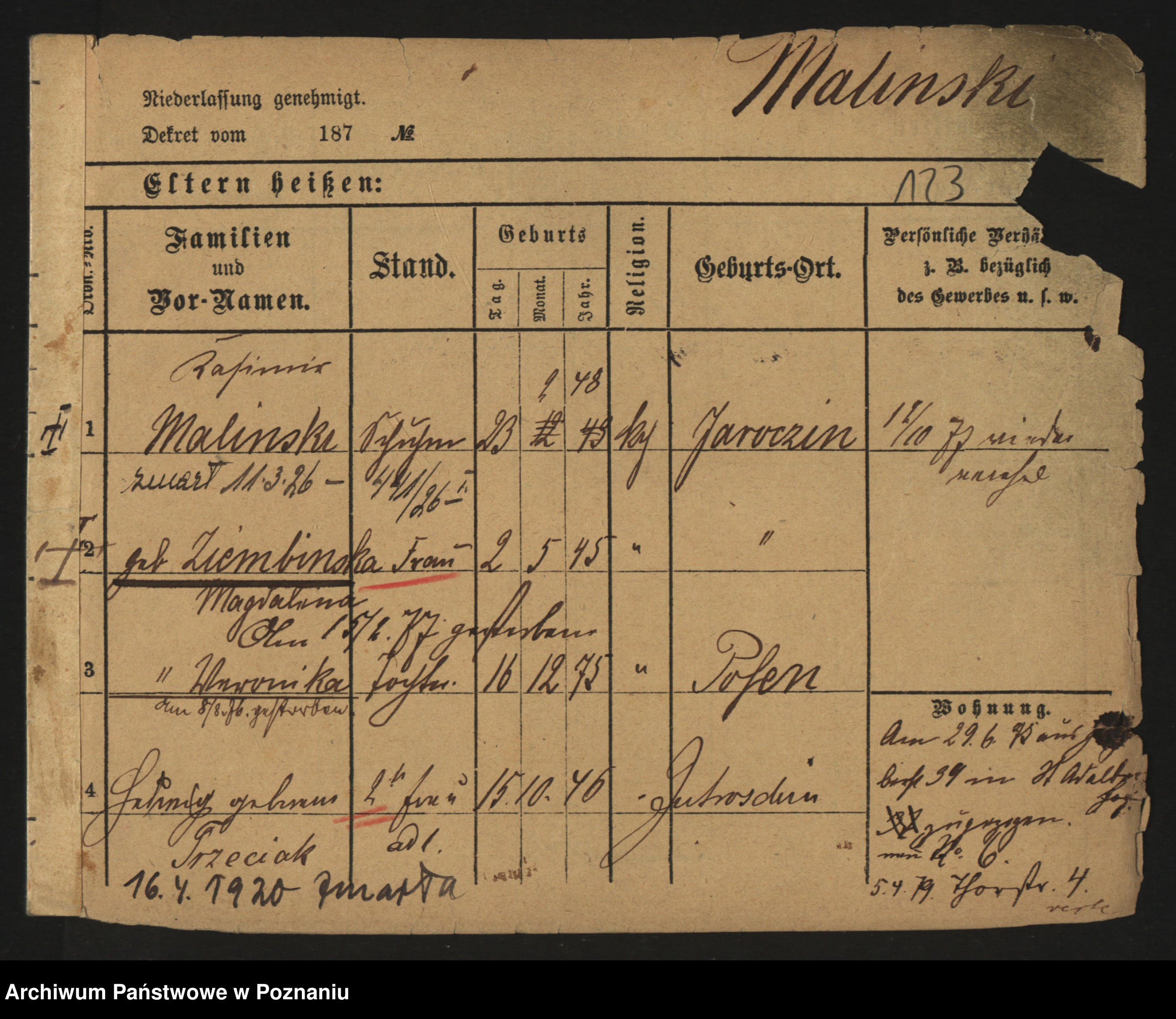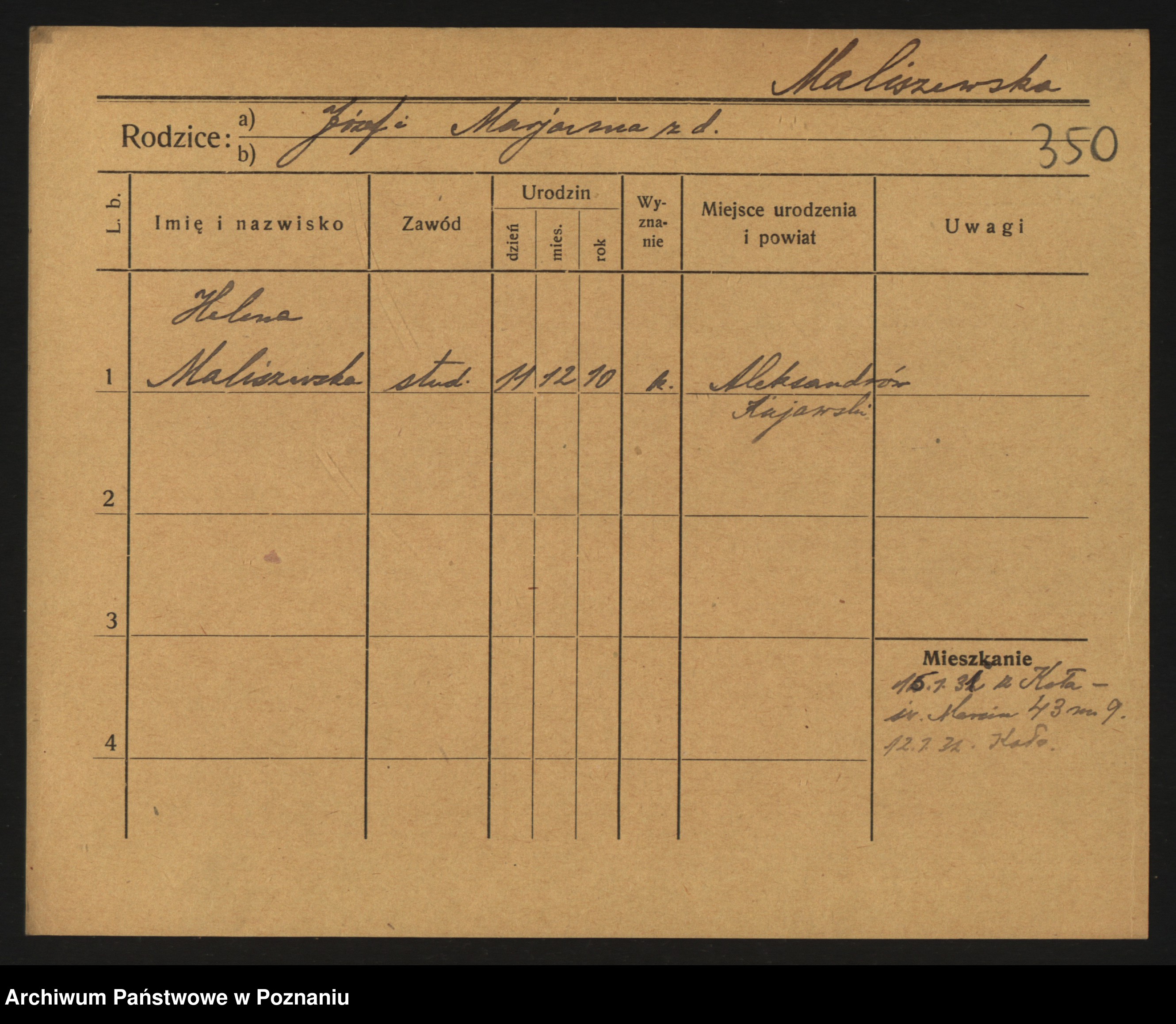 Malinski zd. Wlodarczyk, Marianna