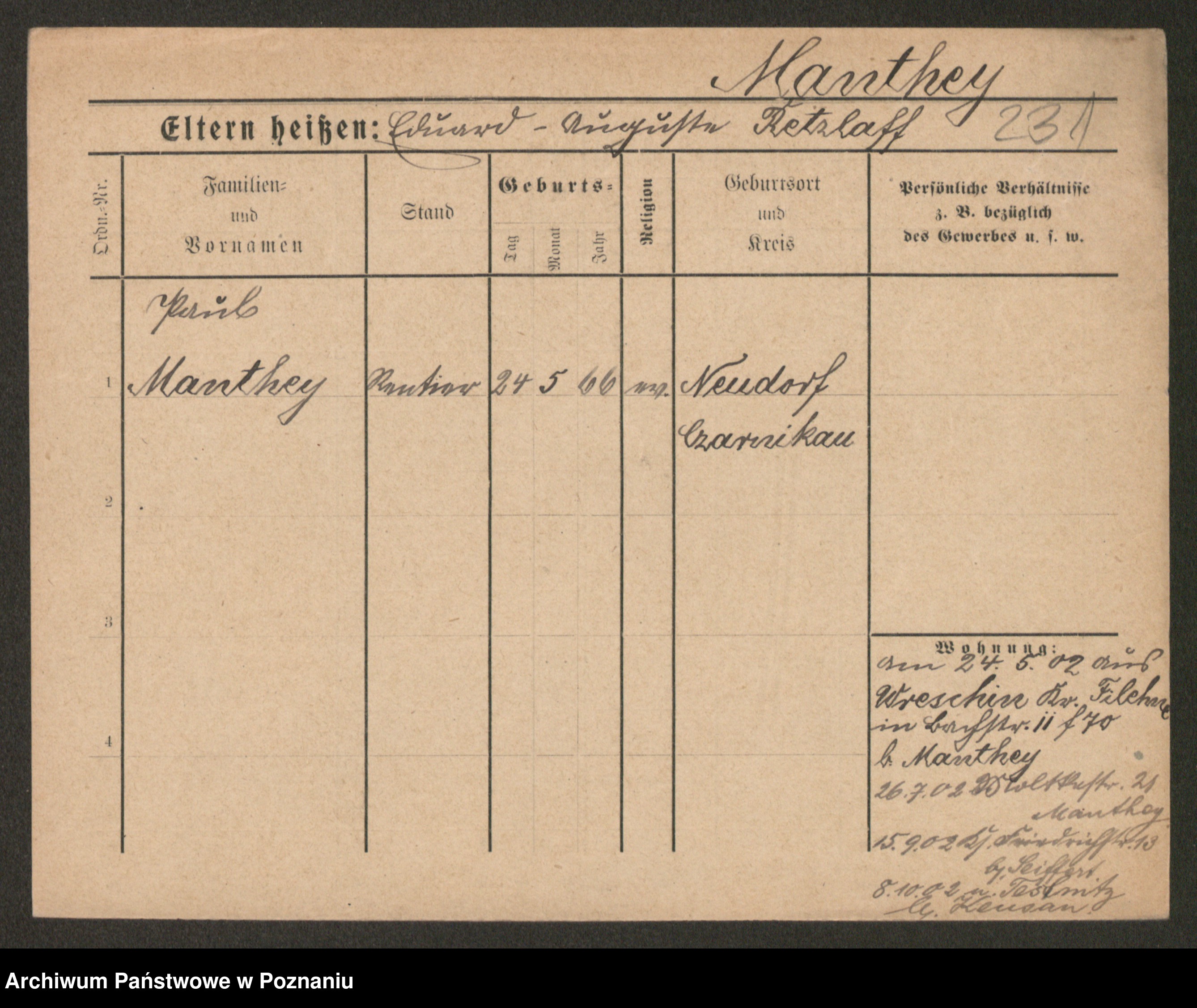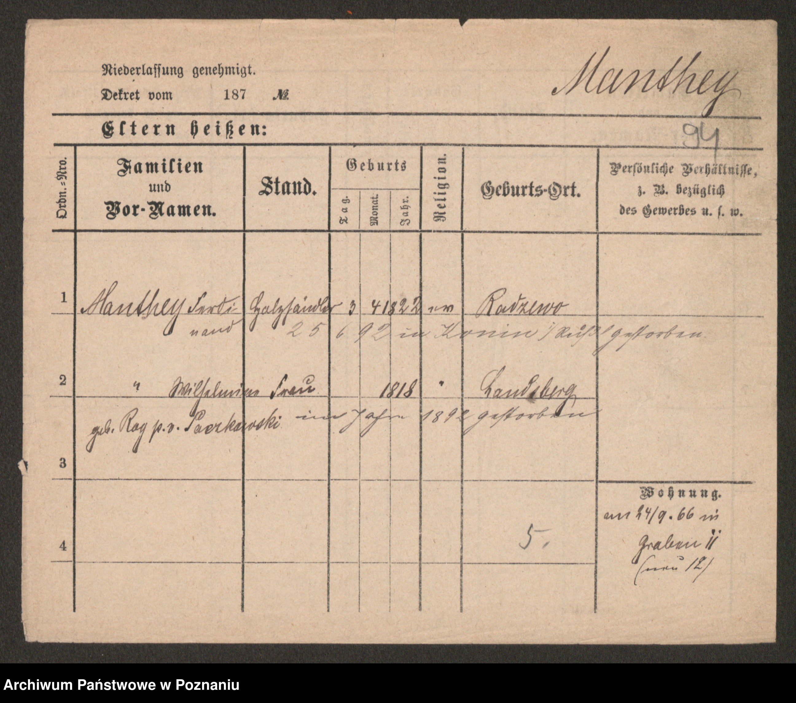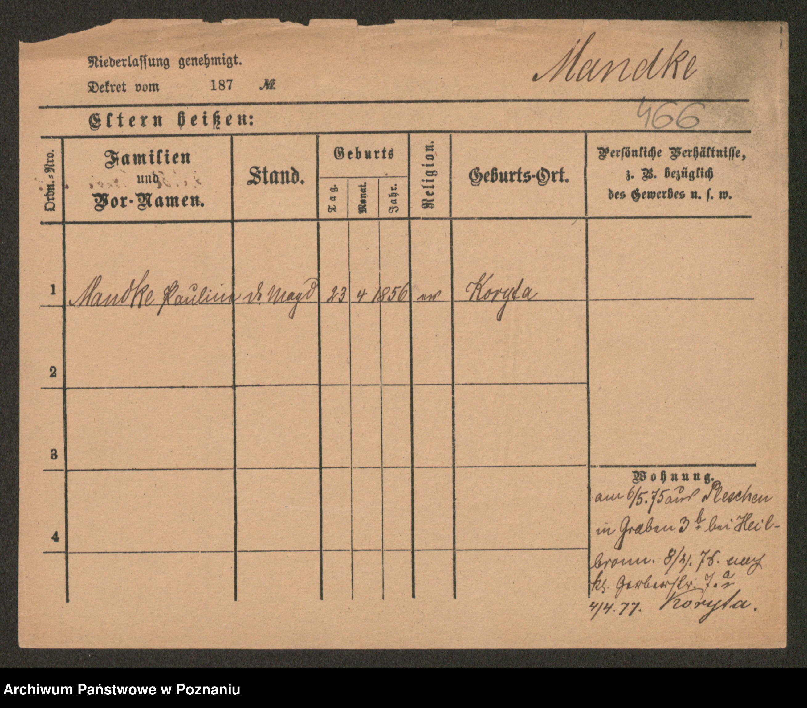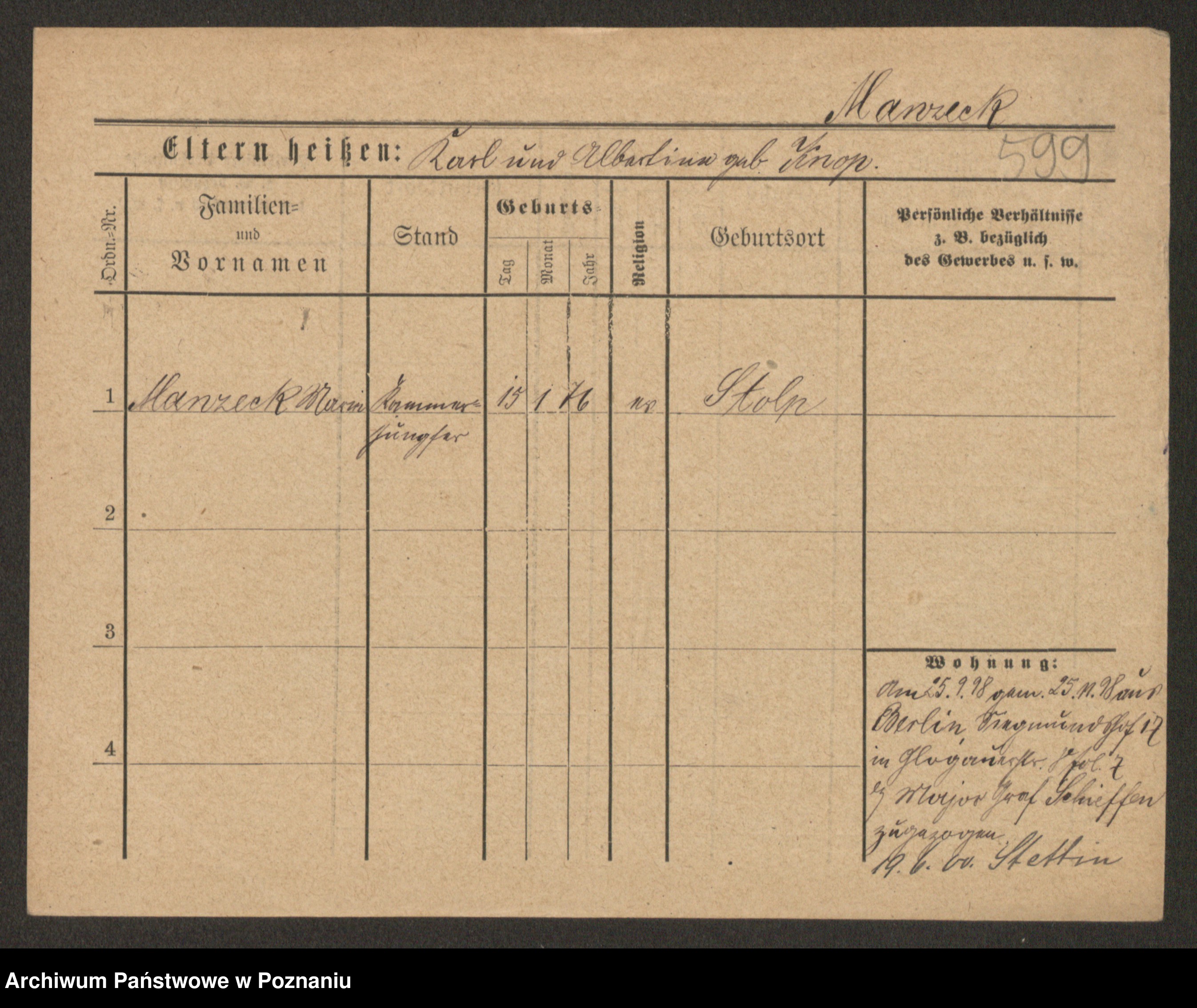 Manski zd. Kluge, Karoline