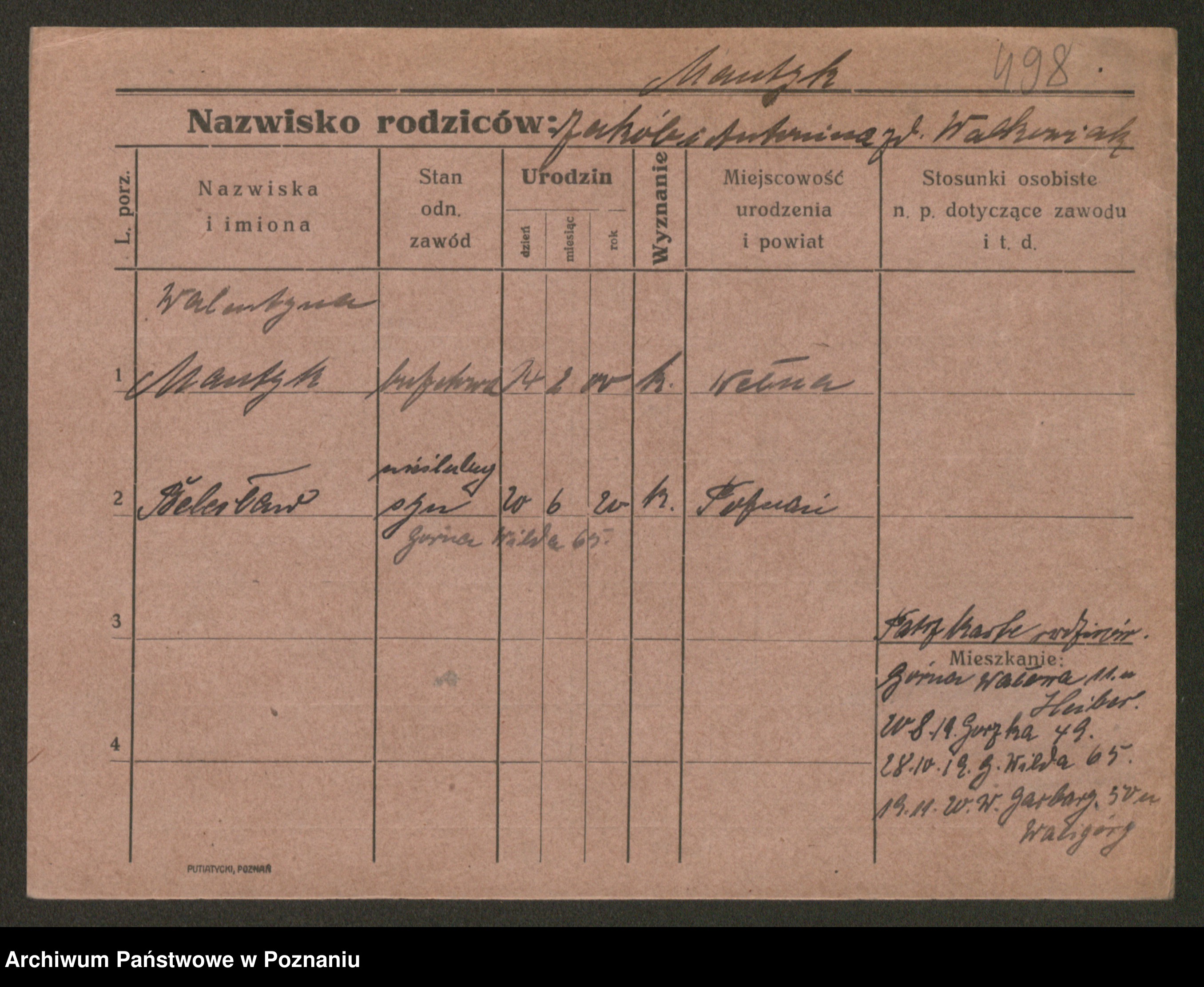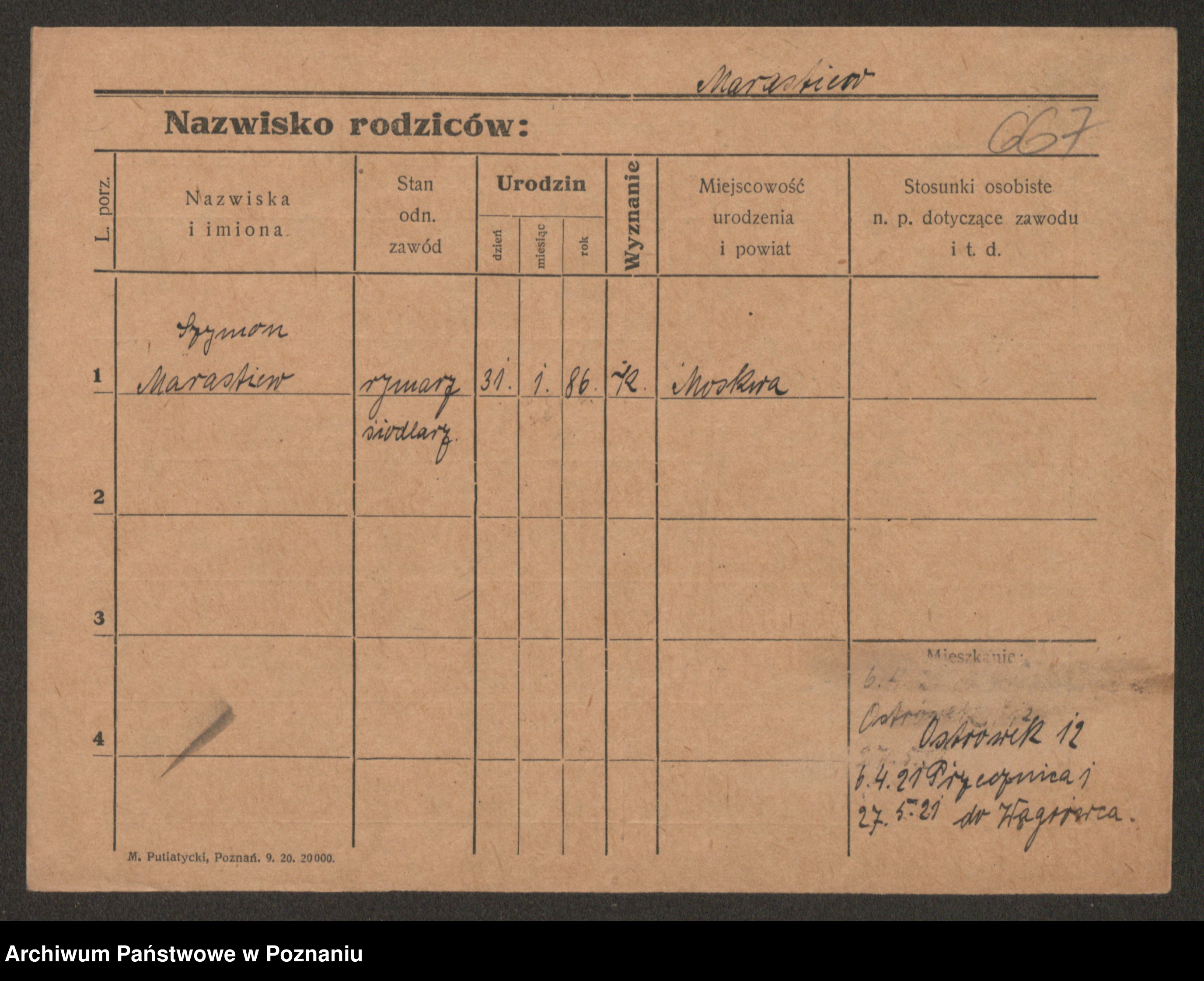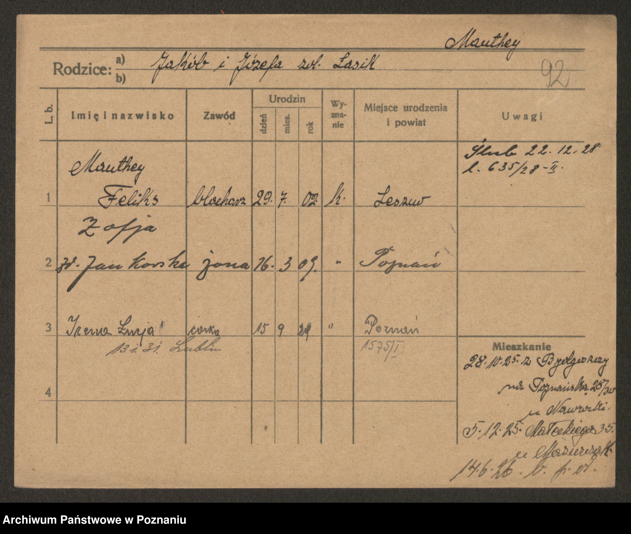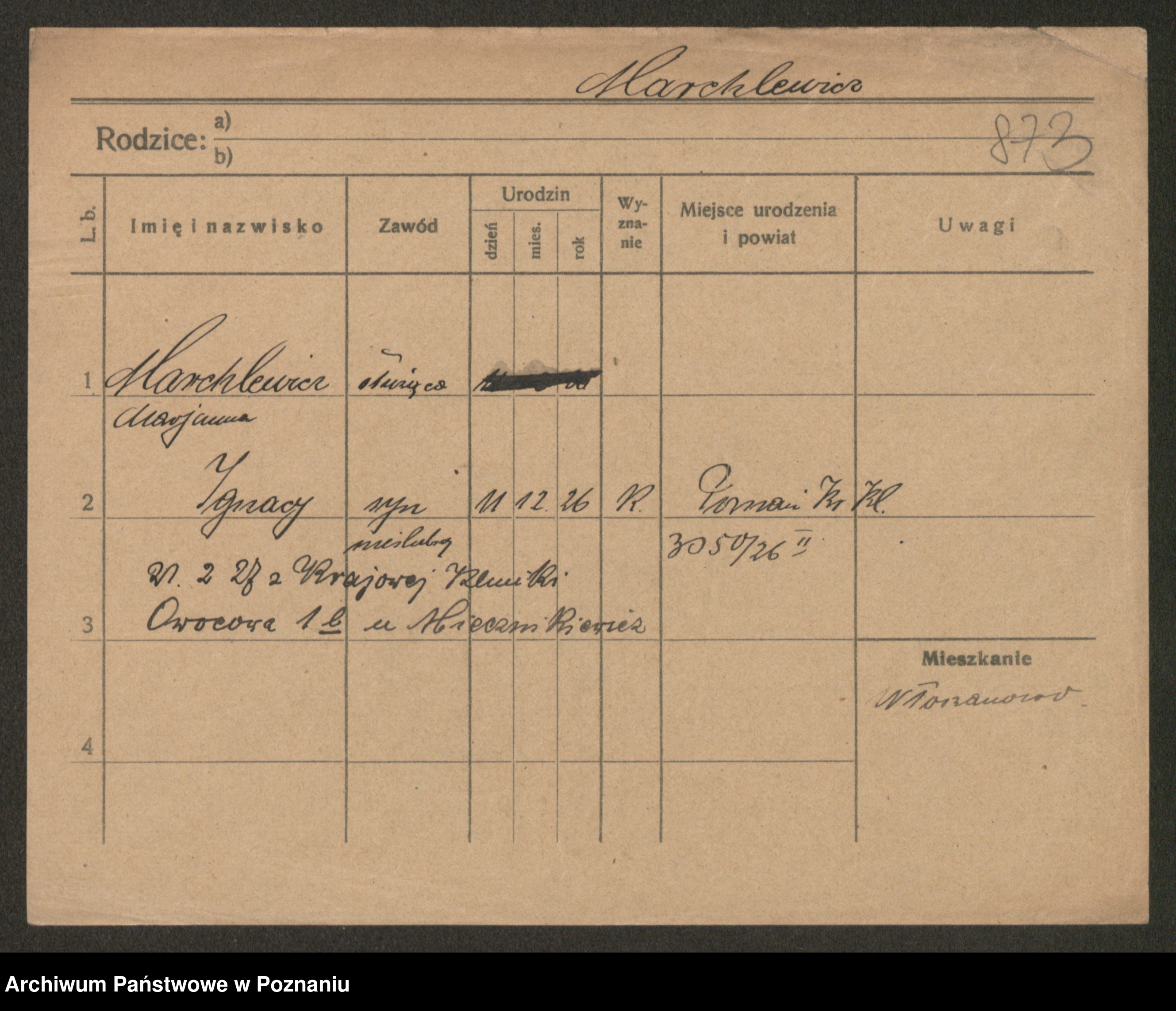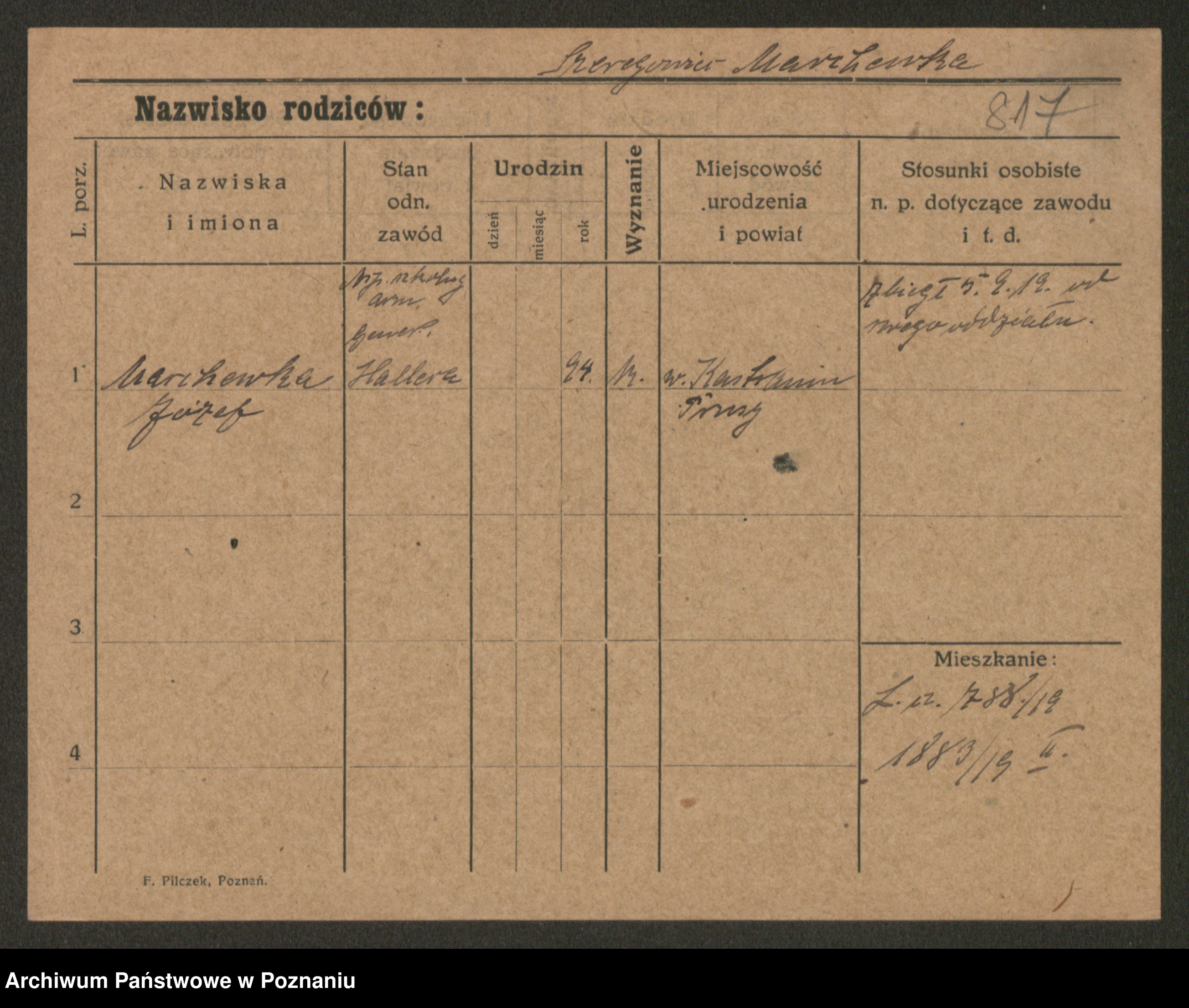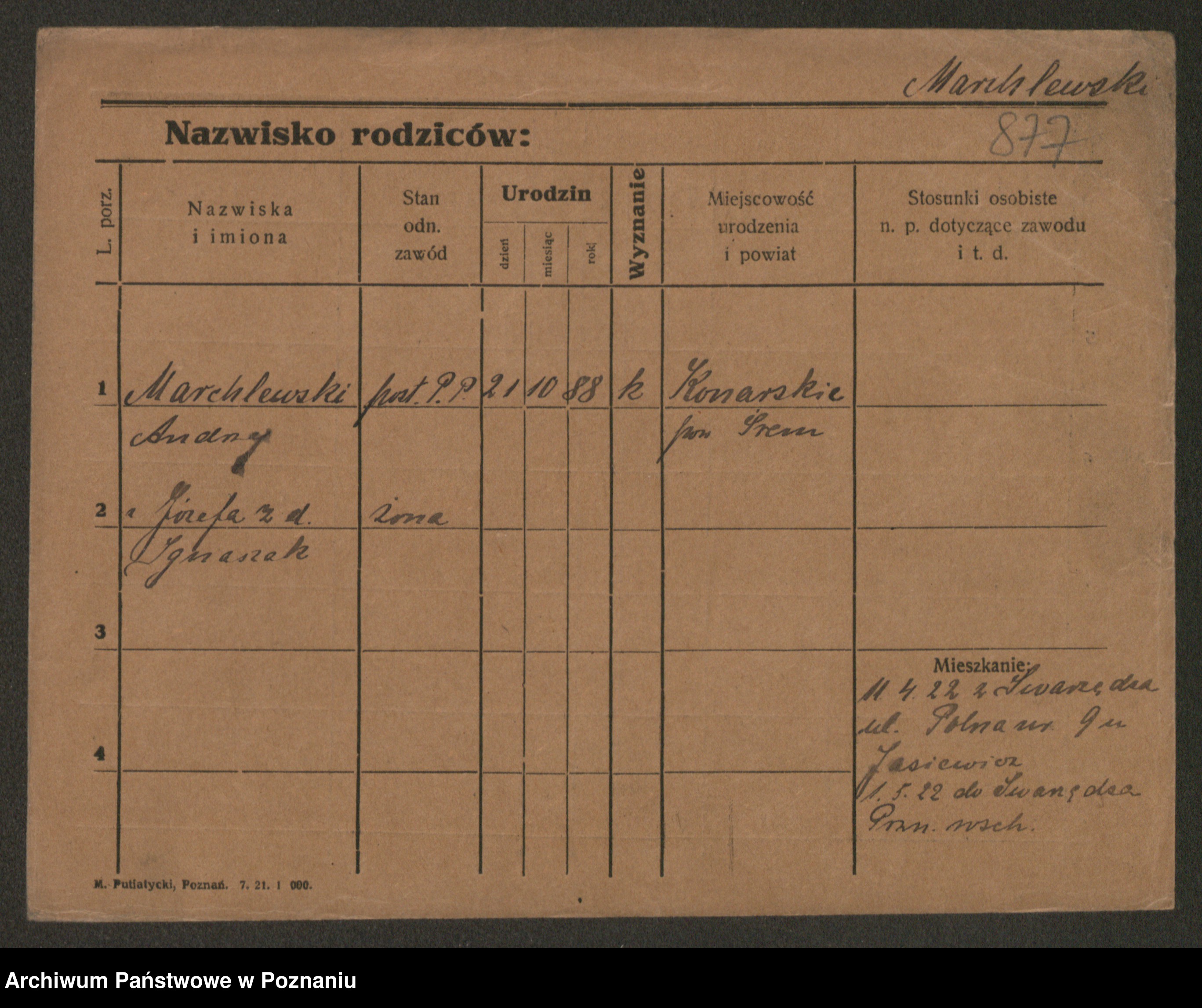 Podgląd karty osobowej dostępny jest po kliknięciu na nazwisko lub ikonkę karty. Można dokonywać powiększenia (ikony na górze) lub przechodzić między kolejnymi skanami (strzałki po bokach).