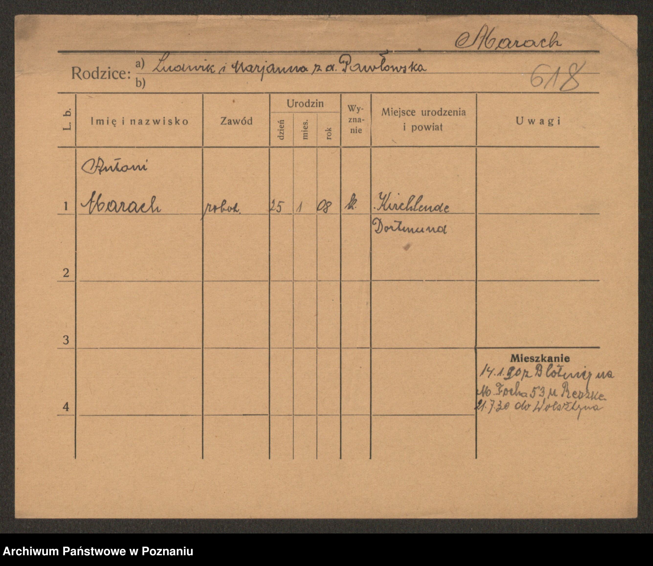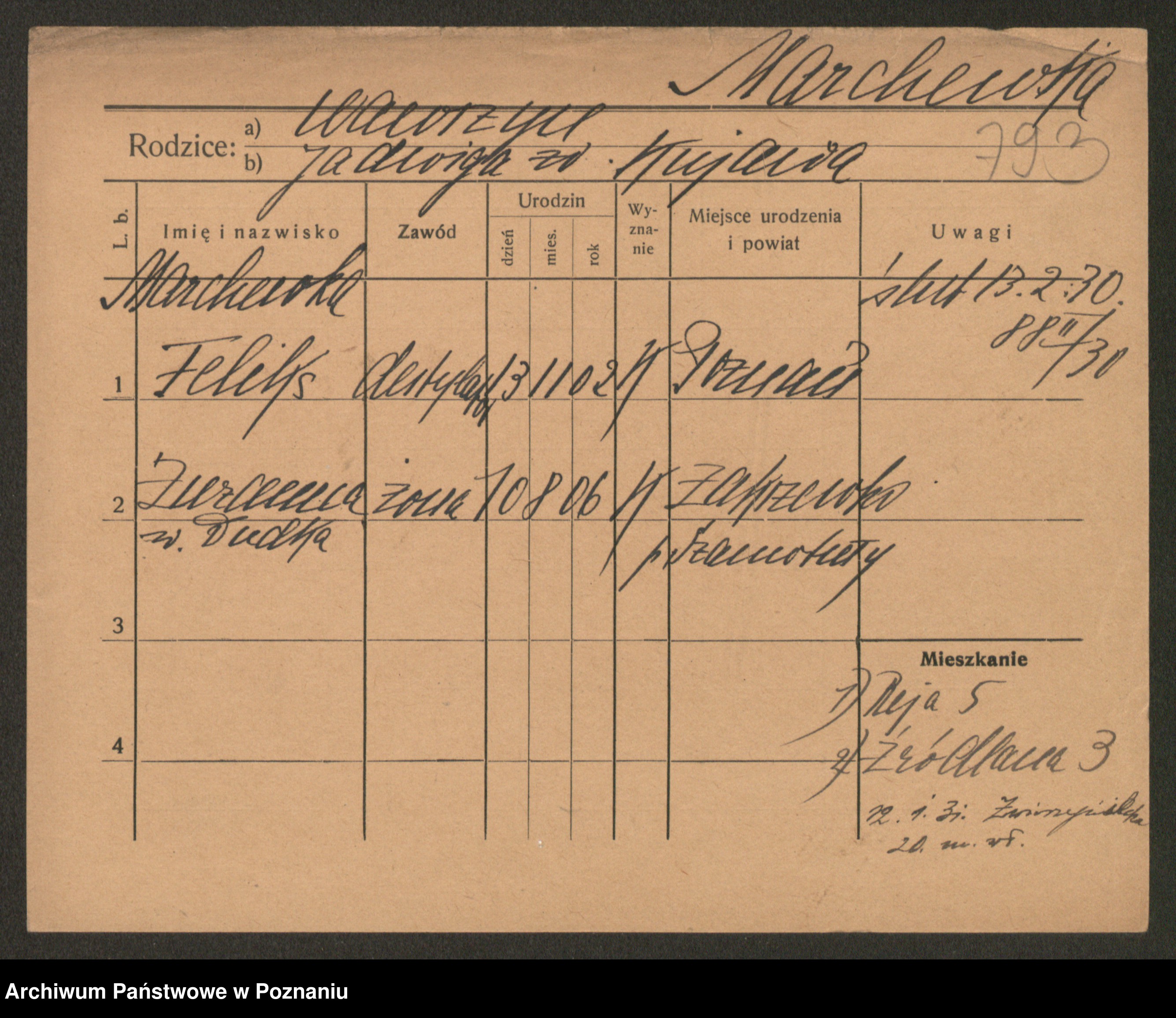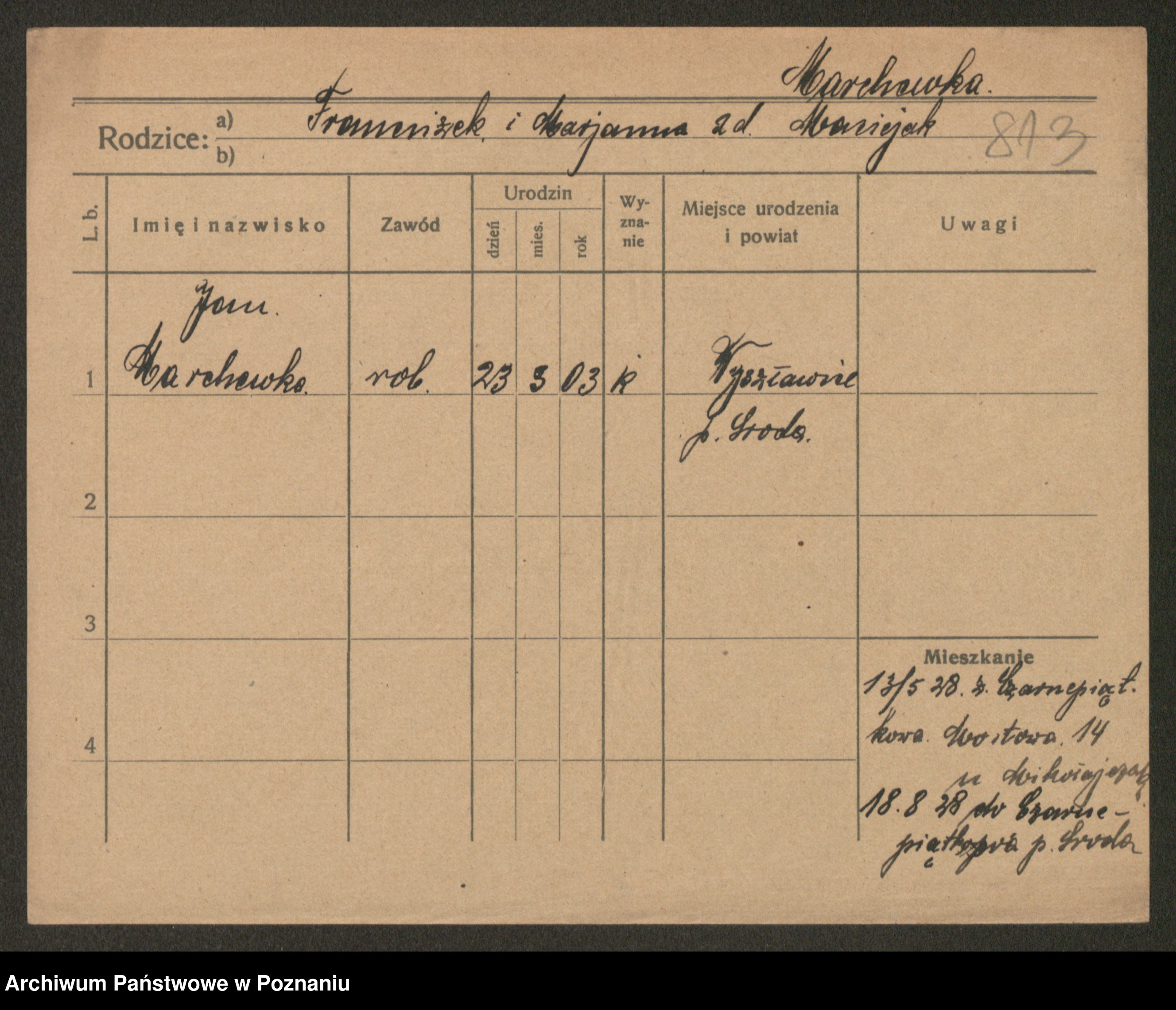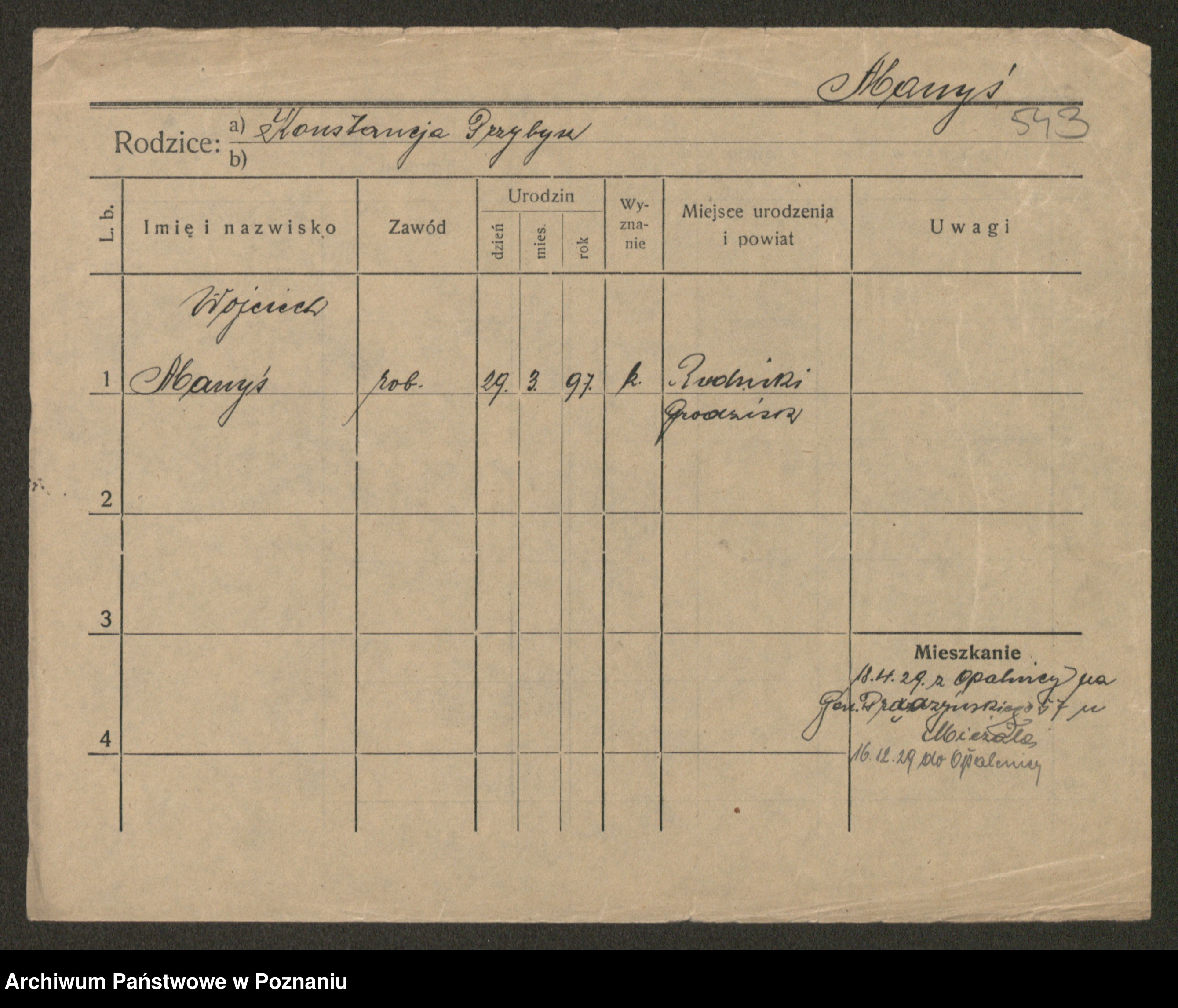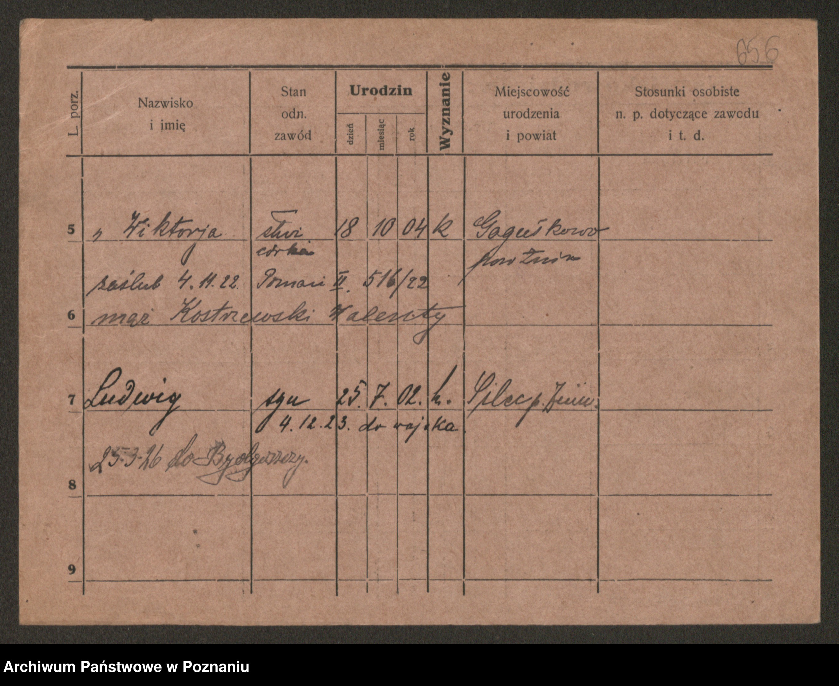 Podgląd karty osobowej dostępny jest po kliknięciu na nazwisko lub ikonkę karty. Można dokonywać powiększenia (ikony na górze) lub przechodzić między kolejnymi skanami (strzałki po bokach).