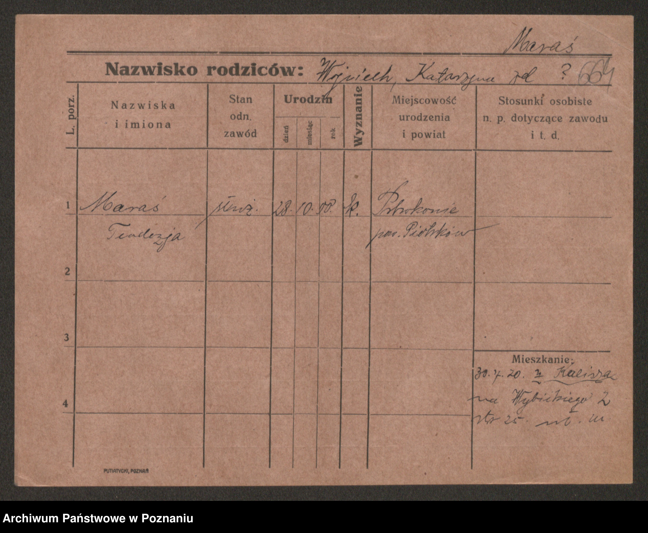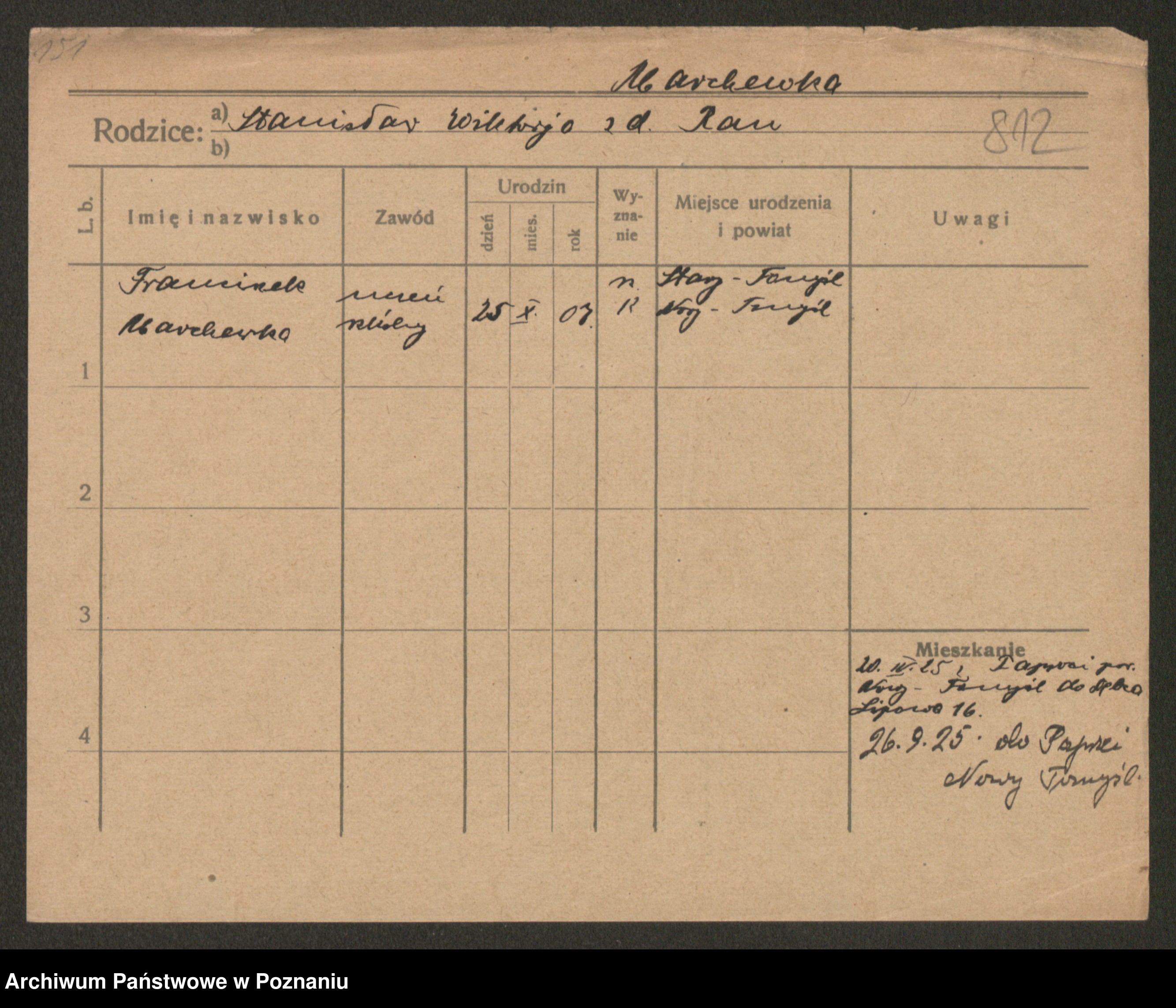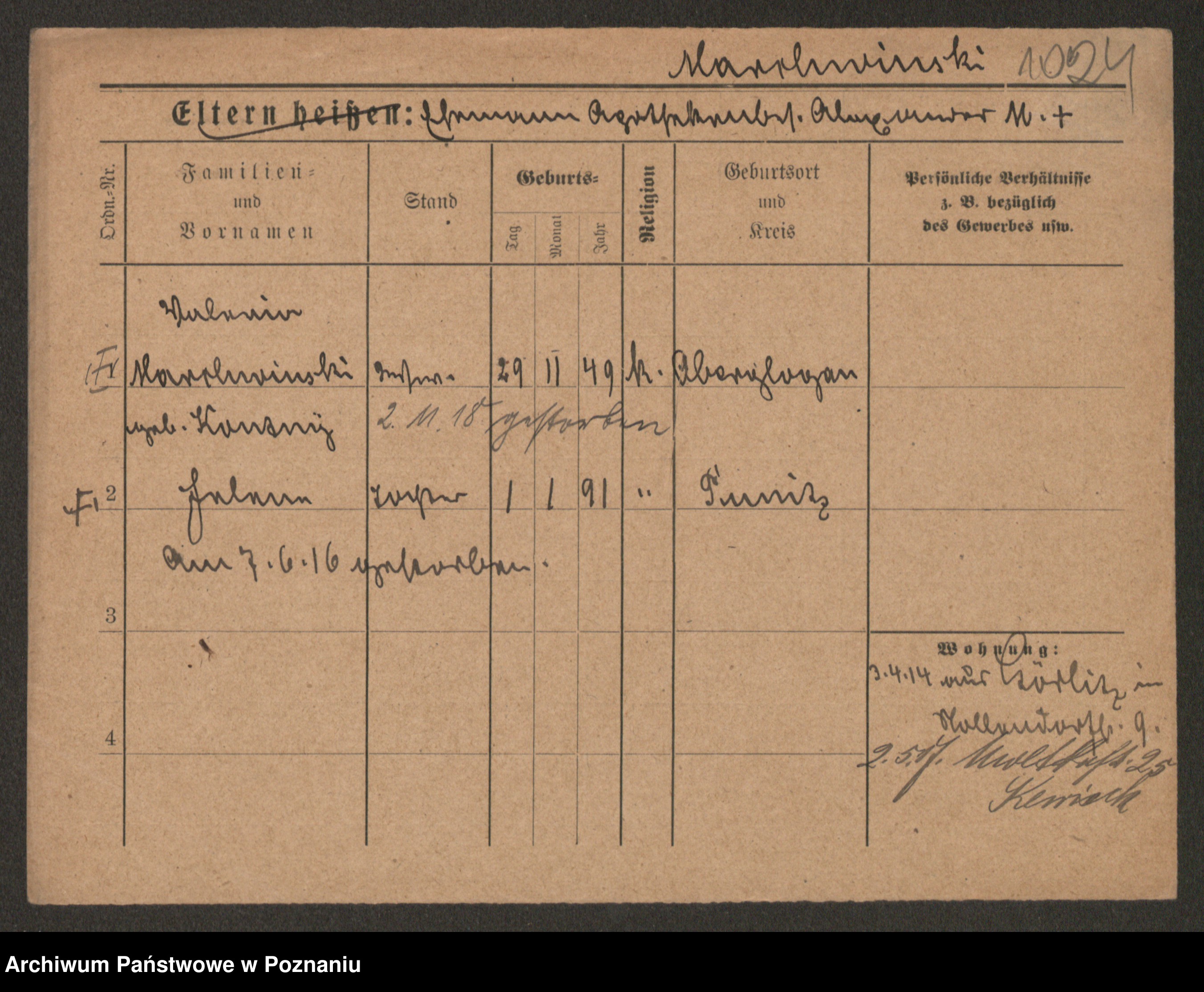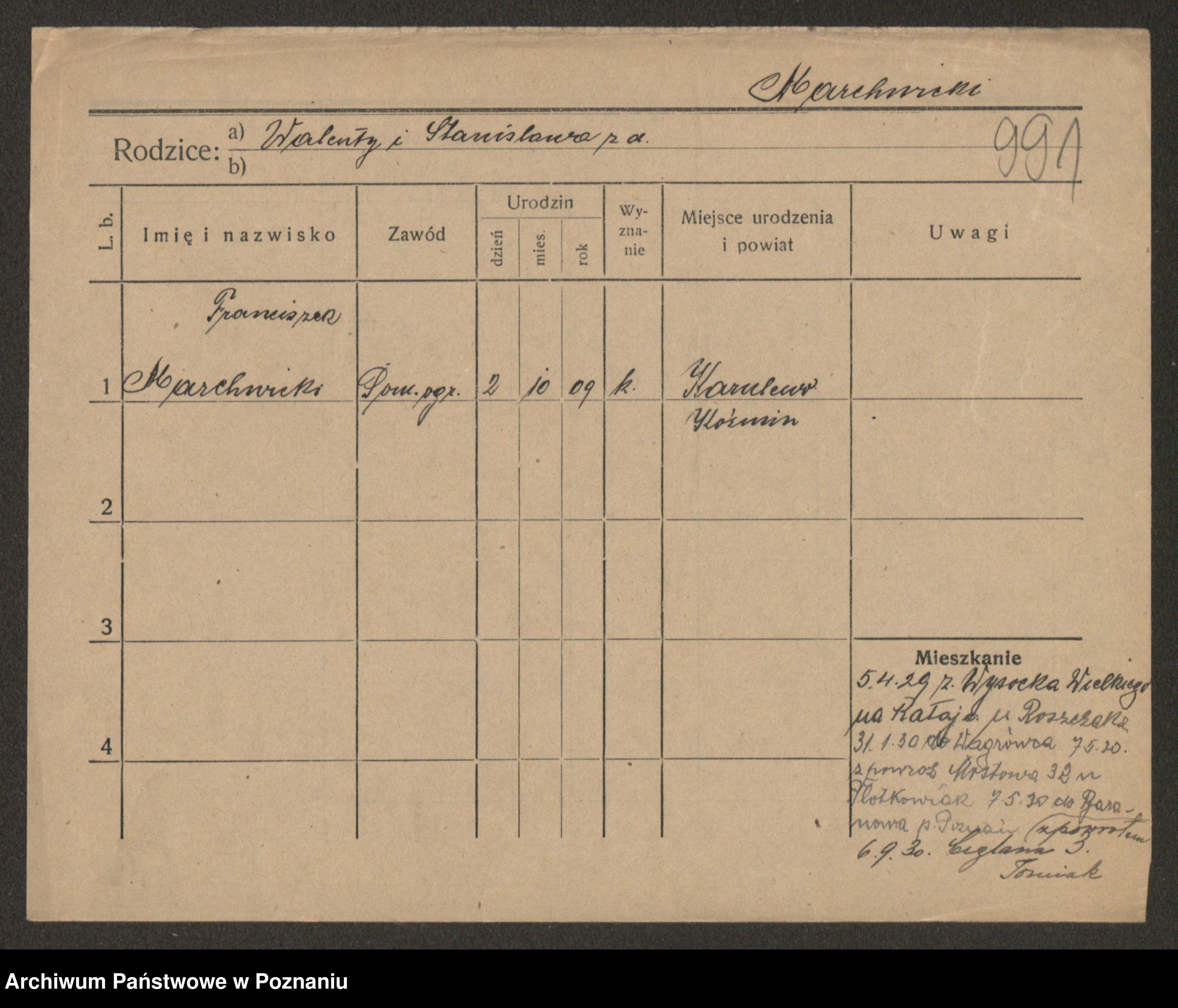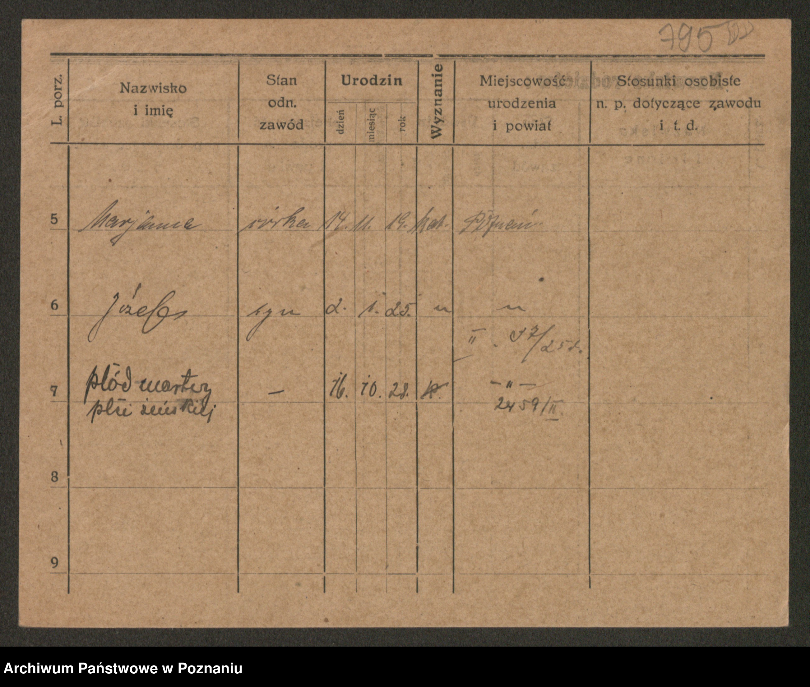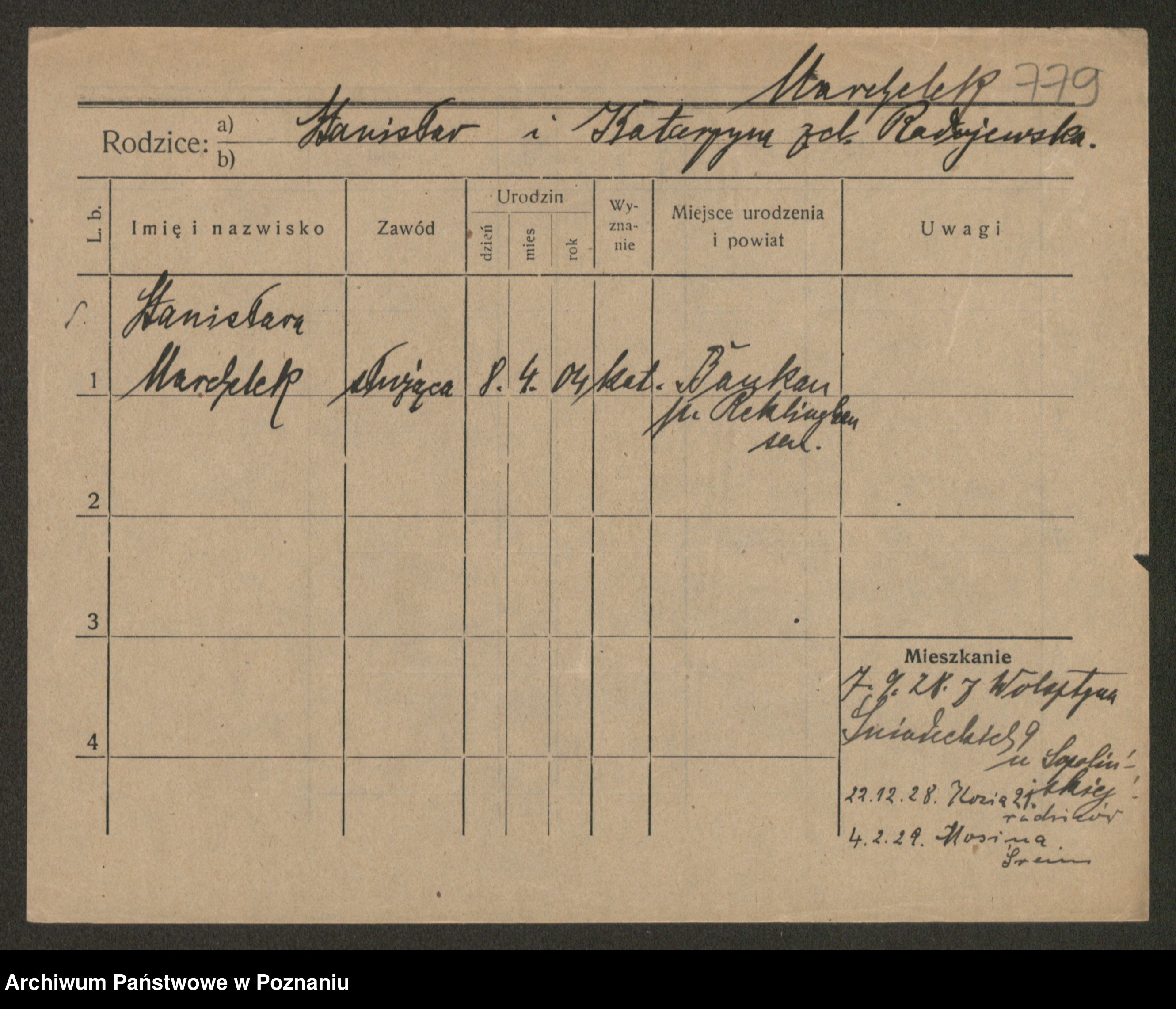 Podgląd karty osobowej dostępny jest po kliknięciu na nazwisko lub ikonkę karty. Można dokonywać powiększenia (ikony na górze) lub przechodzić między kolejnymi skanami (strzałki po bokach).