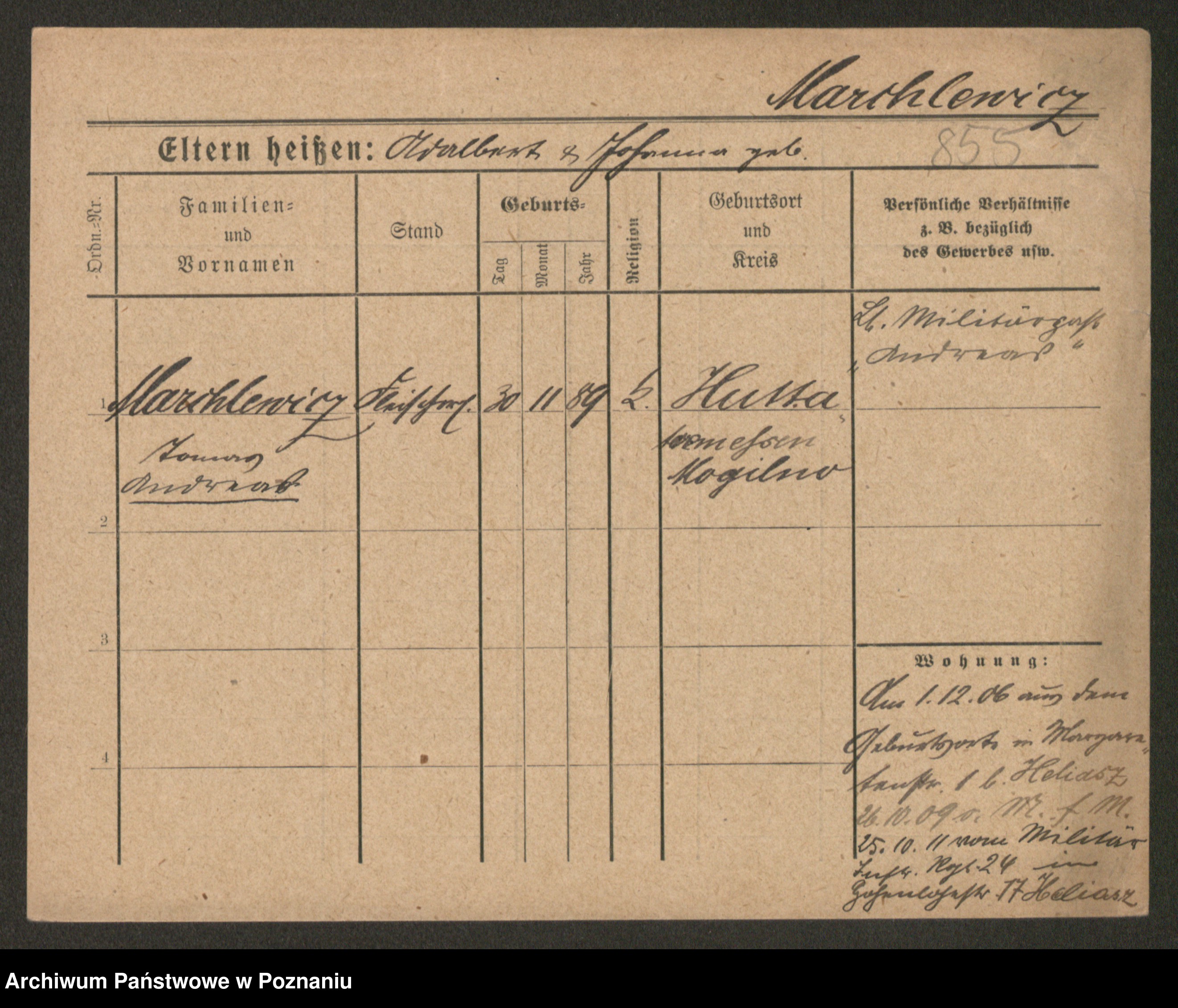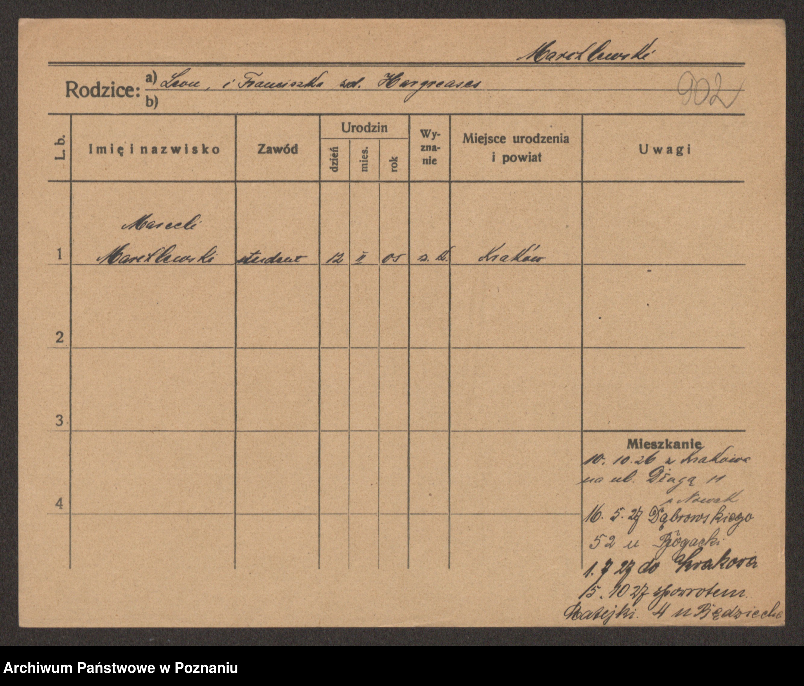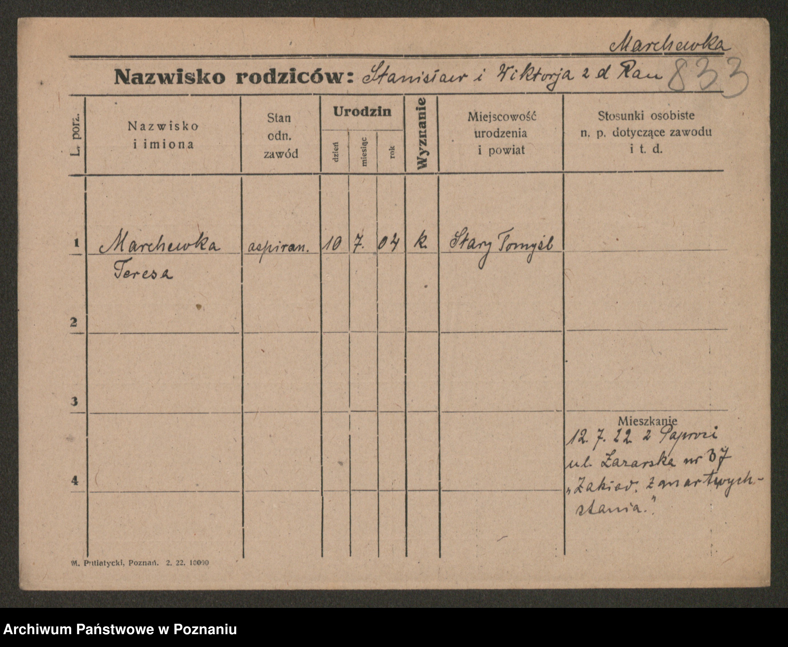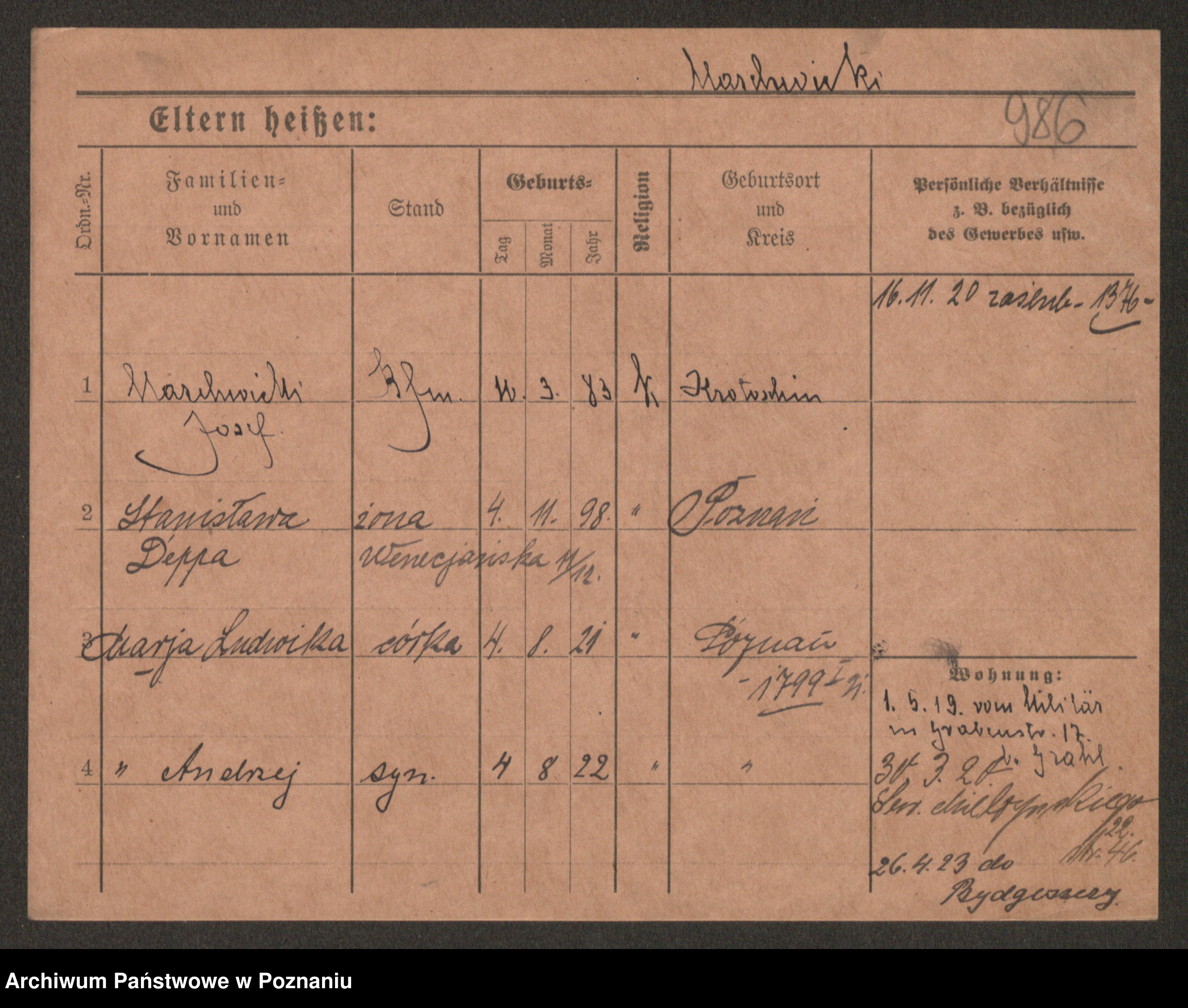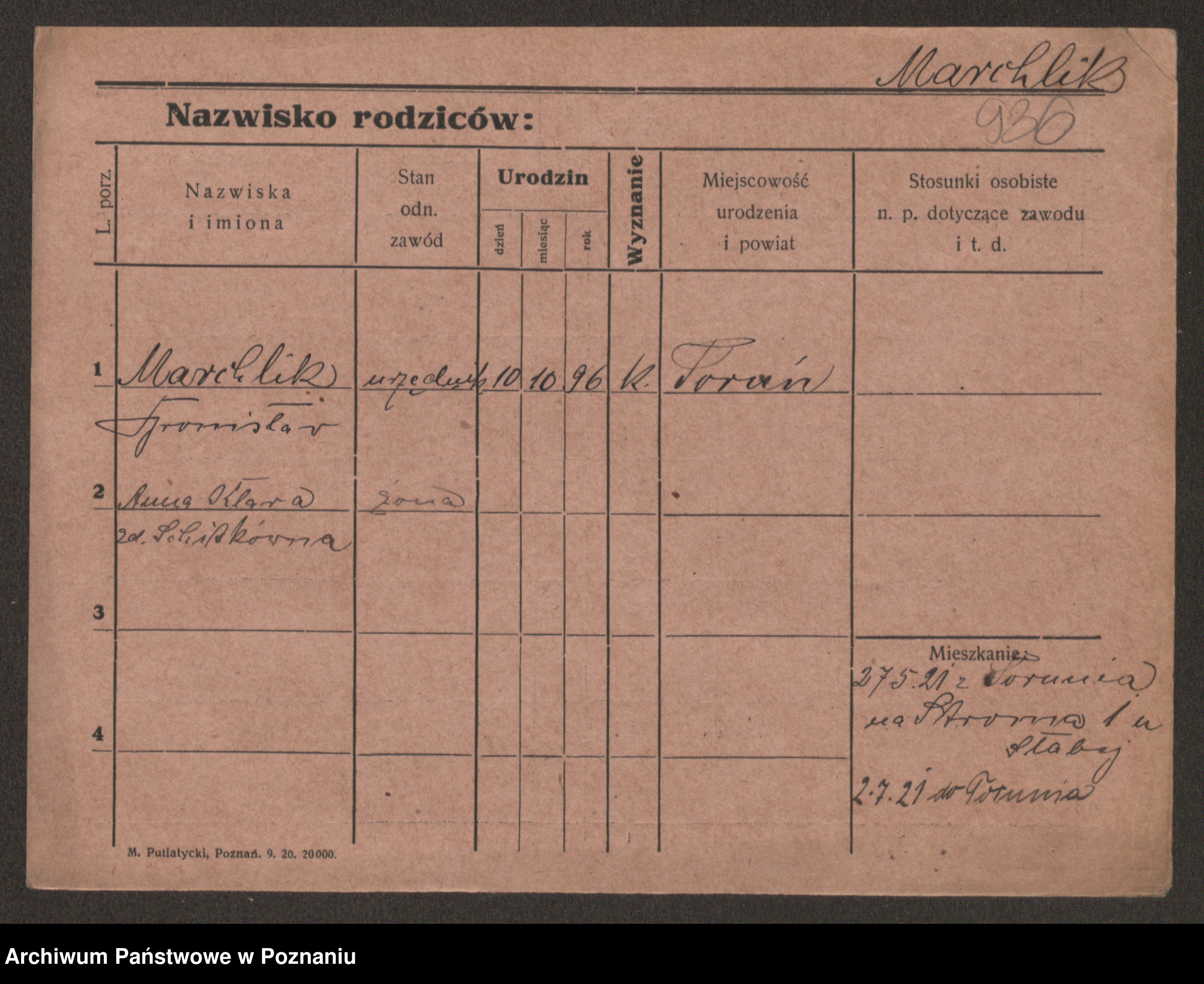 Podgląd karty osobowej dostępny jest po kliknięciu na nazwisko lub ikonkę karty. Można dokonywać powiększenia (ikony na górze) lub przechodzić między kolejnymi skanami (strzałki po bokach).