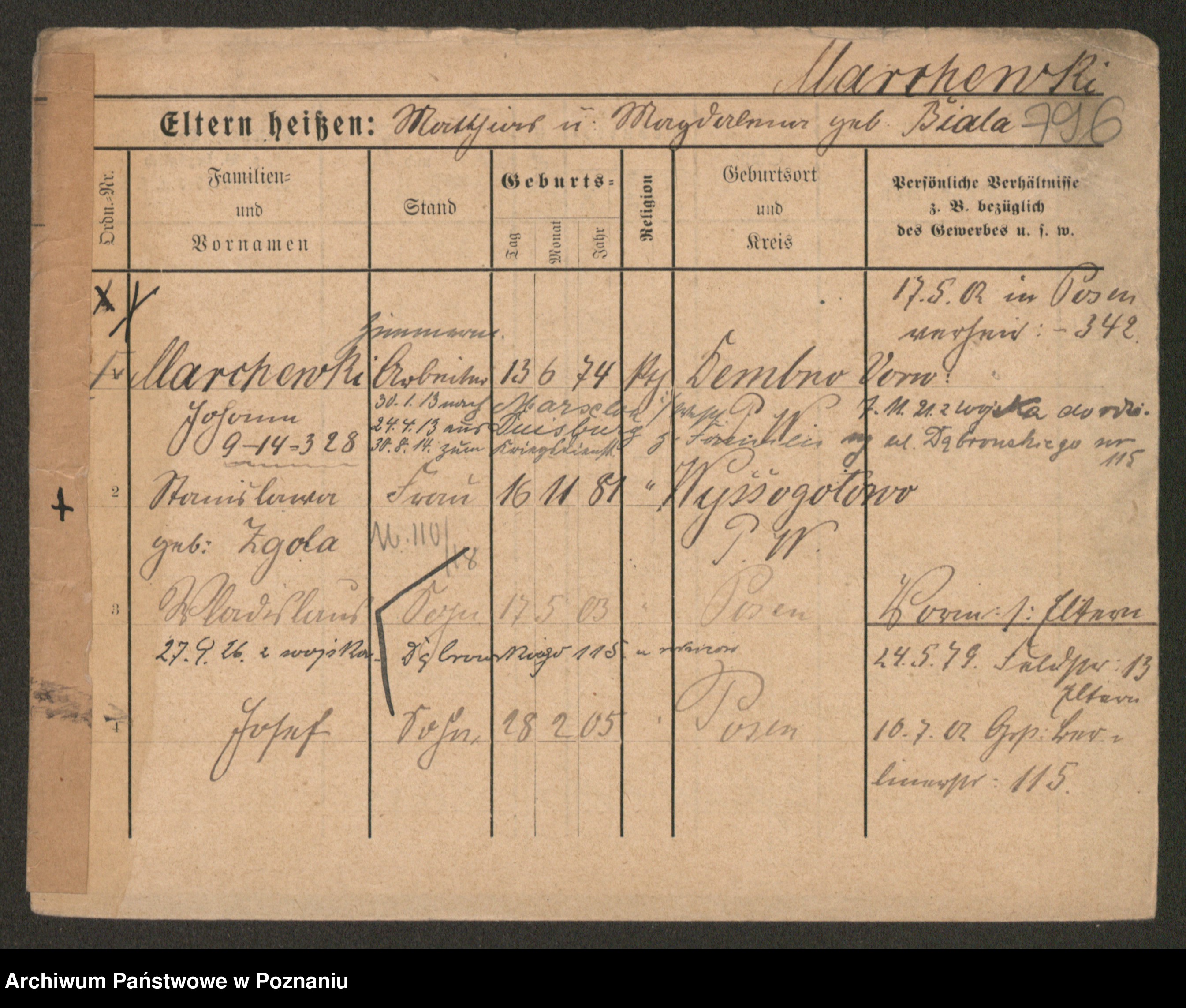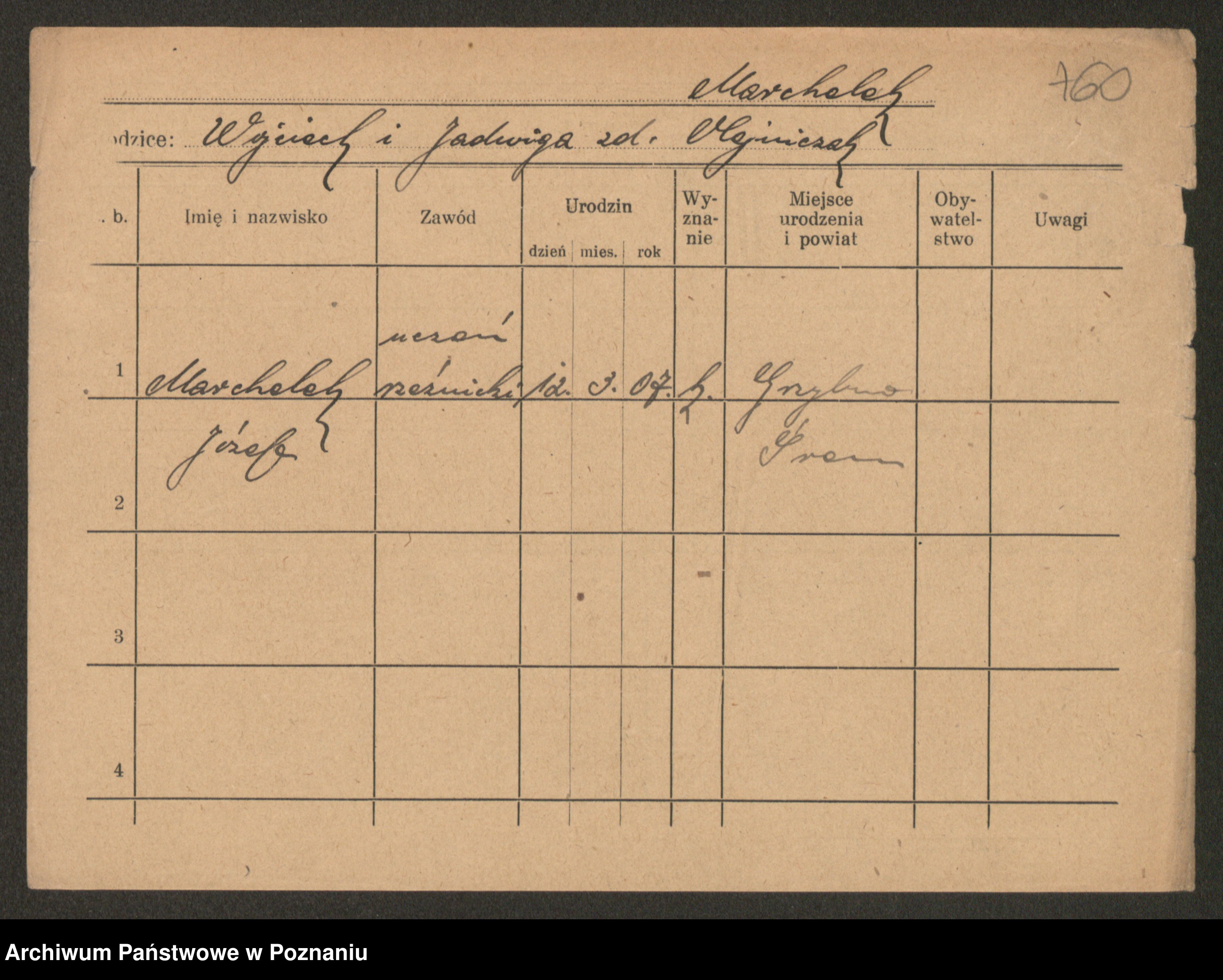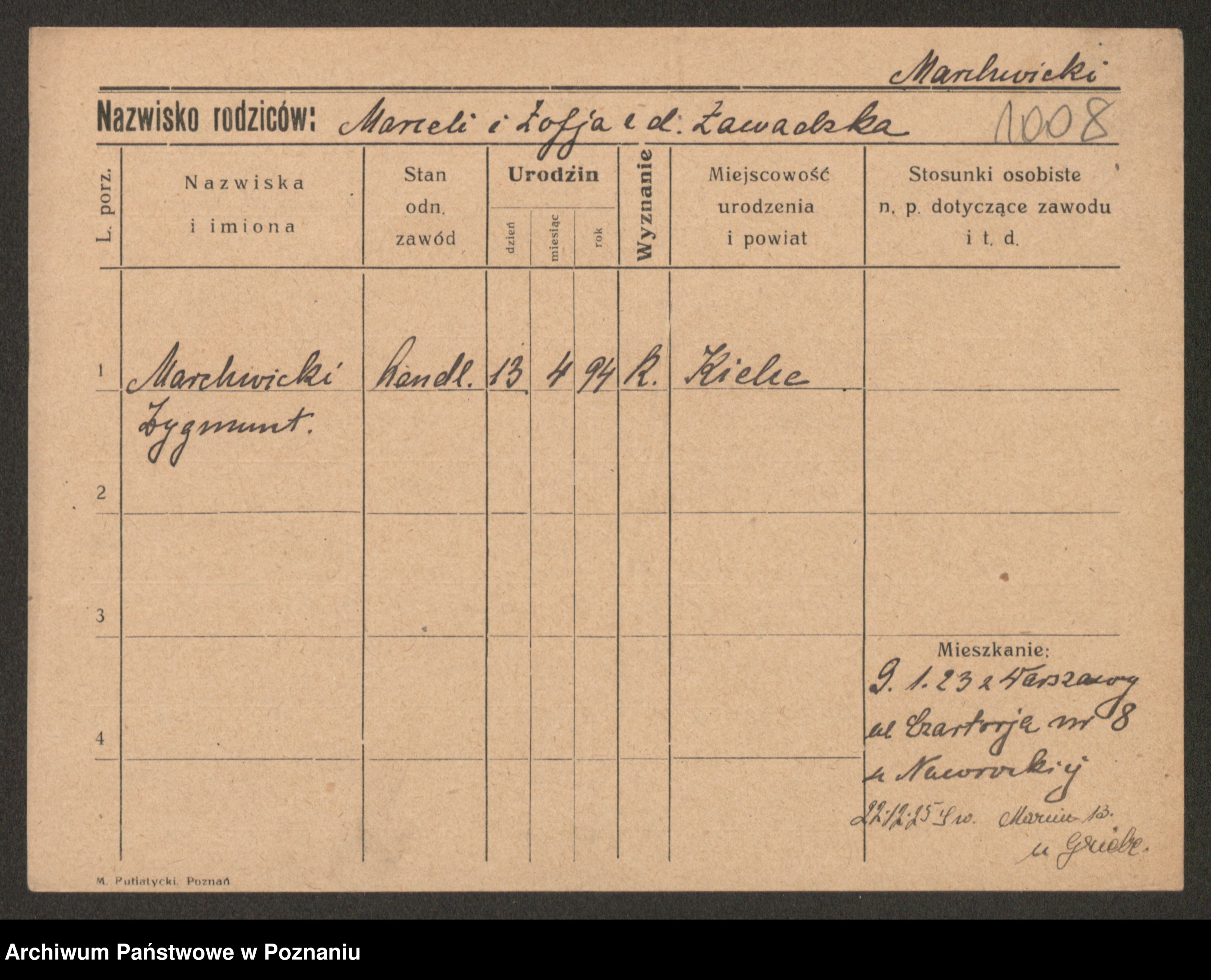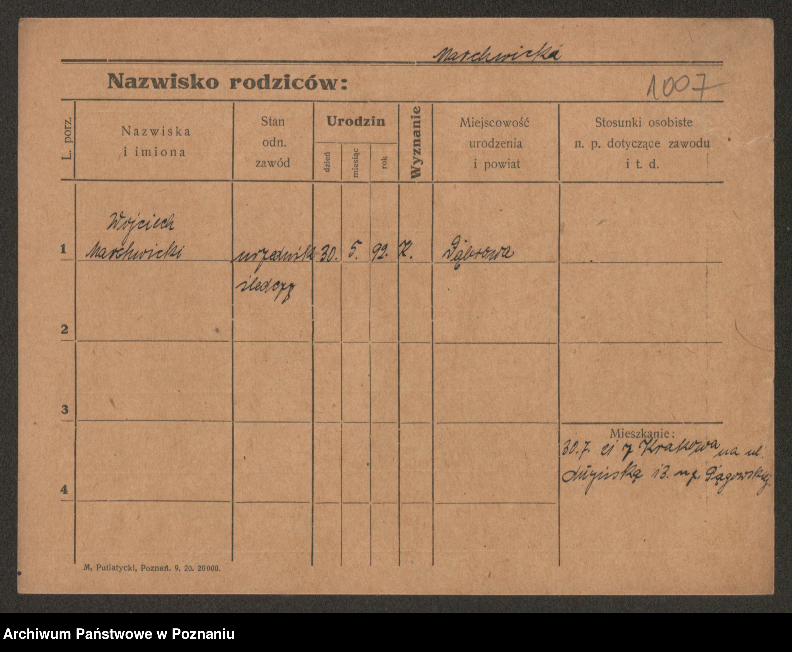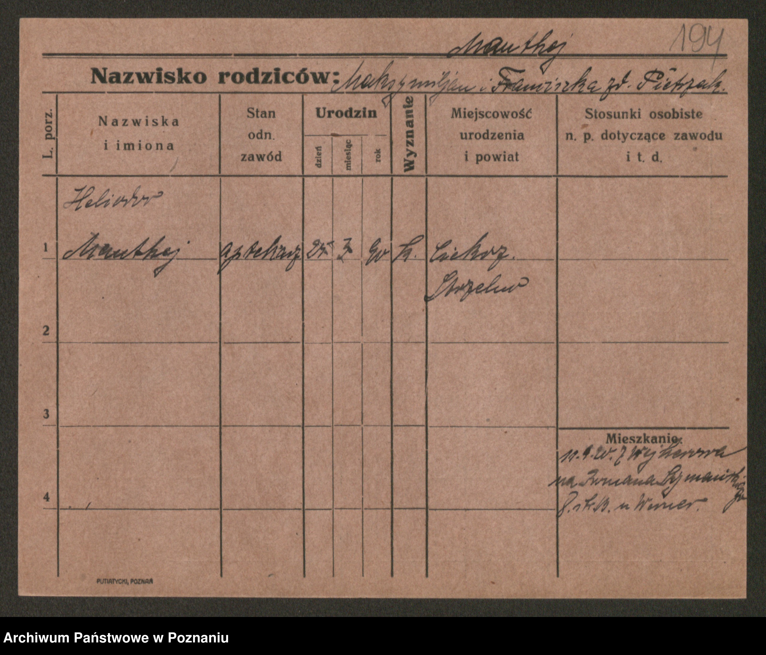 Podgląd karty osobowej dostępny jest po kliknięciu na nazwisko lub ikonkę karty. Można dokonywać powiększenia (ikony na górze) lub przechodzić między kolejnymi skanami (strzałki po bokach).