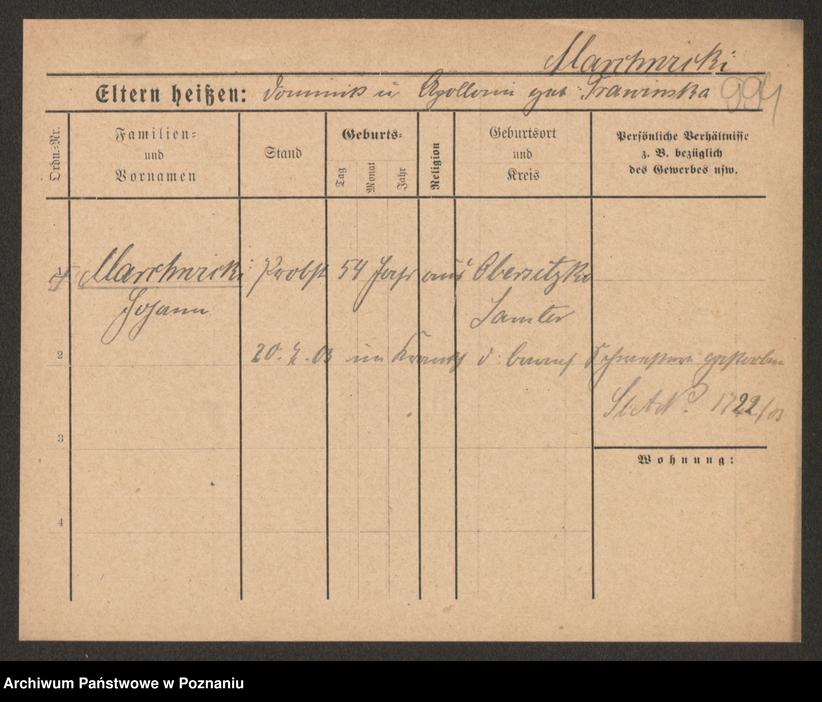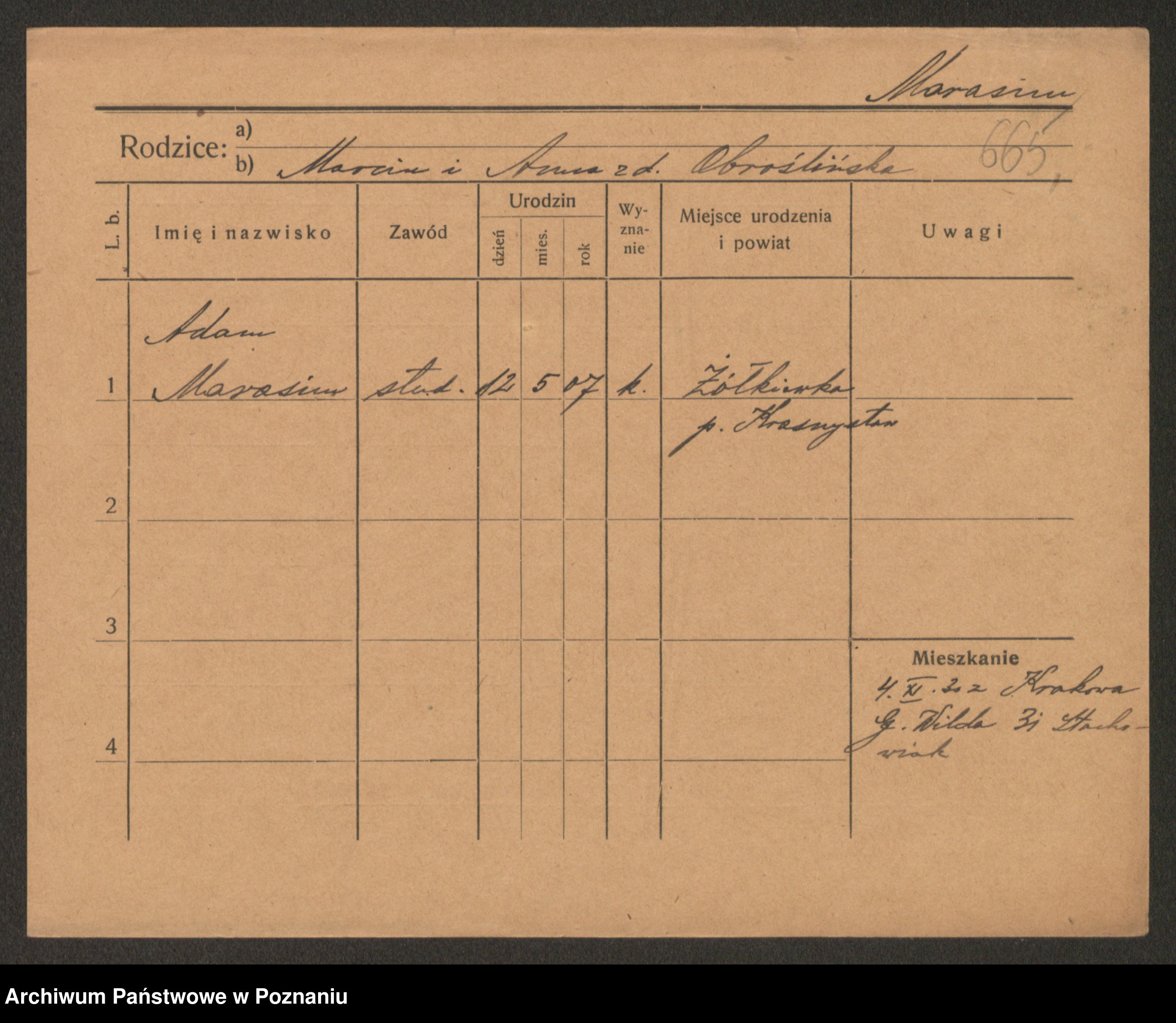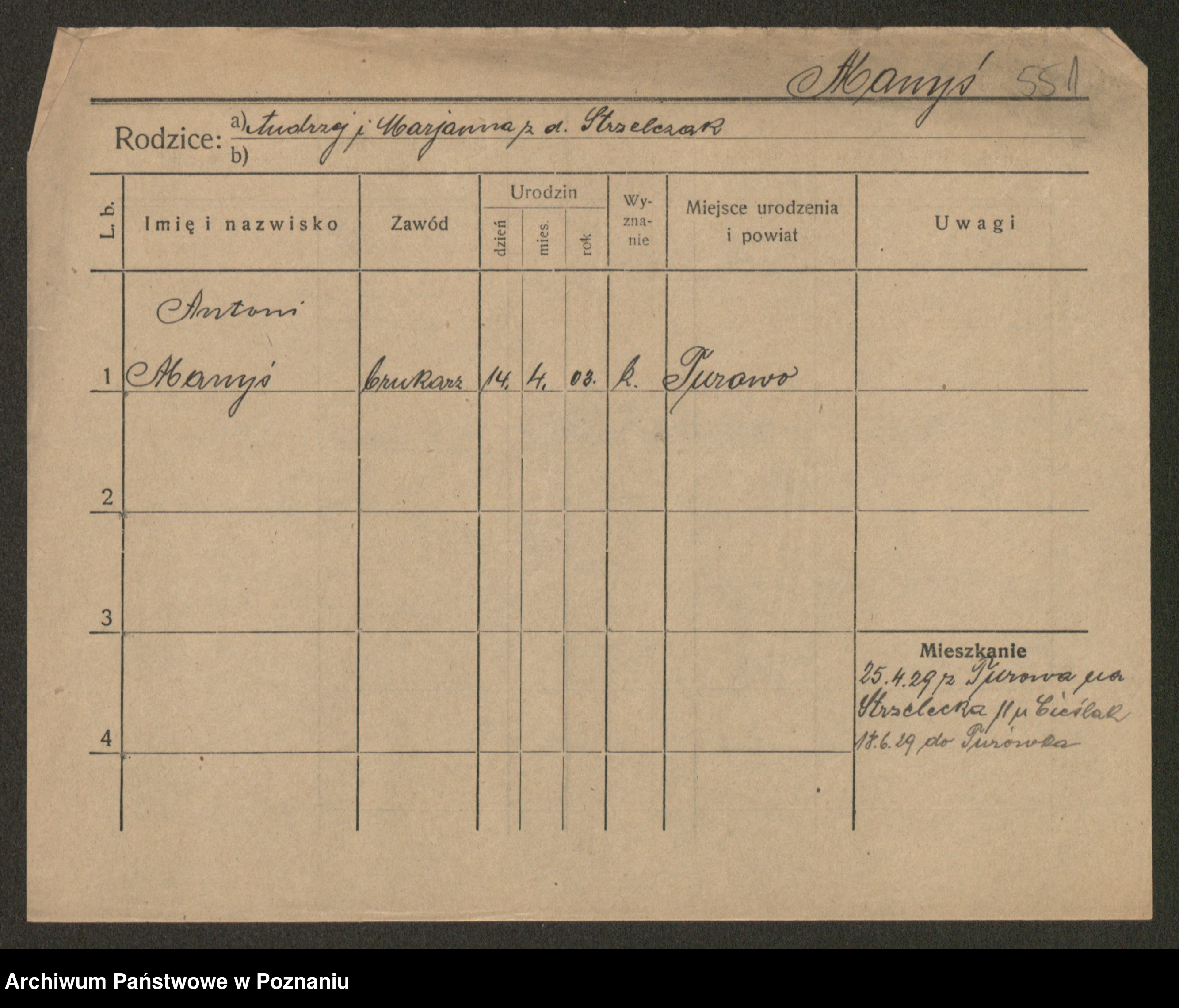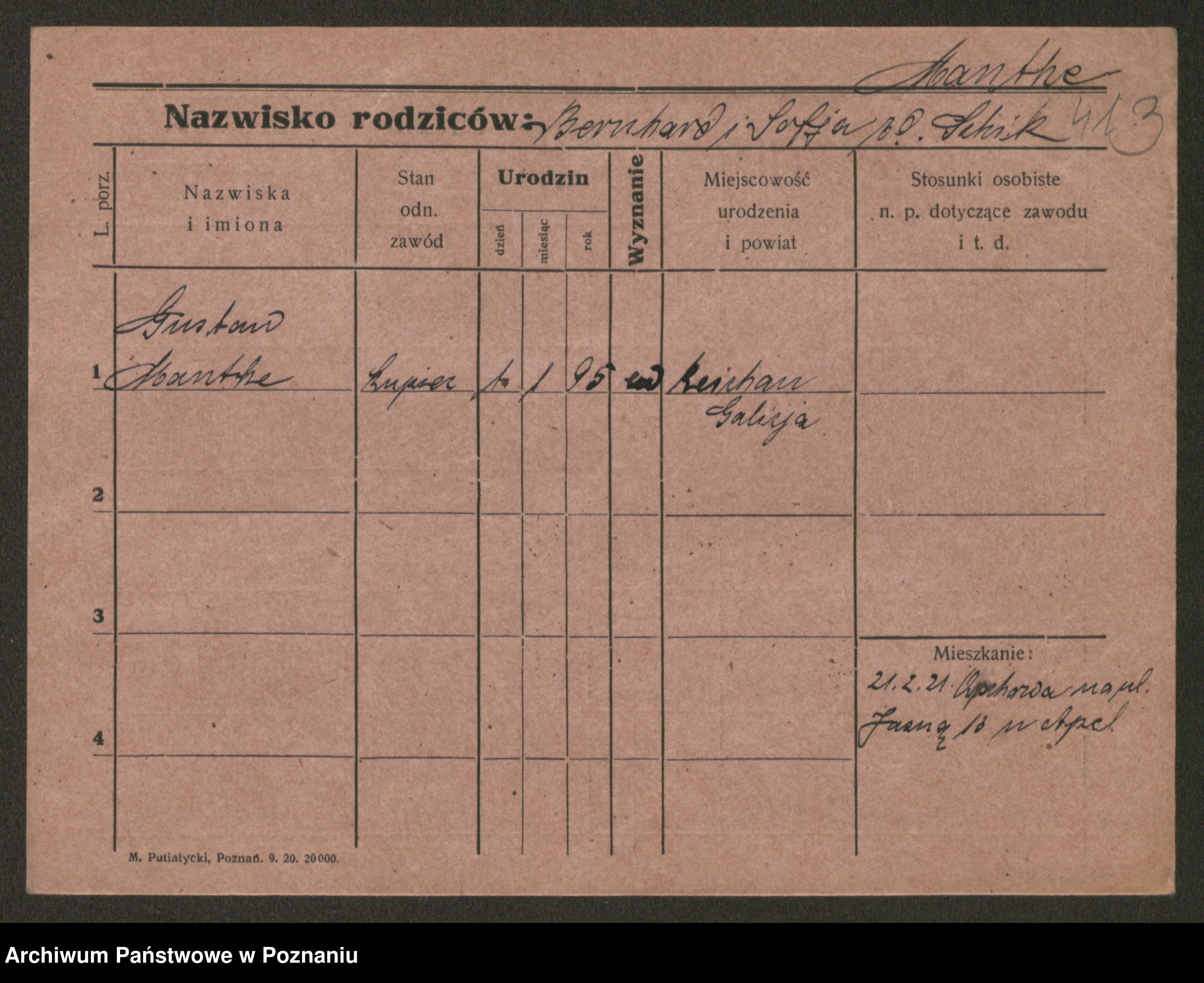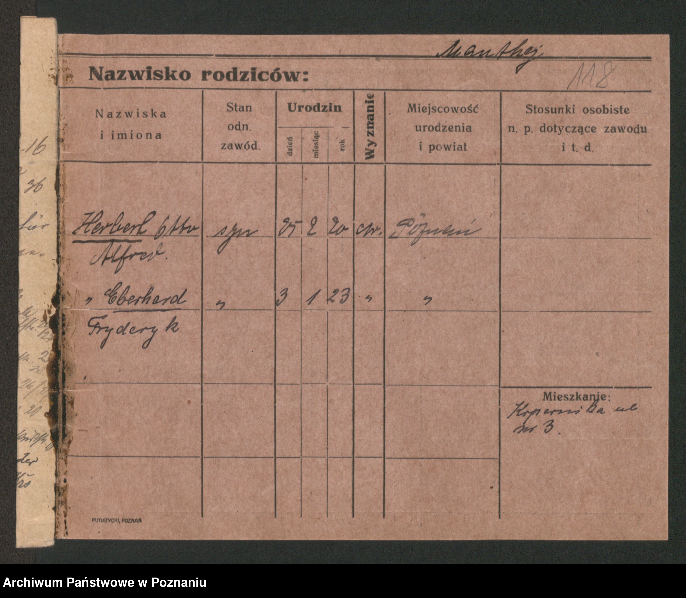 Podgląd karty osobowej dostępny jest po kliknięciu na nazwisko lub ikonkę karty. Można dokonywać powiększenia (ikony na górze) lub przechodzić między kolejnymi skanami (strzałki po bokach).