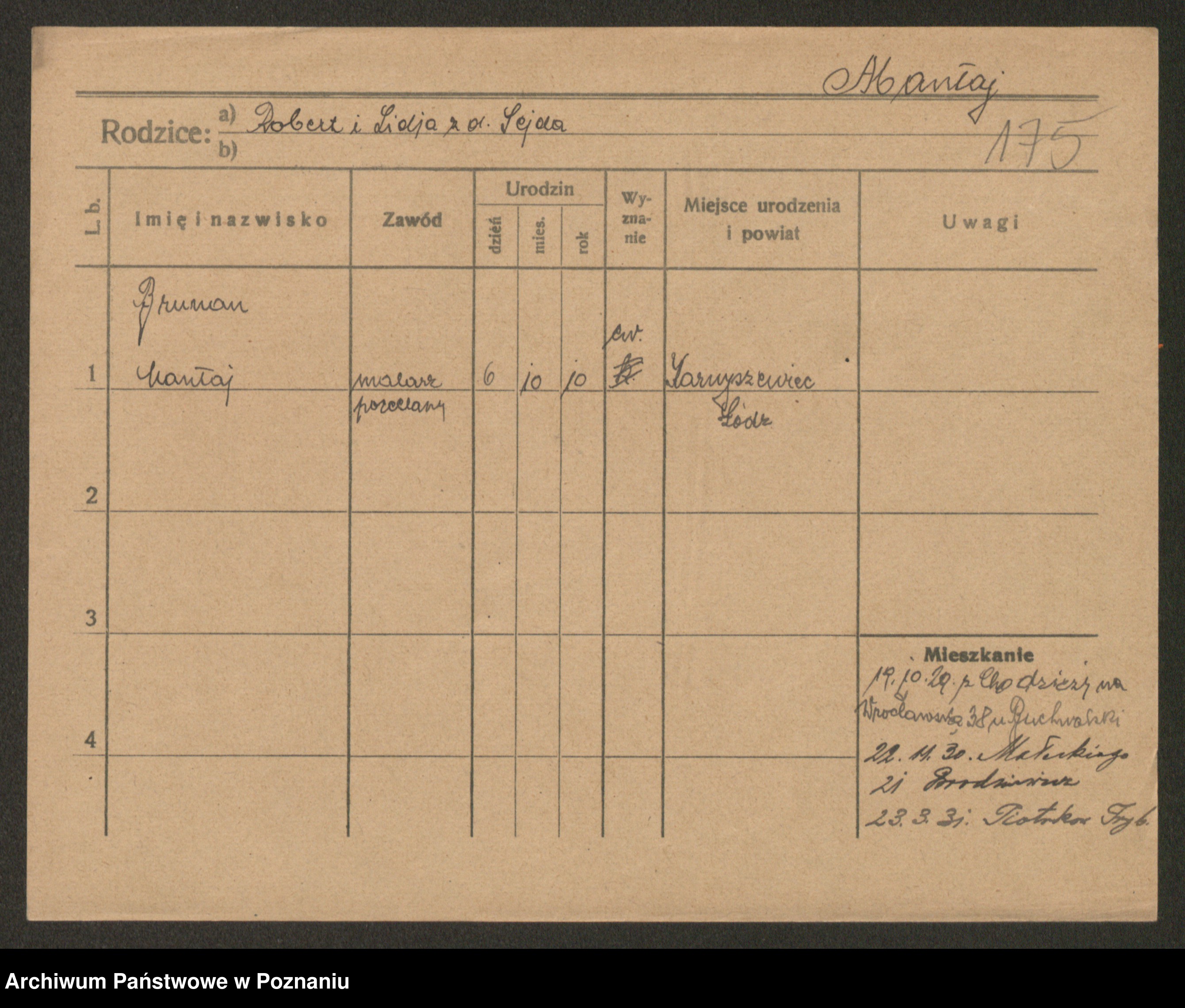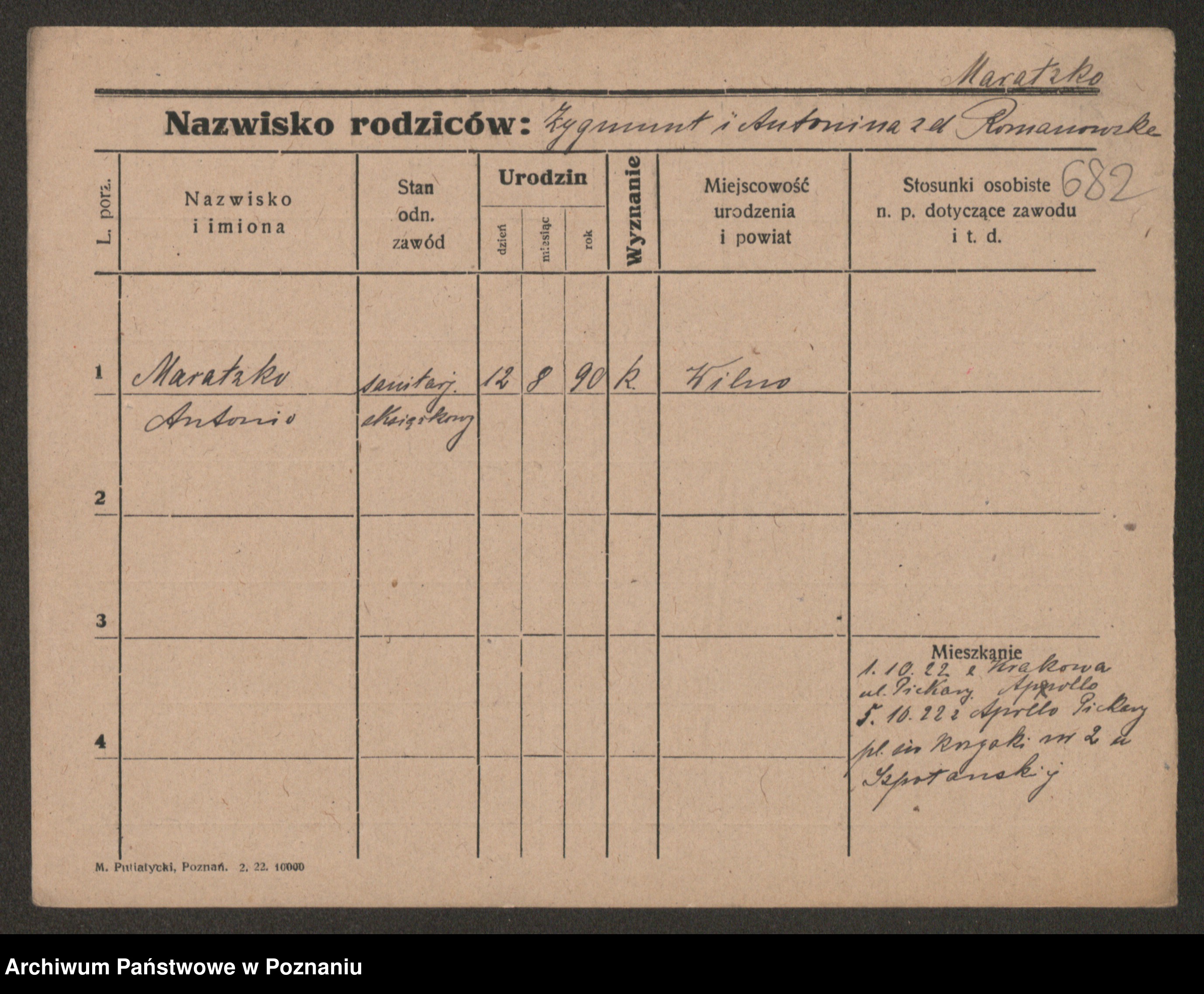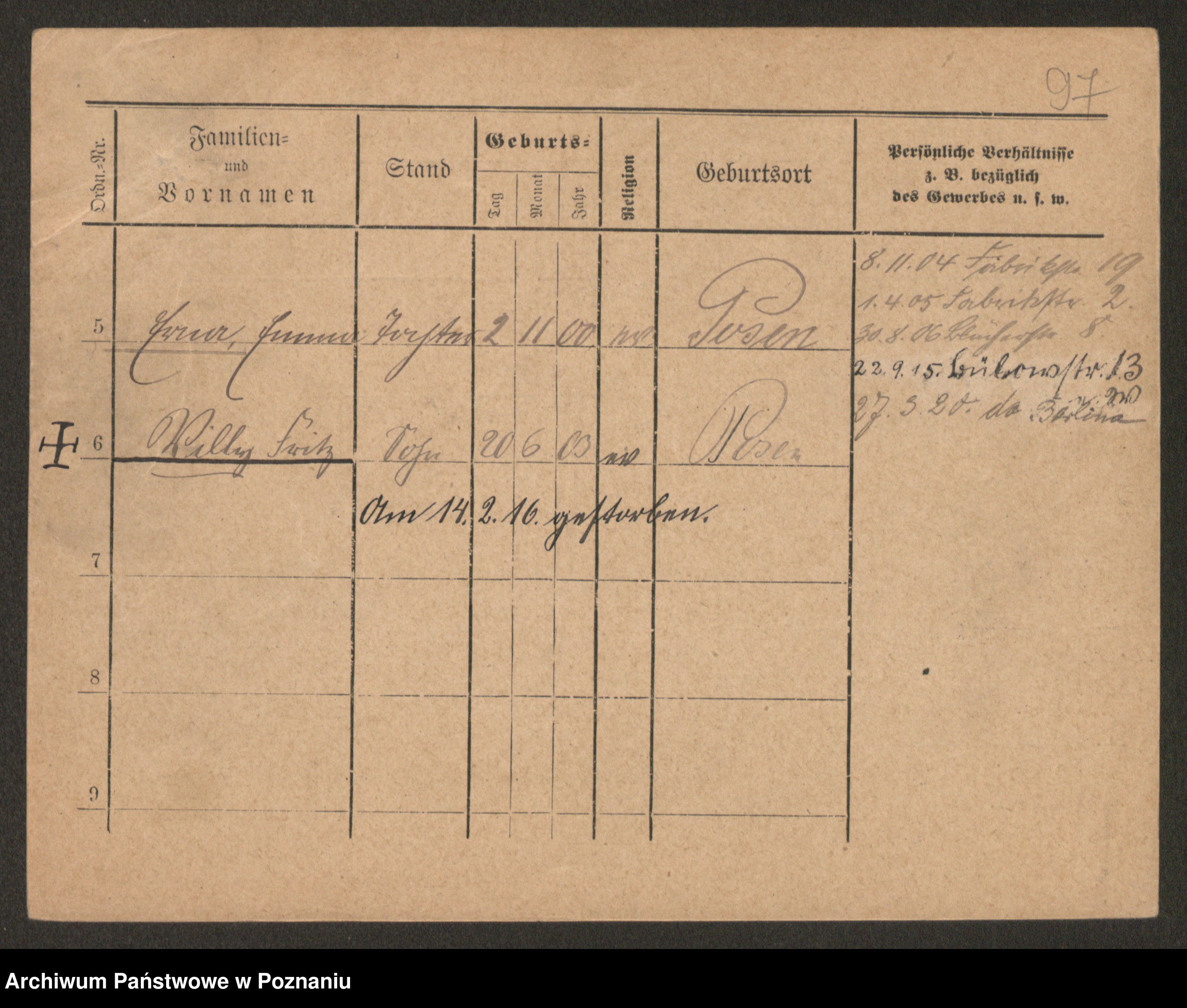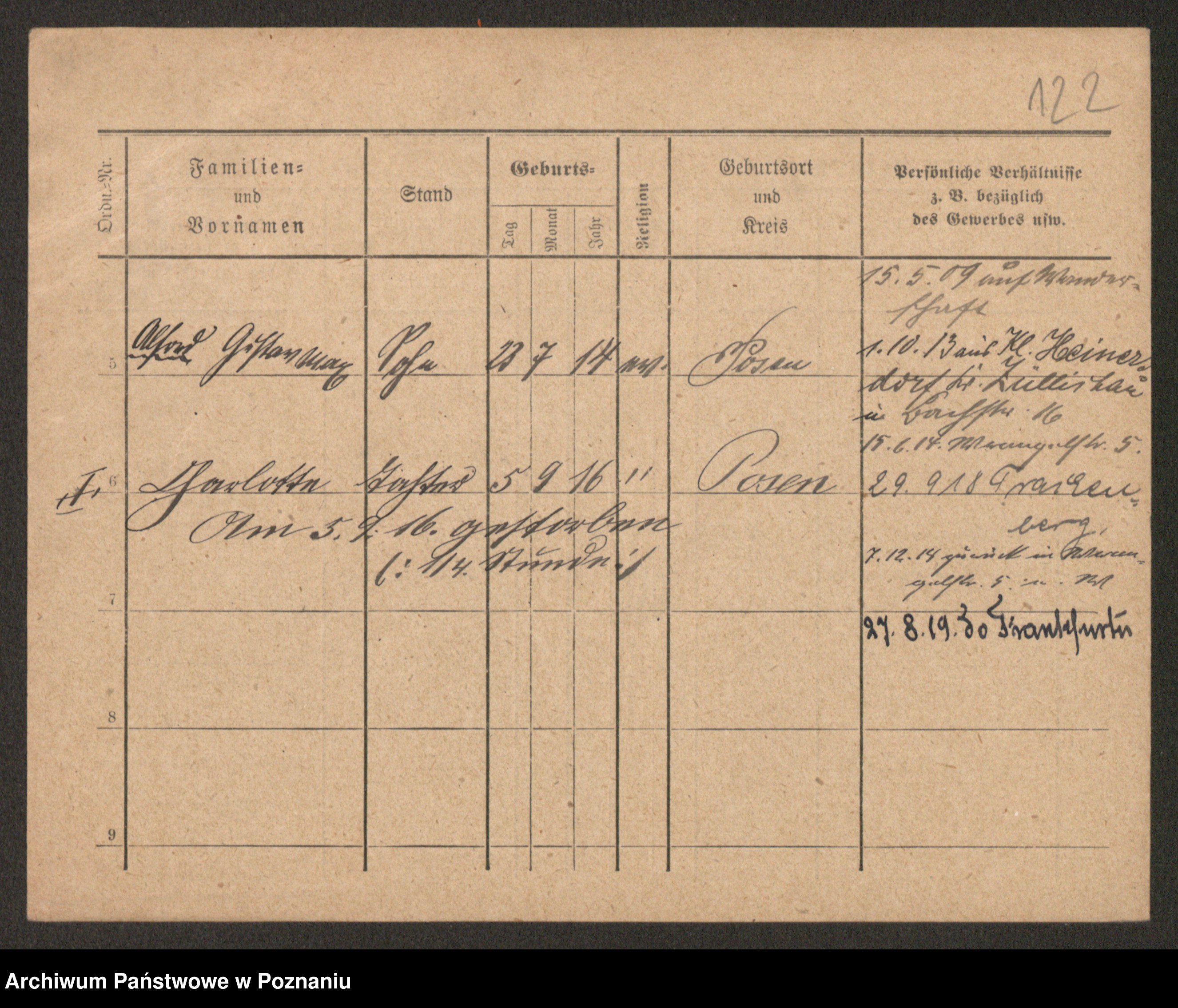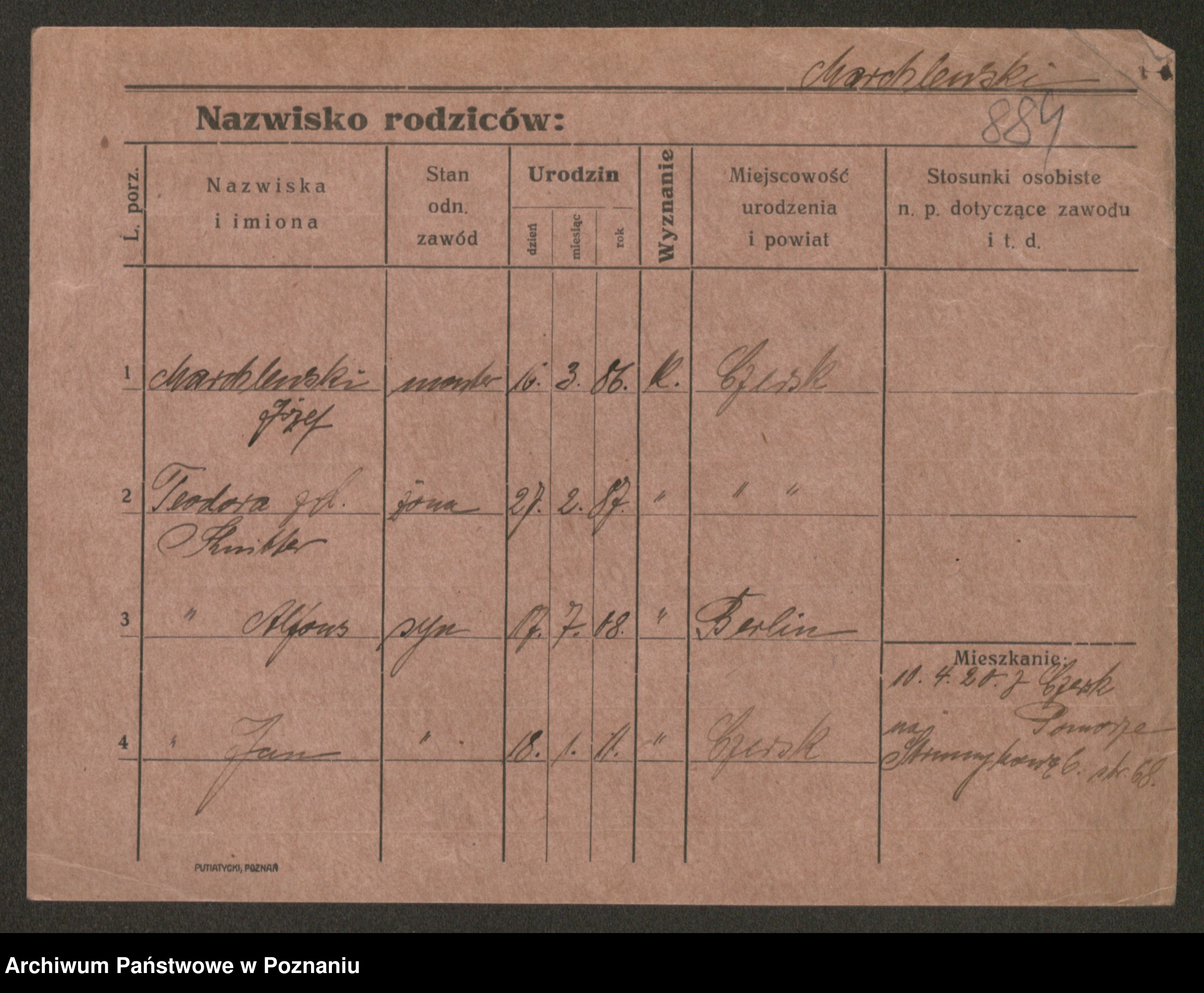 Podgląd karty osobowej dostępny jest po kliknięciu na nazwisko lub ikonkę karty. Można dokonywać powiększenia (ikony na górze) lub przechodzić między kolejnymi skanami (strzałki po bokach).