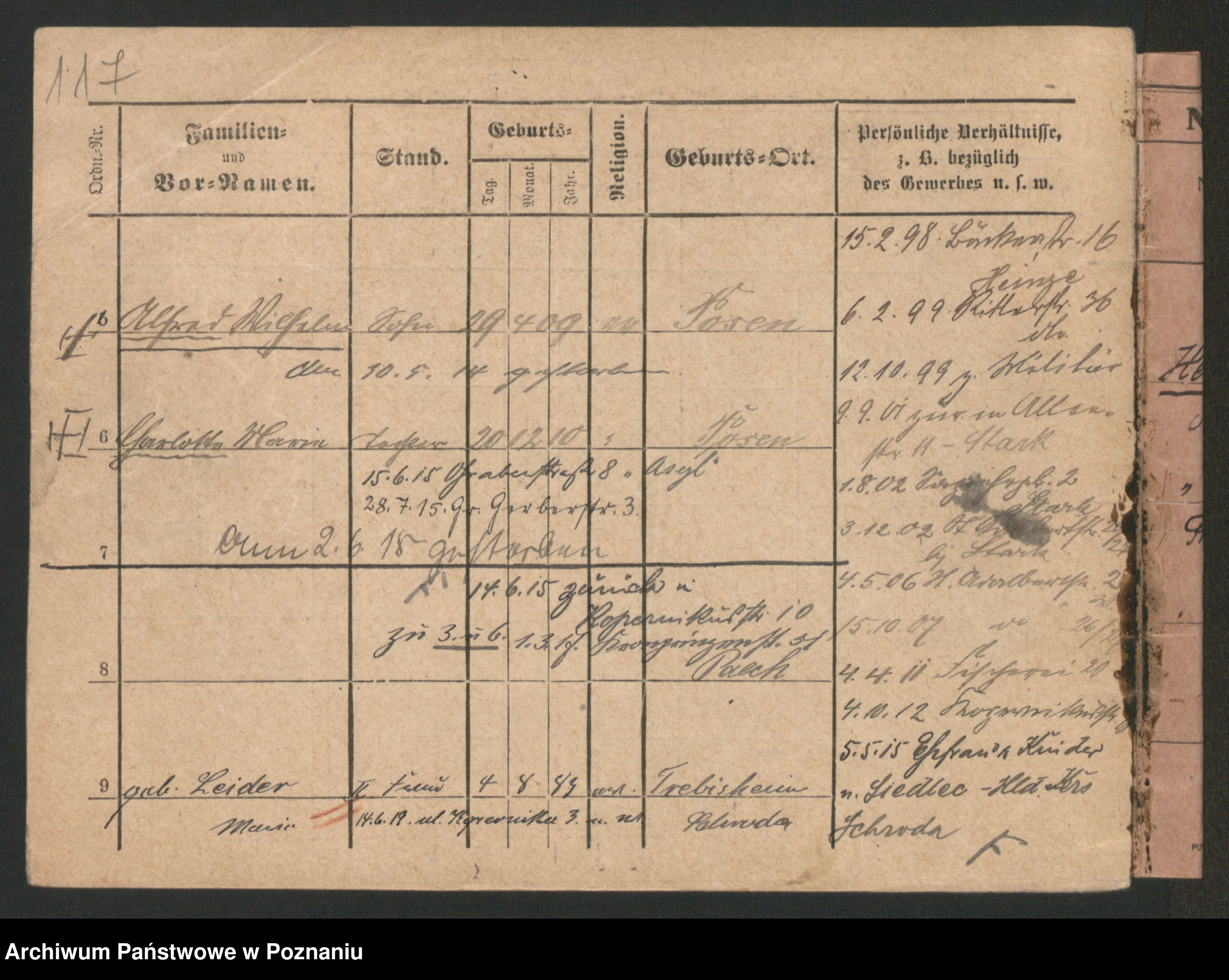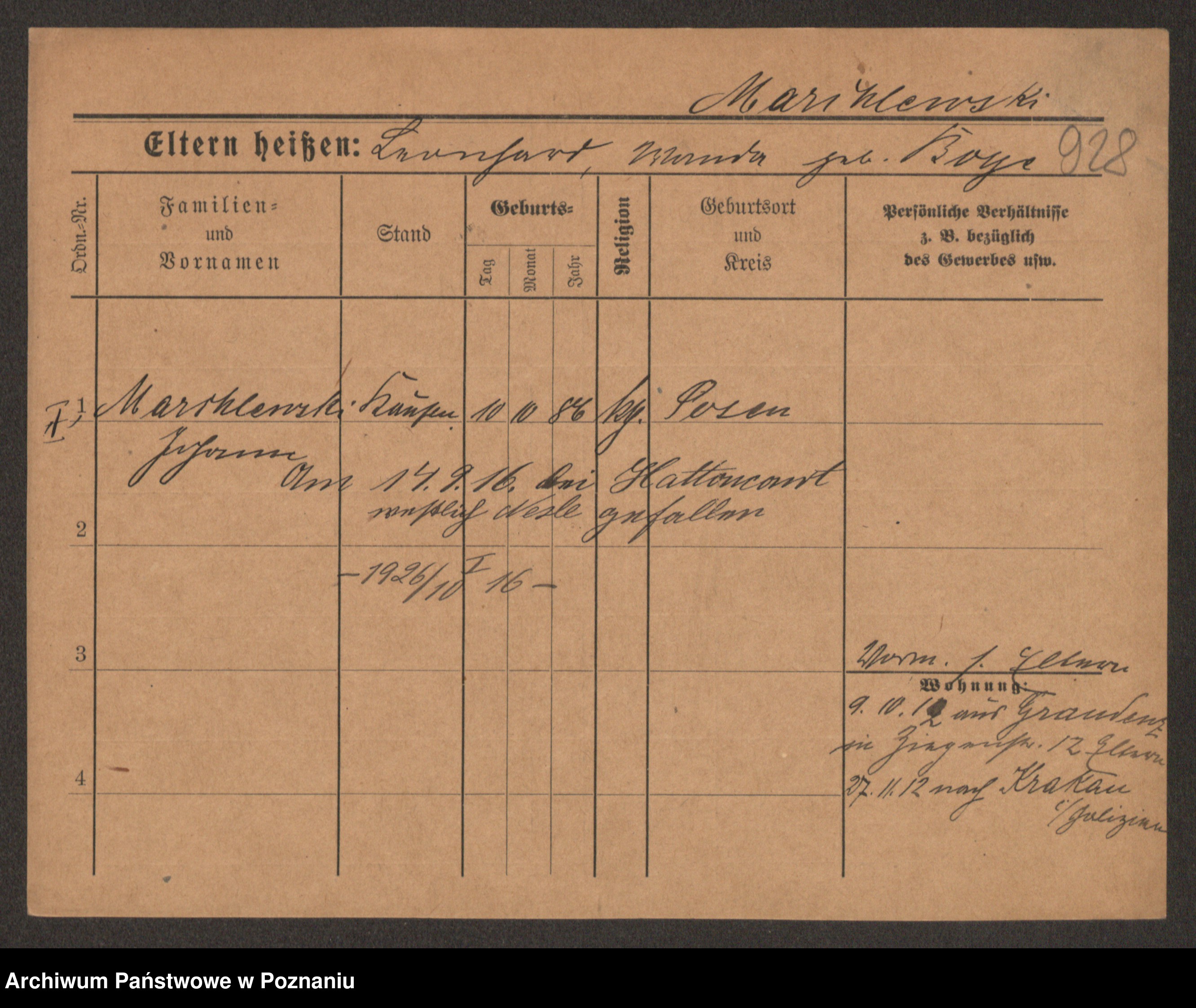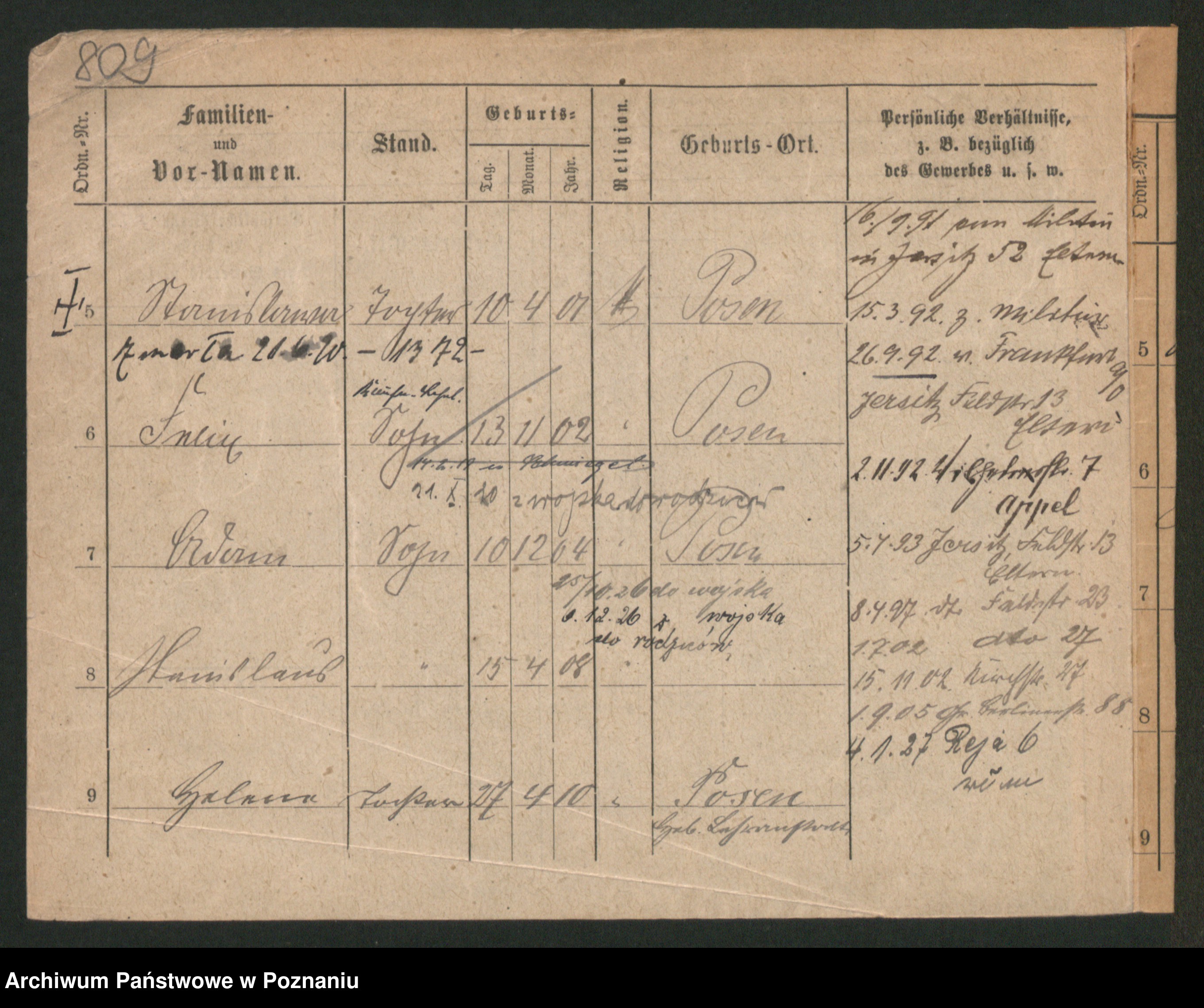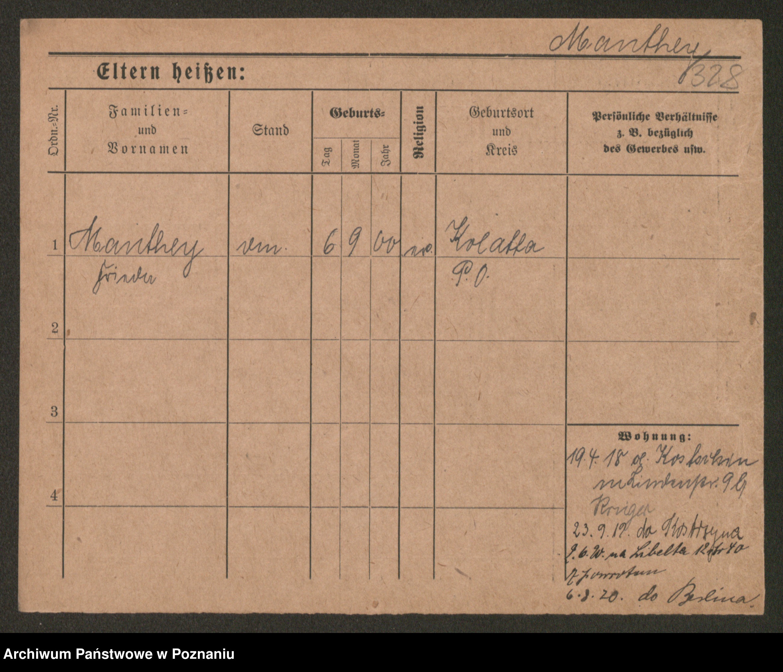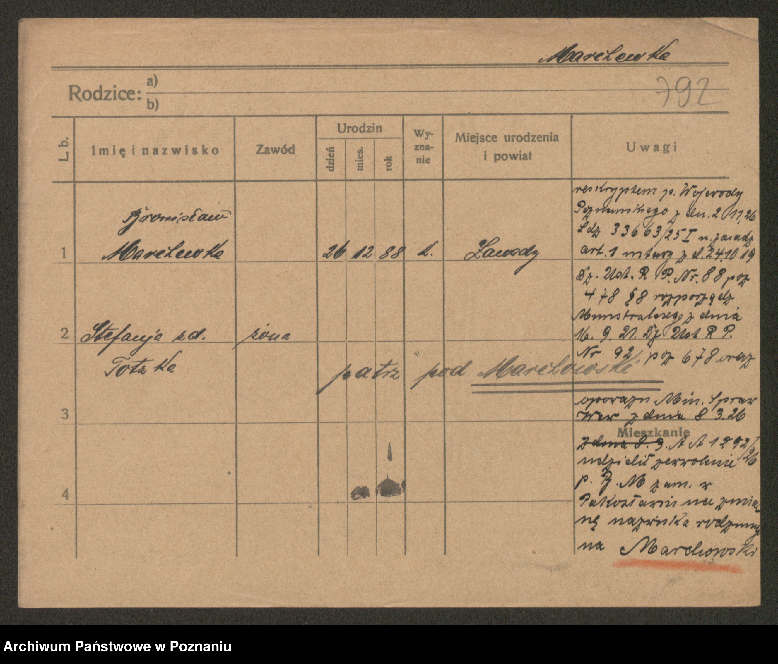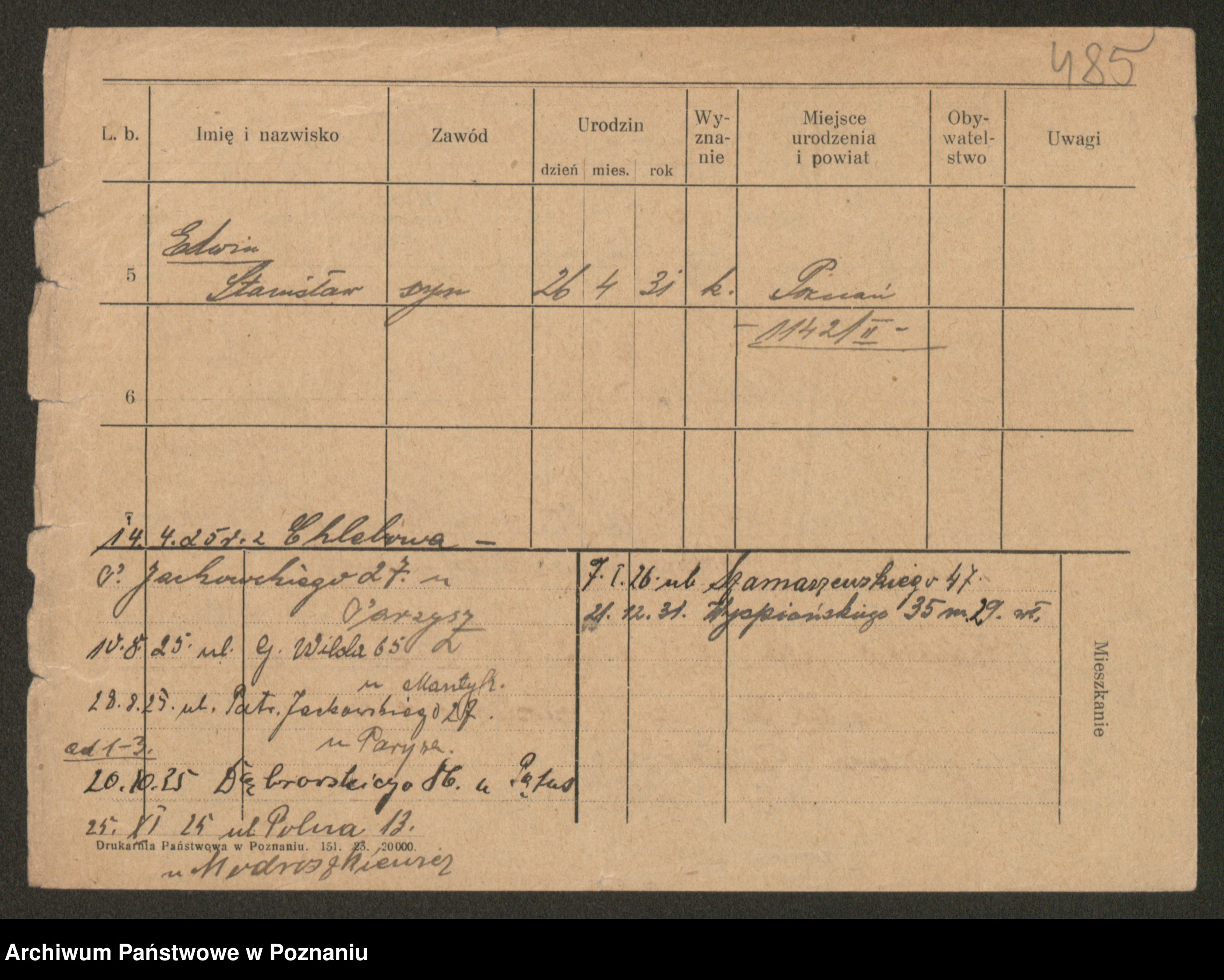 Podgląd karty osobowej dostępny jest po kliknięciu na nazwisko lub ikonkę karty. Można dokonywać powiększenia (ikony na górze) lub przechodzić między kolejnymi skanami (strzałki po bokach).