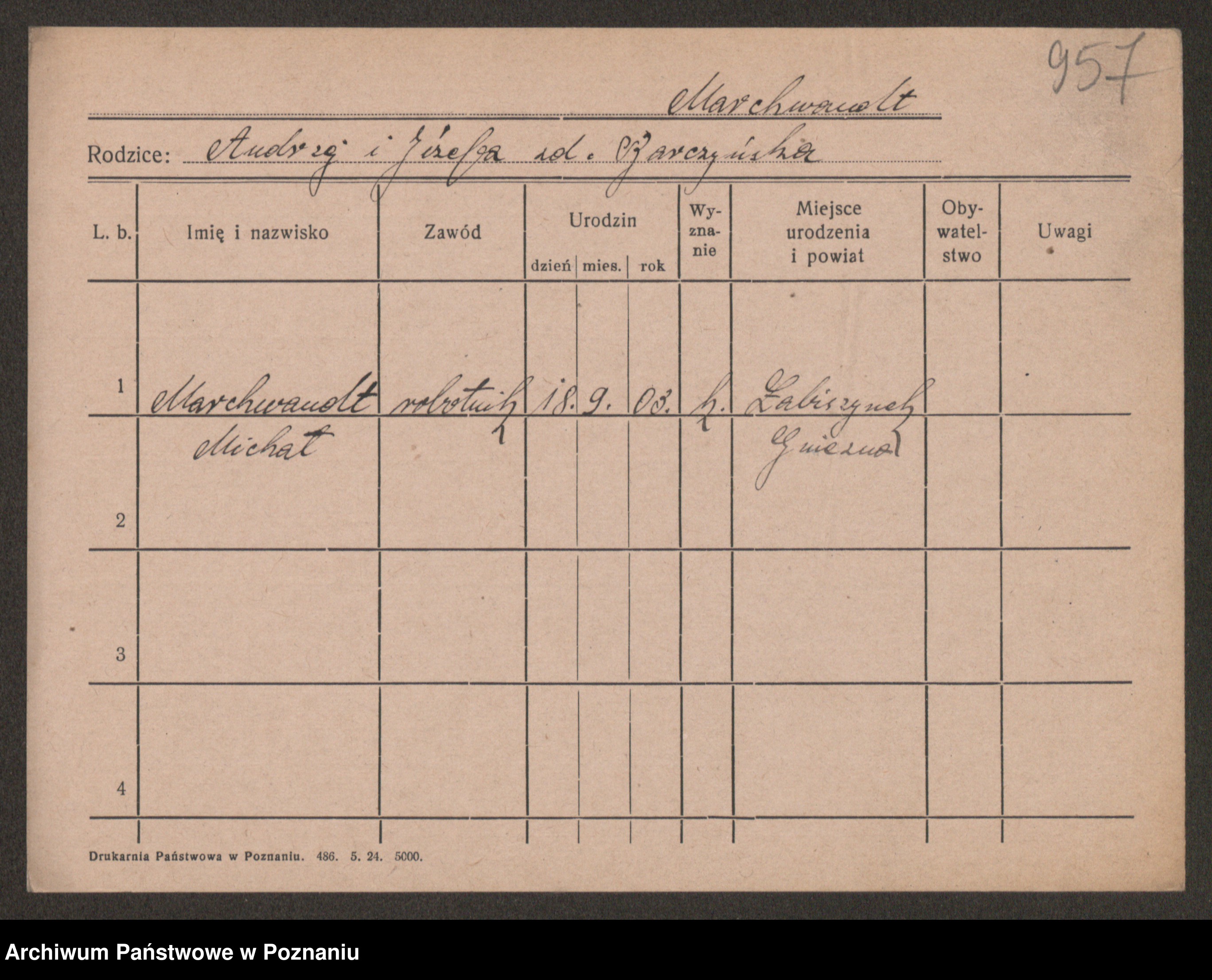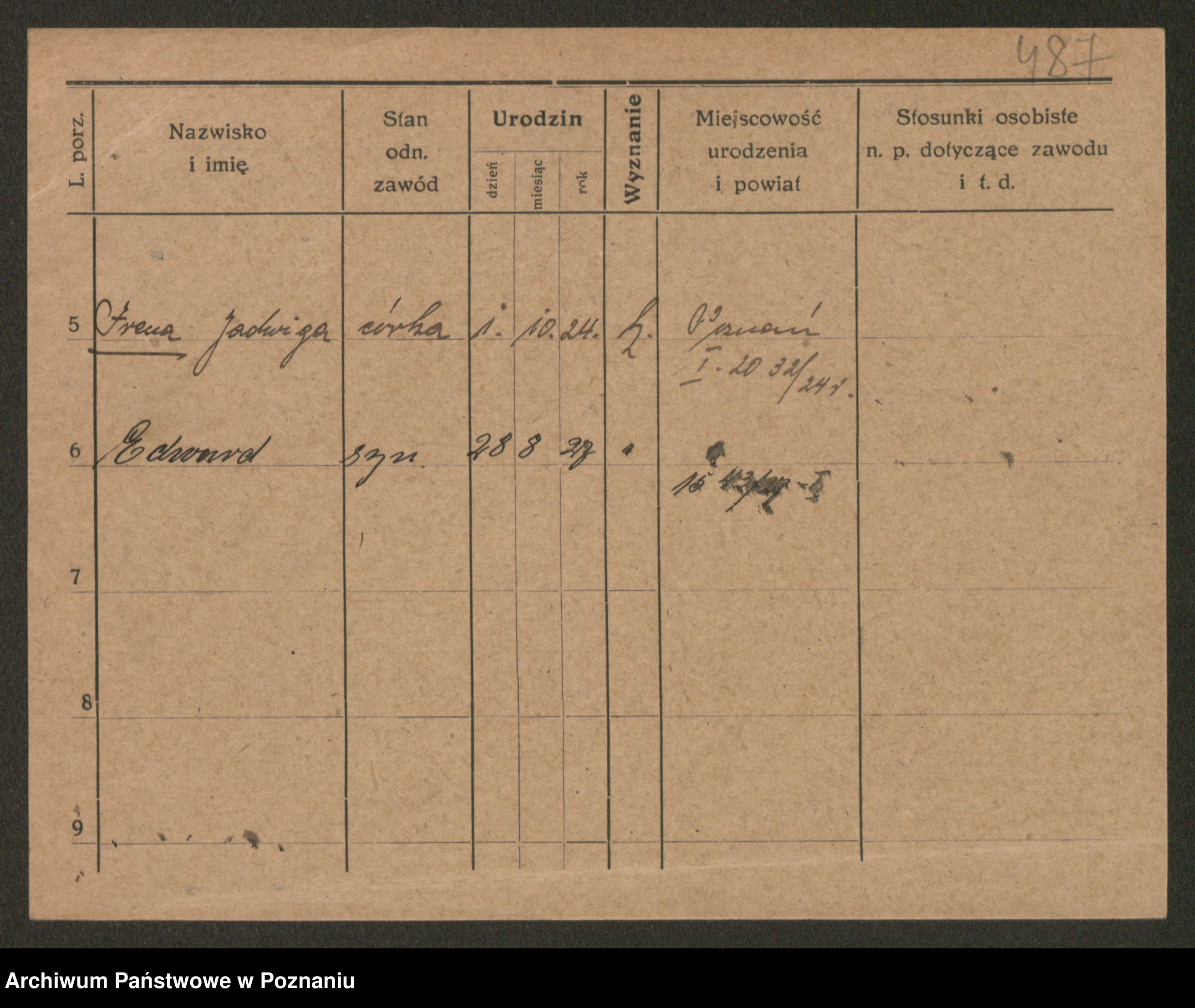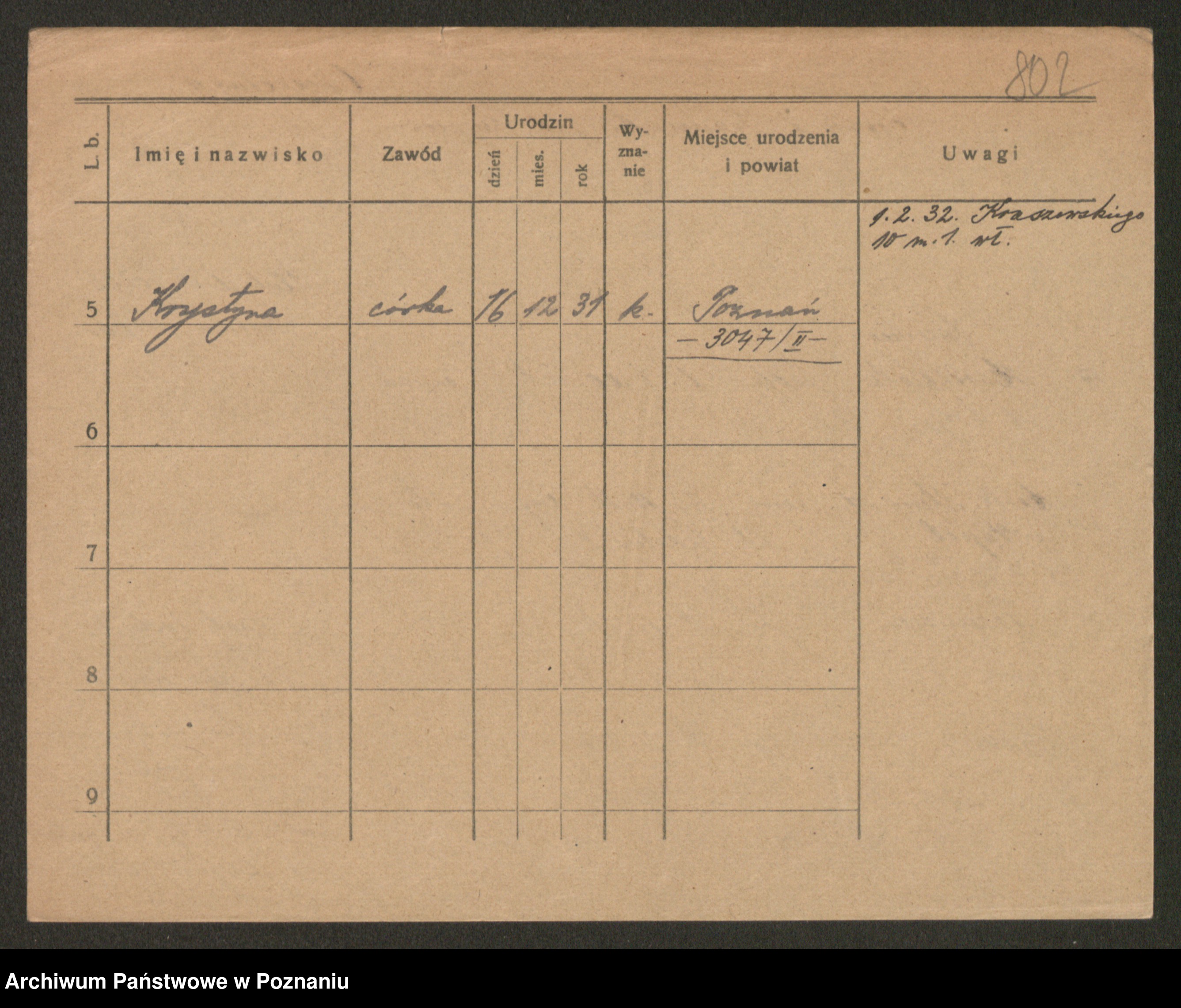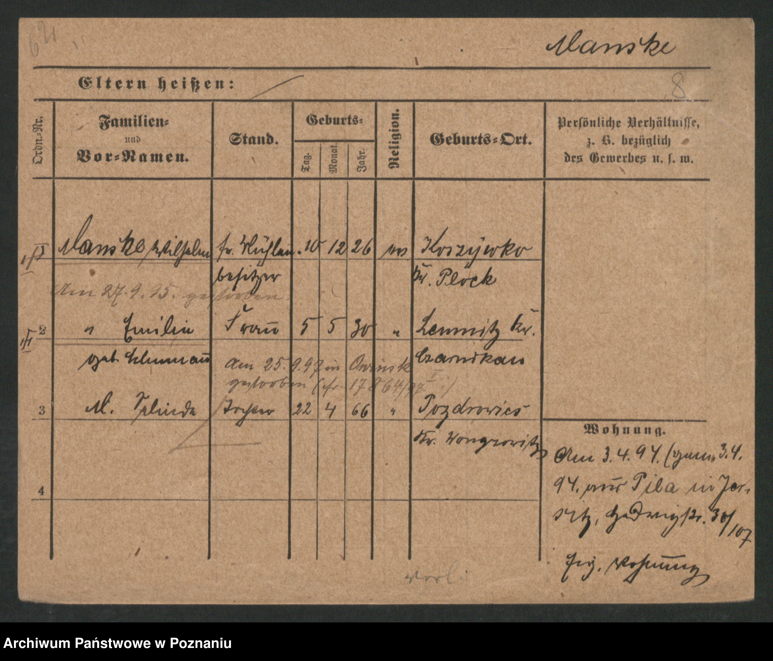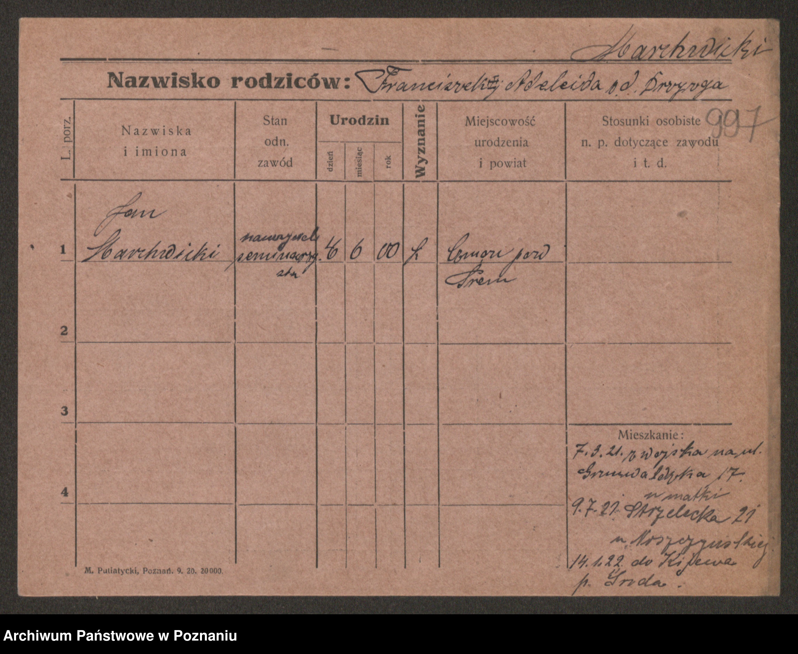 Podgląd karty osobowej dostępny jest po kliknięciu na nazwisko lub ikonkę karty. Można dokonywać powiększenia (ikony na górze) lub przechodzić między kolejnymi skanami (strzałki po bokach).