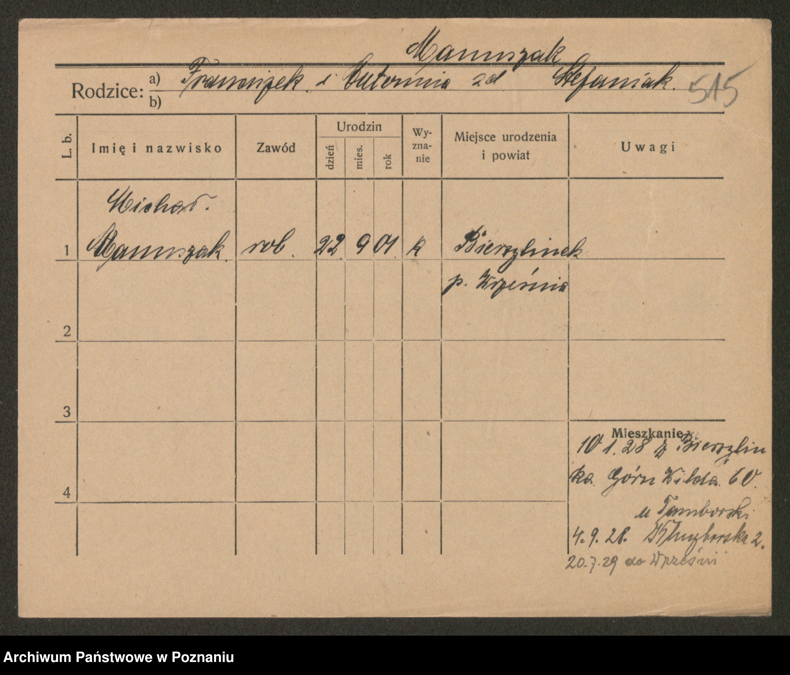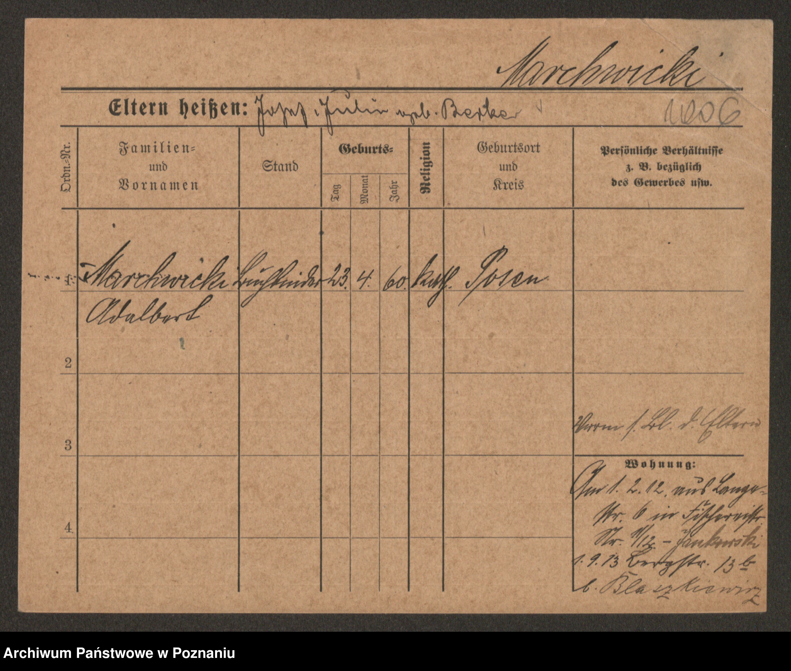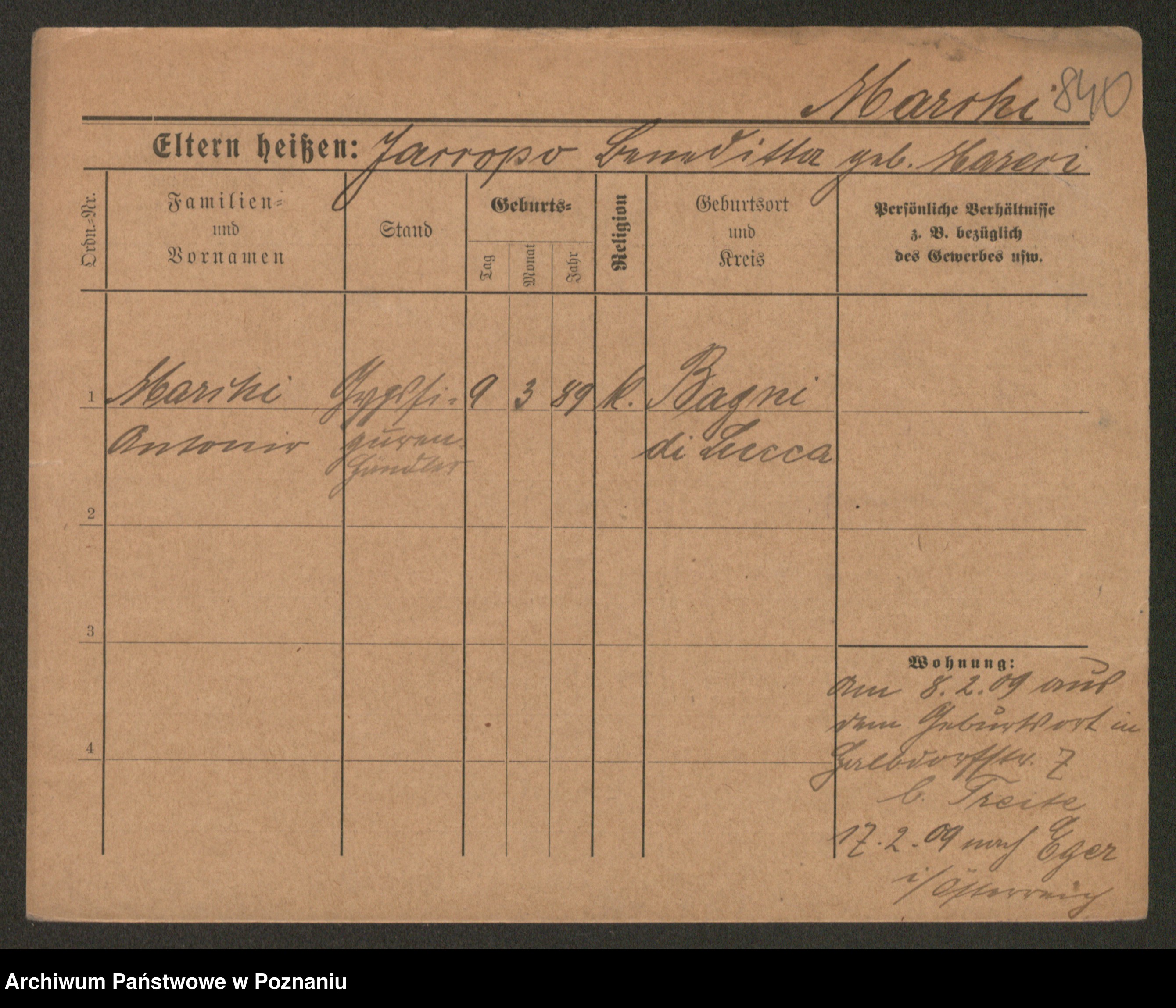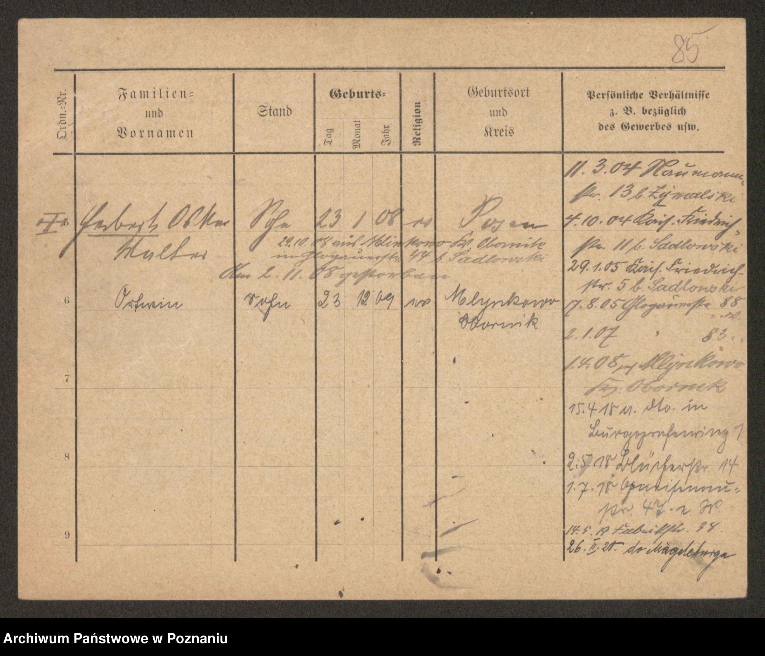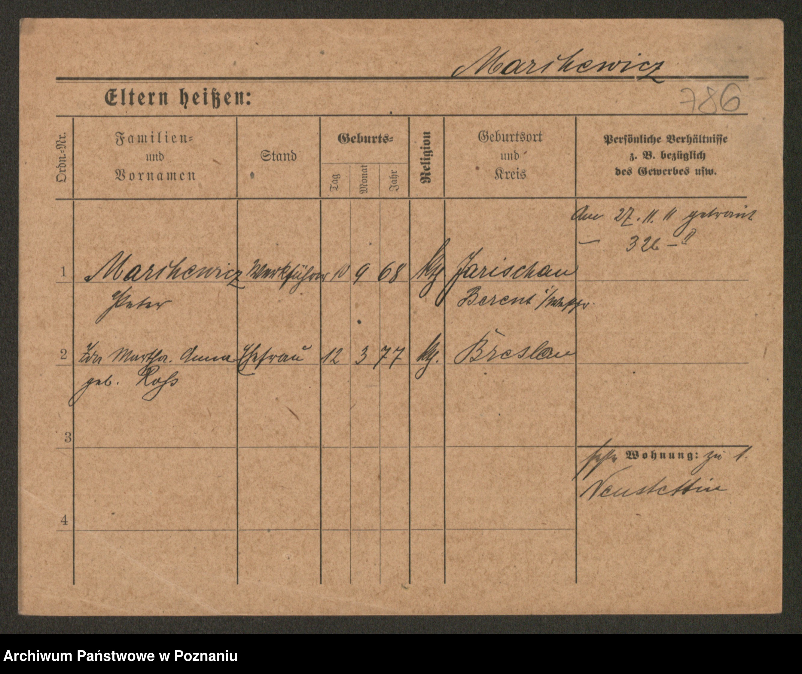 Podgląd karty osobowej dostępny jest po kliknięciu na nazwisko lub ikonkę karty. Można dokonywać powiększenia (ikony na górze) lub przechodzić między kolejnymi skanami (strzałki po bokach).