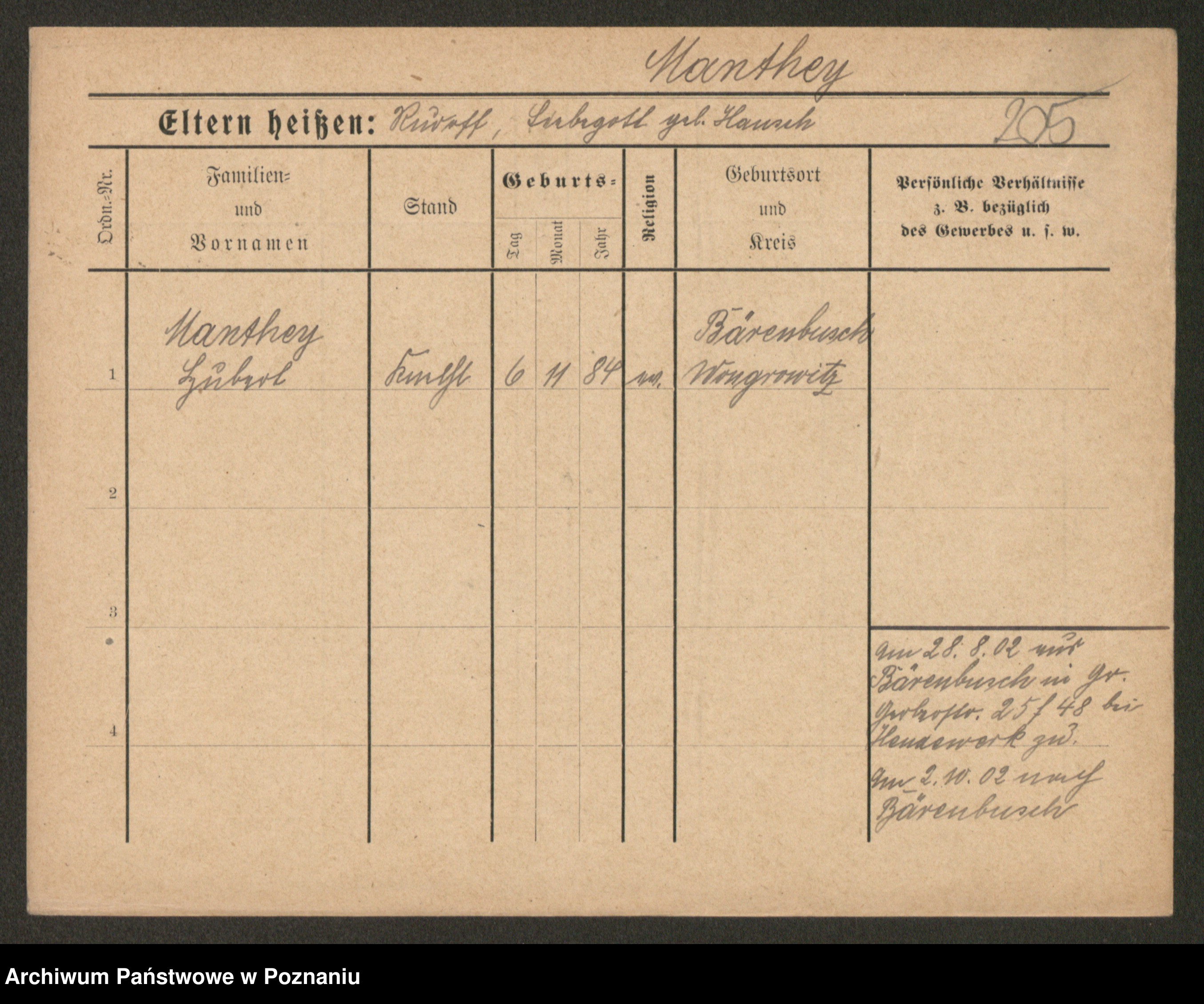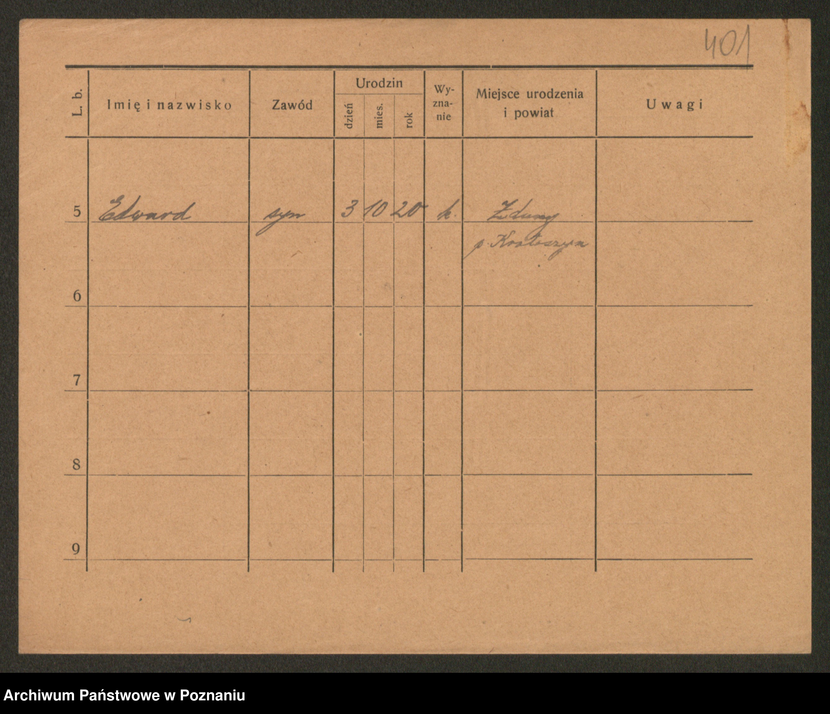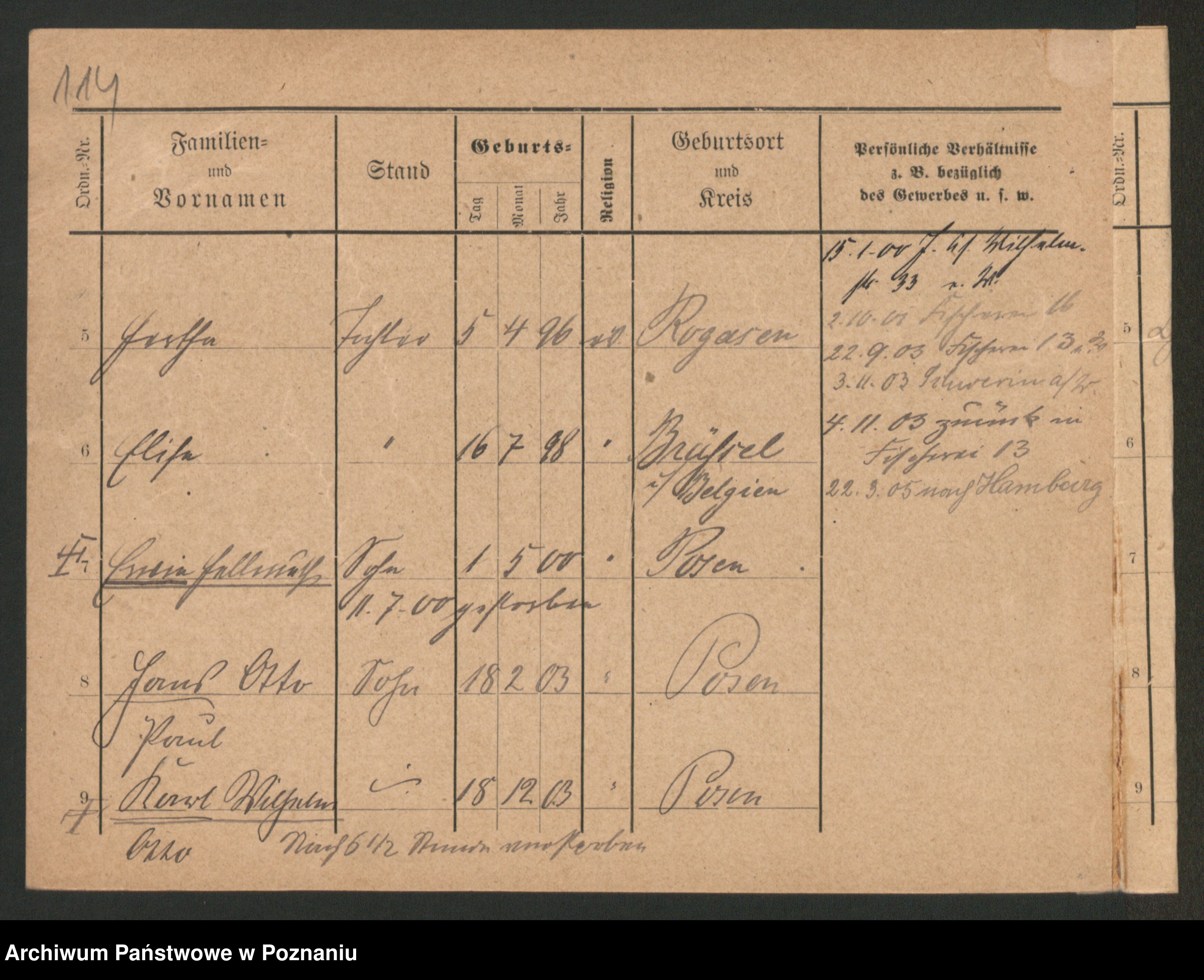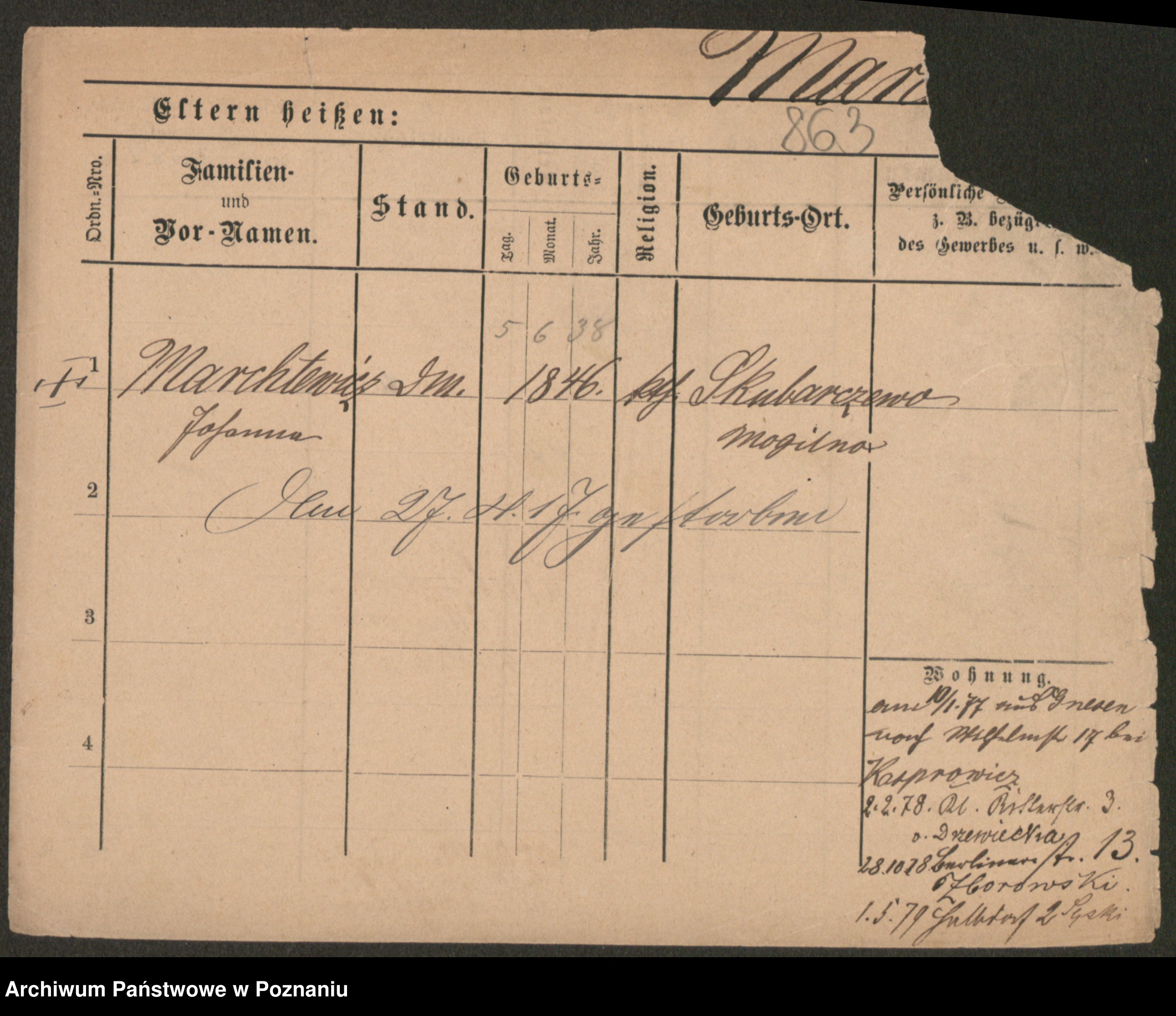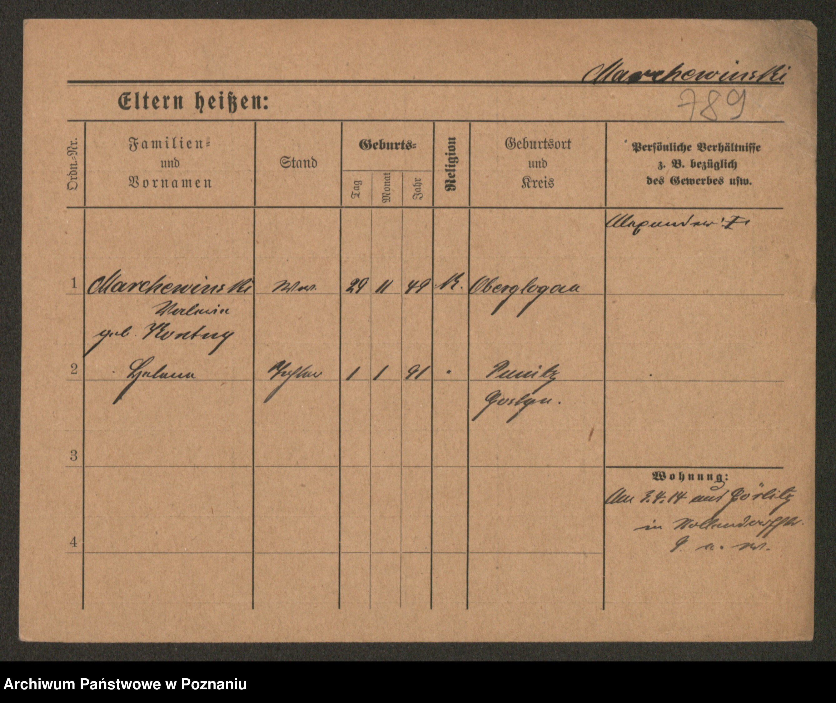 Podgląd karty osobowej dostępny jest po kliknięciu na nazwisko lub ikonkę karty. Można dokonywać powiększenia (ikony na górze) lub przechodzić między kolejnymi skanami (strzałki po bokach).