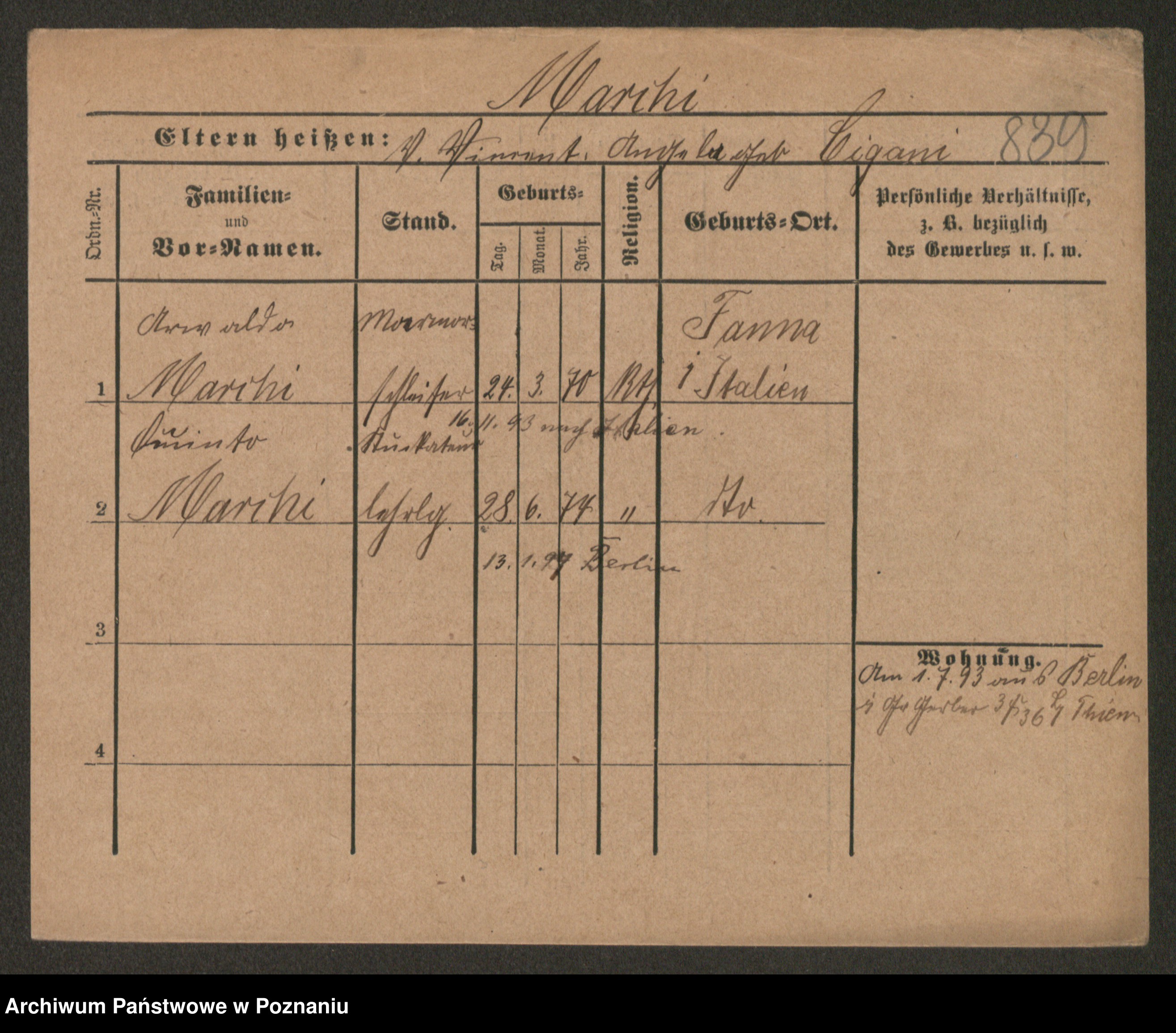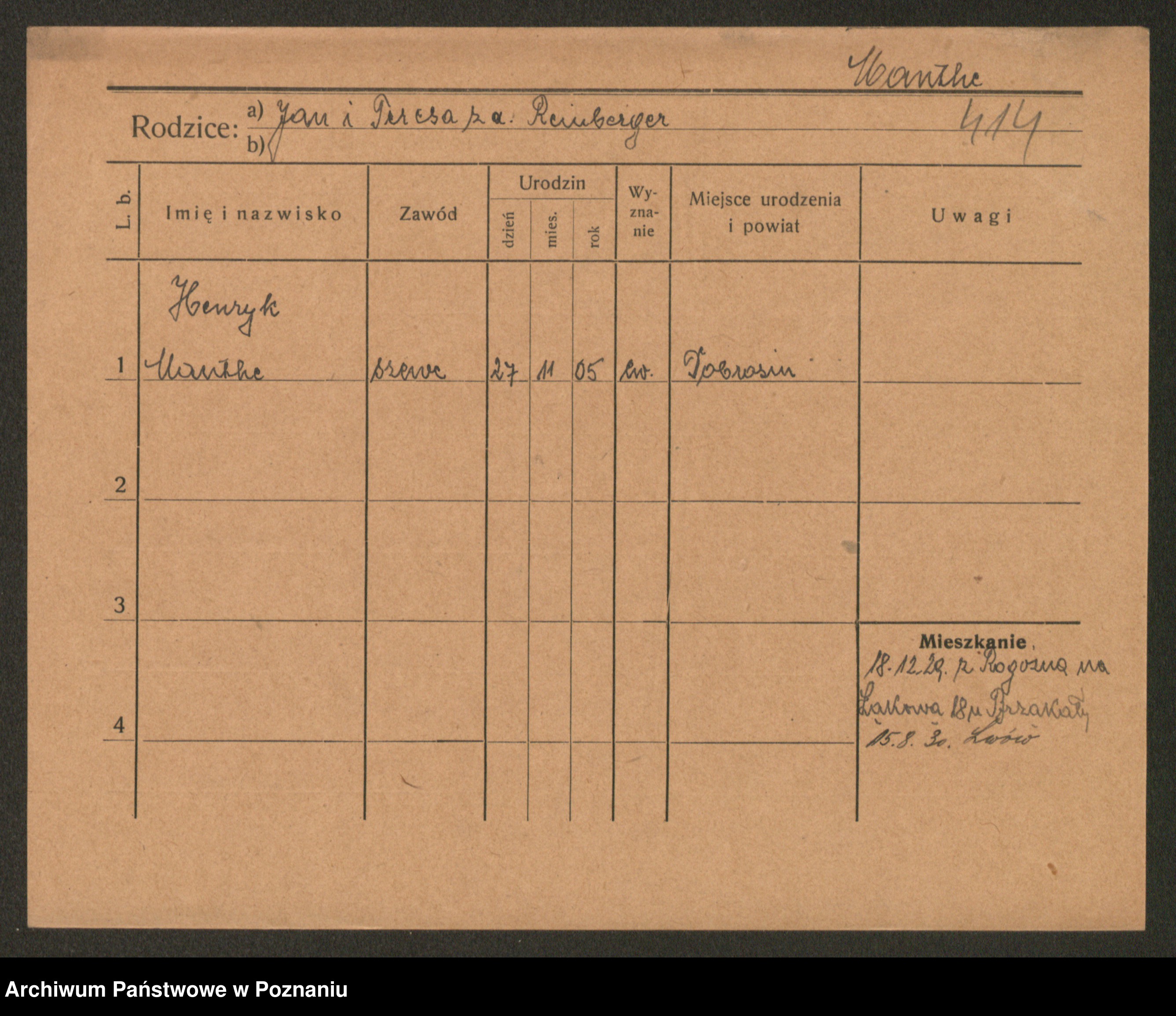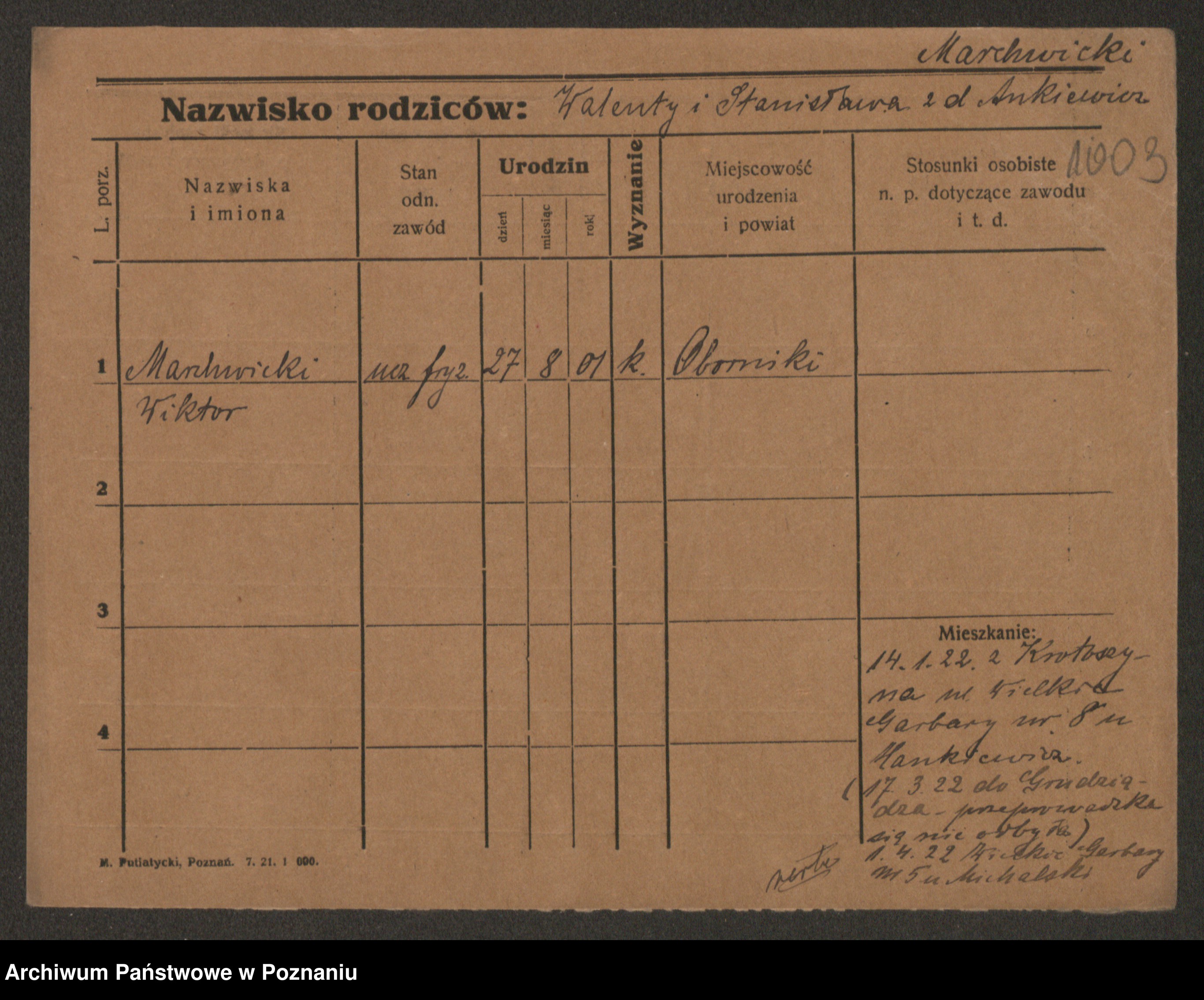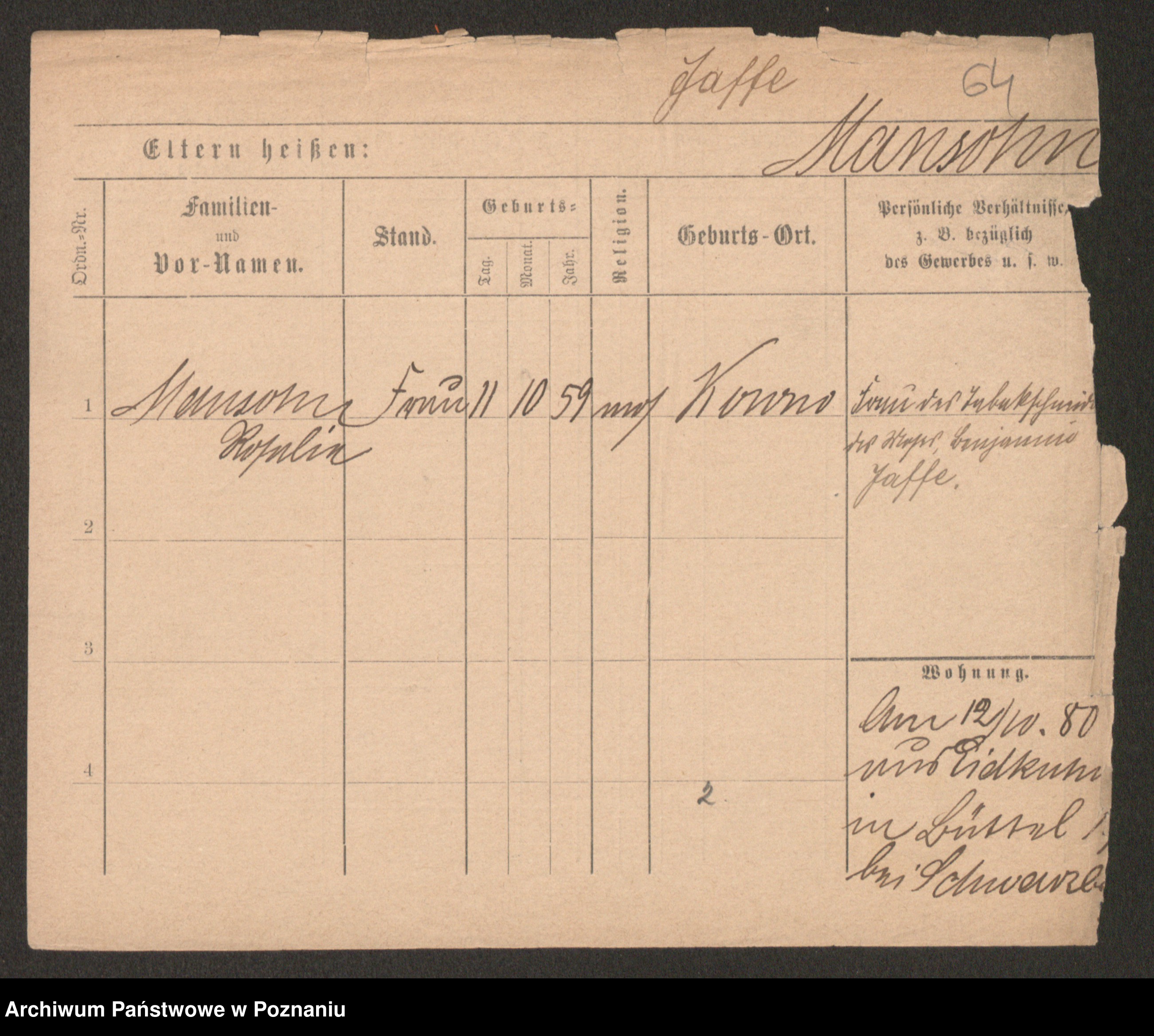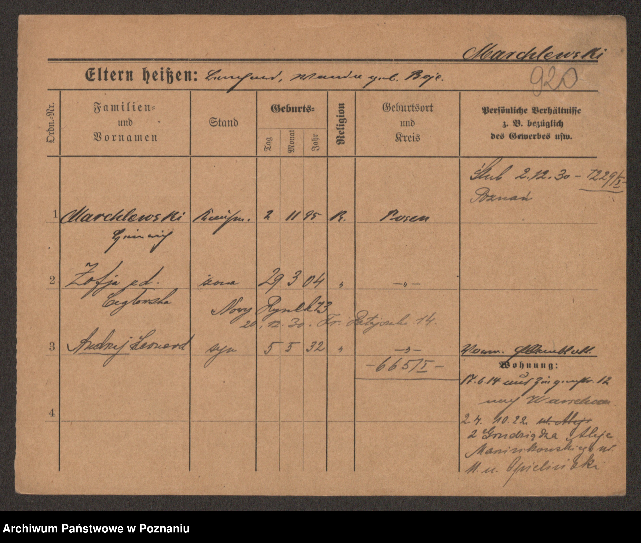 Podgląd karty osobowej dostępny jest po kliknięciu na nazwisko lub ikonkę karty. Można dokonywać powiększenia (ikony na górze) lub przechodzić między kolejnymi skanami (strzałki po bokach).