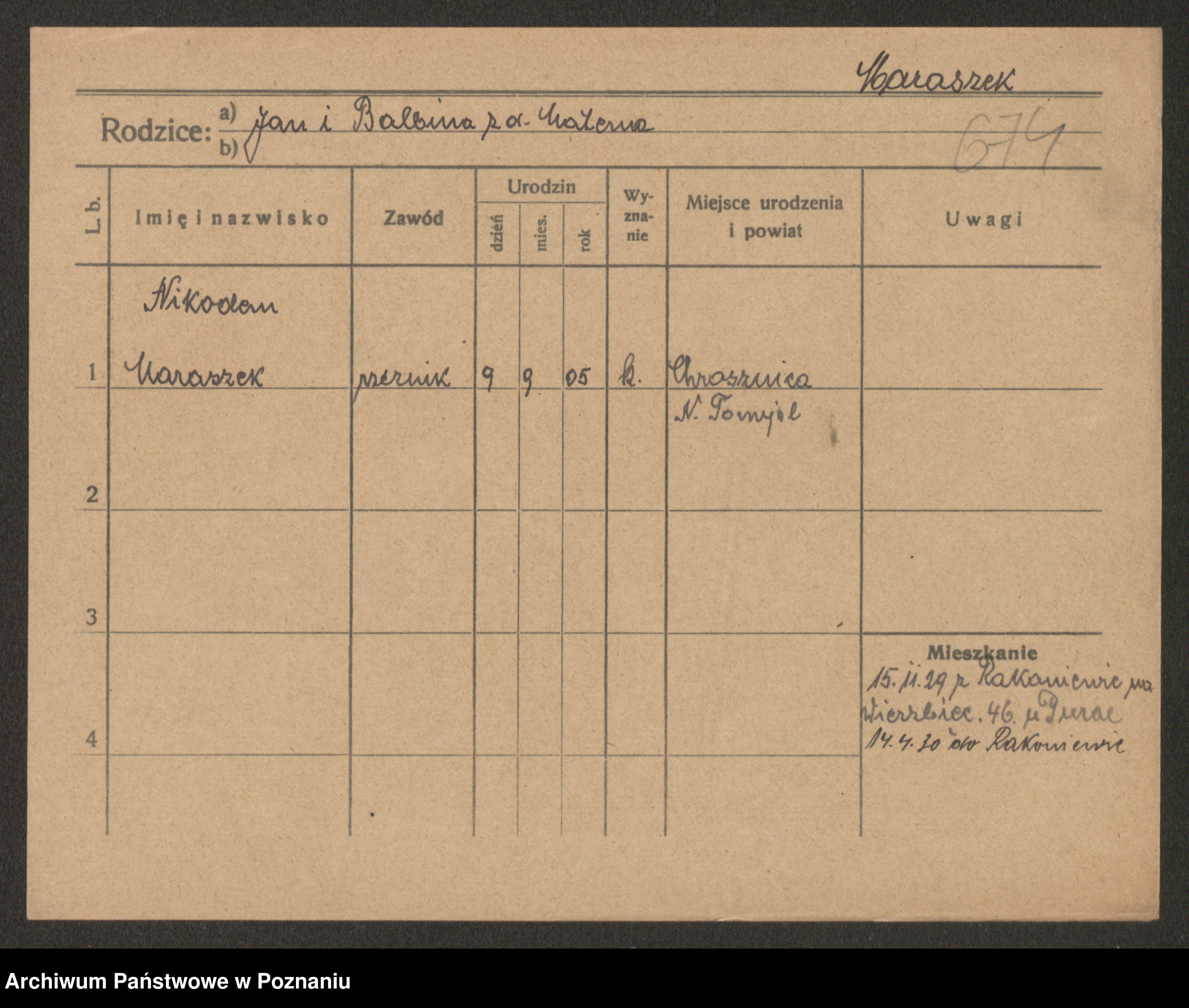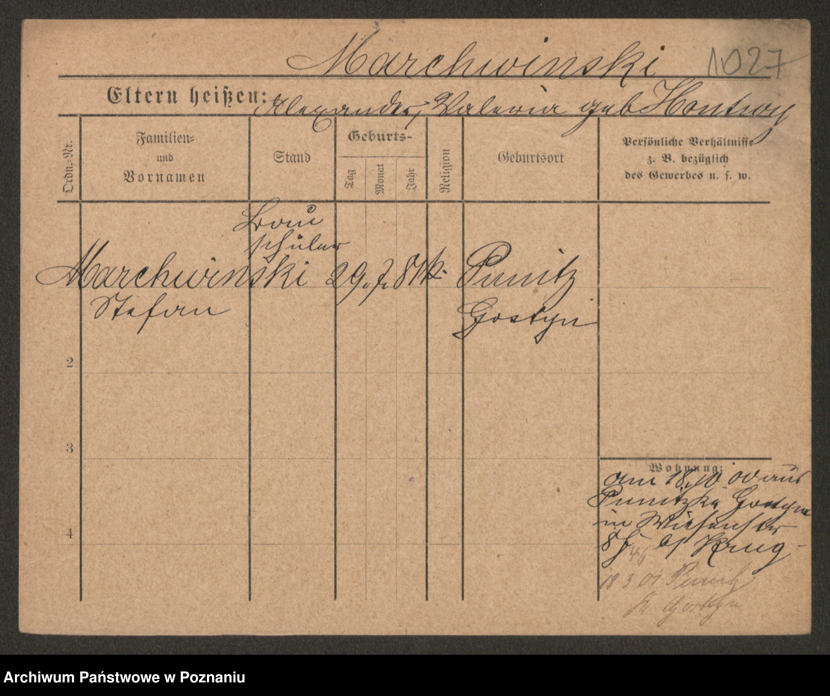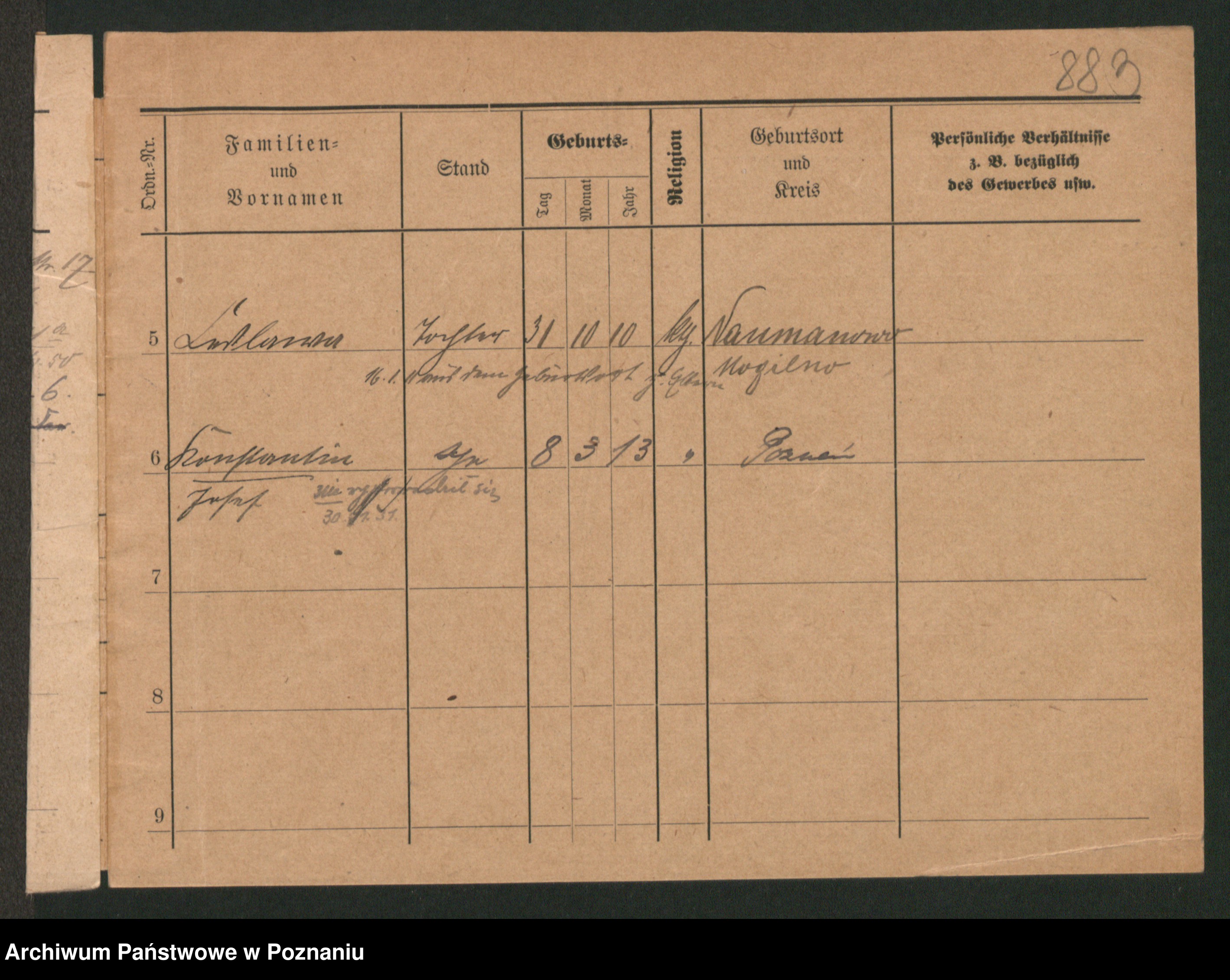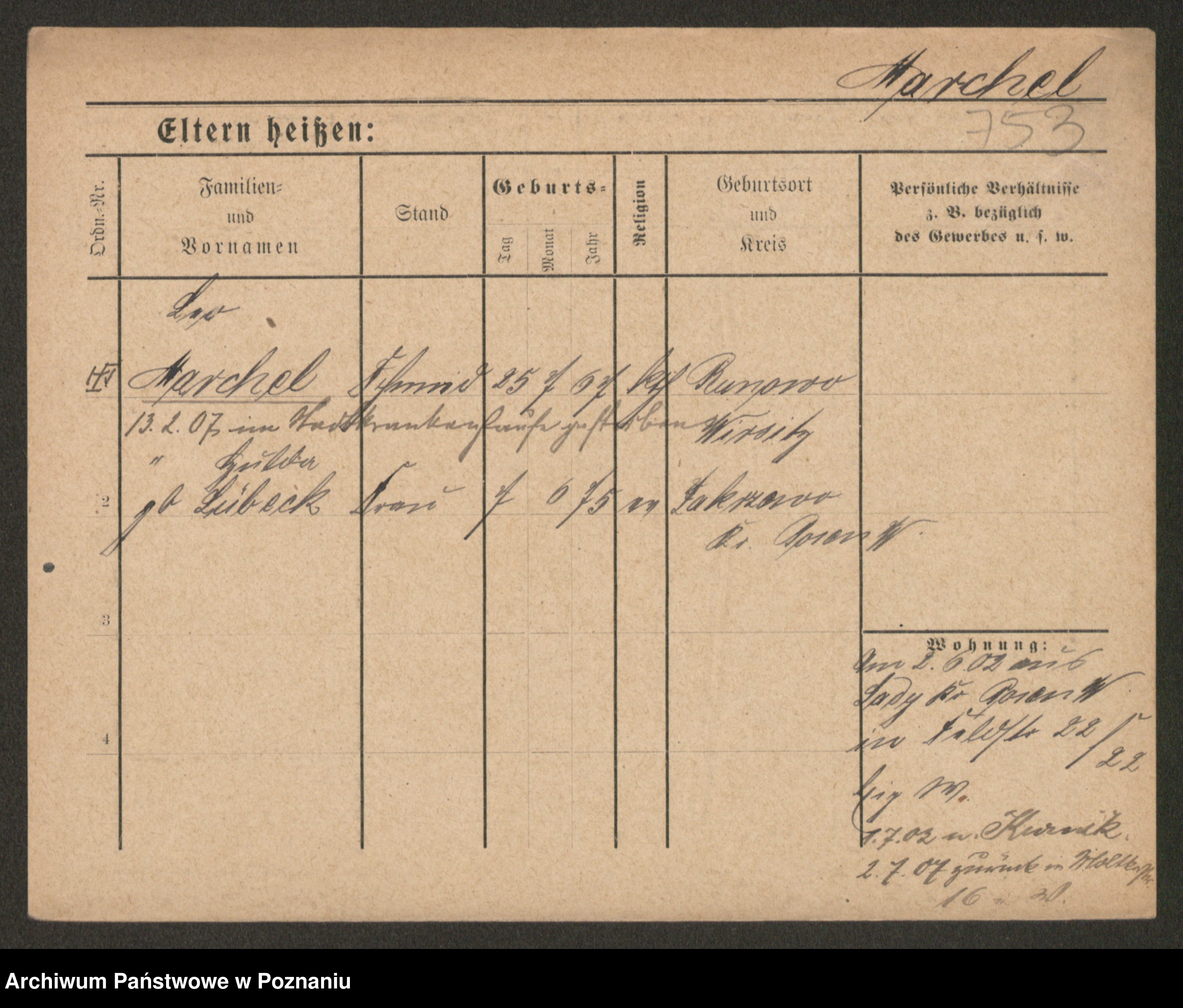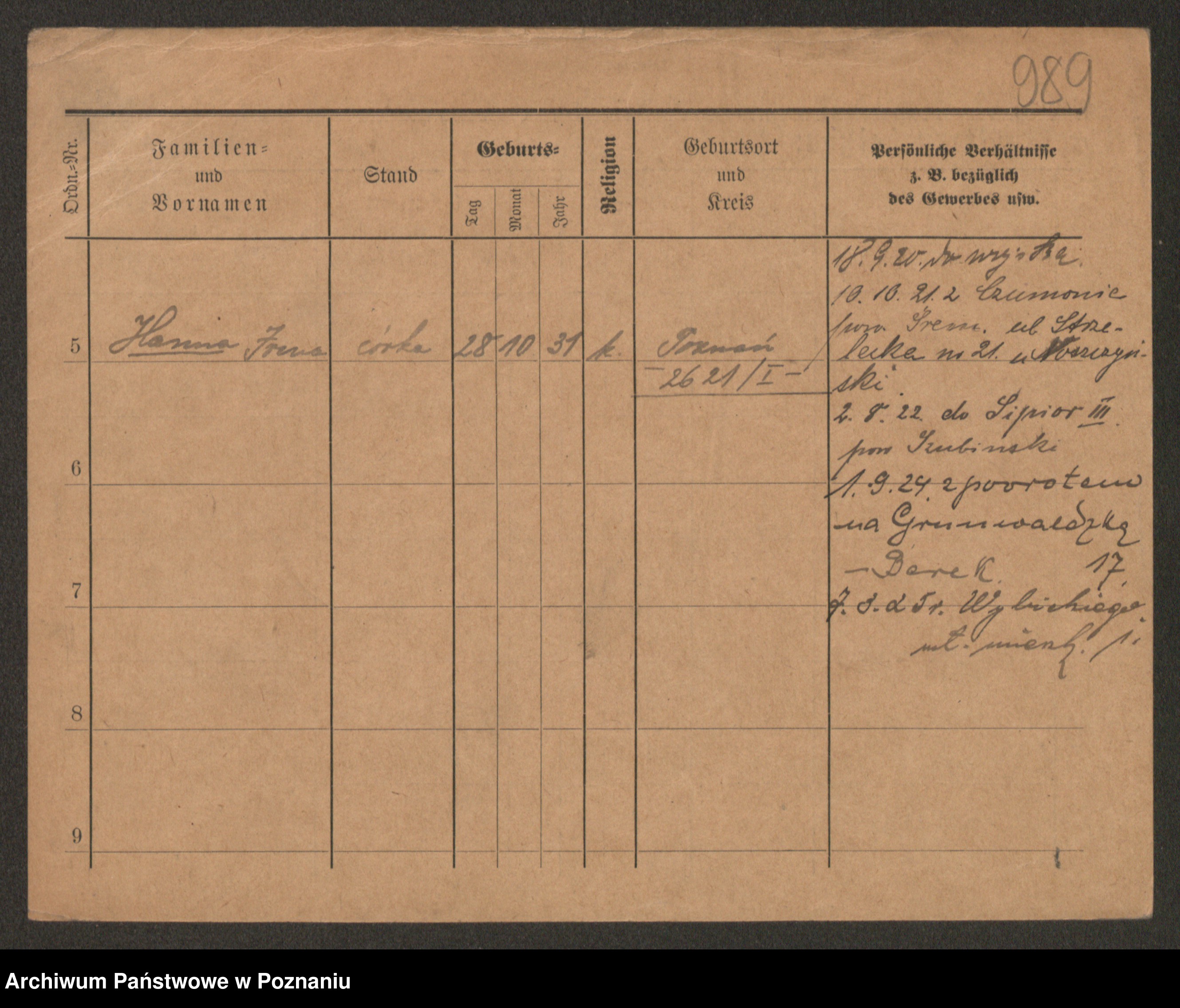 Podgląd karty osobowej dostępny jest po kliknięciu na nazwisko lub ikonkę karty. Można dokonywać powiększenia (ikony na górze) lub przechodzić między kolejnymi skanami (strzałki po bokach).