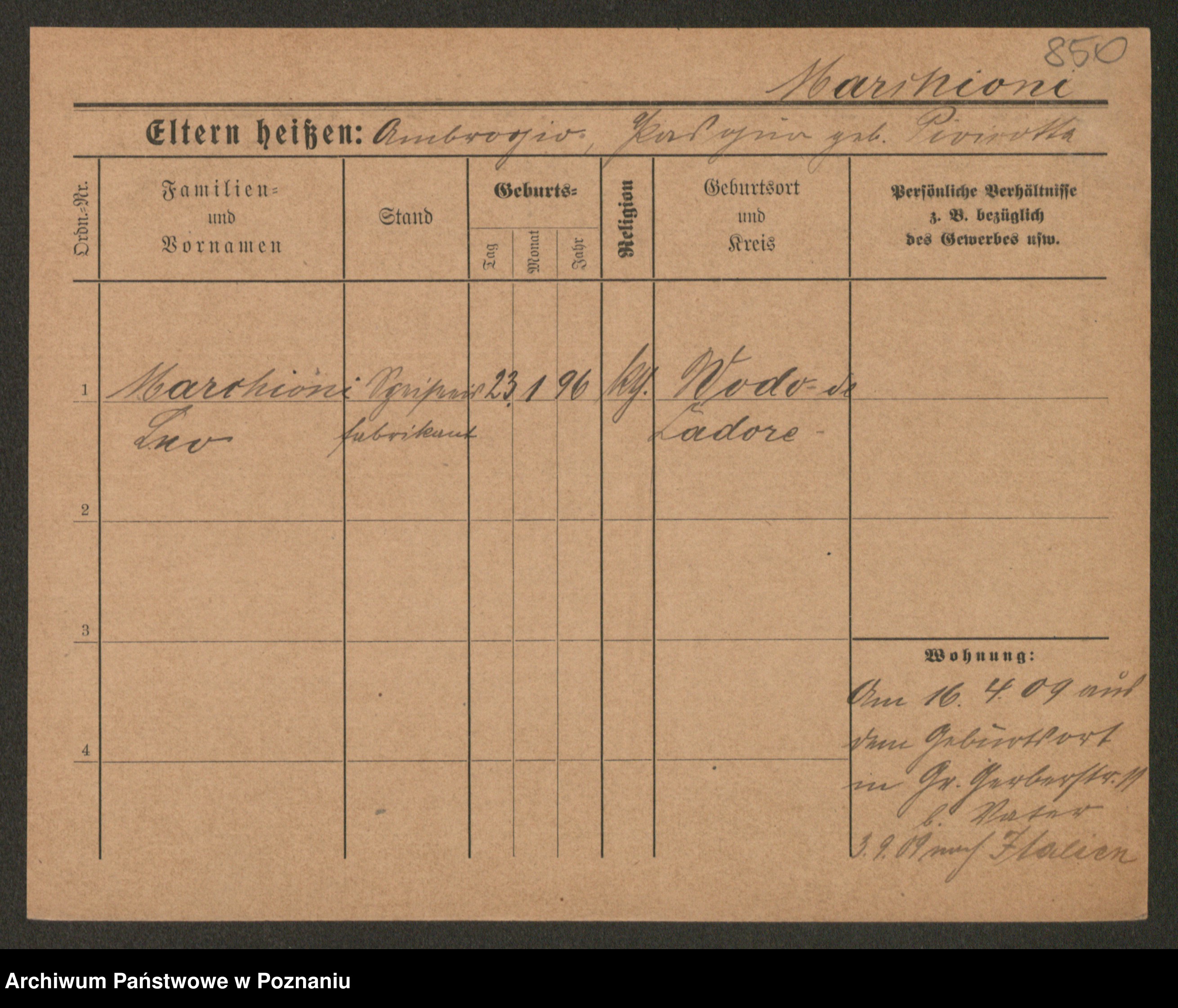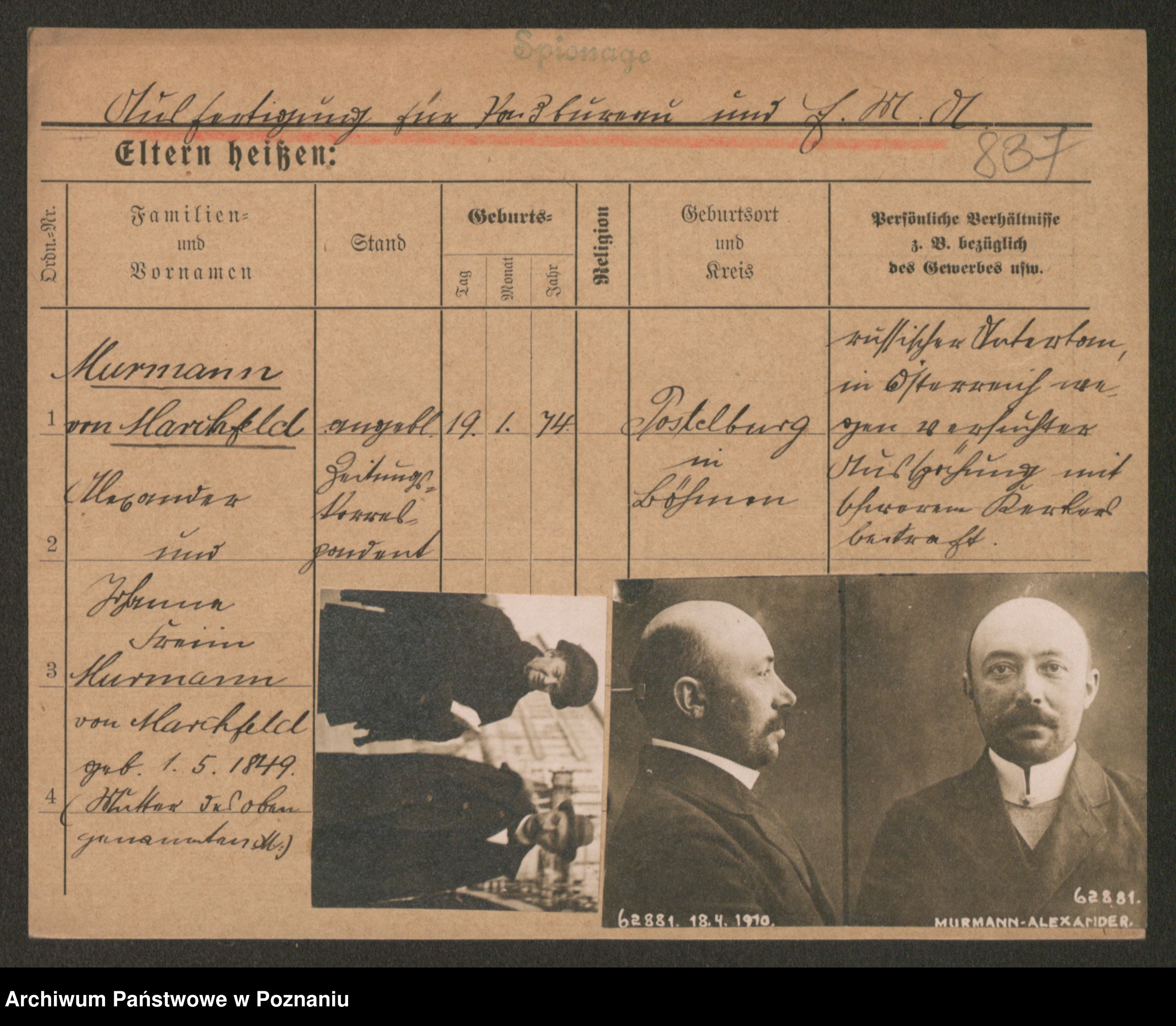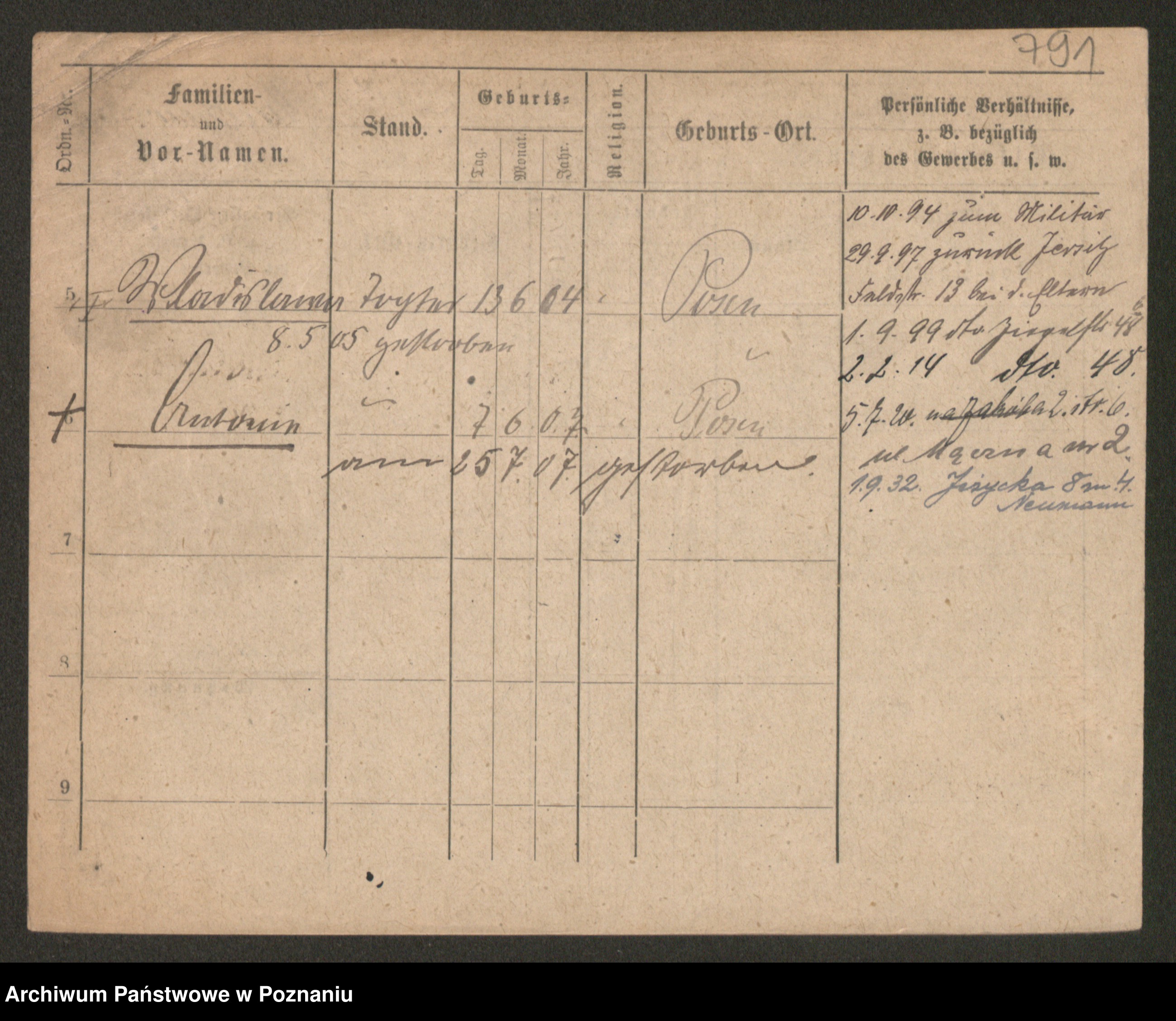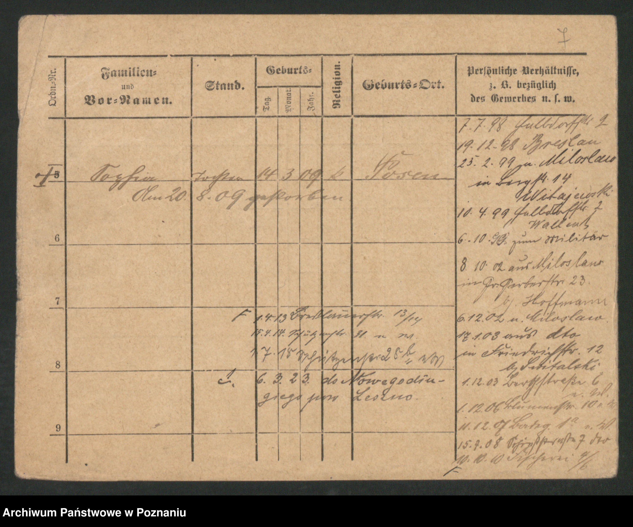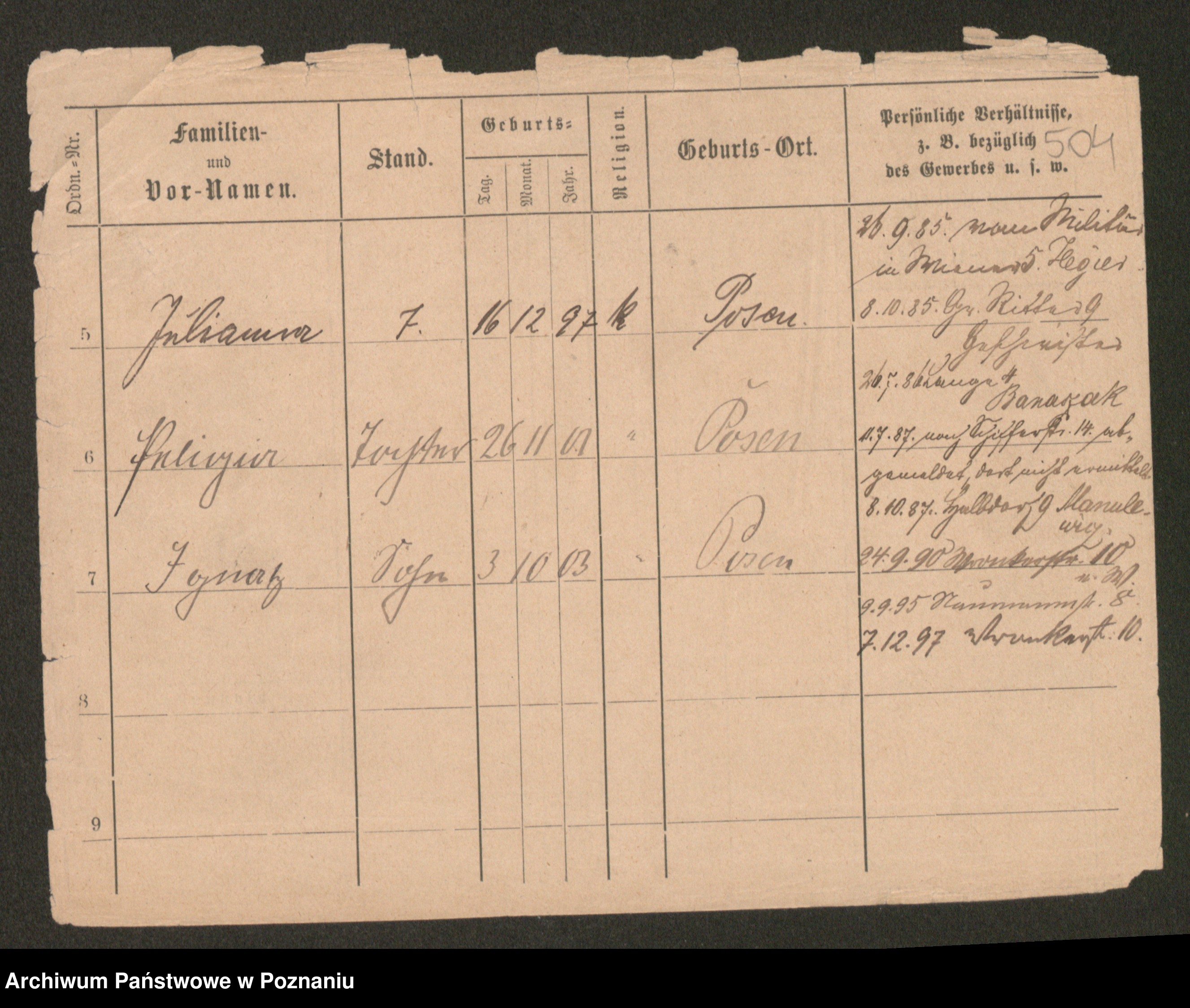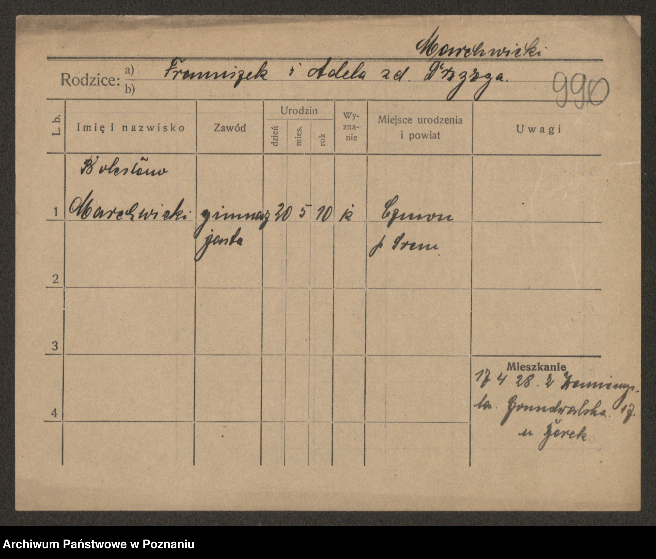 Podgląd karty osobowej dostępny jest po kliknięciu na nazwisko lub ikonkę karty. Można dokonywać powiększenia (ikony na górze) lub przechodzić między kolejnymi skanami (strzałki po bokach).