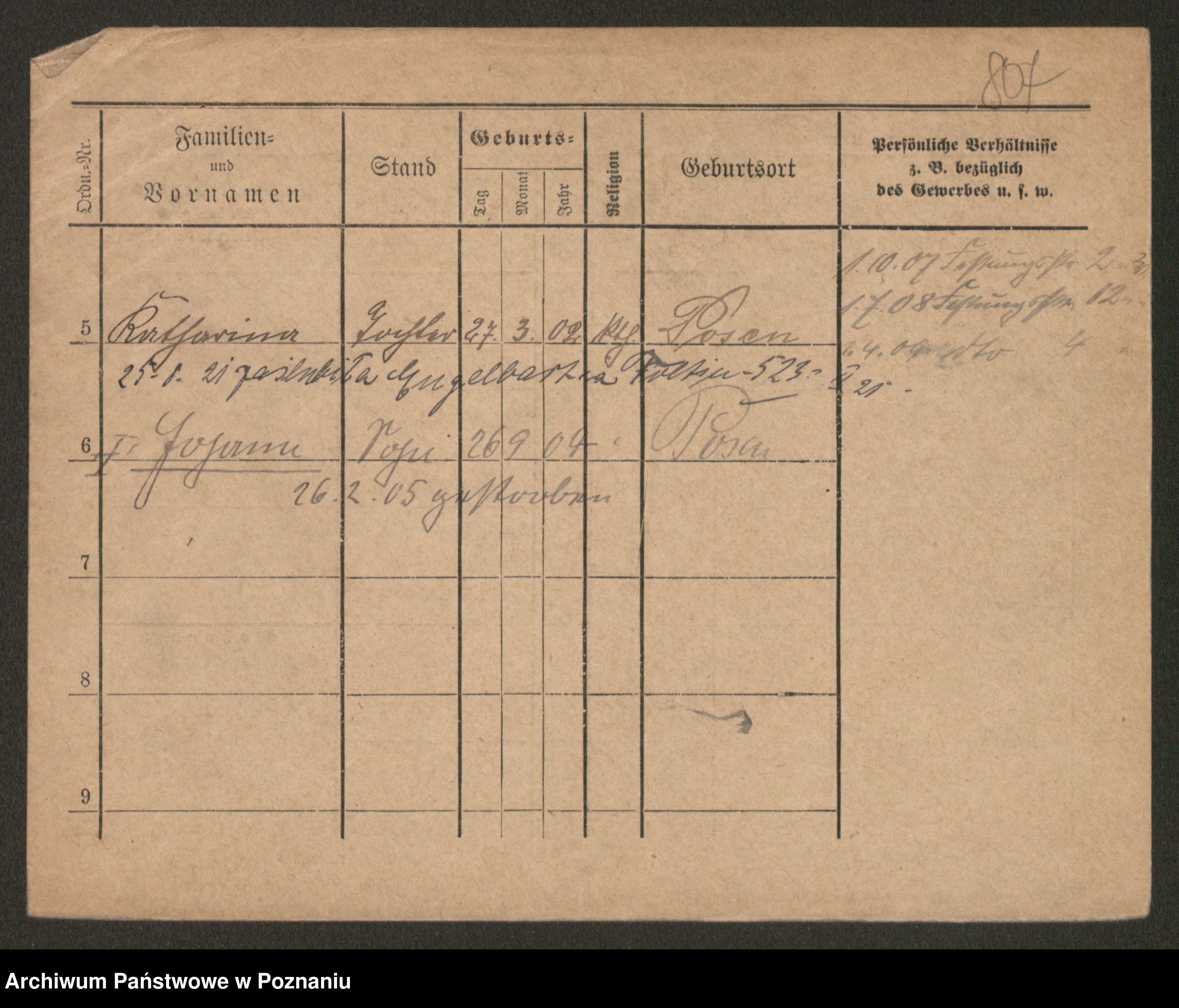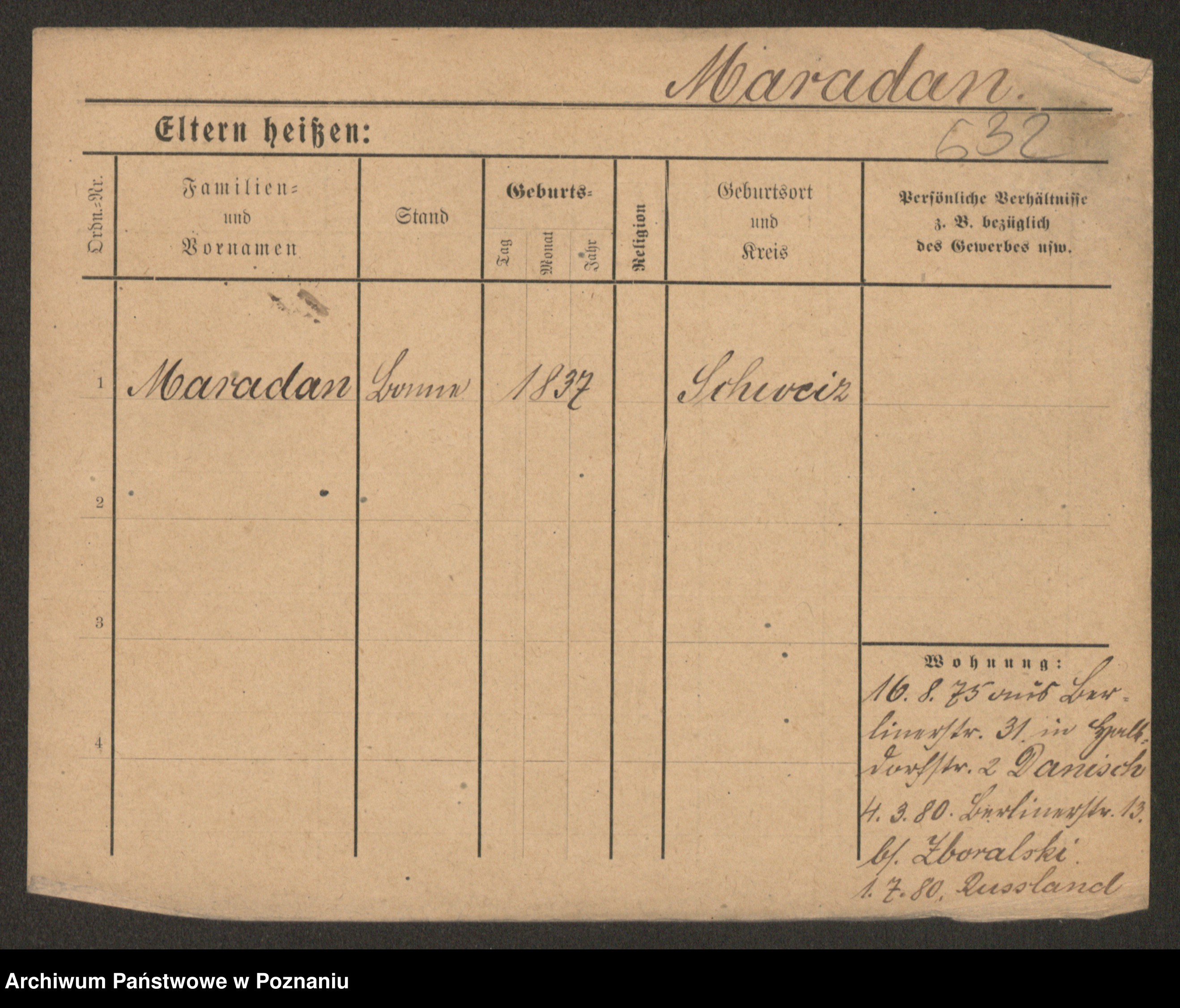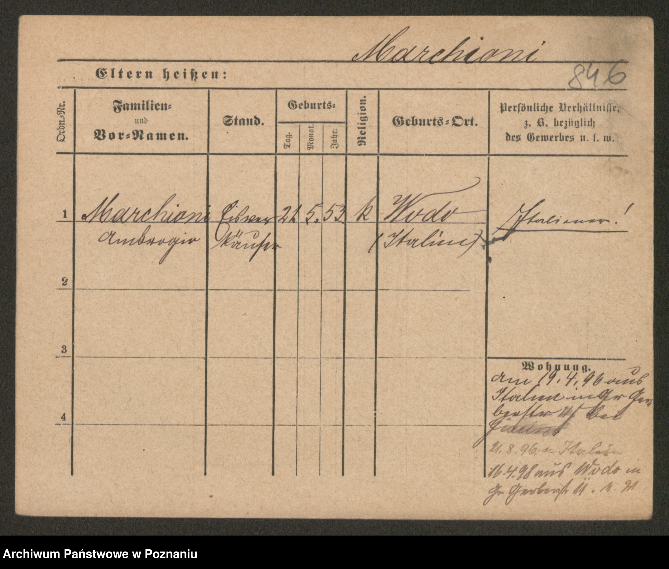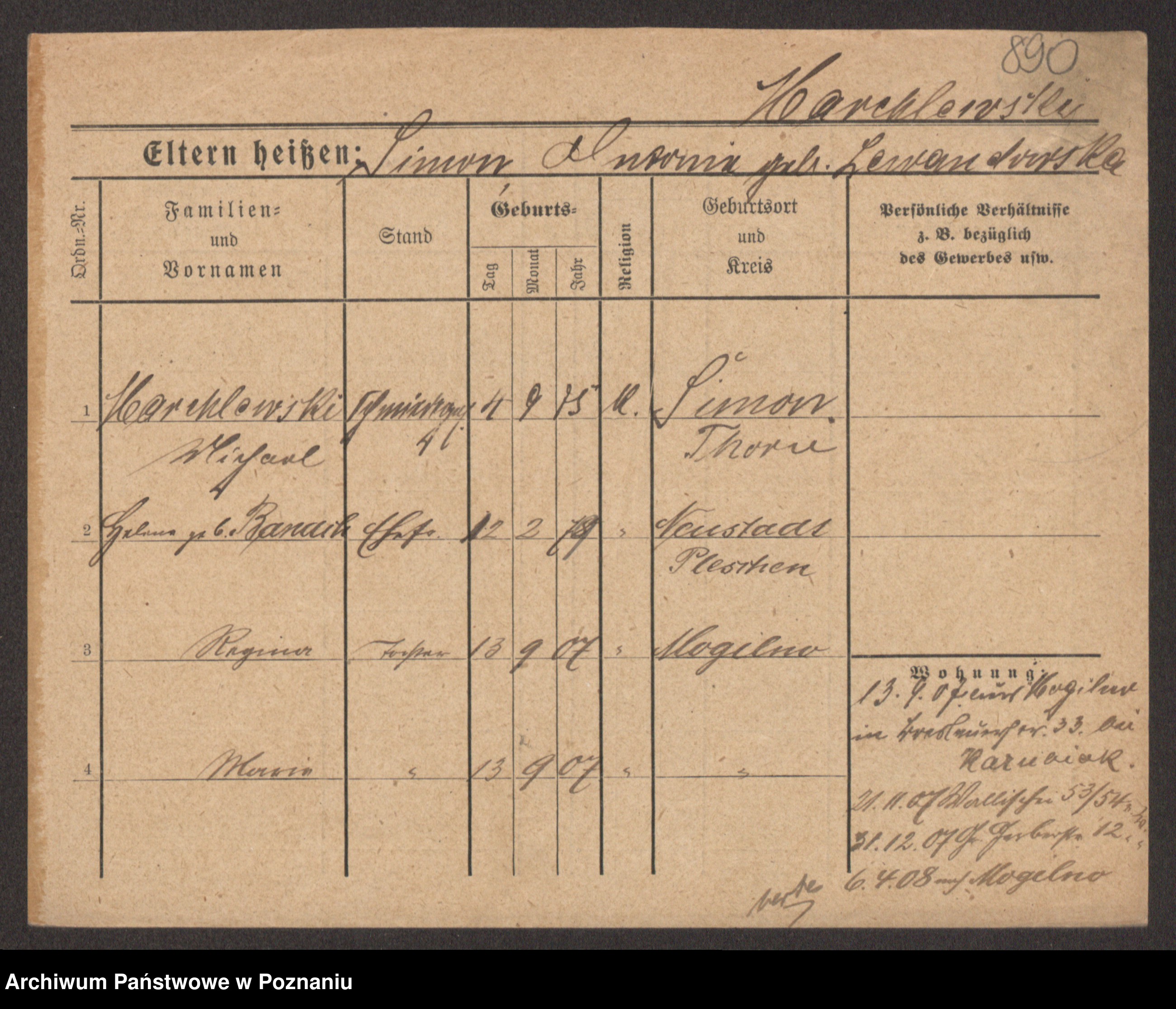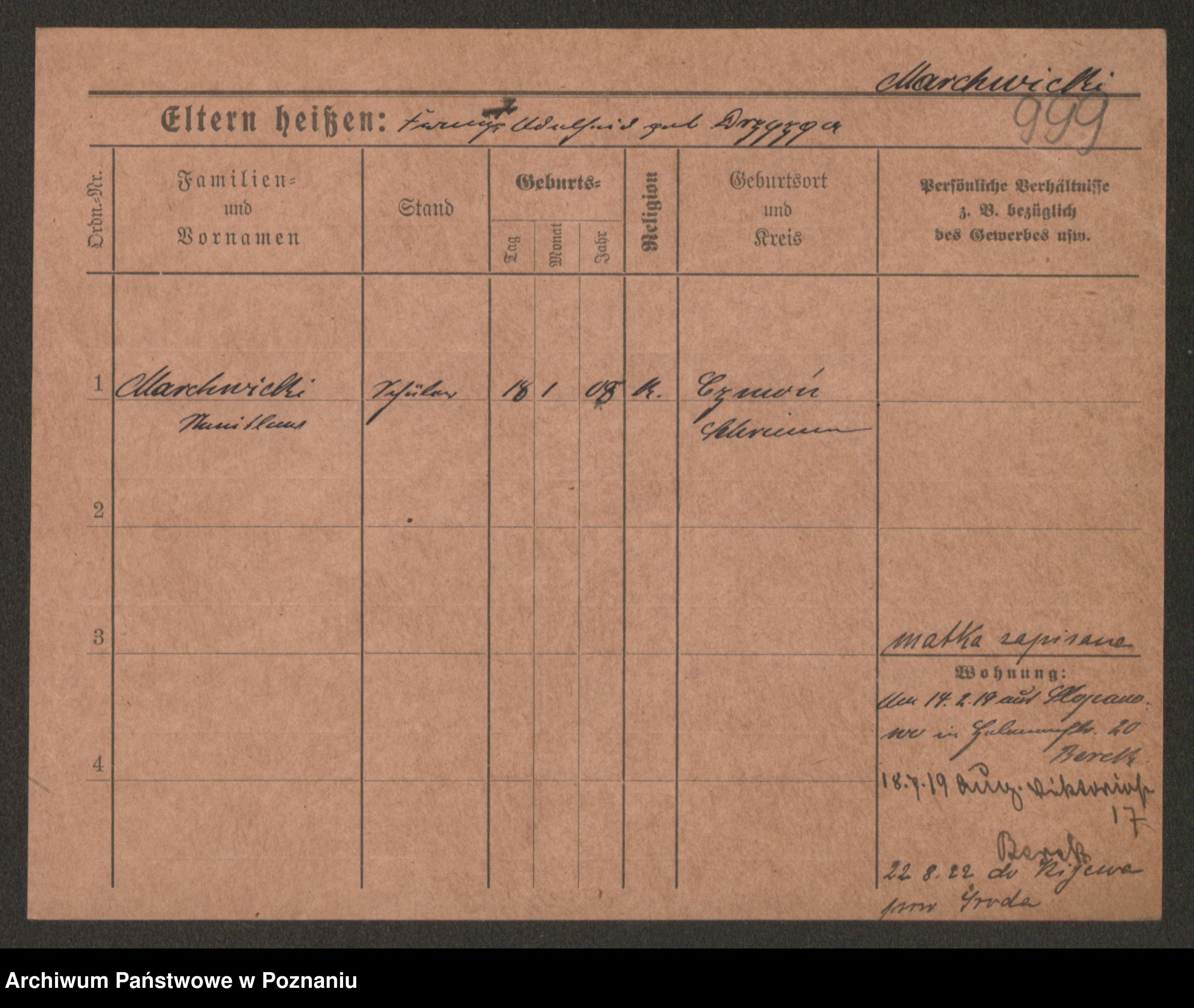 Podgląd karty osobowej dostępny jest po kliknięciu na nazwisko lub ikonkę karty. Można dokonywać powiększenia (ikony na górze) lub przechodzić między kolejnymi skanami (strzałki po bokach).