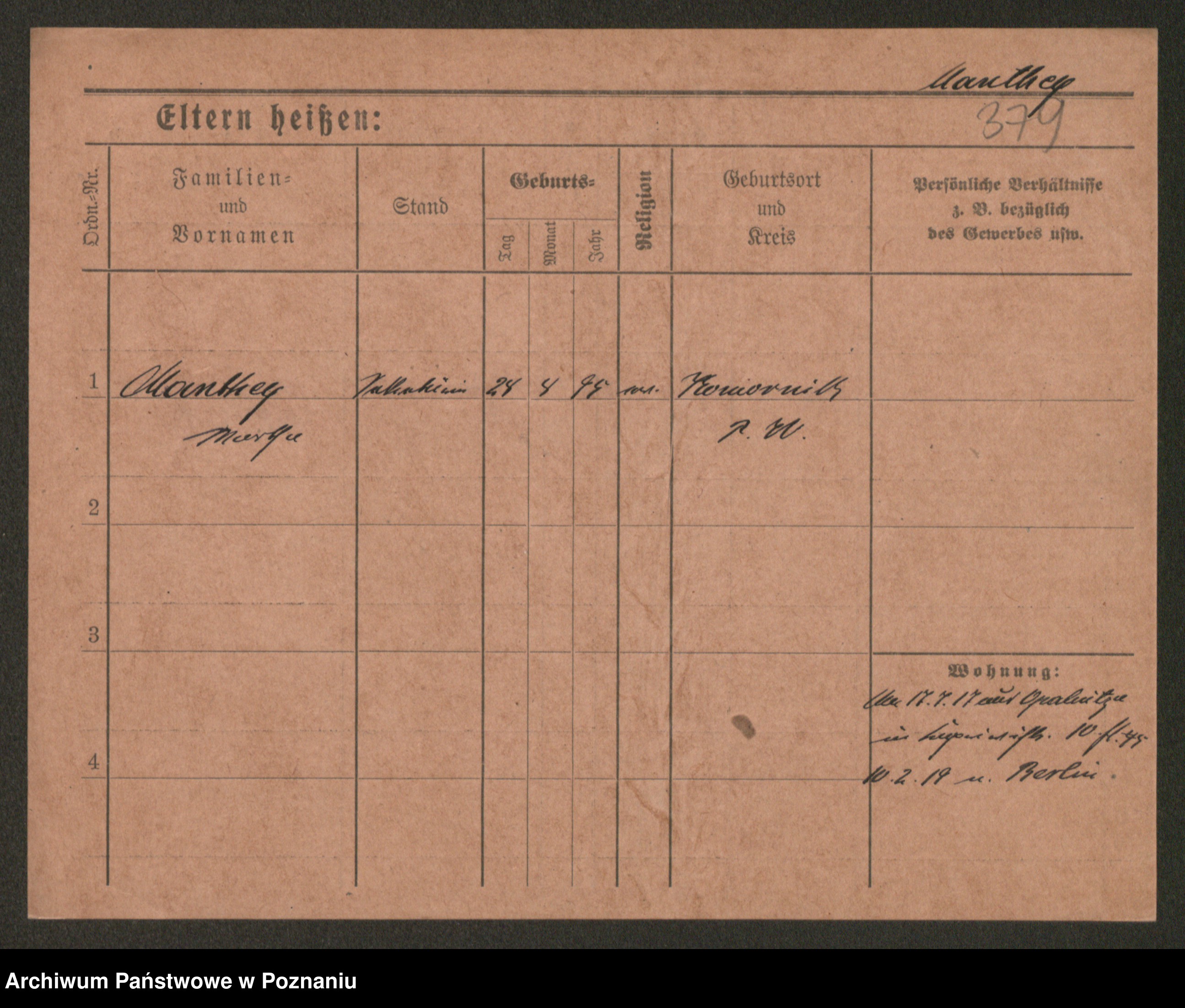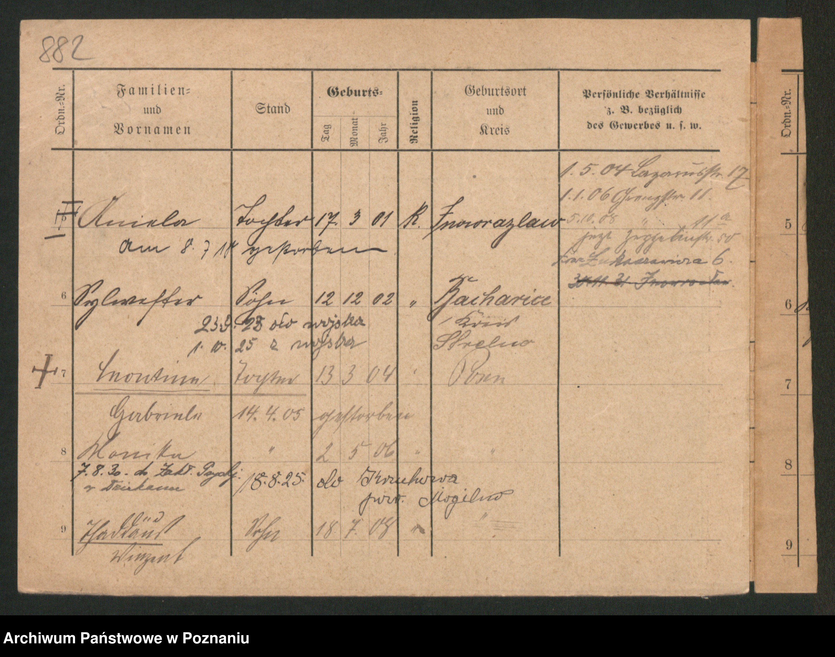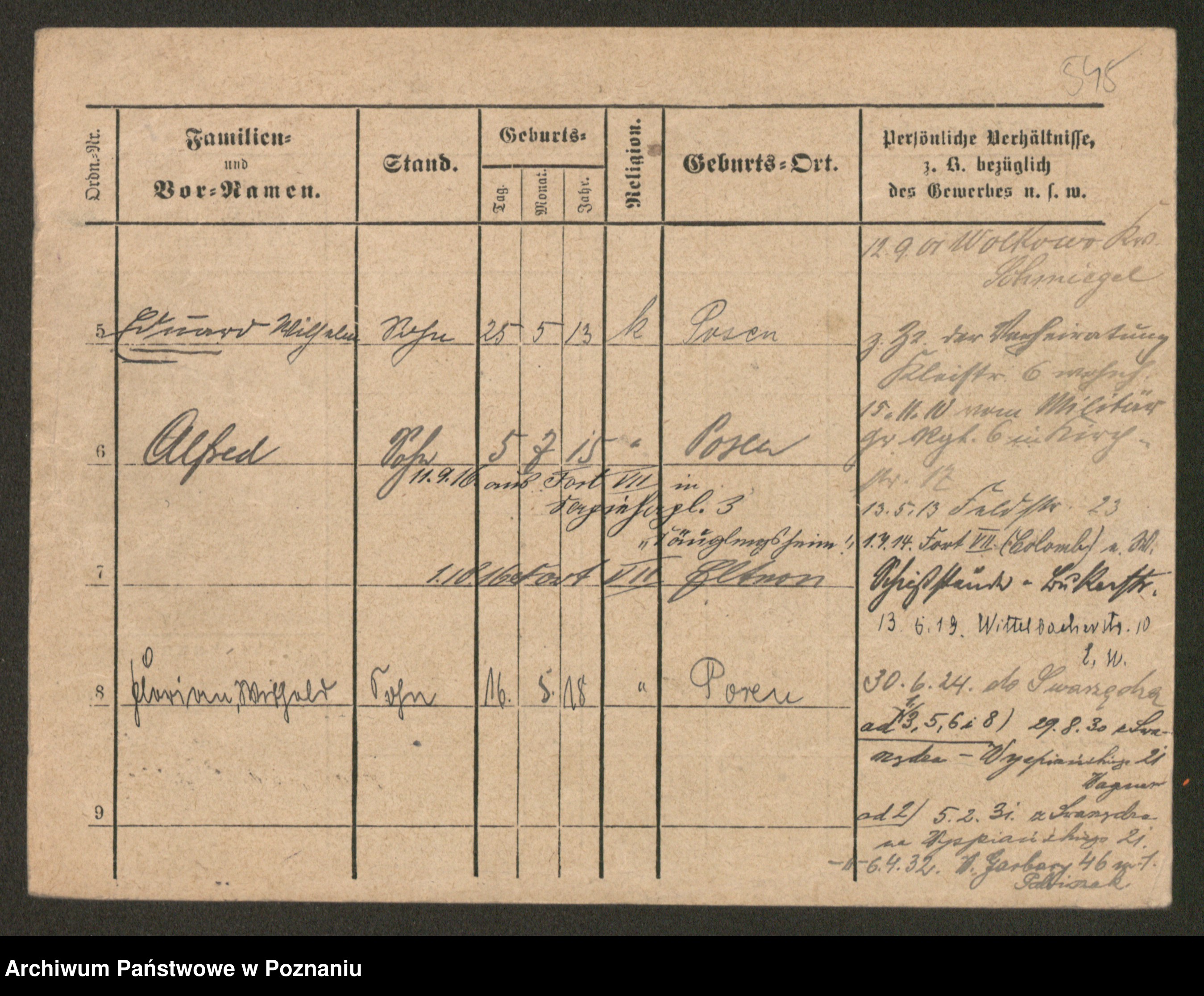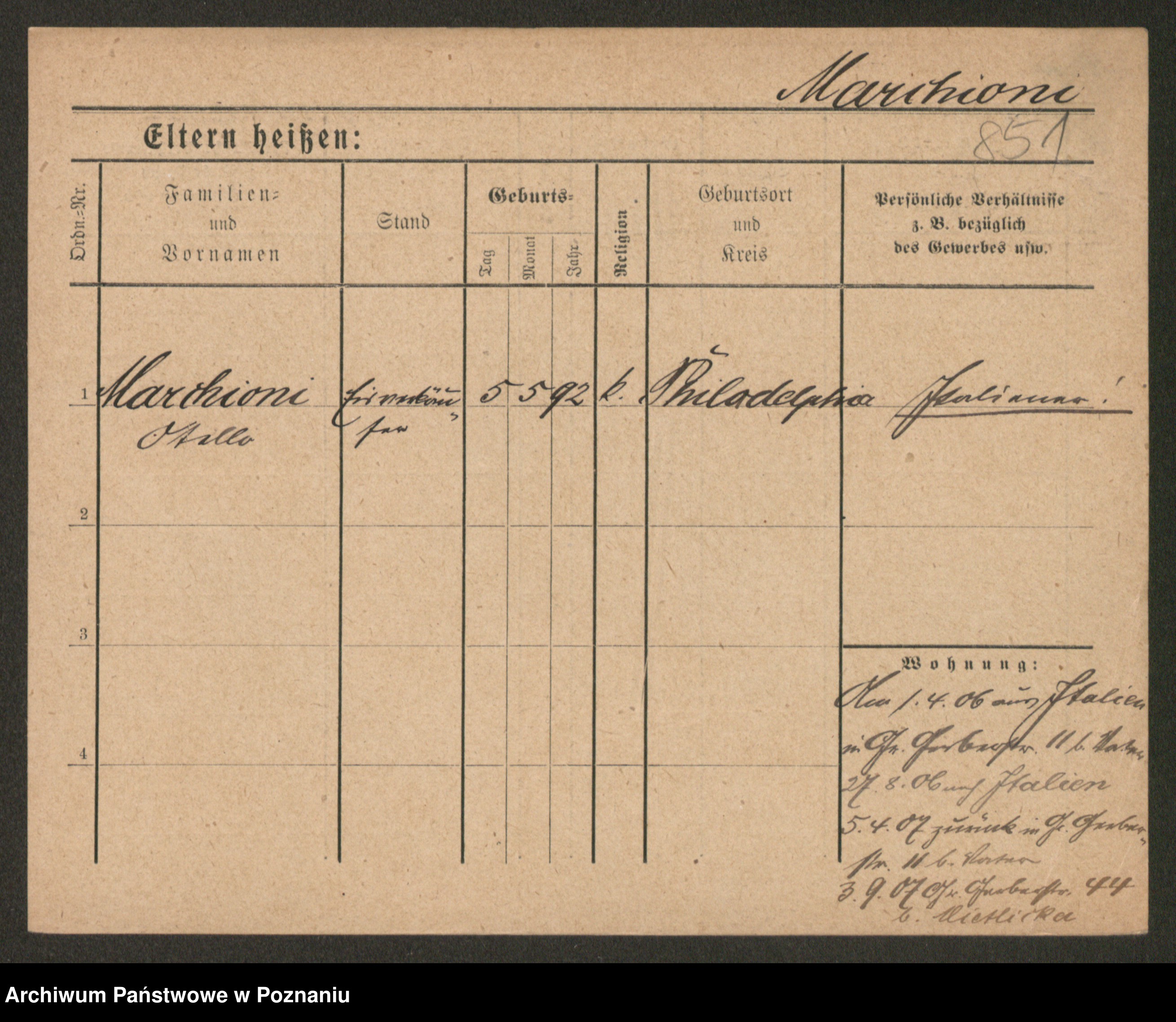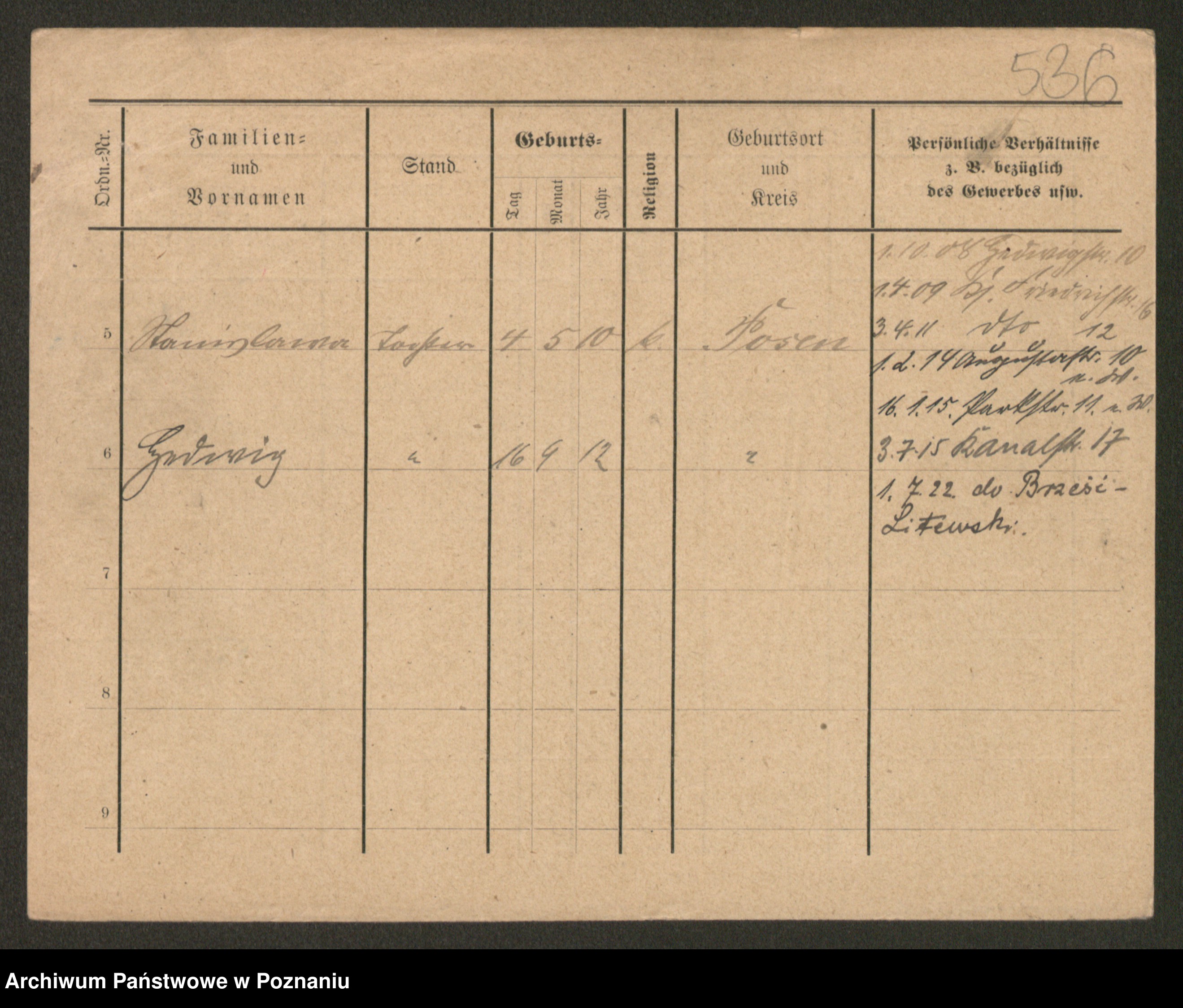 Podgląd karty osobowej dostępny jest po kliknięciu na nazwisko lub ikonkę karty. Można dokonywać powiększenia (ikony na górze) lub przechodzić między kolejnymi skanami (strzałki po bokach).