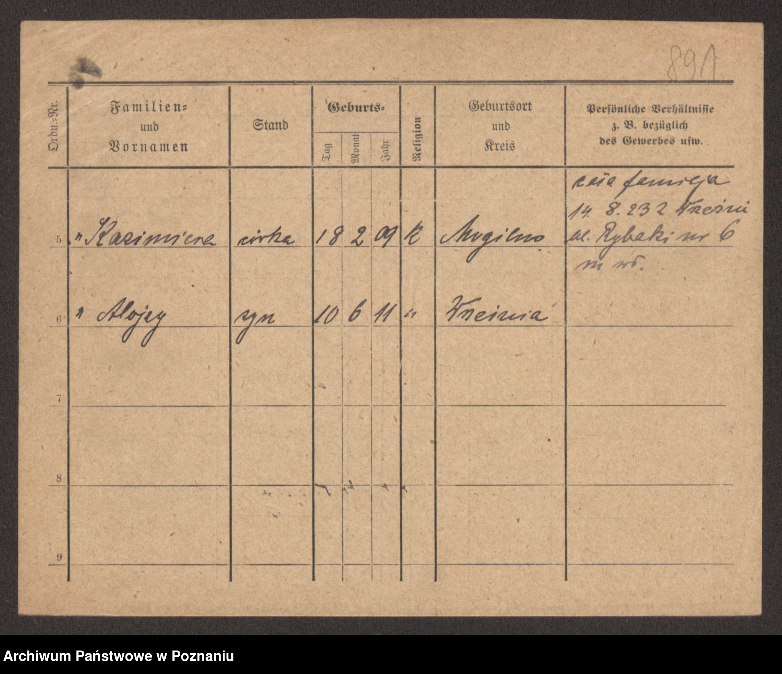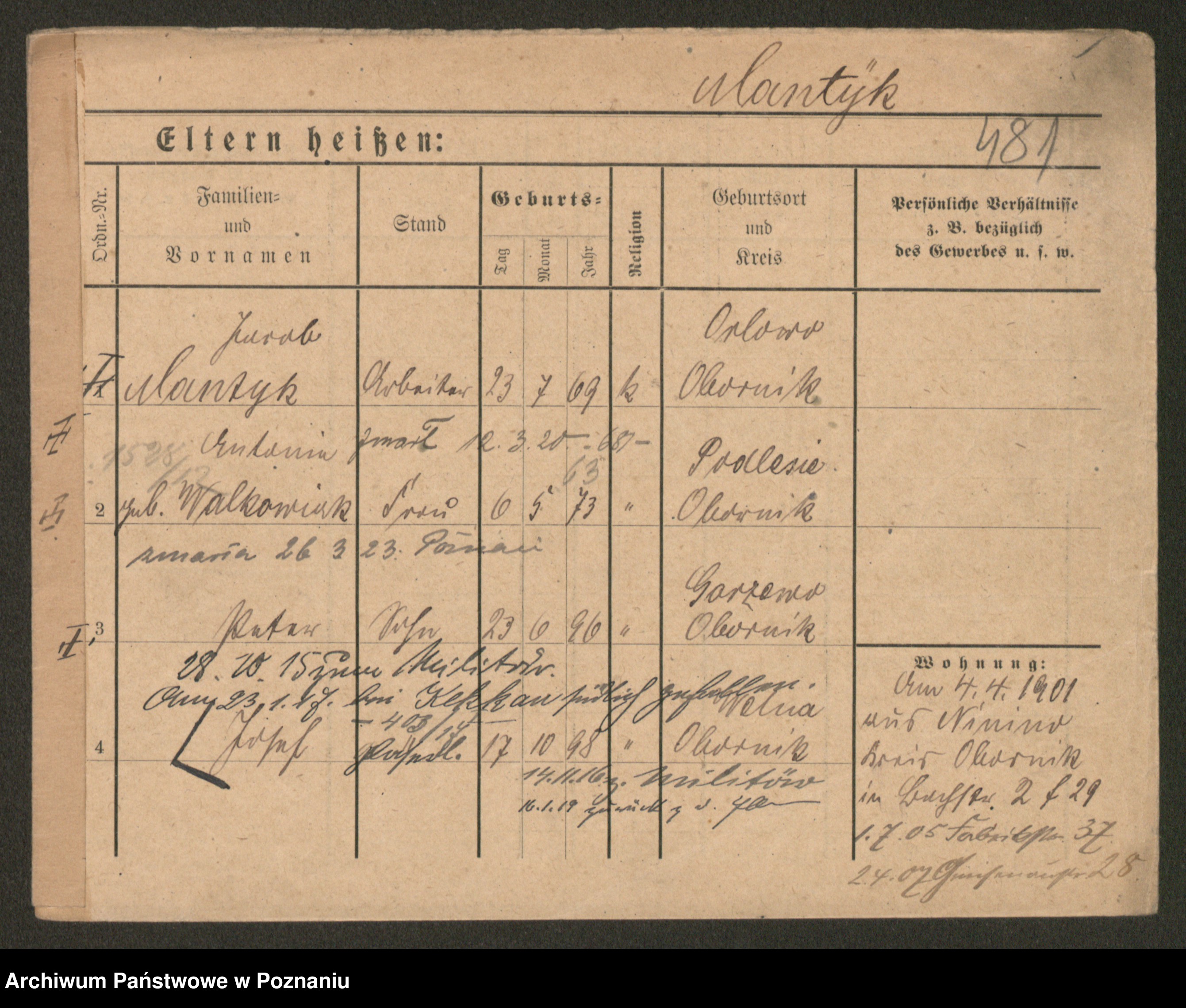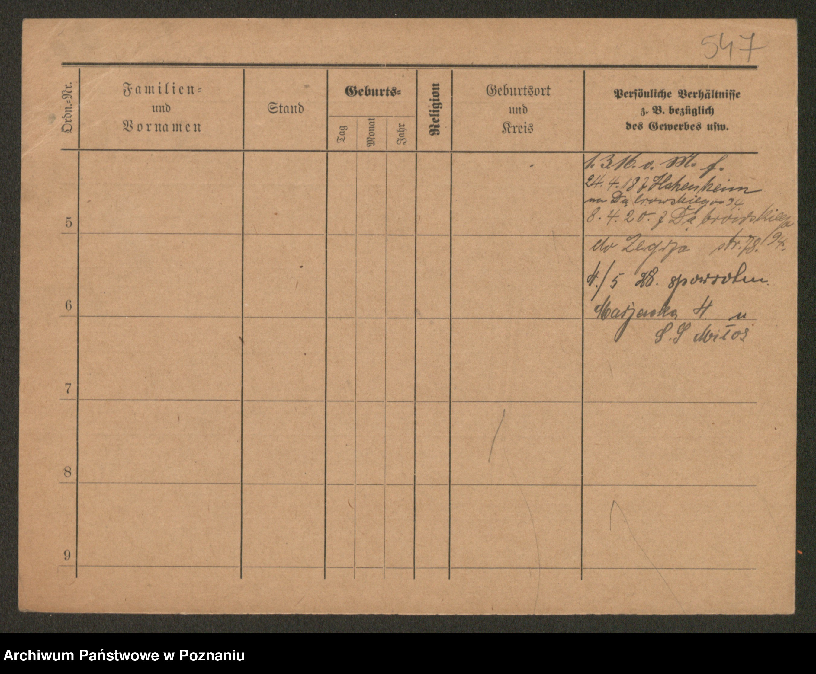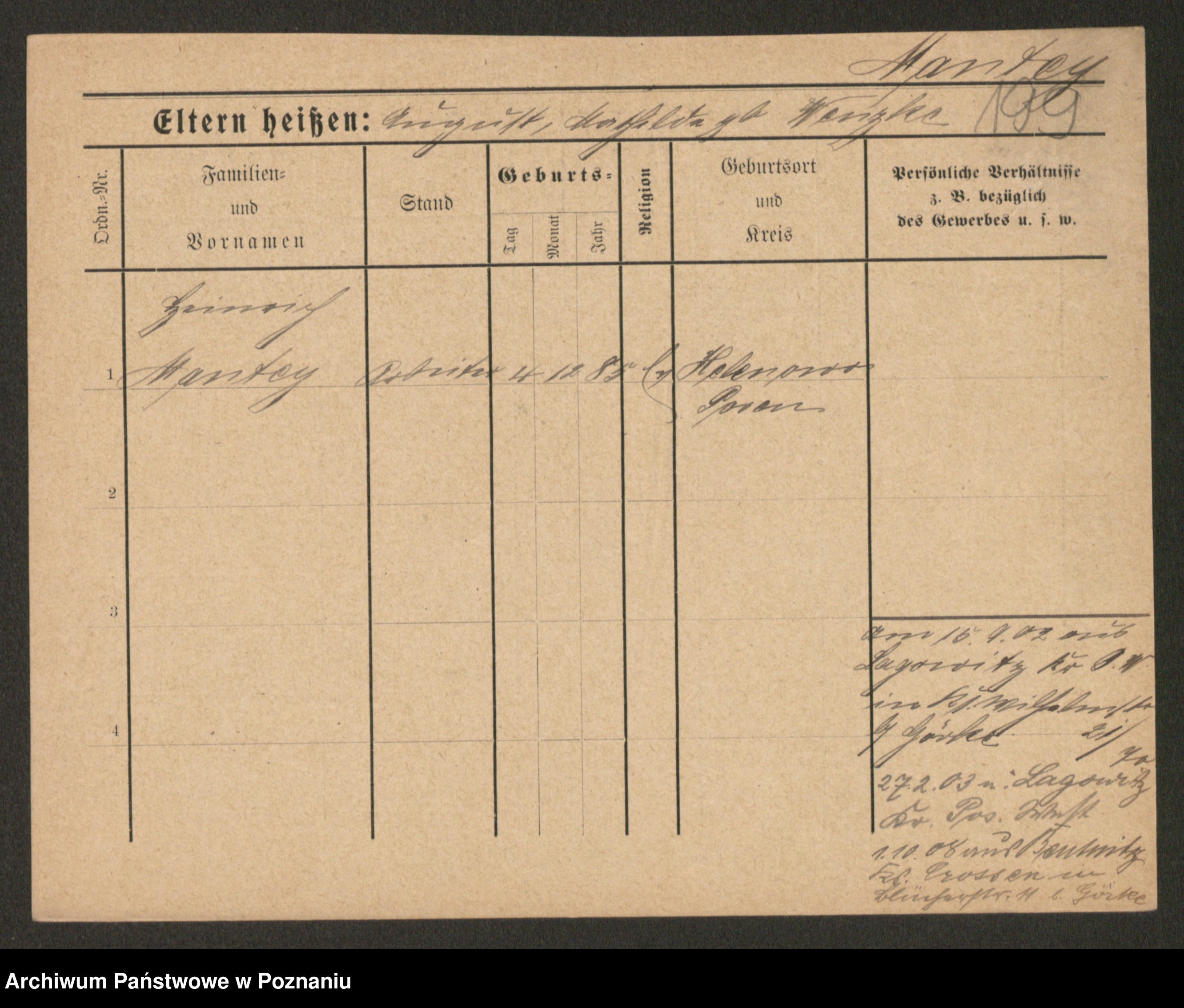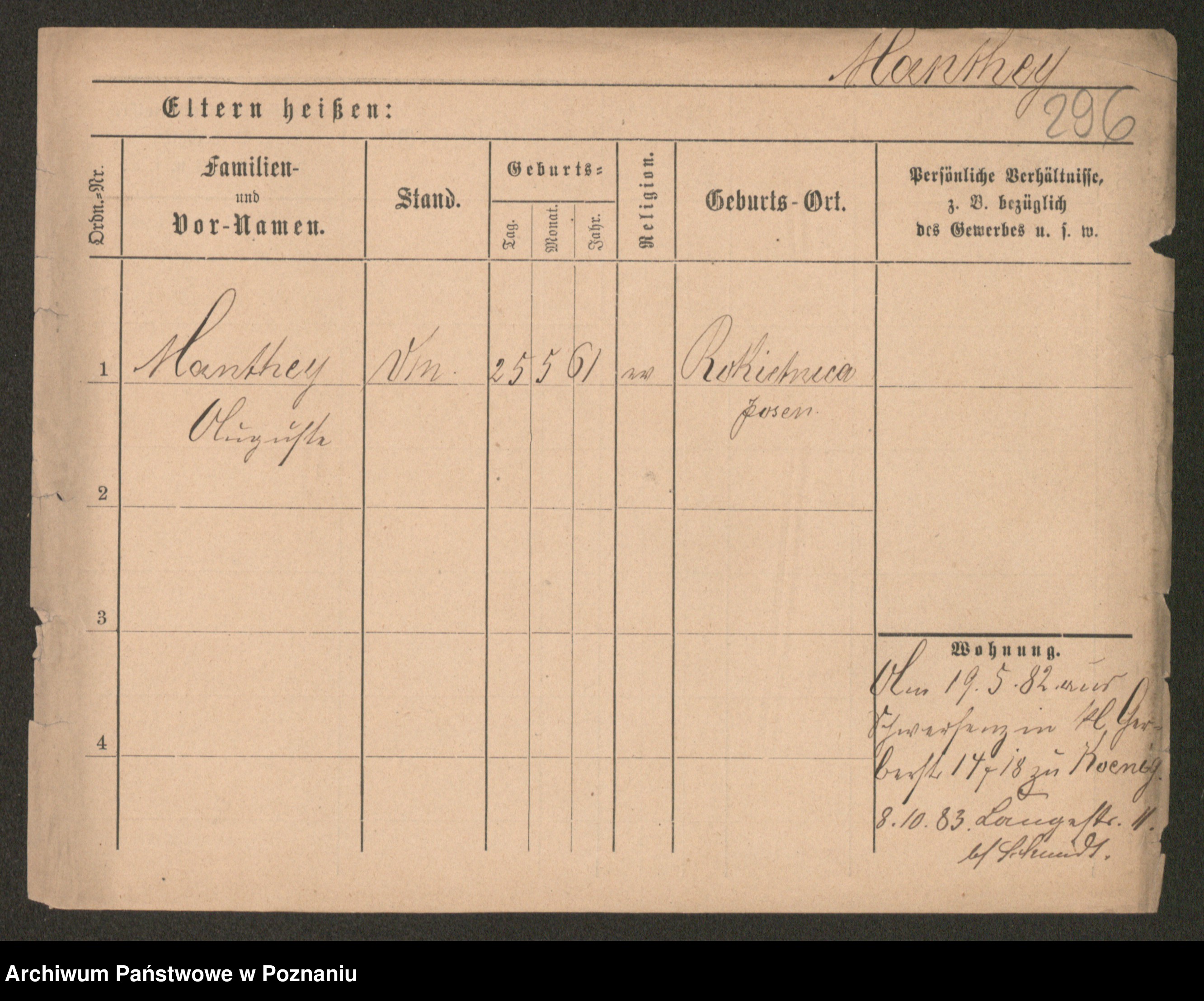 Podgląd karty osobowej dostępny jest po kliknięciu na nazwisko lub ikonkę karty. Można dokonywać powiększenia (ikony na górze) lub przechodzić między kolejnymi skanami (strzałki po bokach).