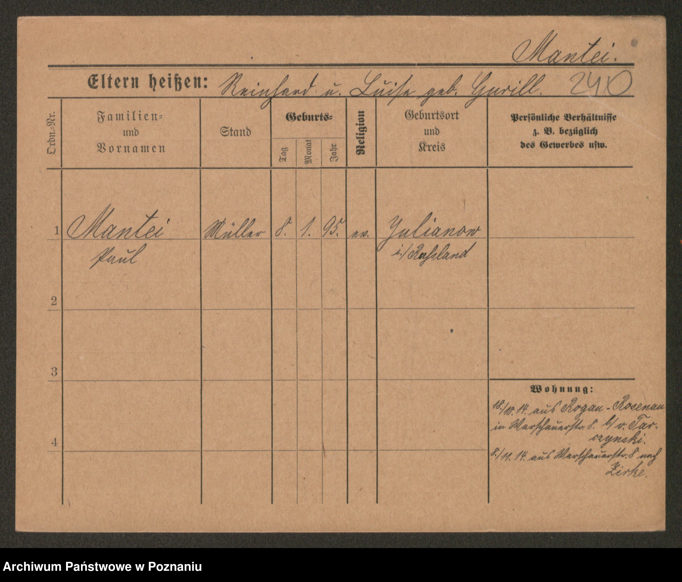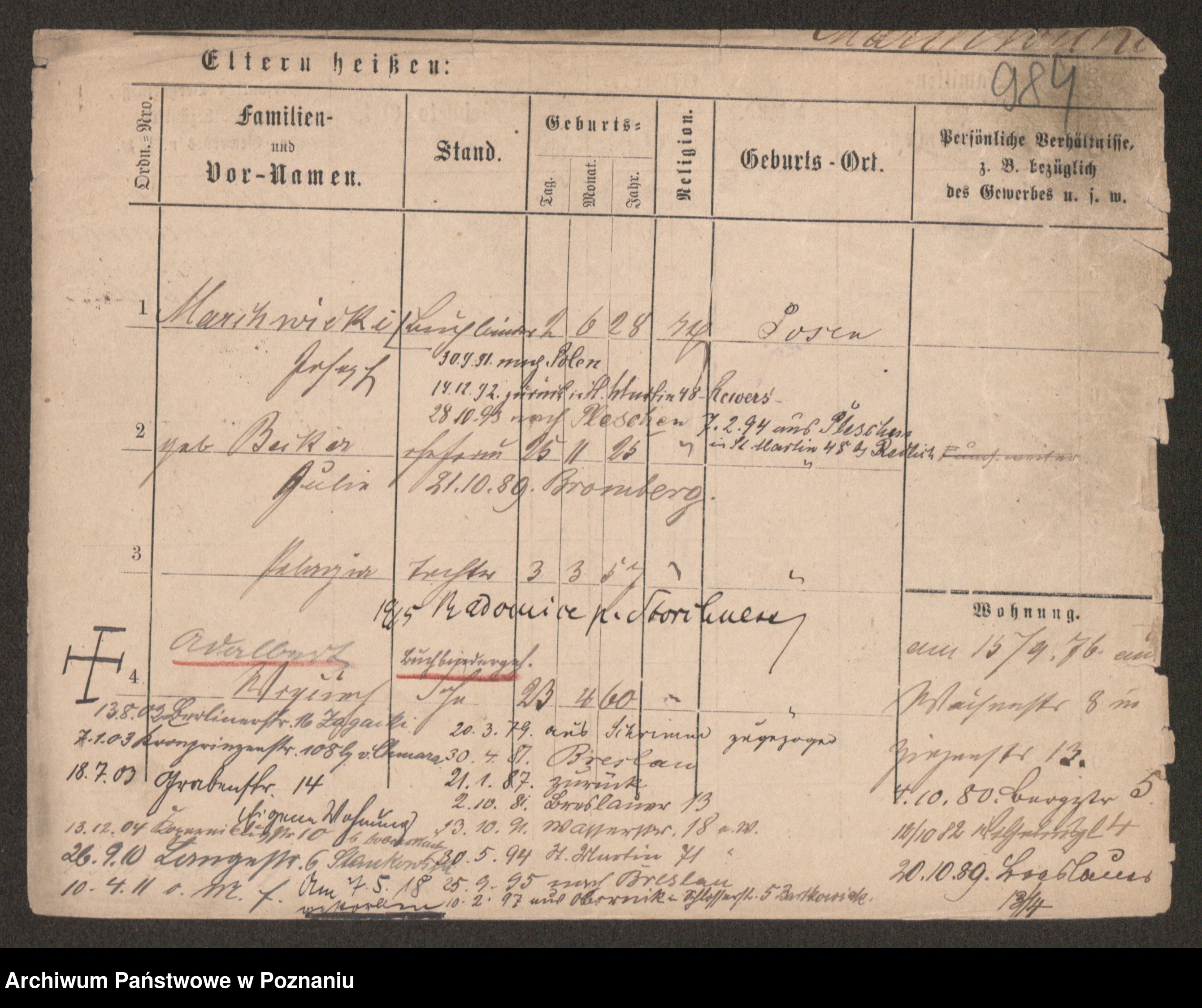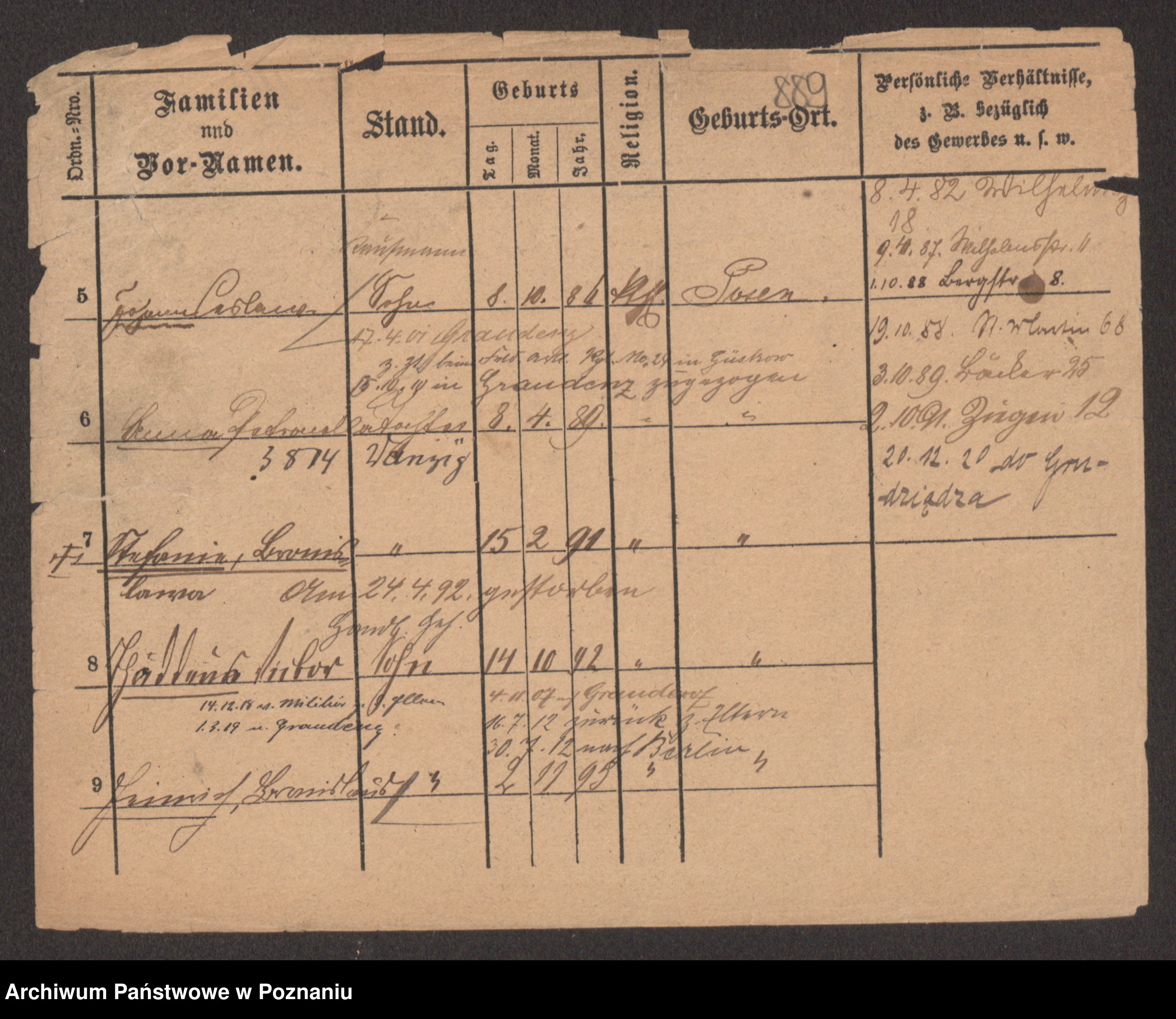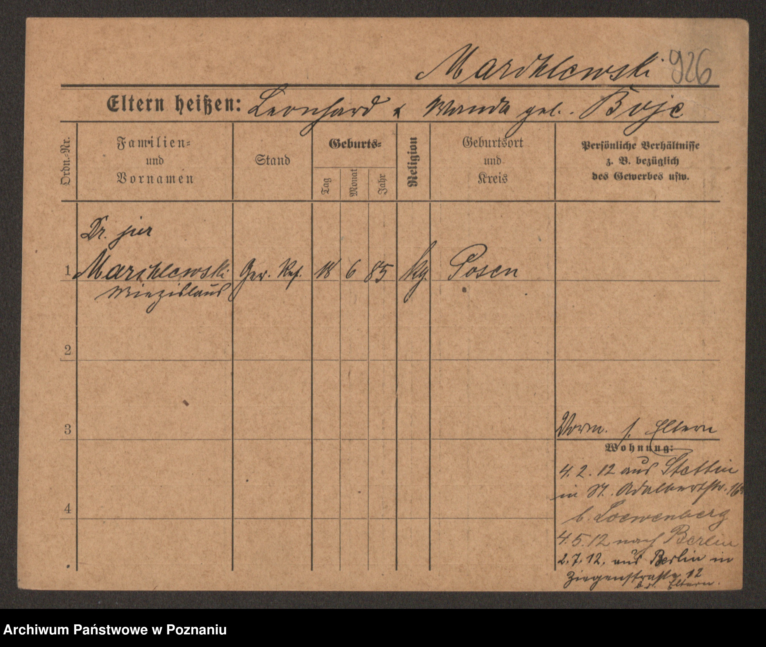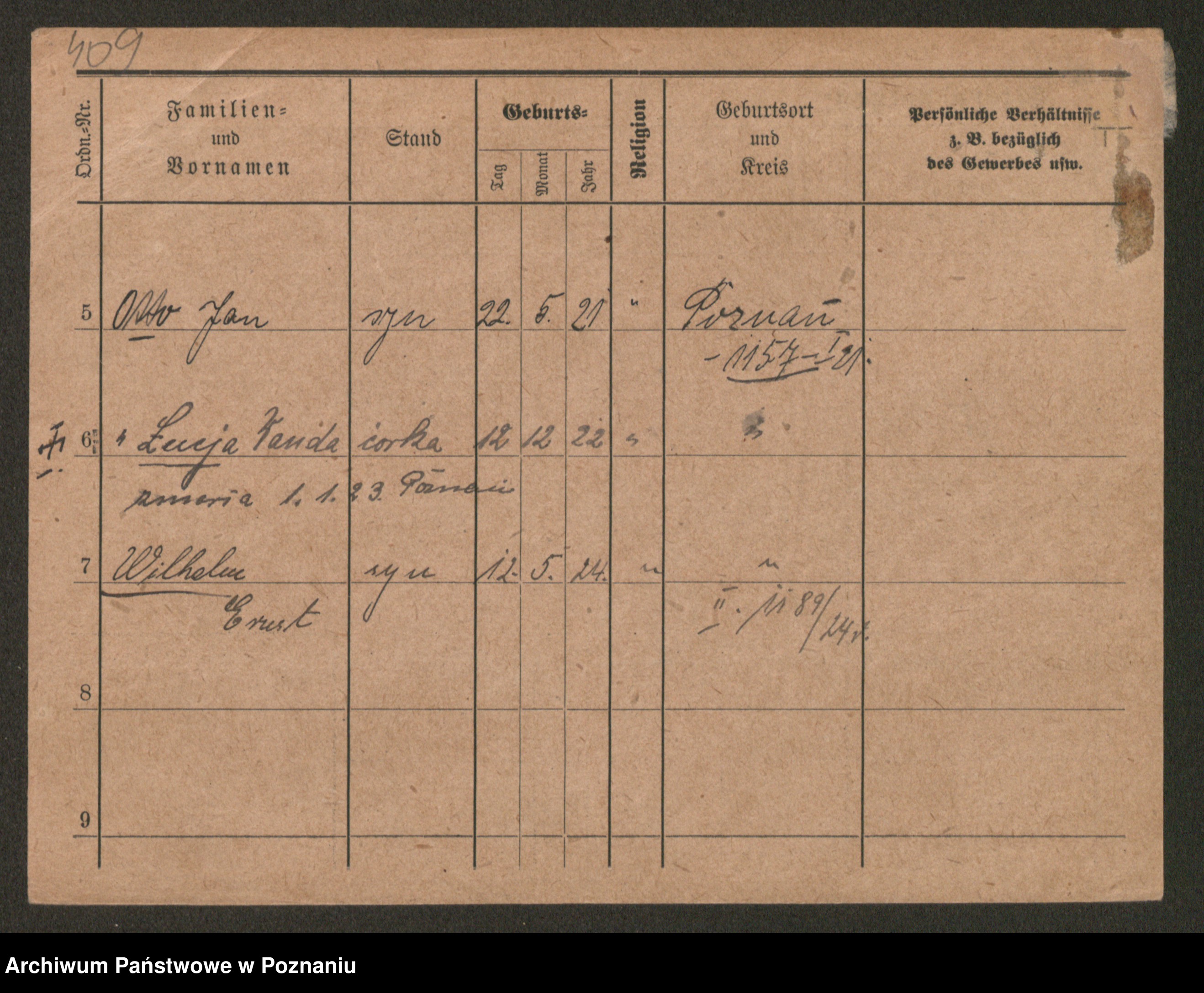 Podgląd karty osobowej dostępny jest po kliknięciu na nazwisko lub ikonkę karty. Można dokonywać powiększenia (ikony na górze) lub przechodzić między kolejnymi skanami (strzałki po bokach).