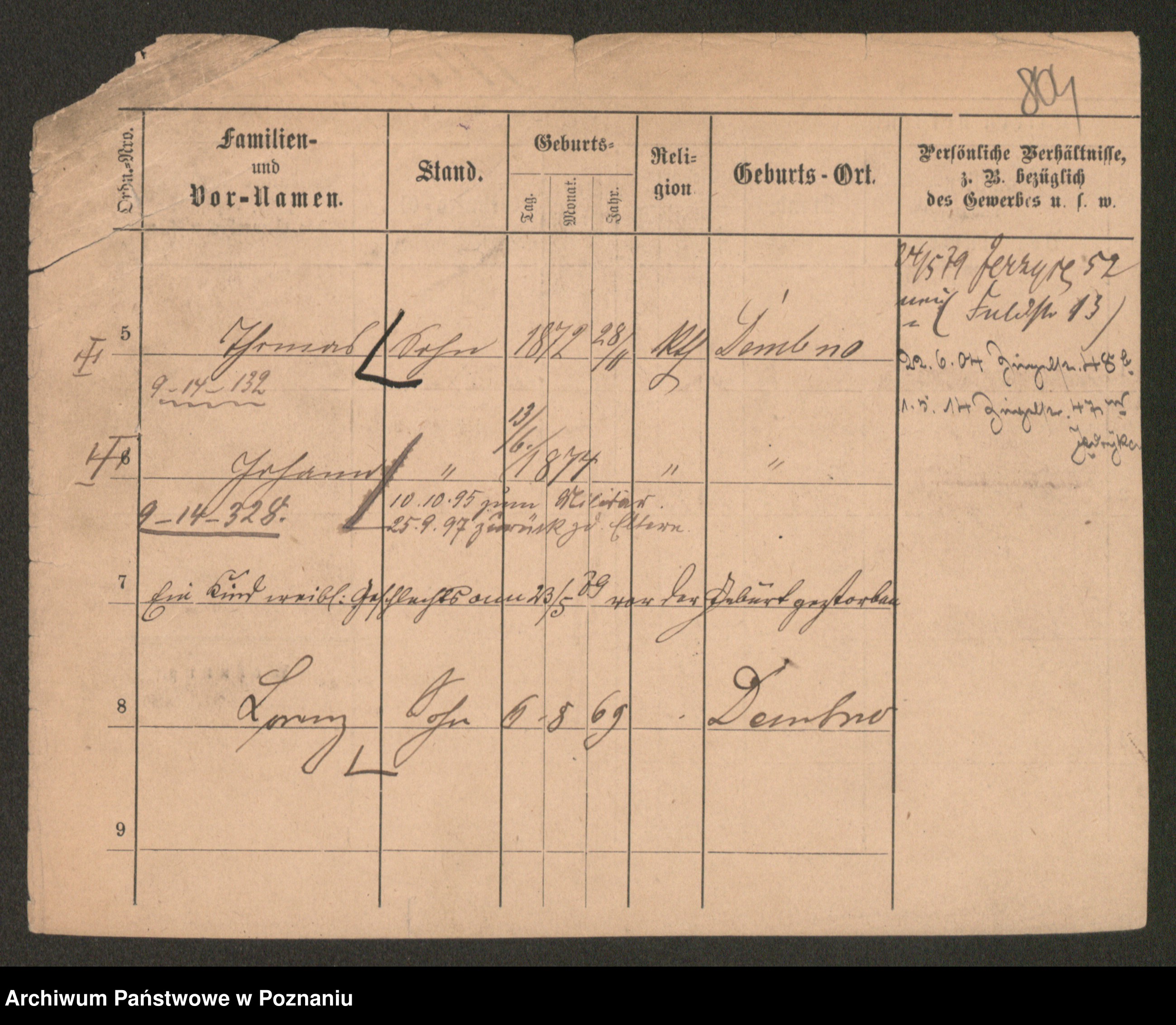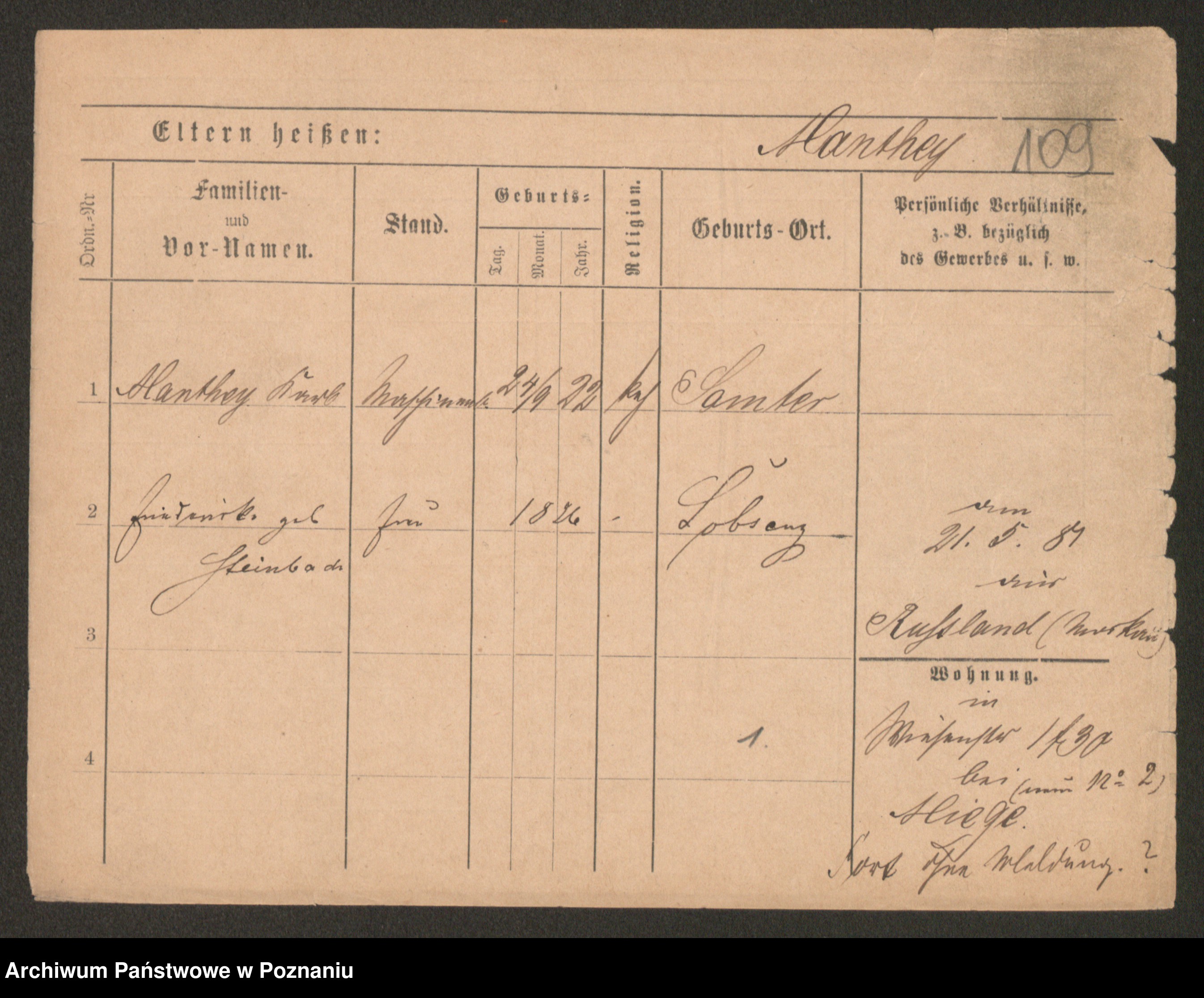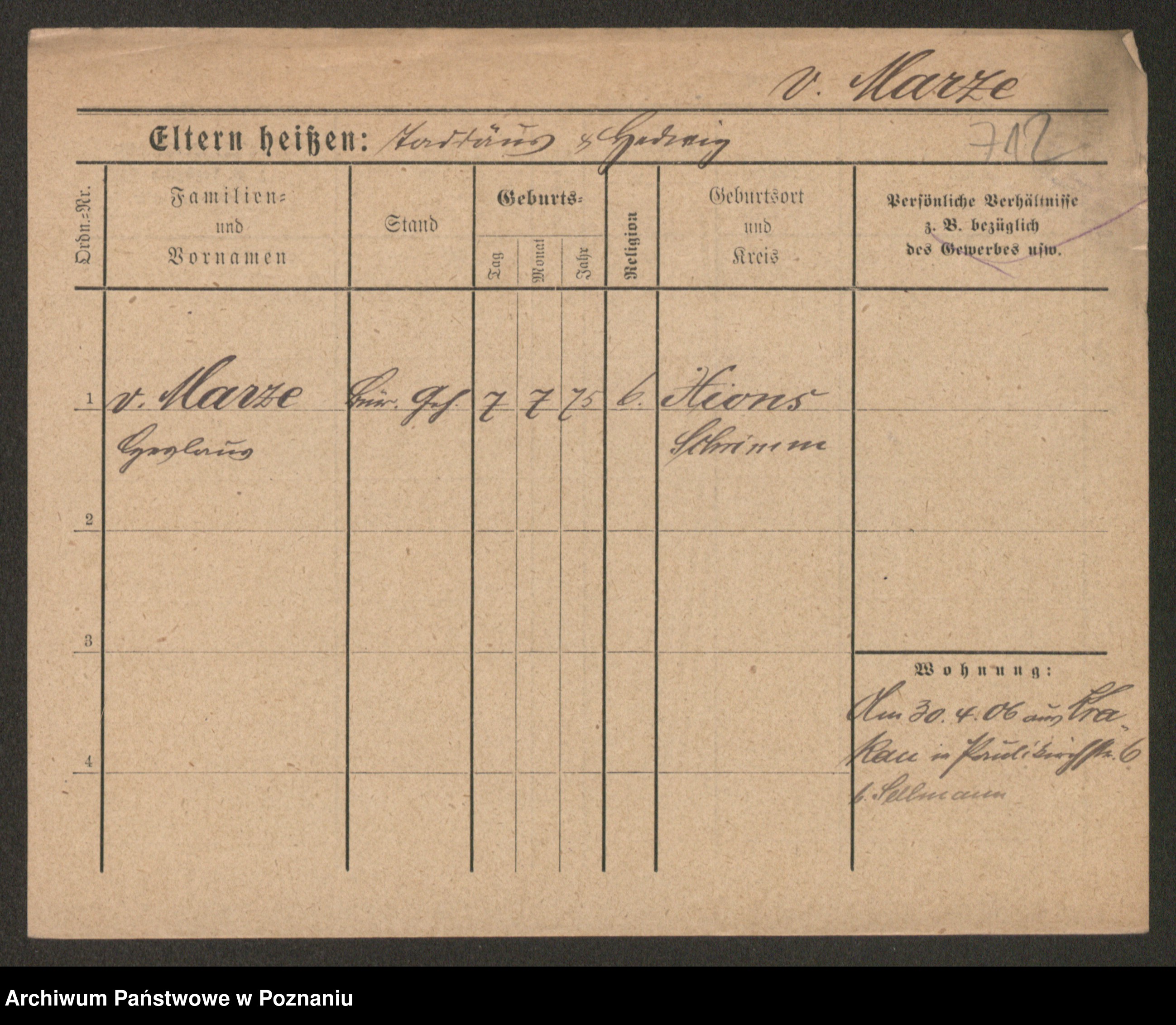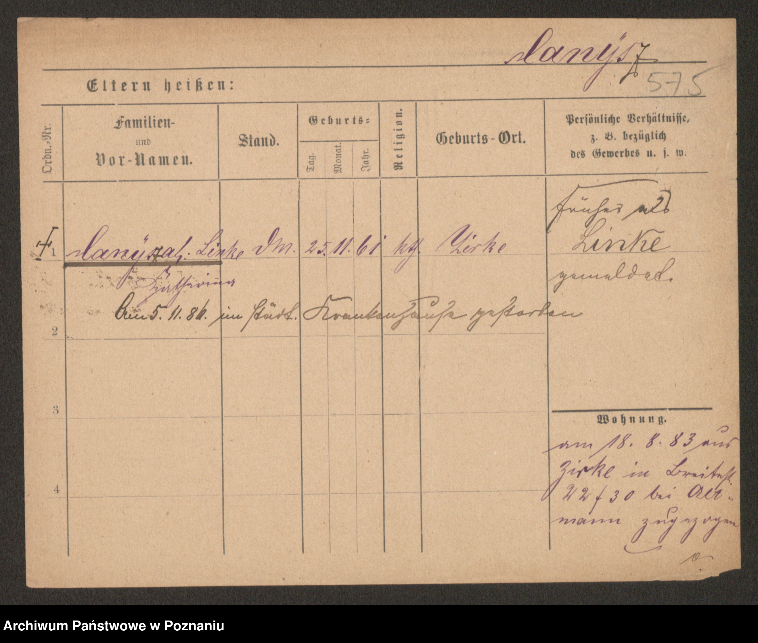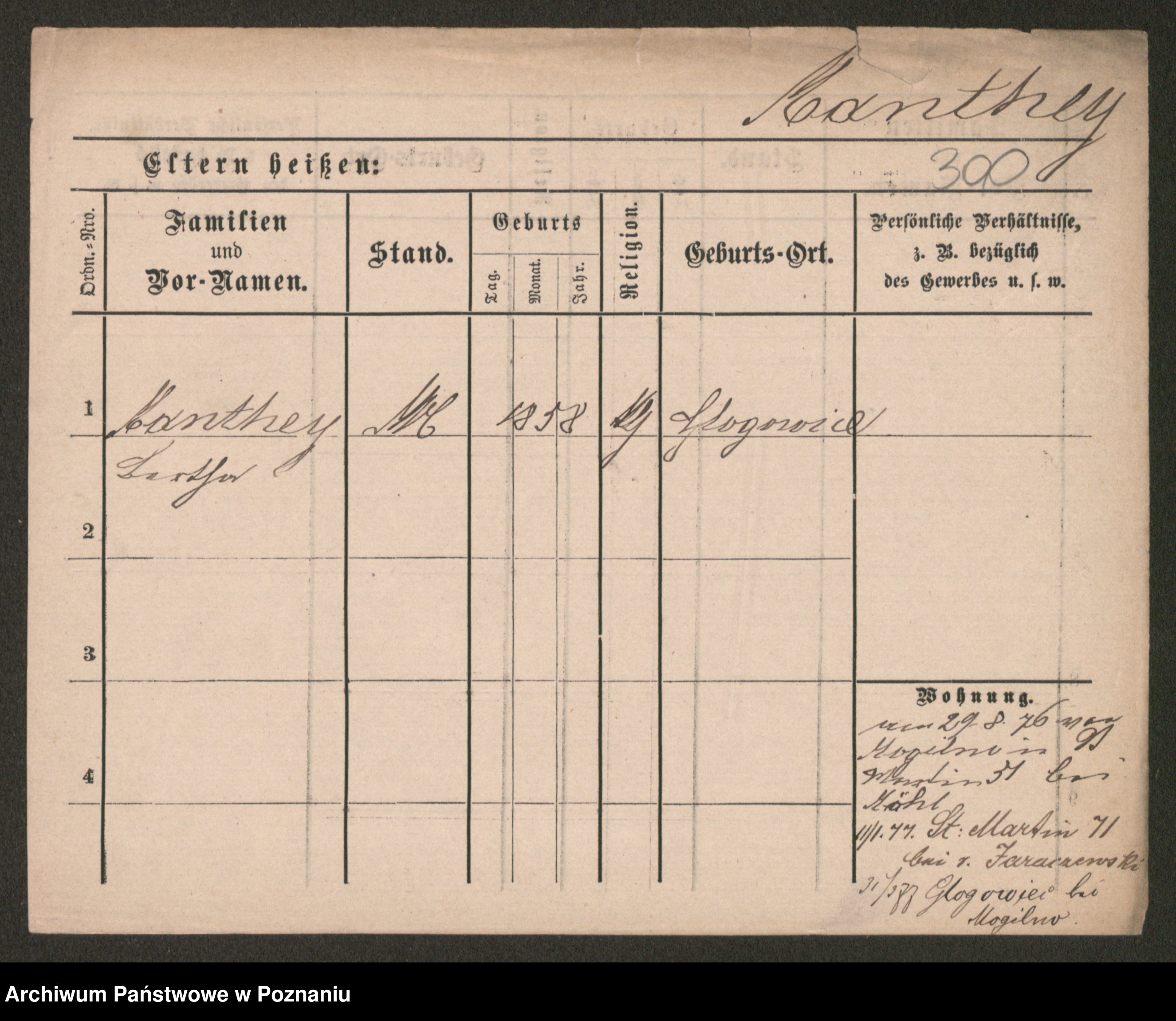 Podgląd karty osobowej dostępny jest po kliknięciu na nazwisko lub ikonkę karty. Można dokonywać powiększenia (ikony na górze) lub przechodzić między kolejnymi skanami (strzałki po bokach).