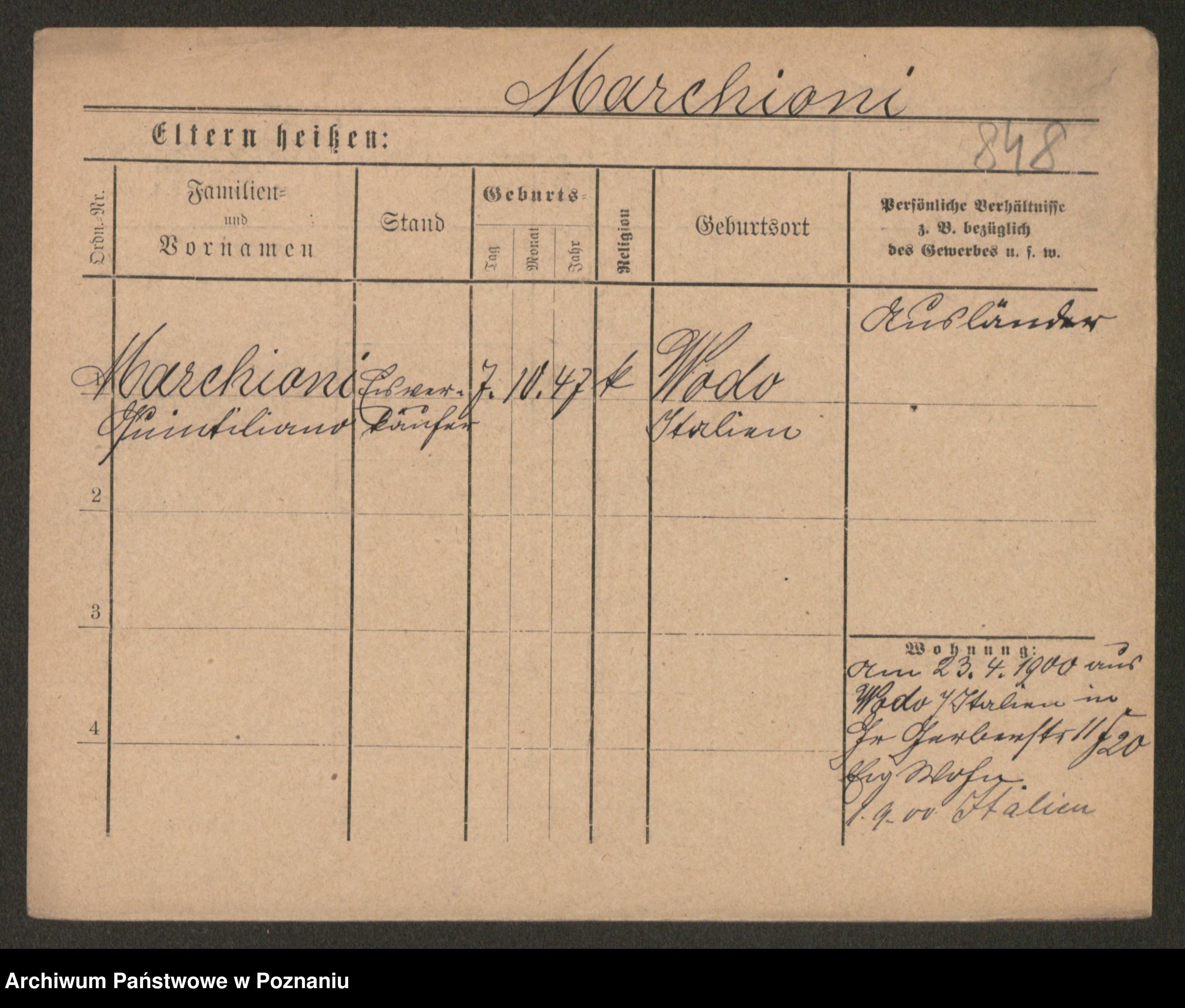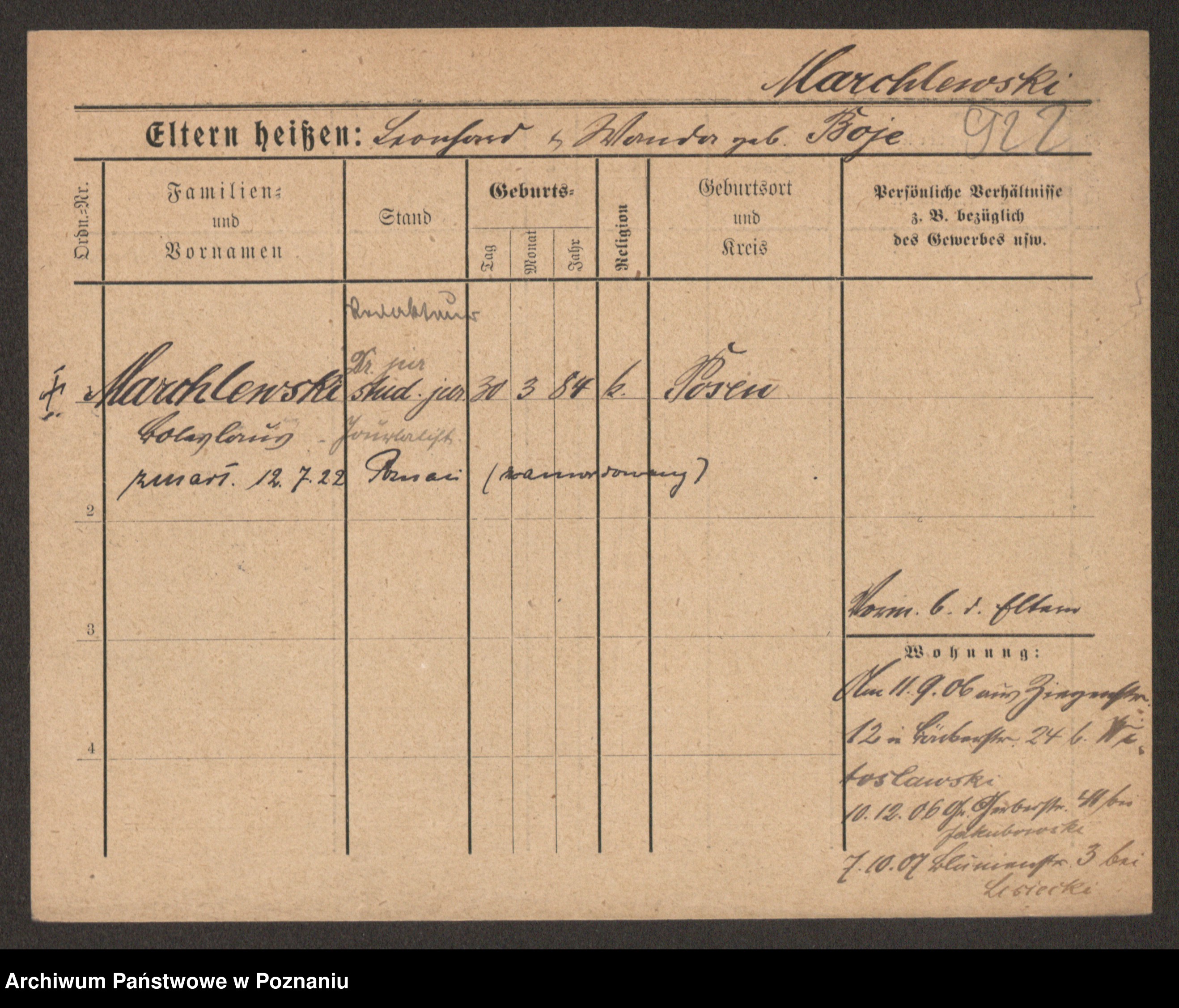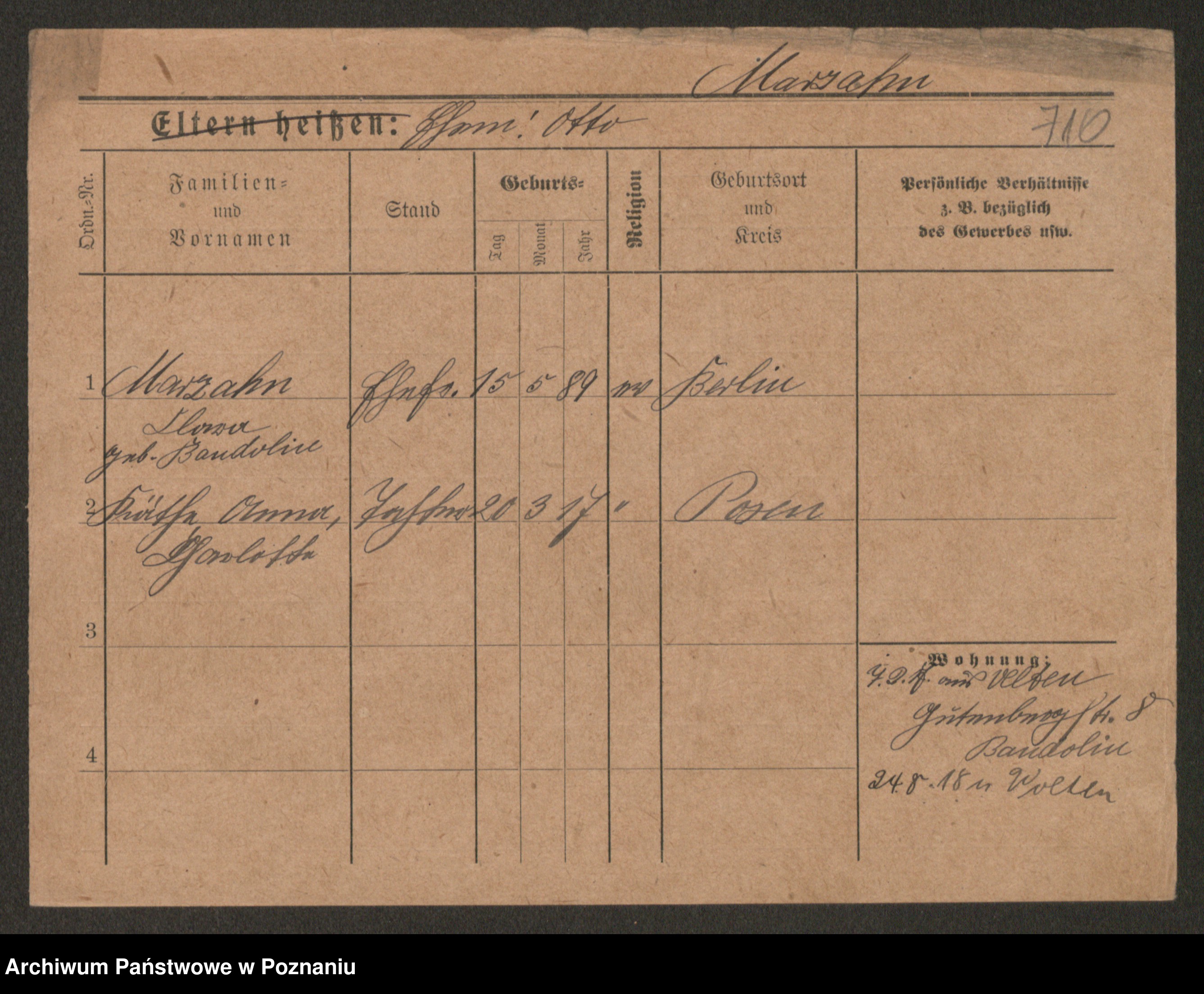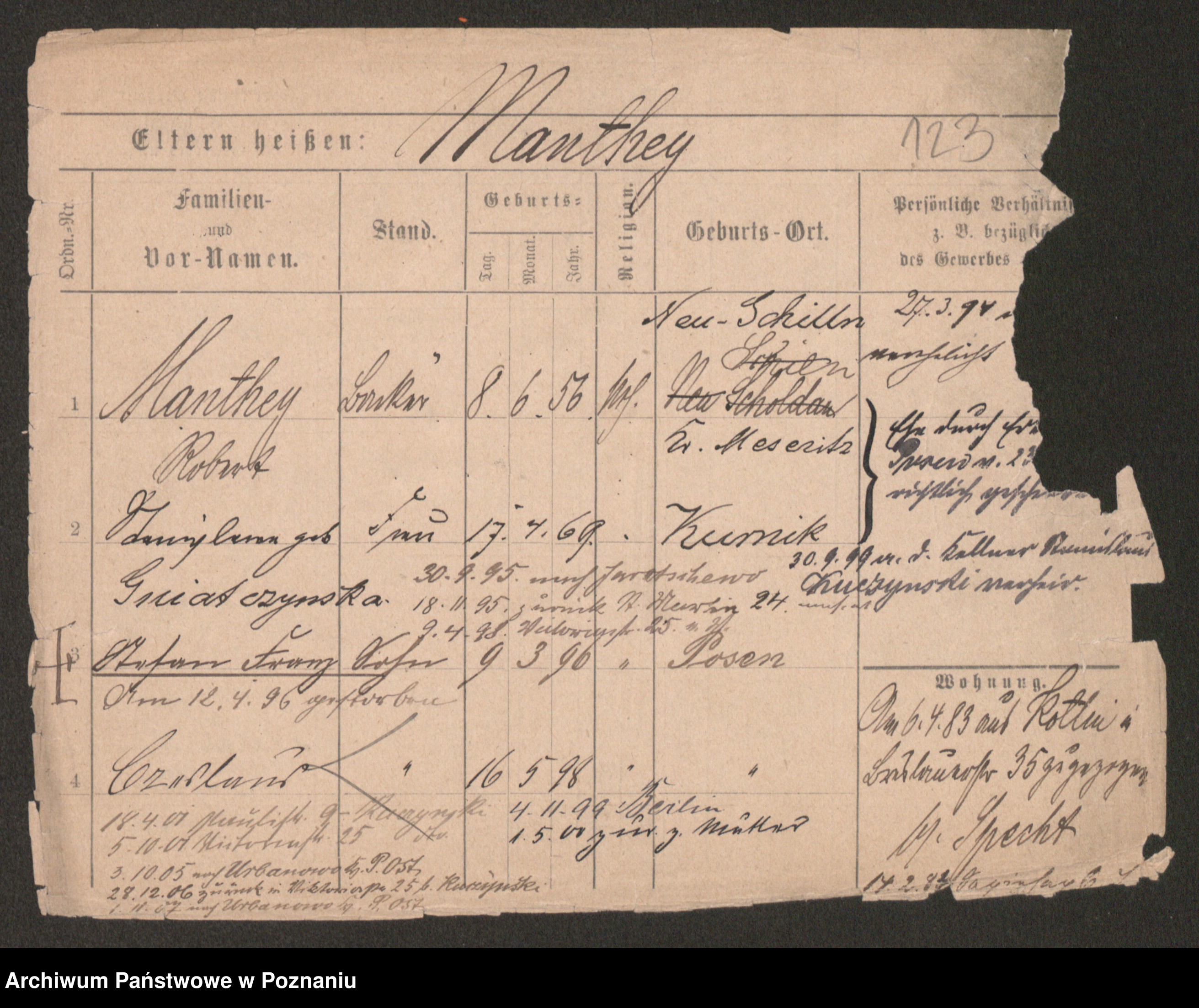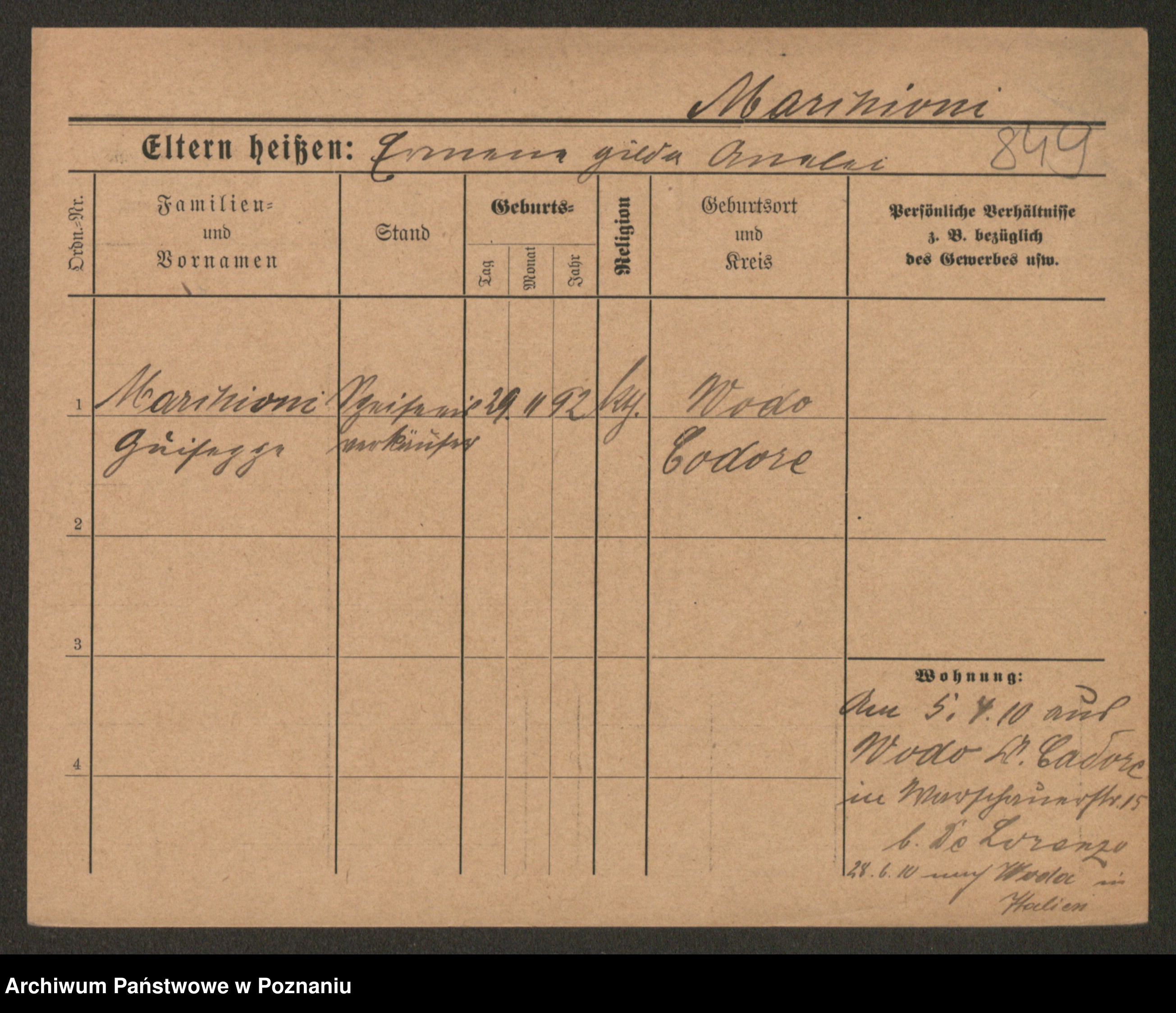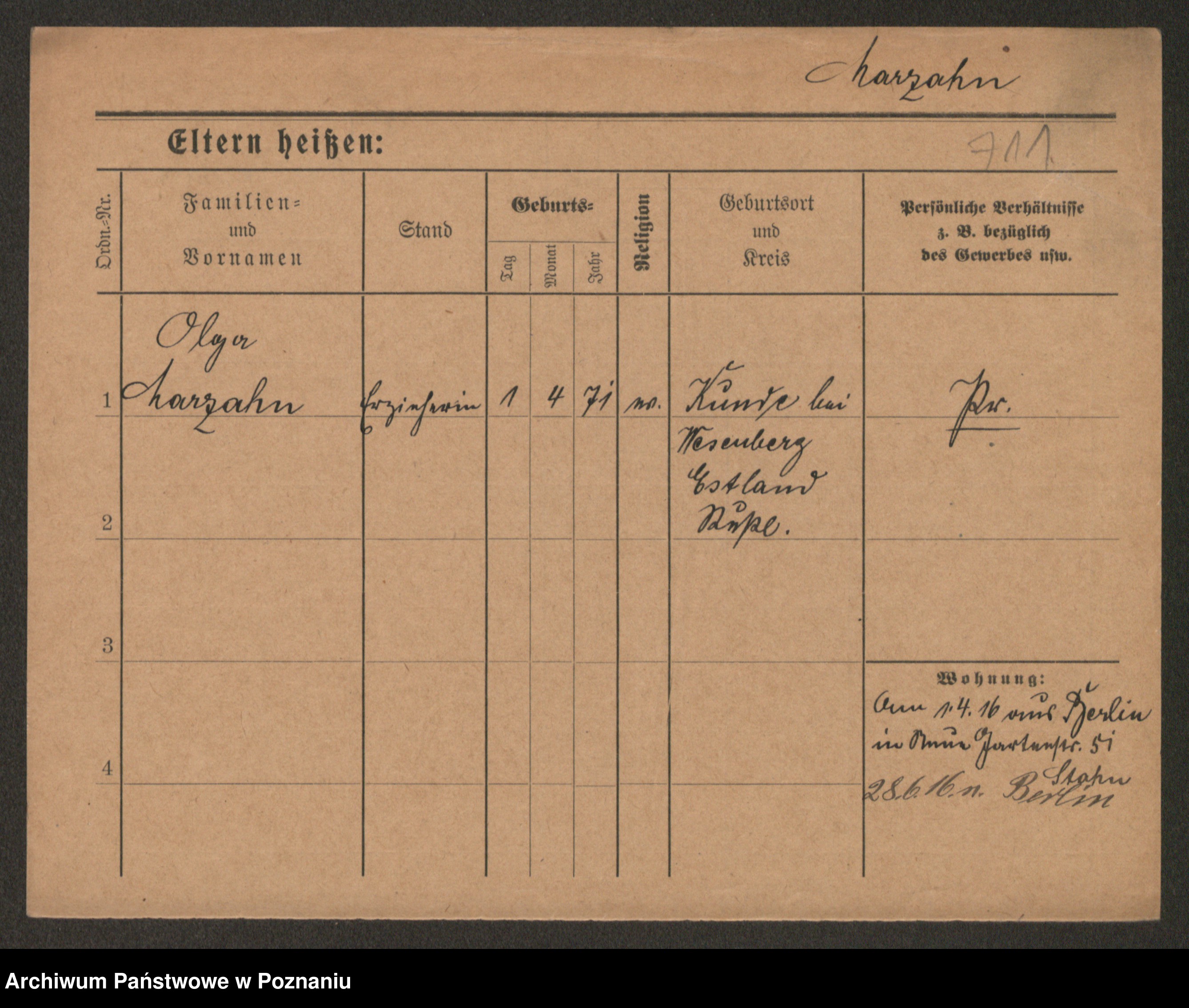 Podgląd karty osobowej dostępny jest po kliknięciu na nazwisko lub ikonkę karty. Można dokonywać powiększenia (ikony na górze) lub przechodzić między kolejnymi skanami (strzałki po bokach).