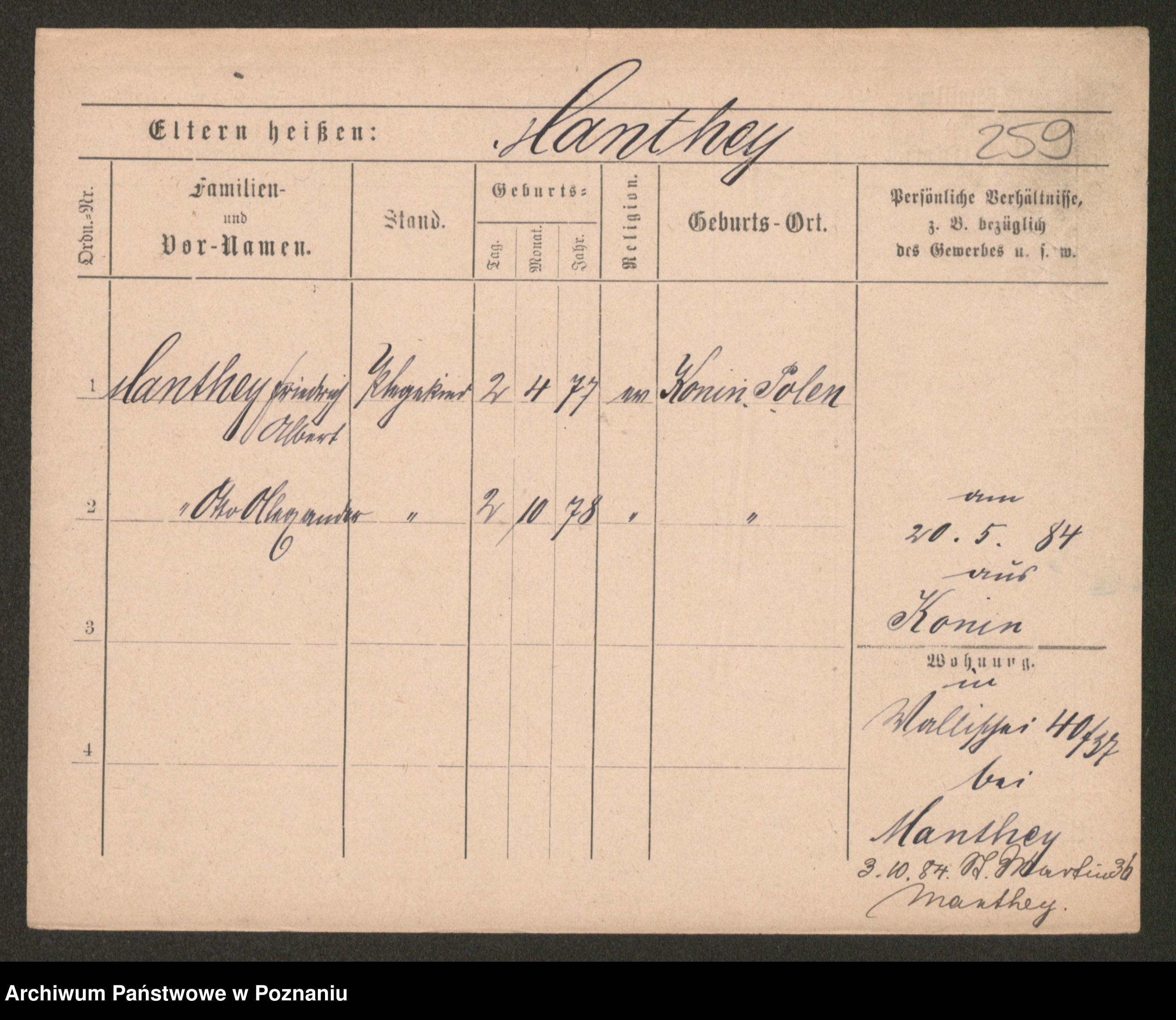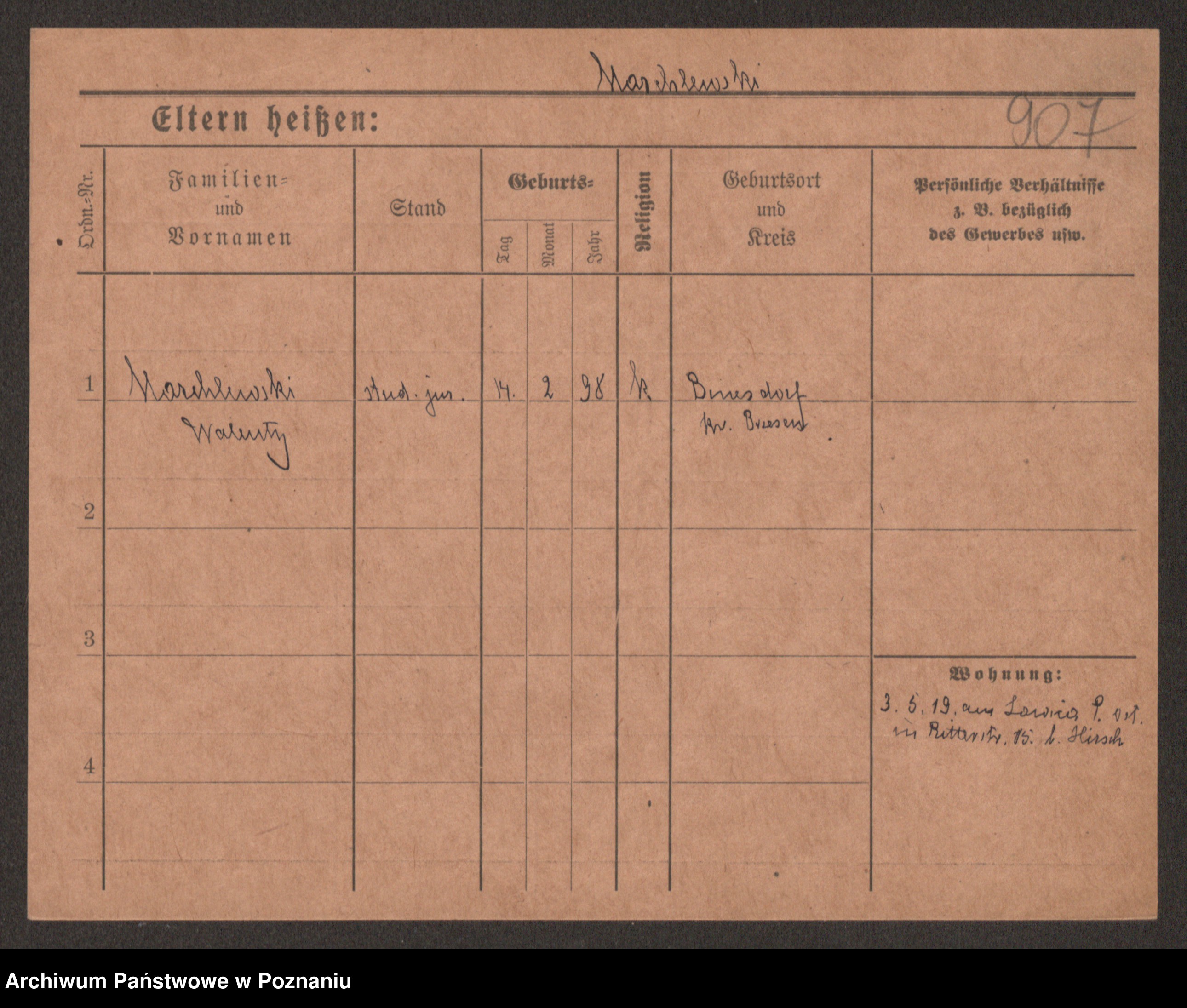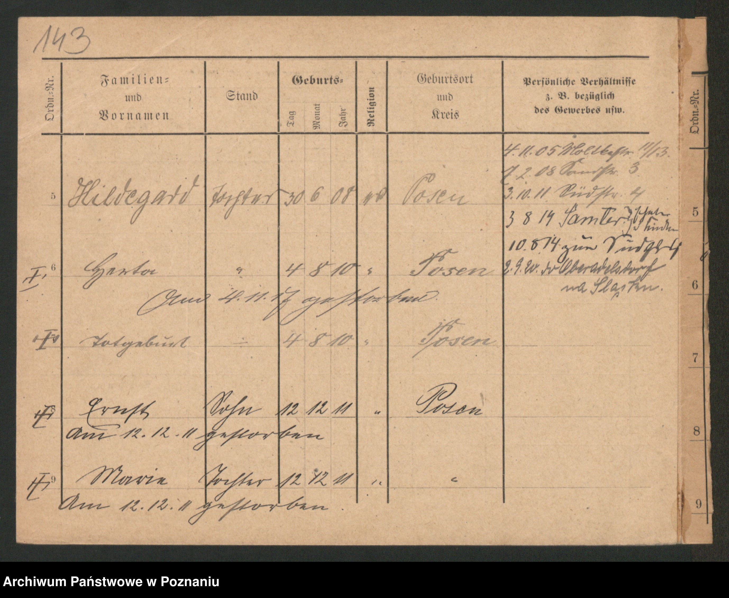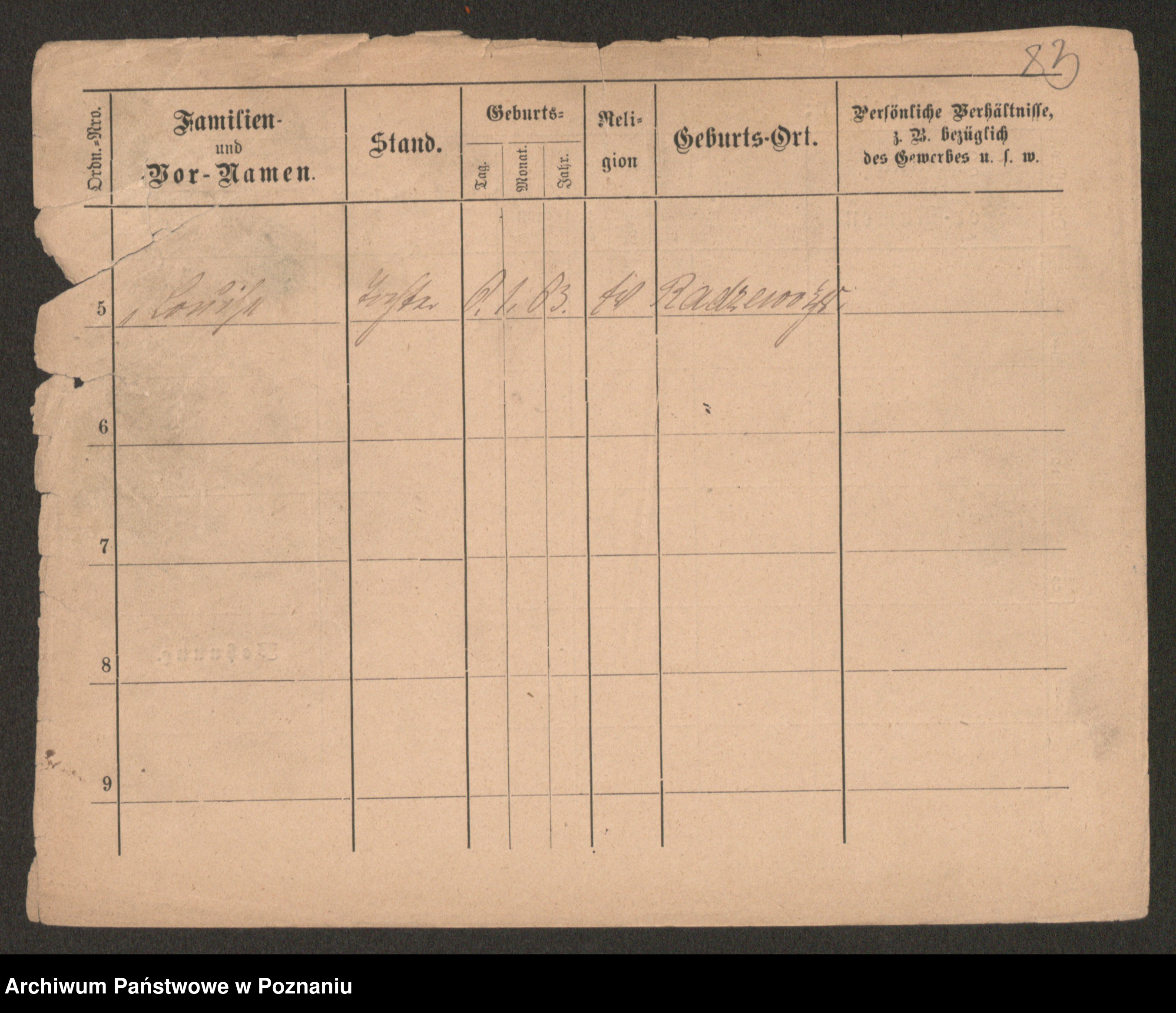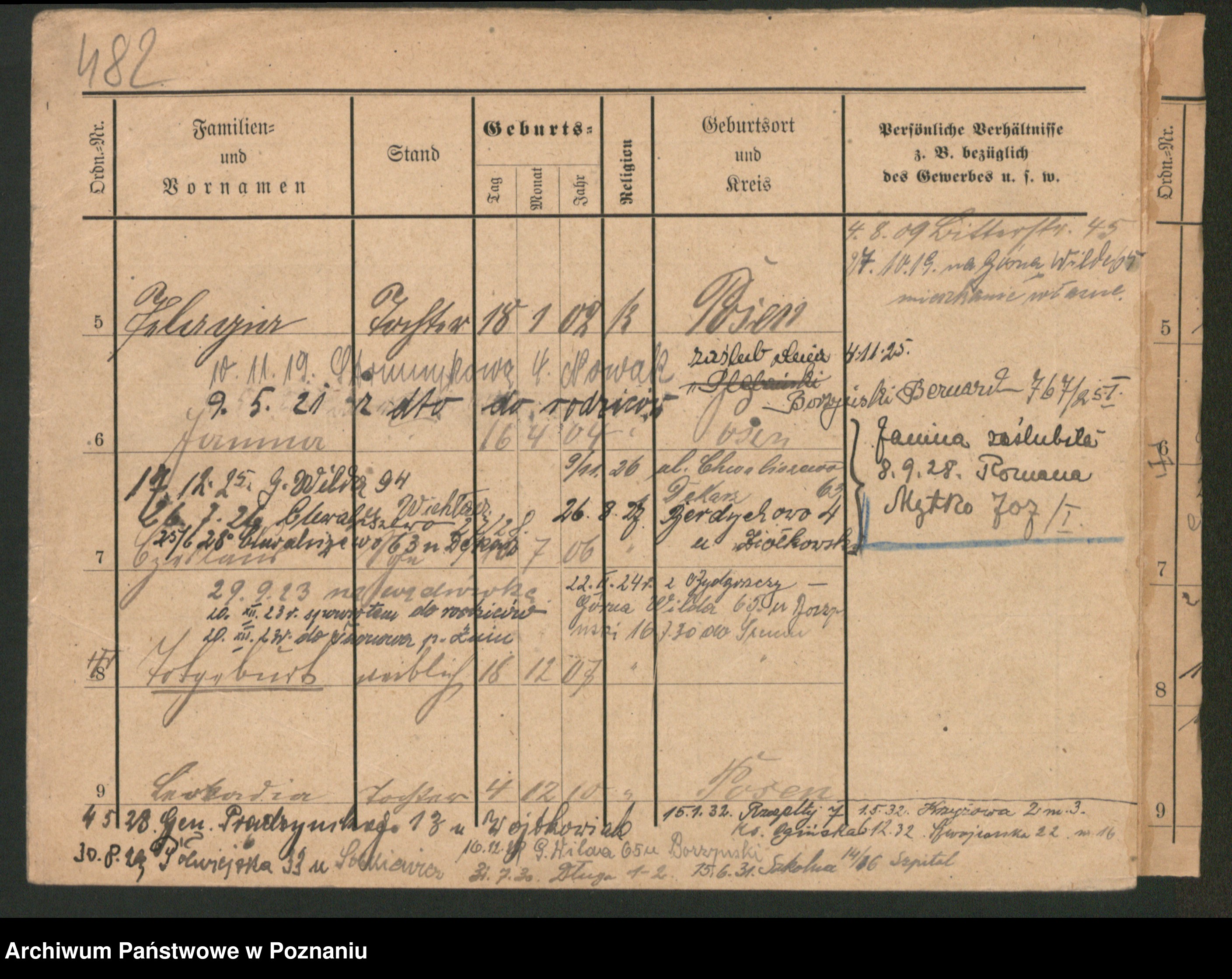 Podgląd karty osobowej dostępny jest po kliknięciu na nazwisko lub ikonkę karty. Można dokonywać powiększenia (ikony na górze) lub przechodzić między kolejnymi skanami (strzałki po bokach).