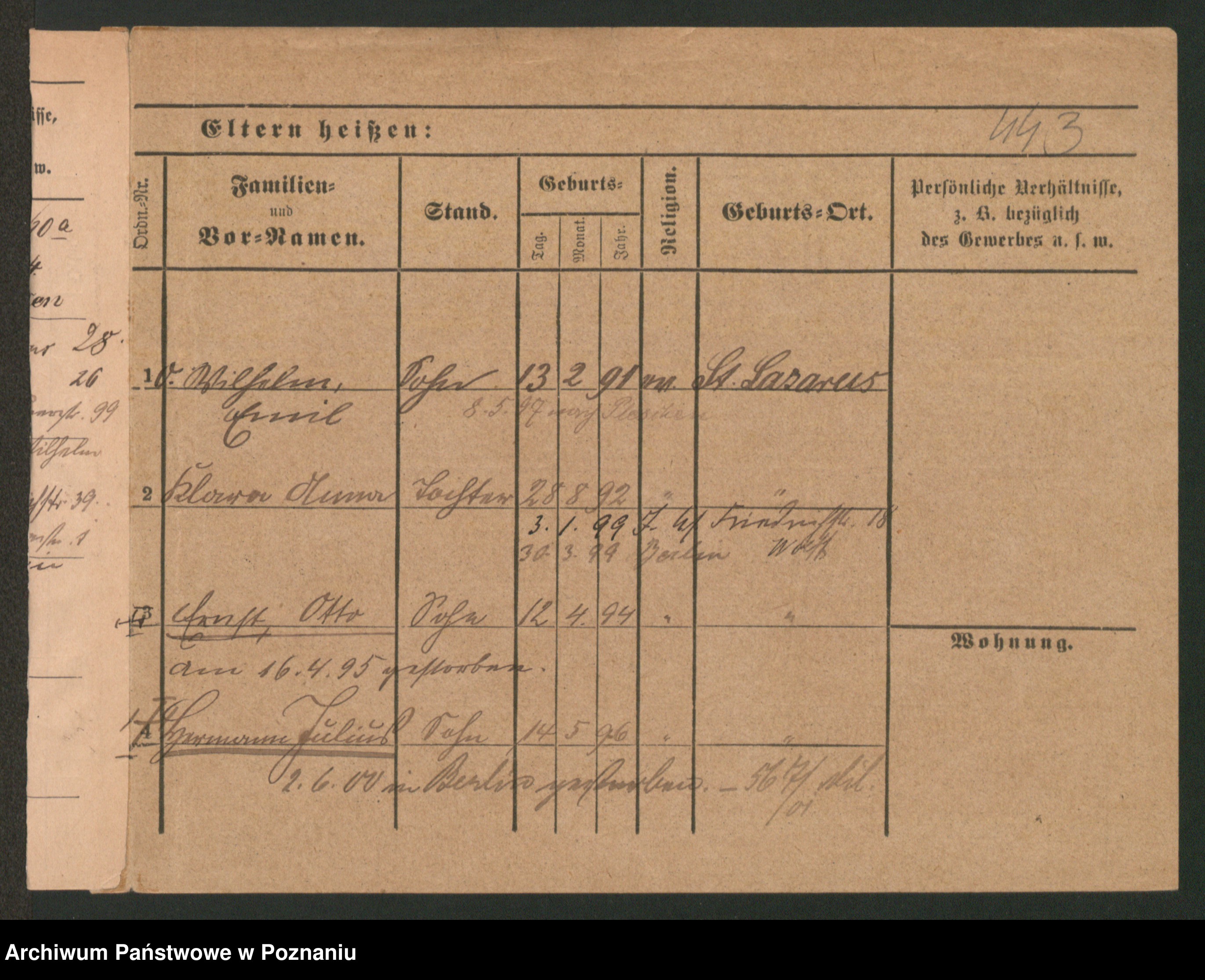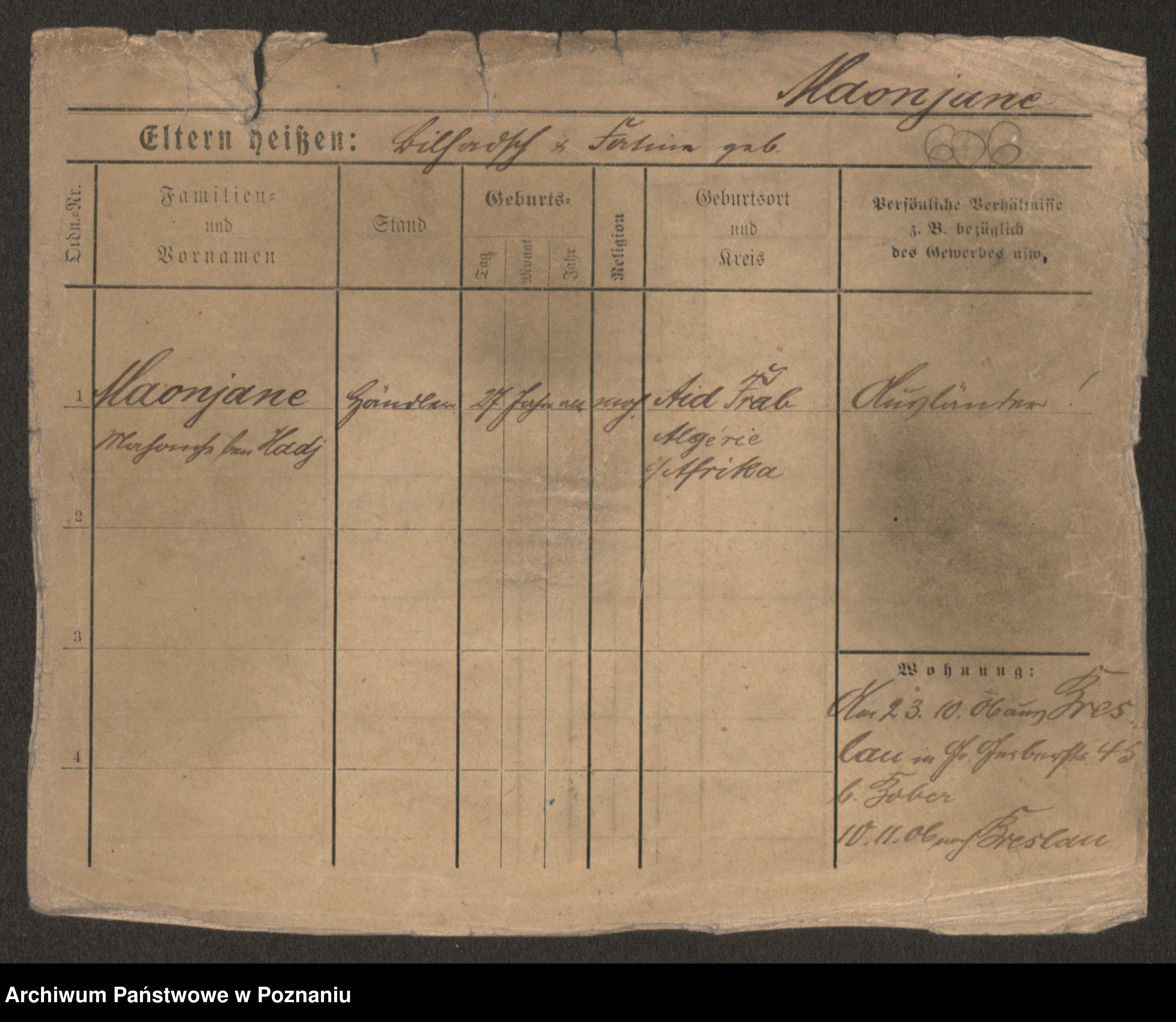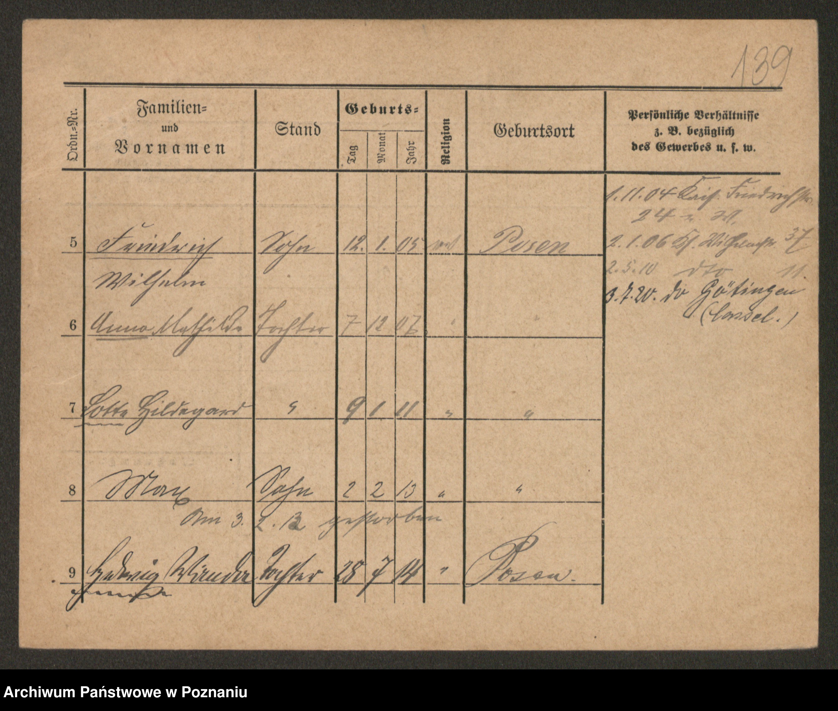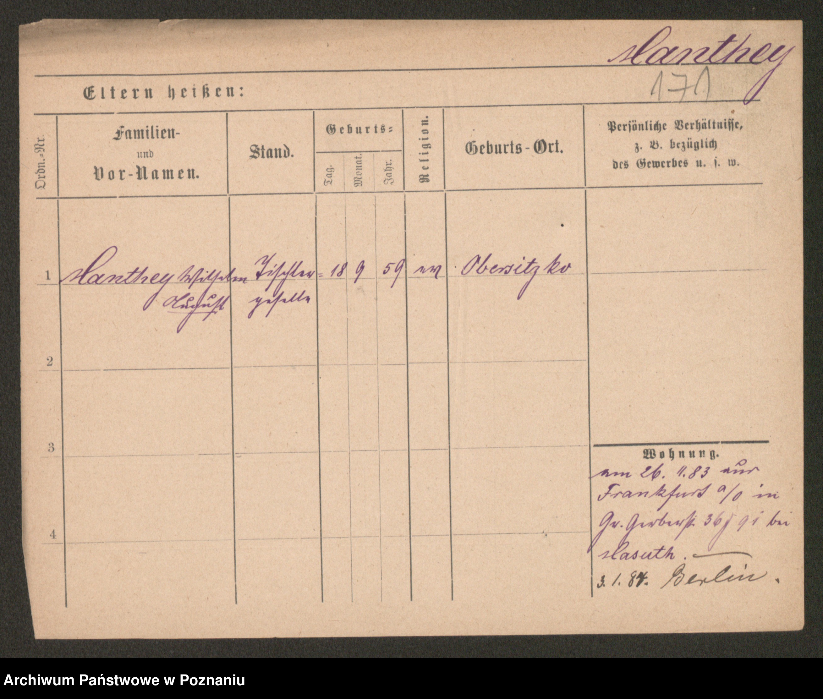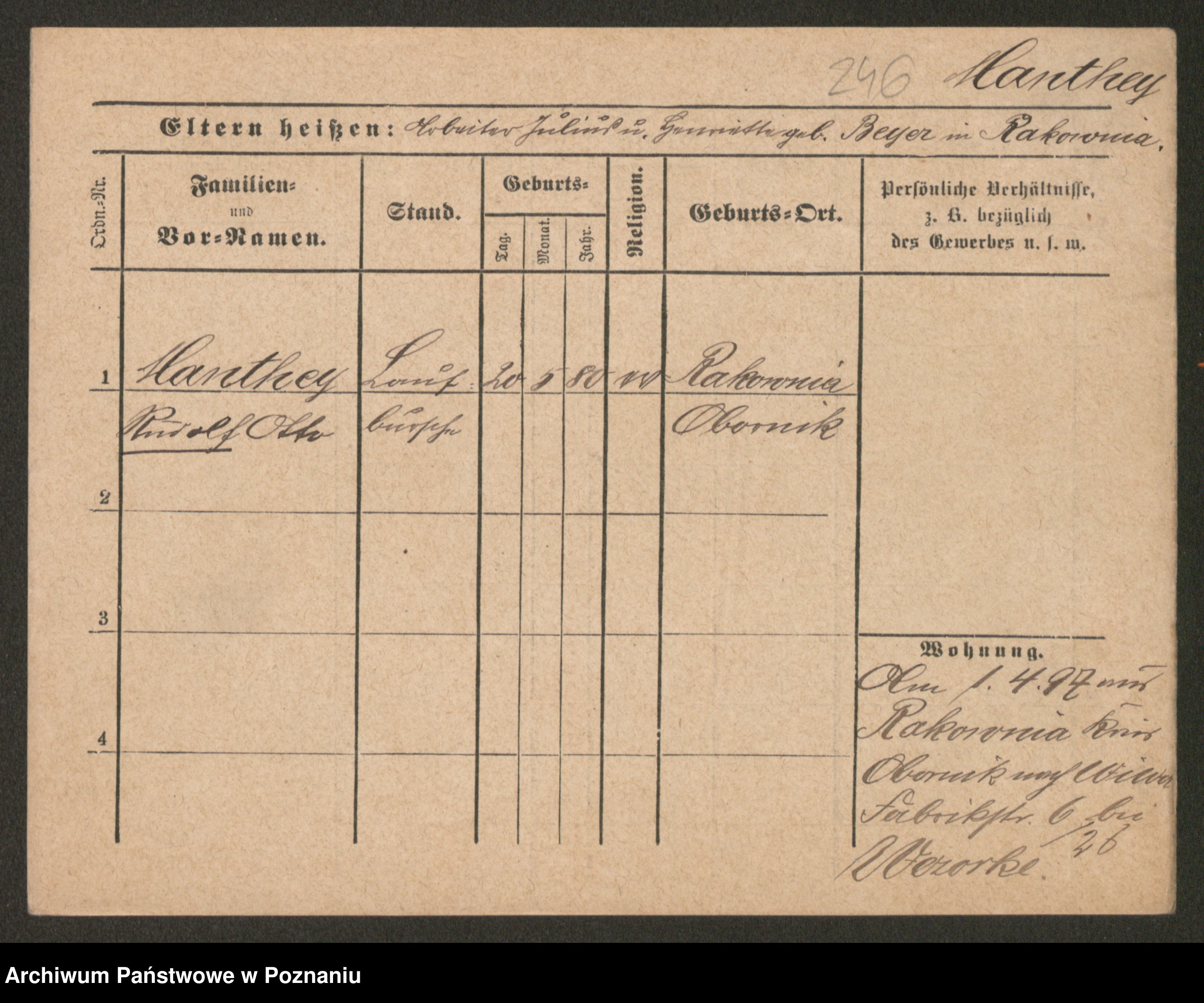 Podgląd karty osobowej dostępny jest po kliknięciu na nazwisko lub ikonkę karty. Można dokonywać powiększenia (ikony na górze) lub przechodzić między kolejnymi skanami (strzałki po bokach).