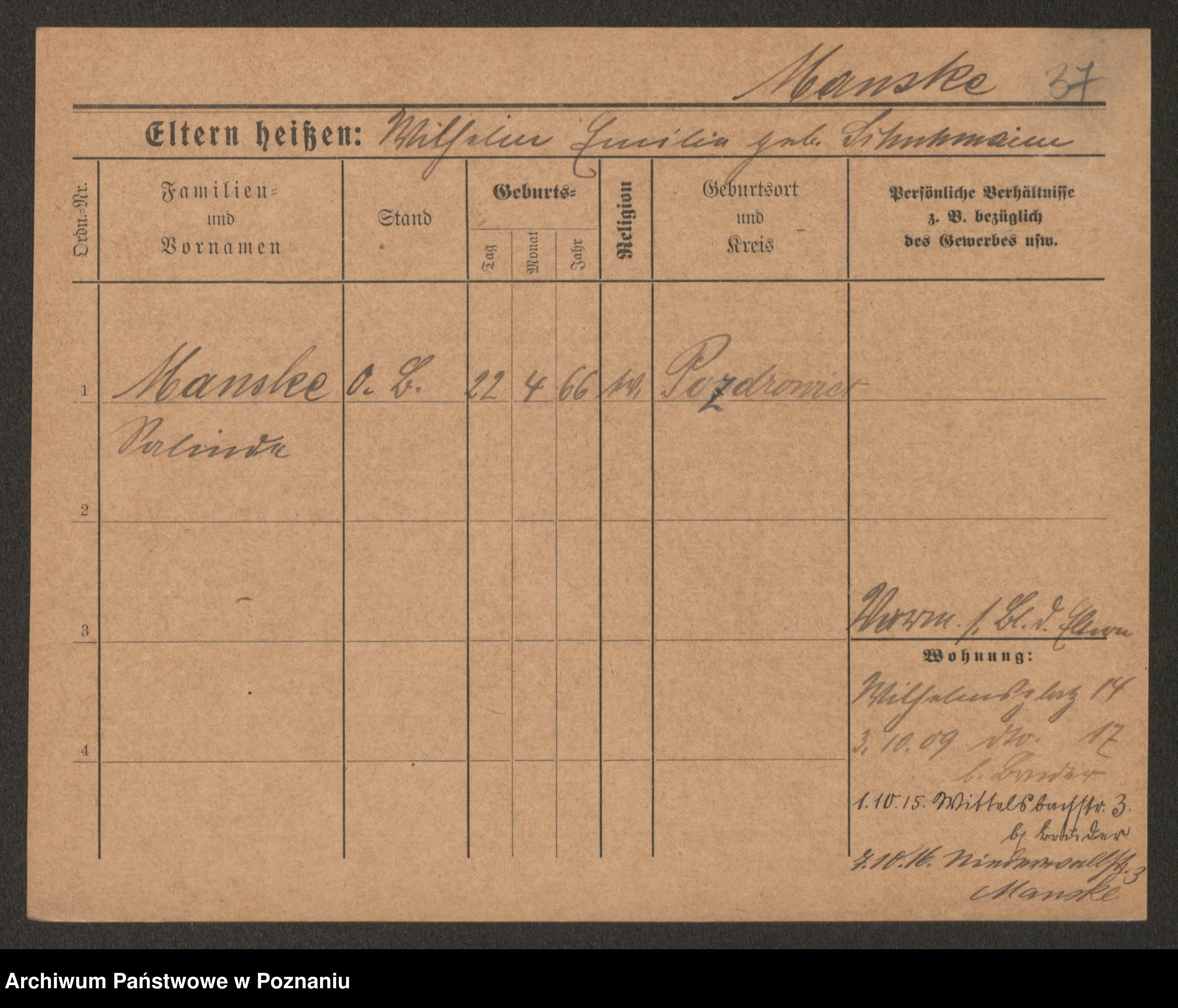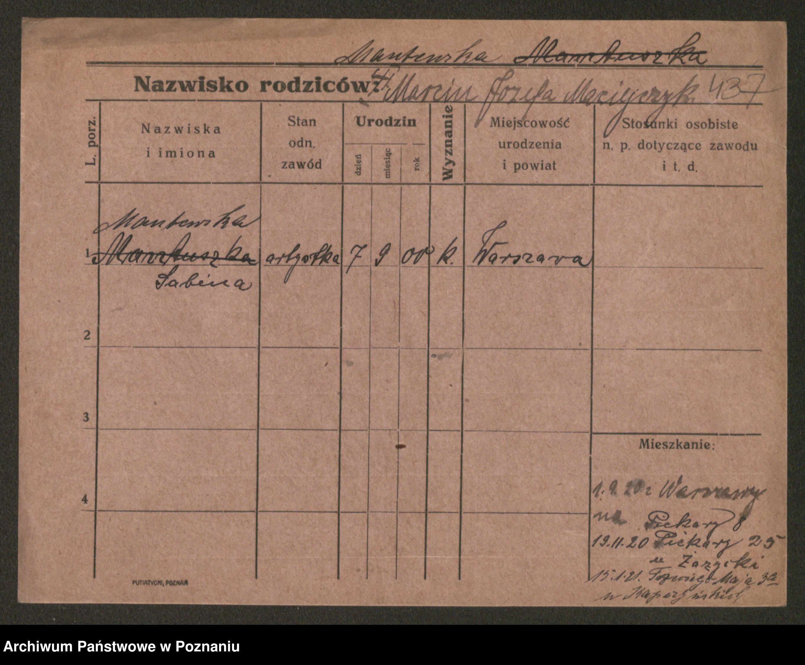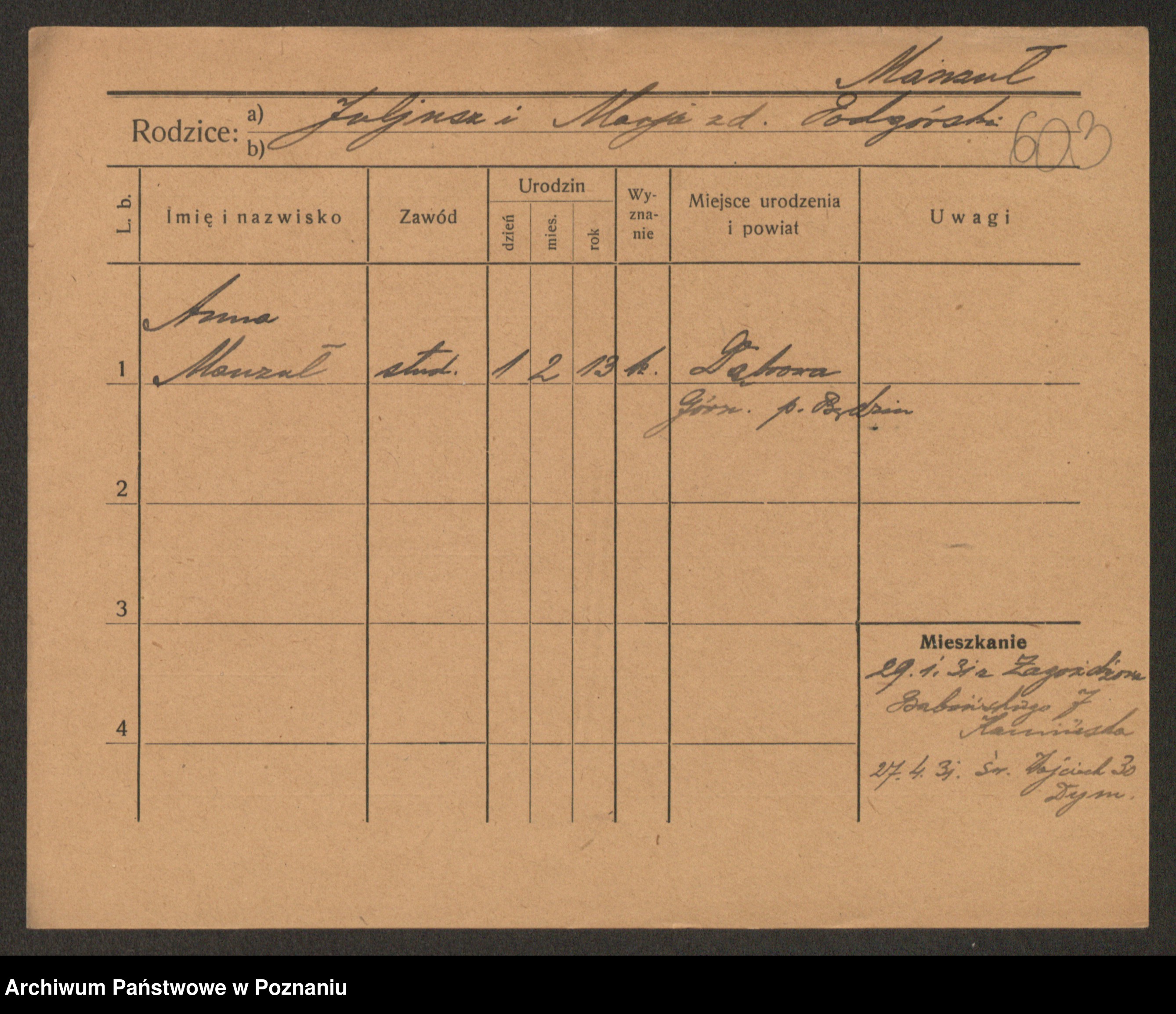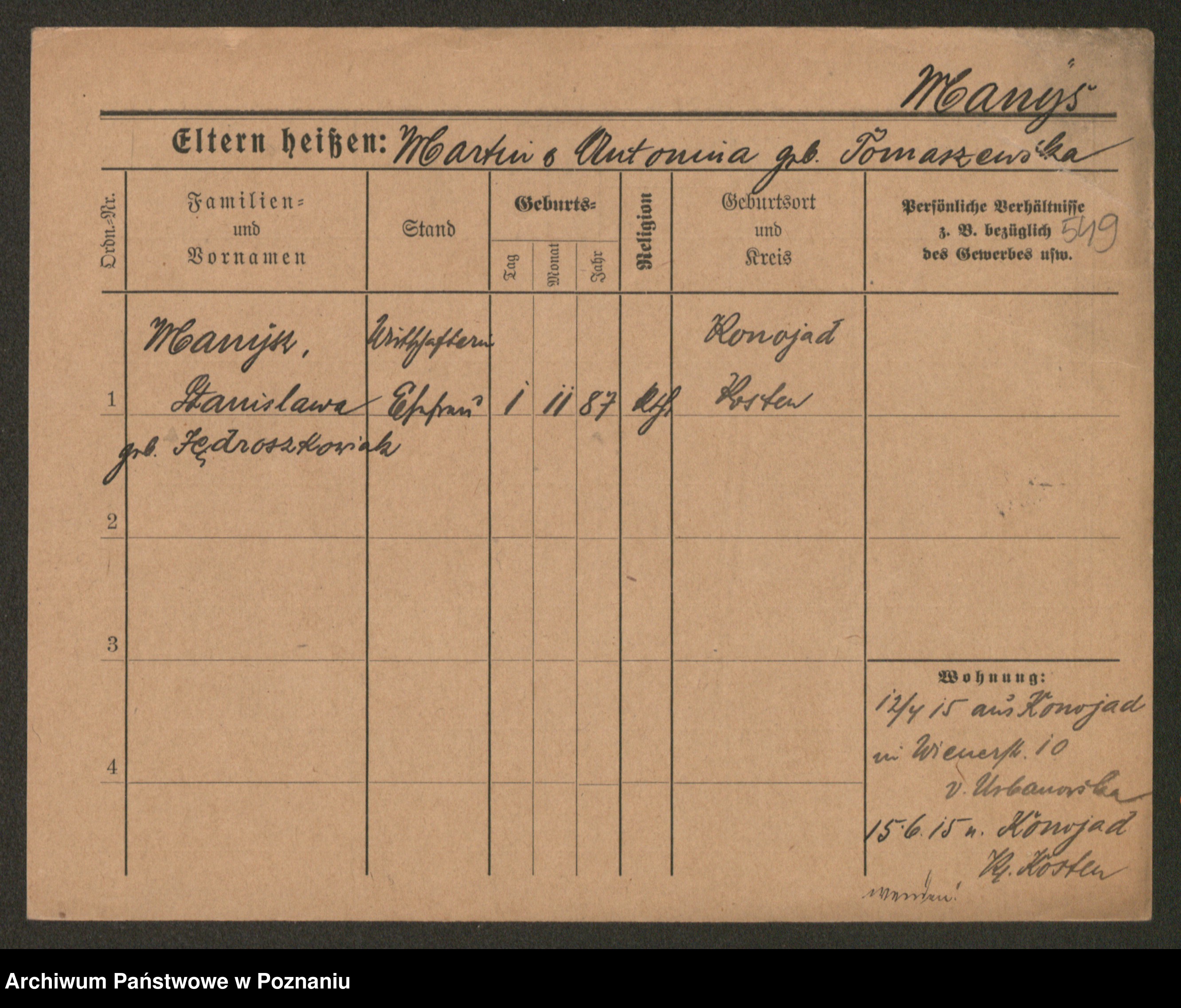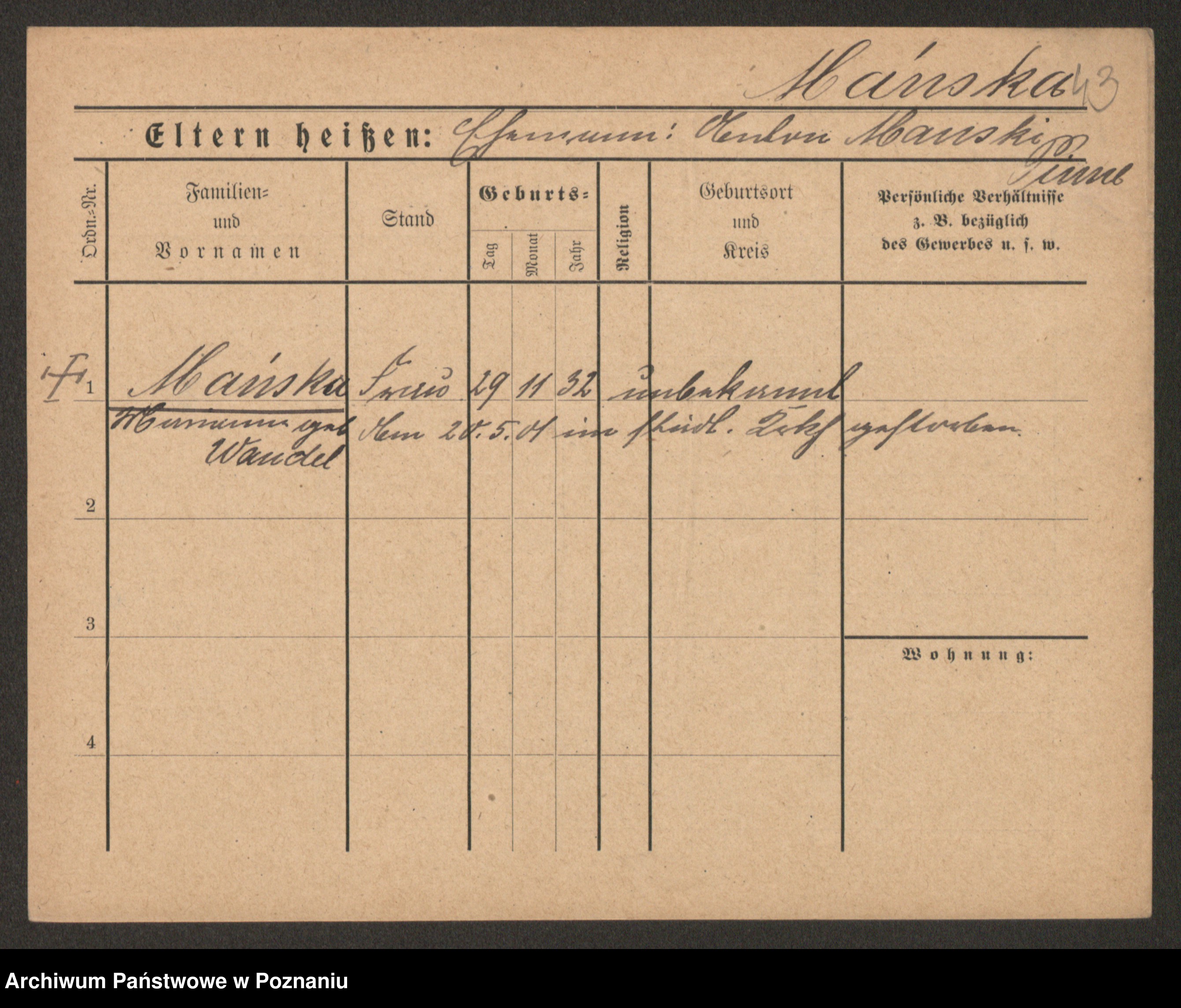 Manske zd. Cwojdzinska, Marie