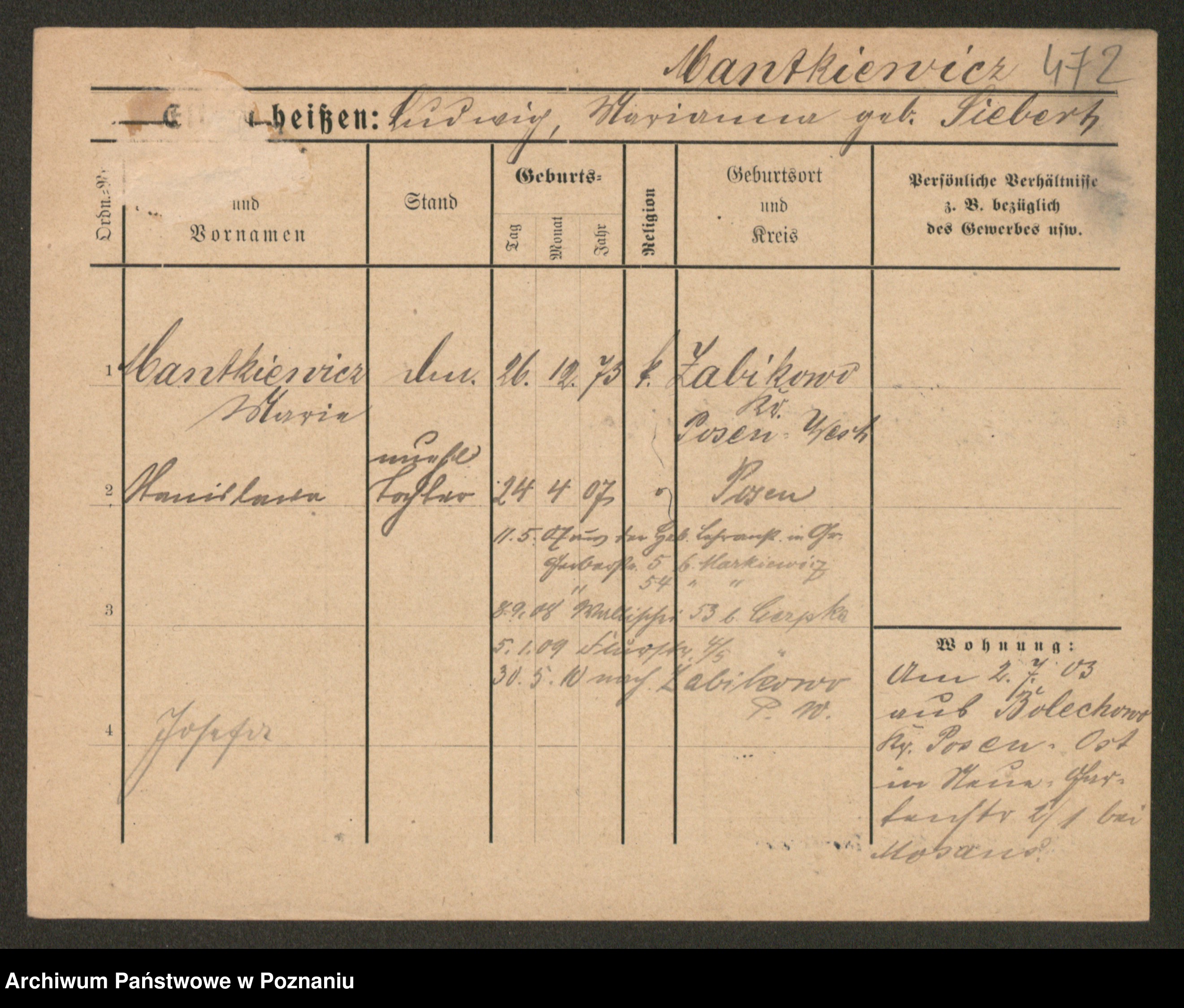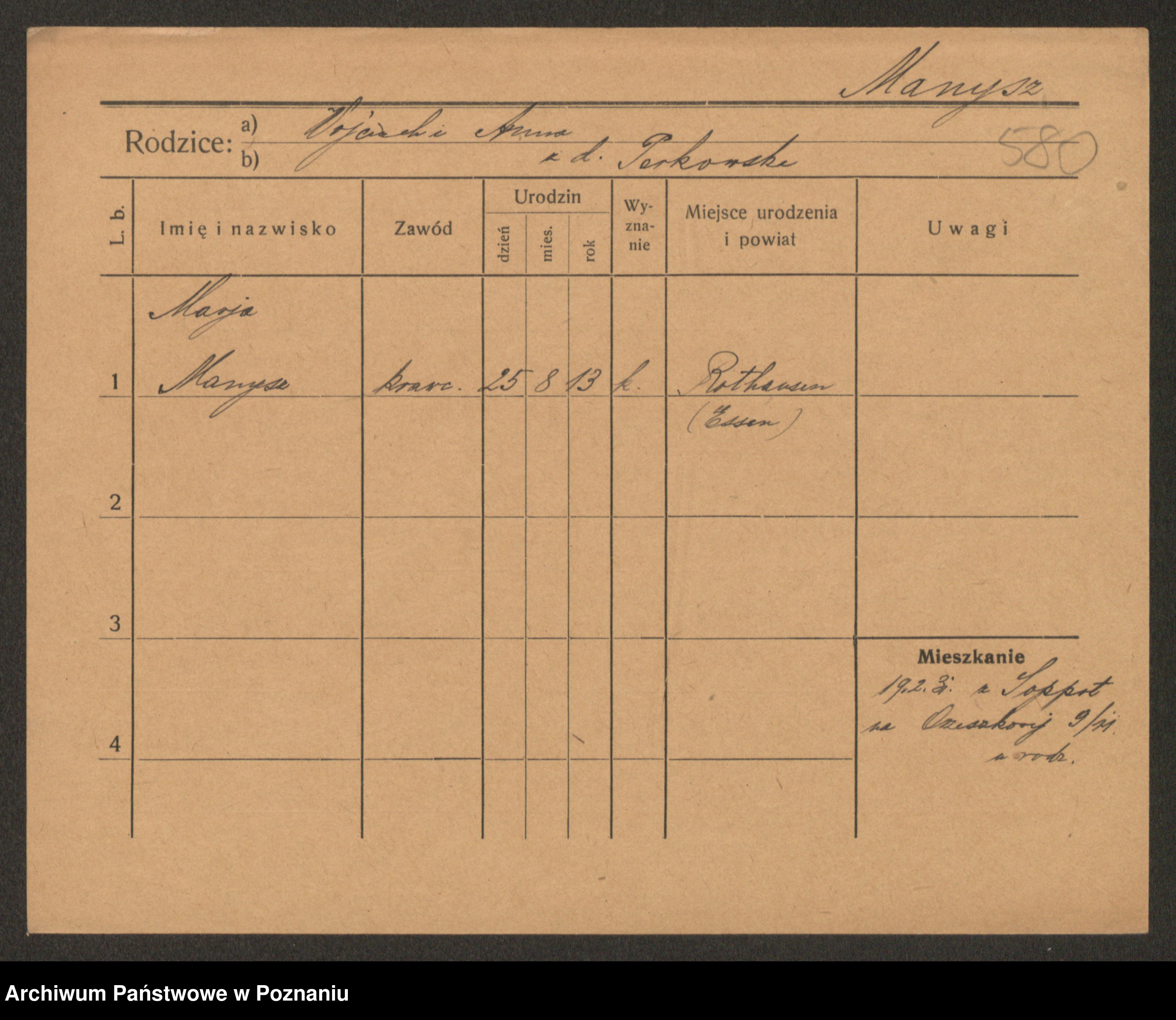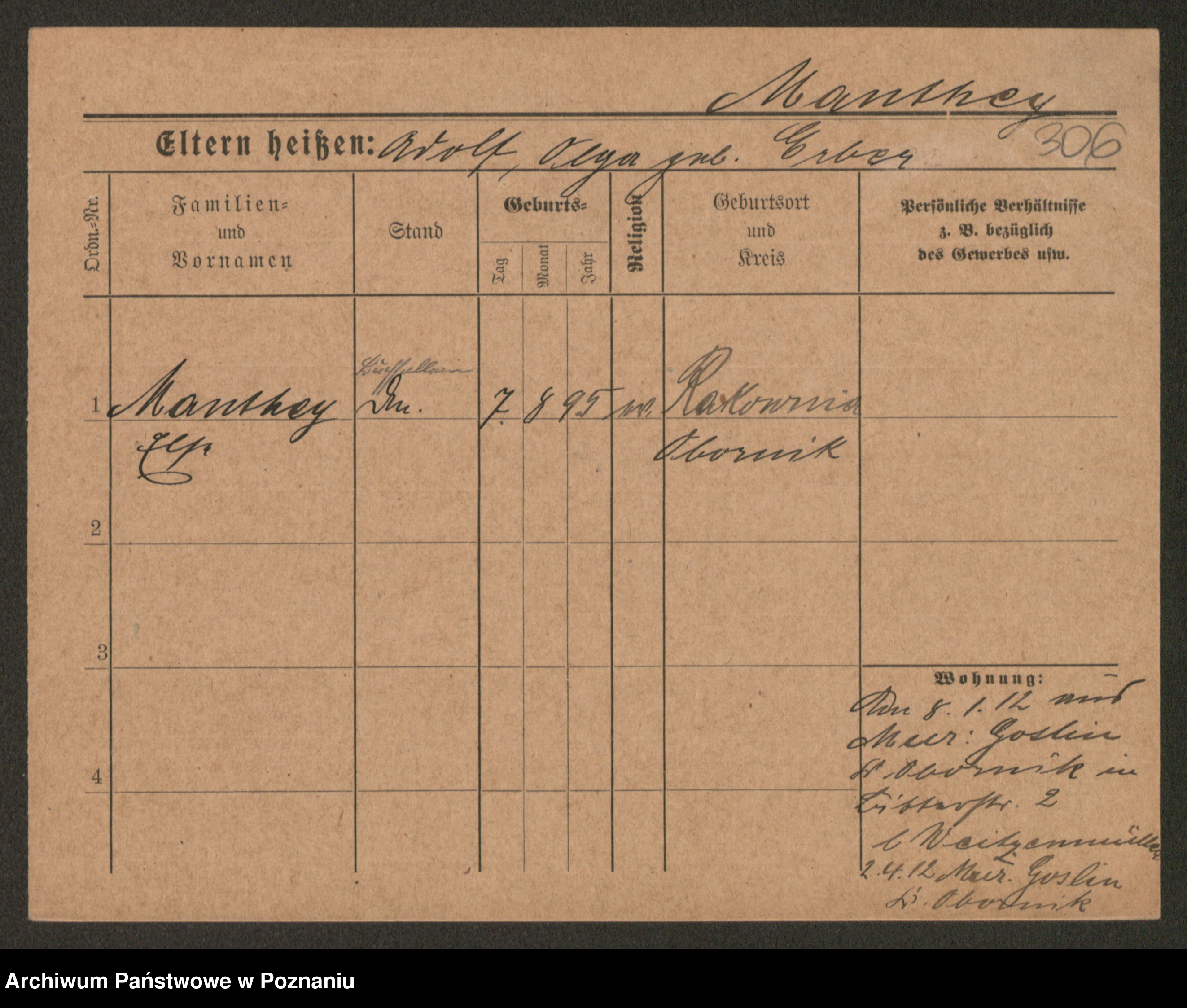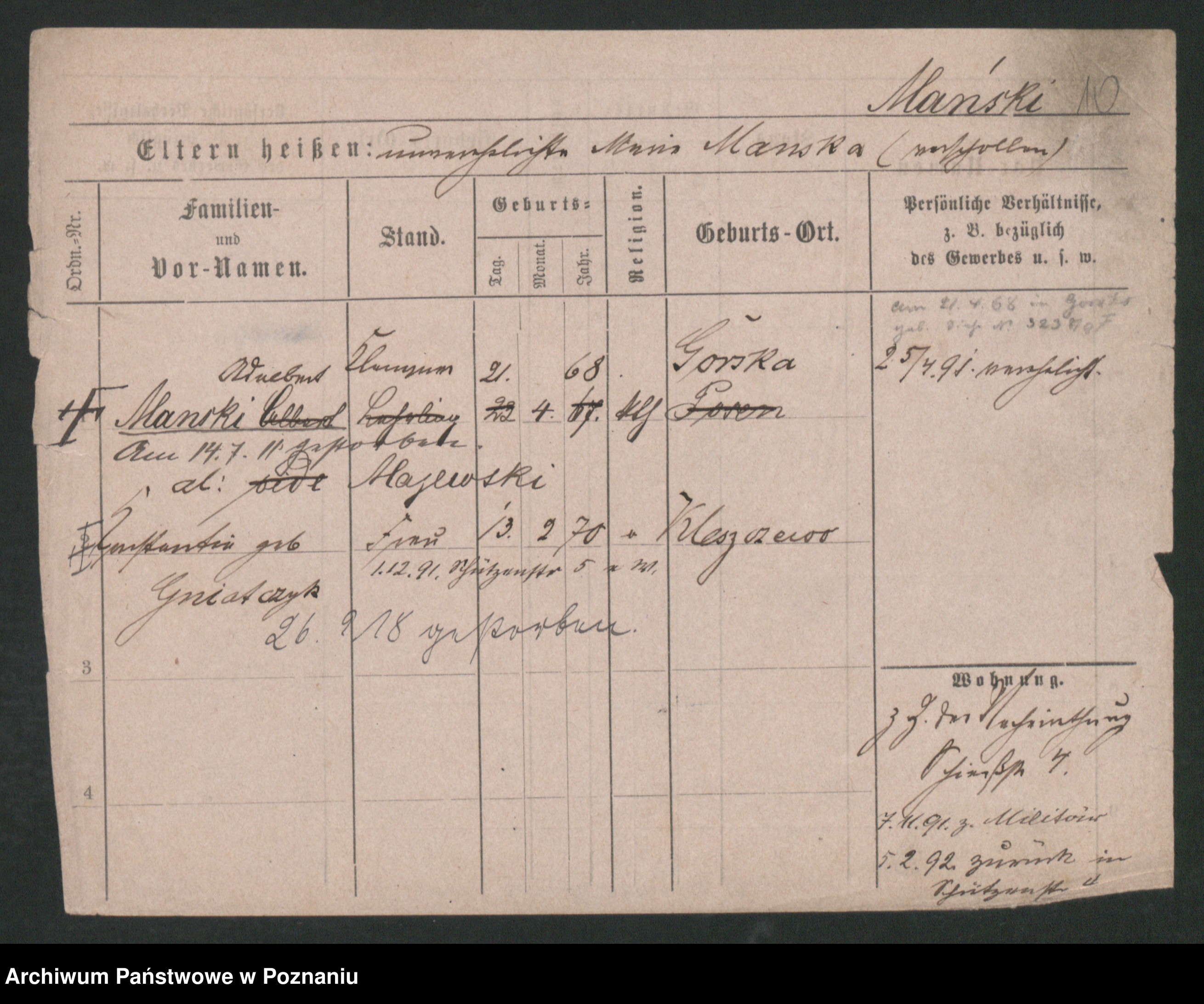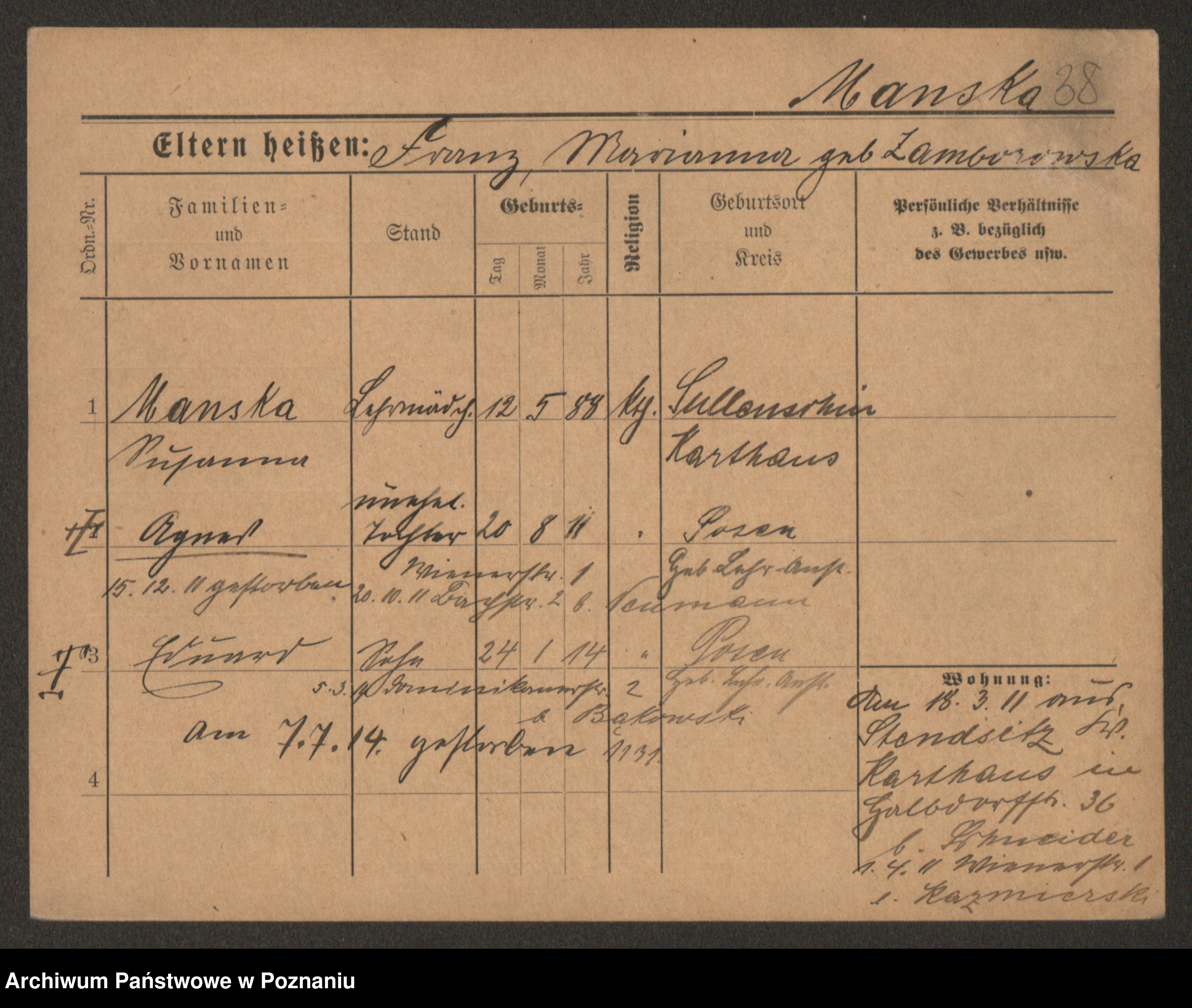 Manske zd. Cwojdzinska, Marie