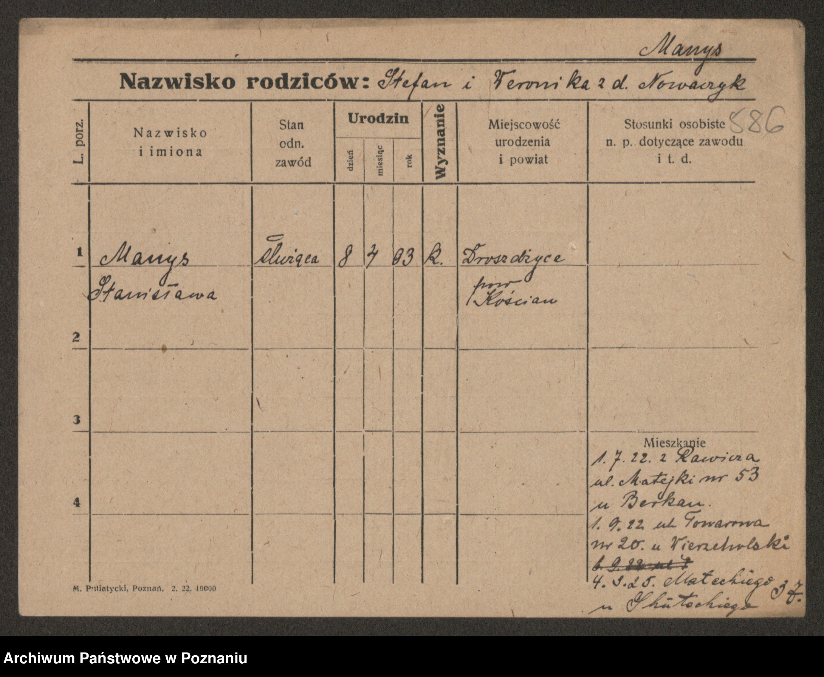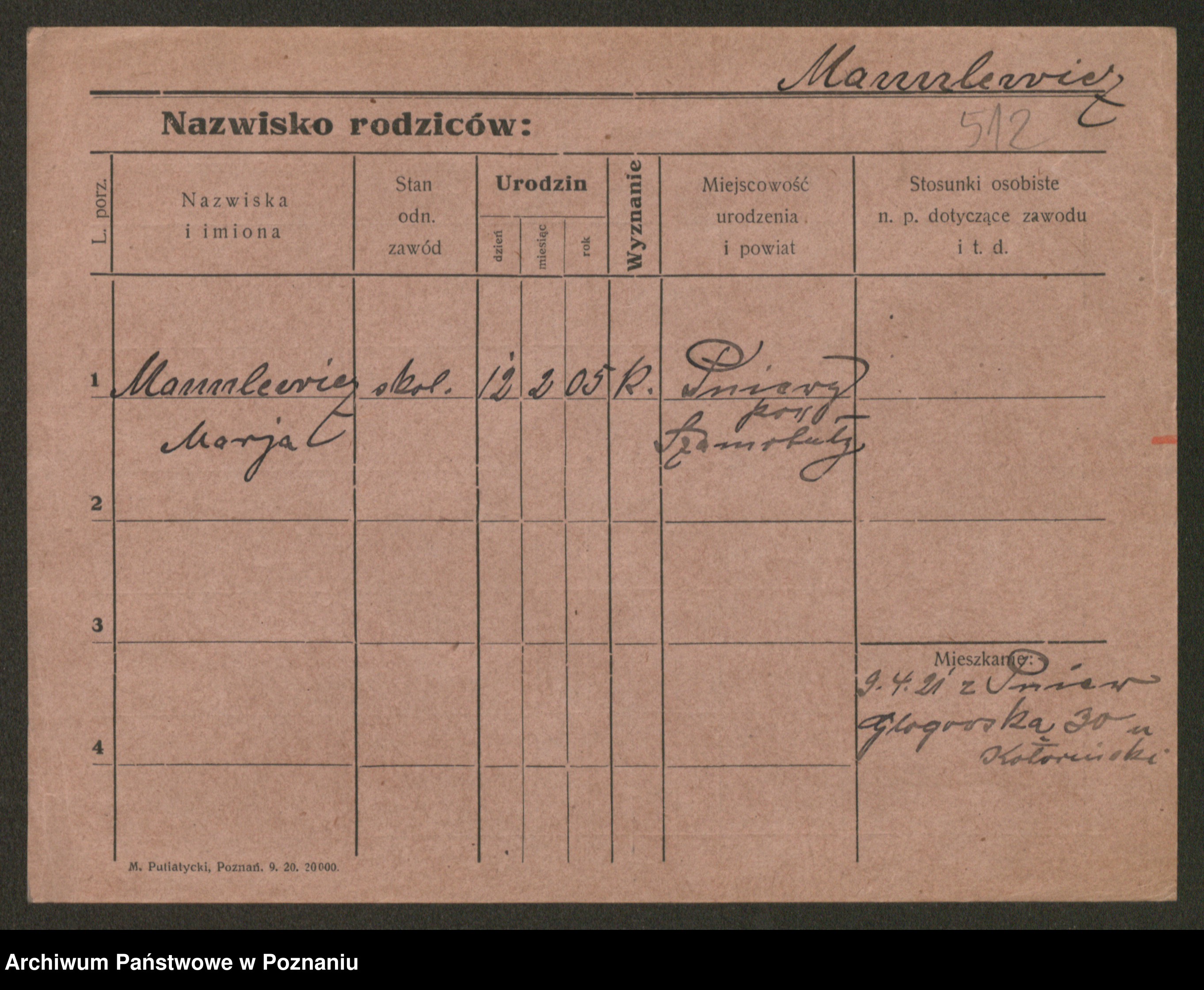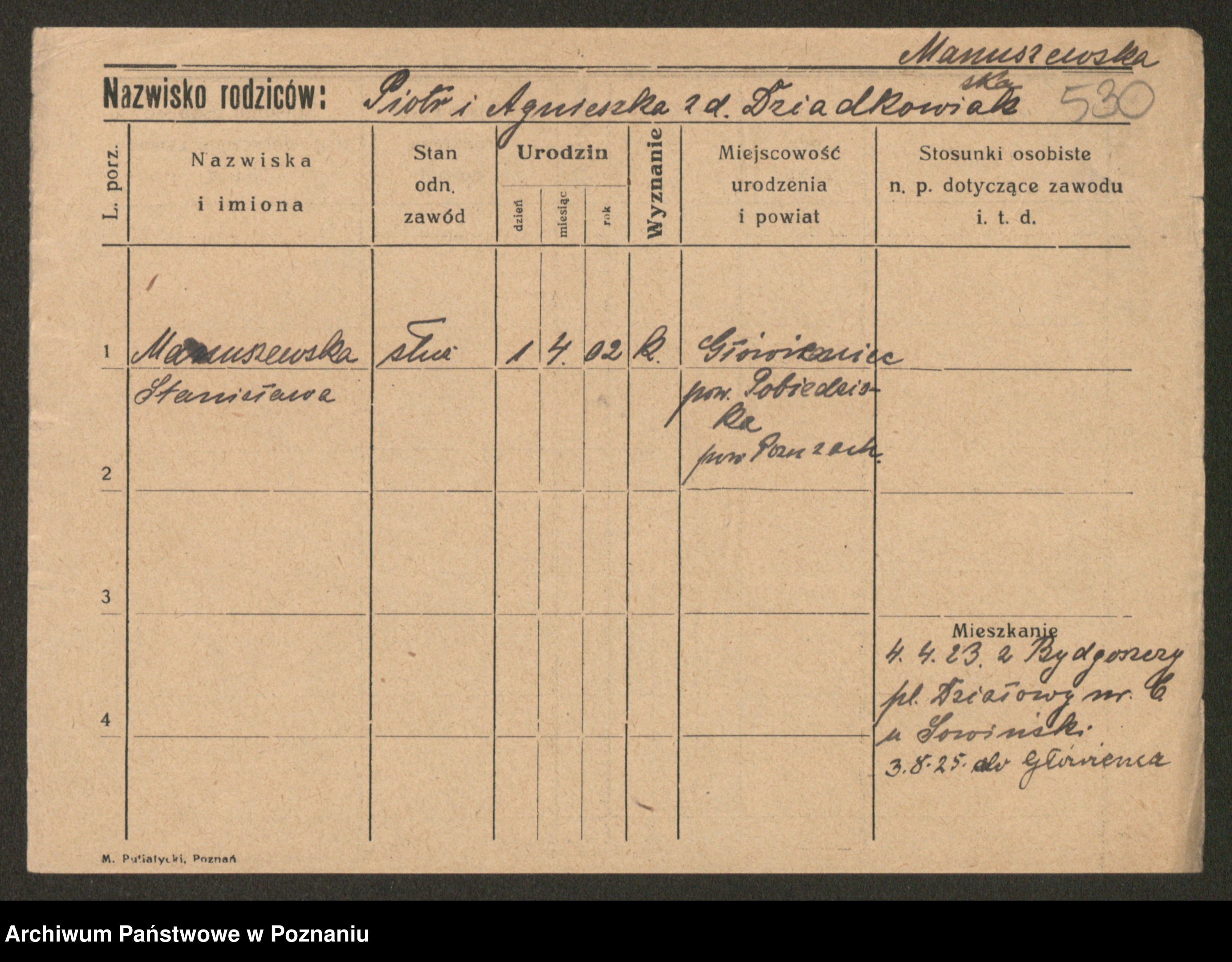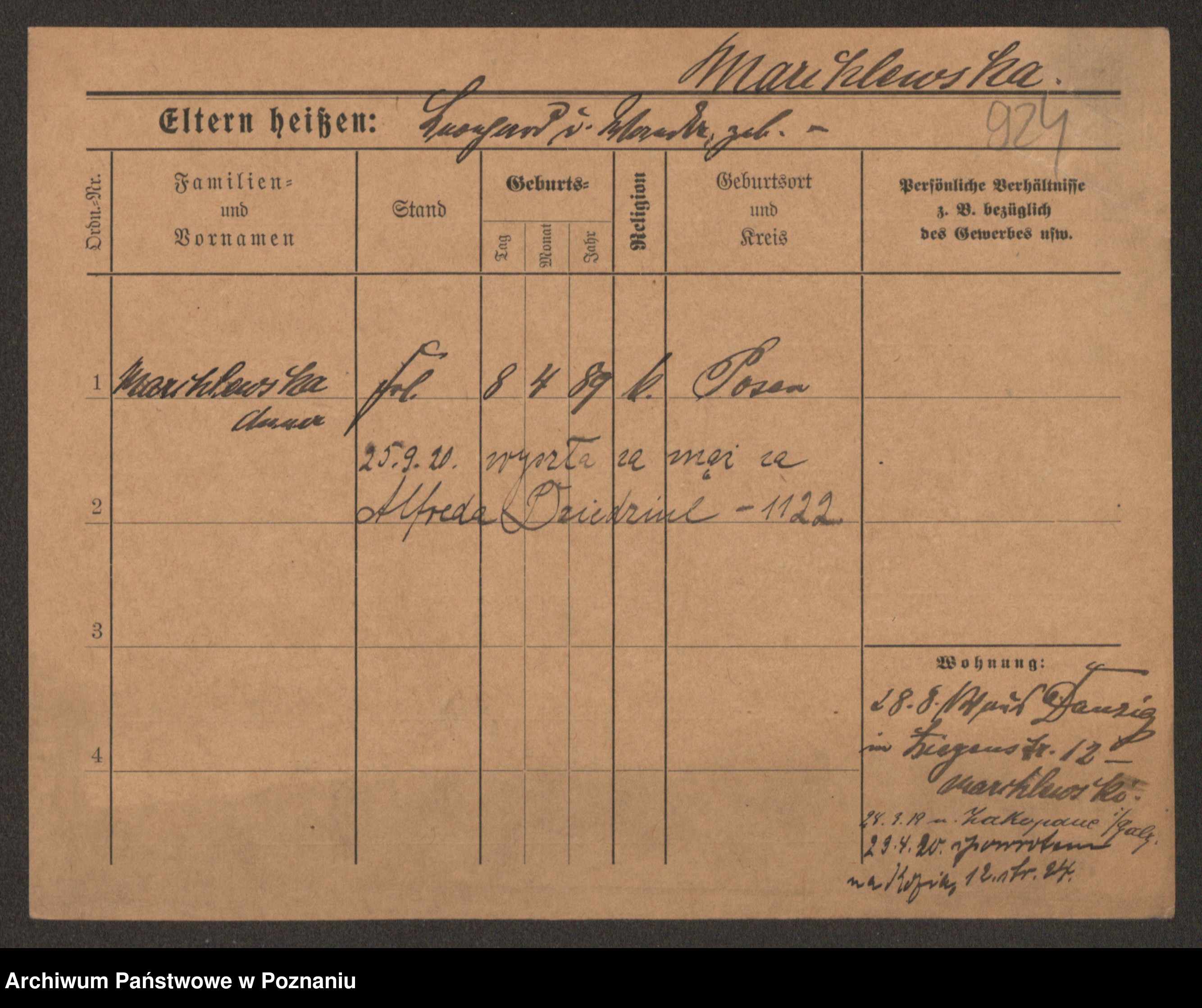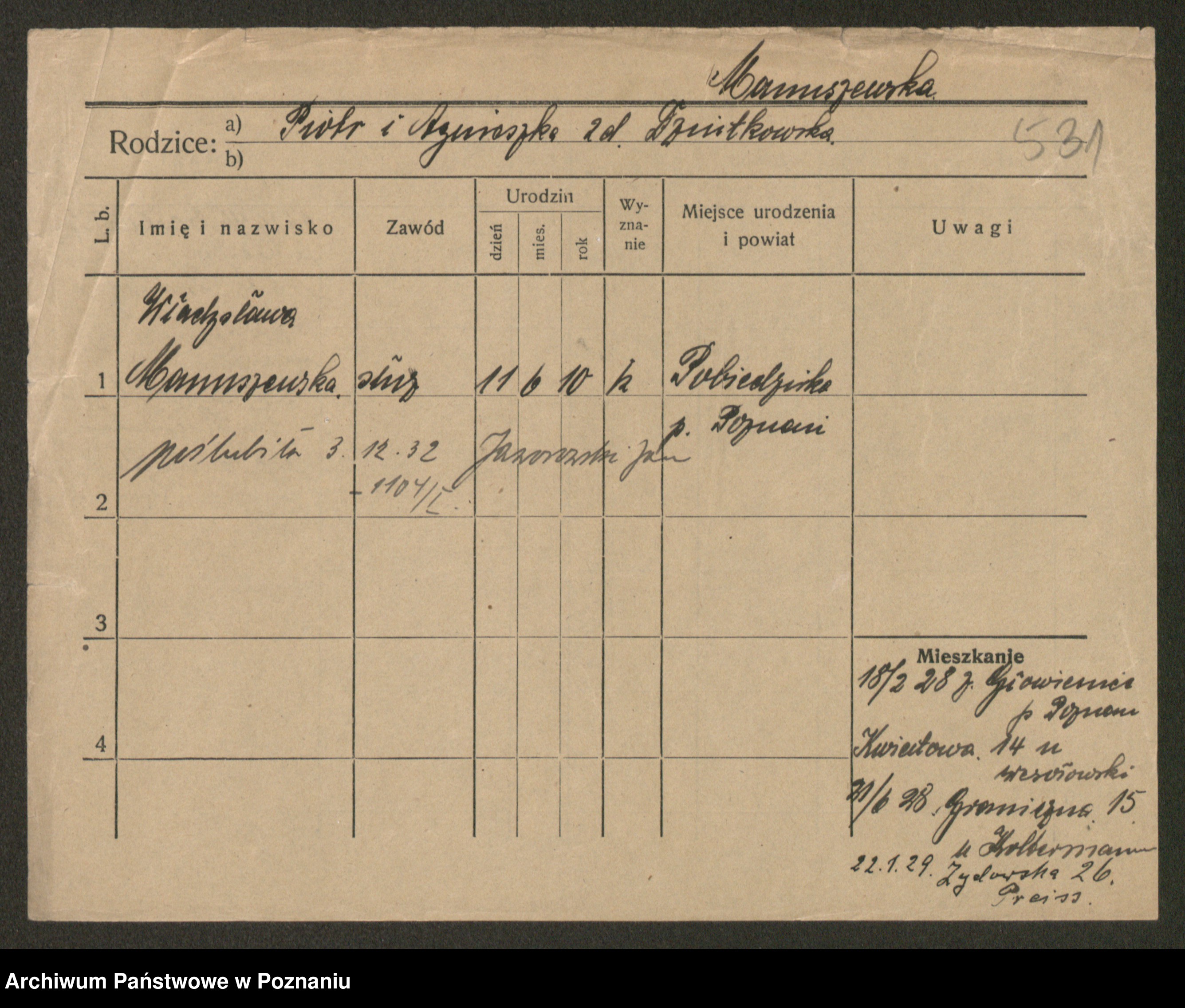 Manske zd. Cwojdzinska, Marie