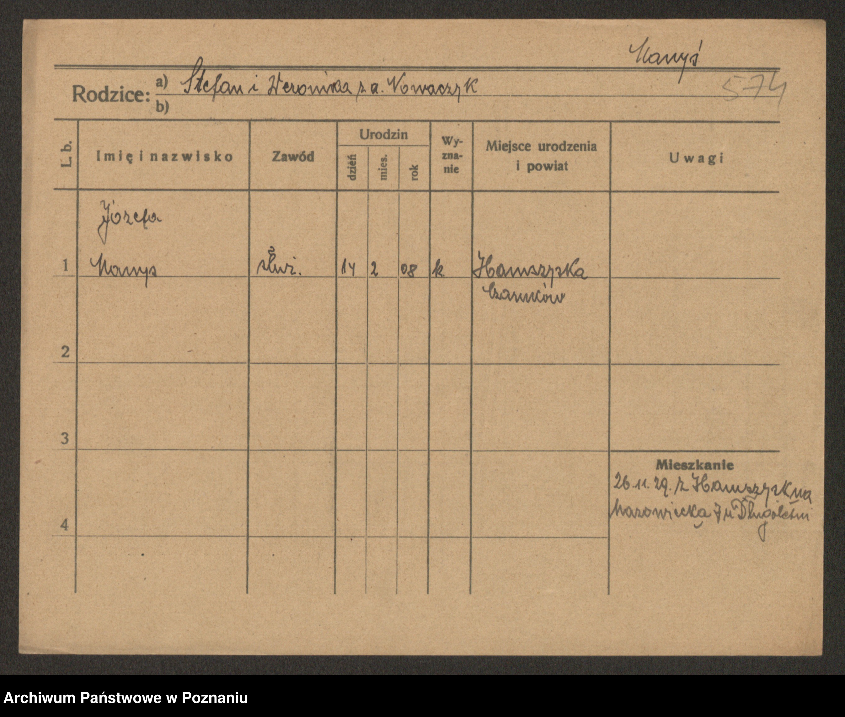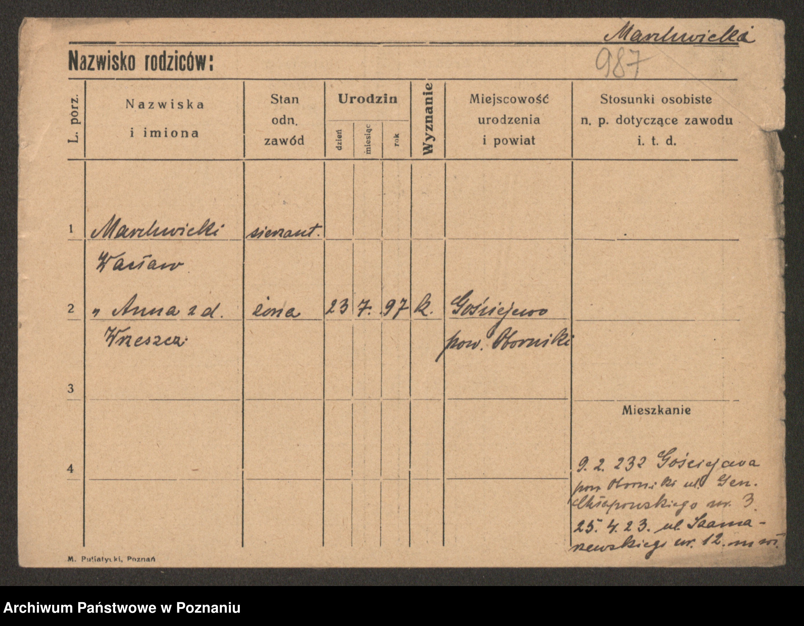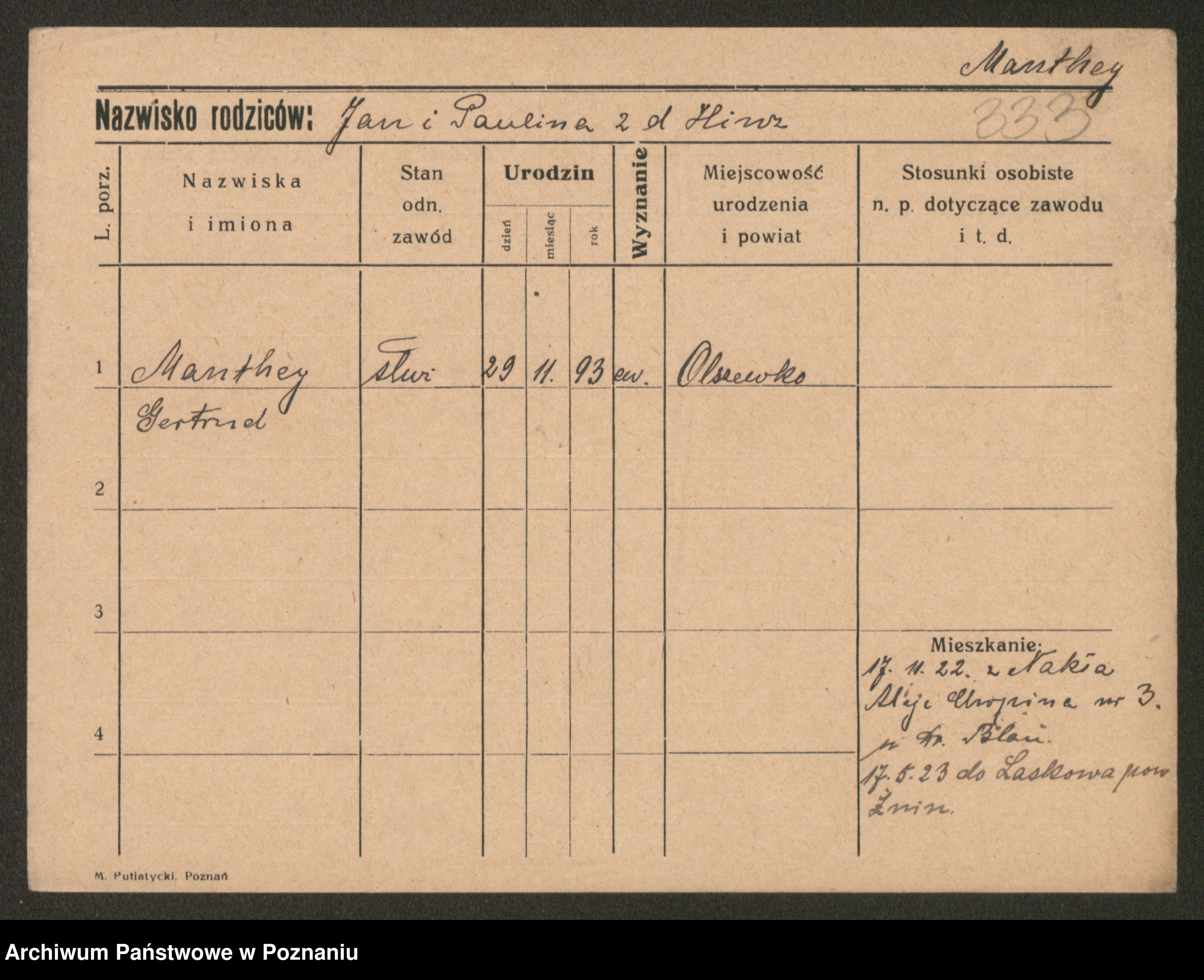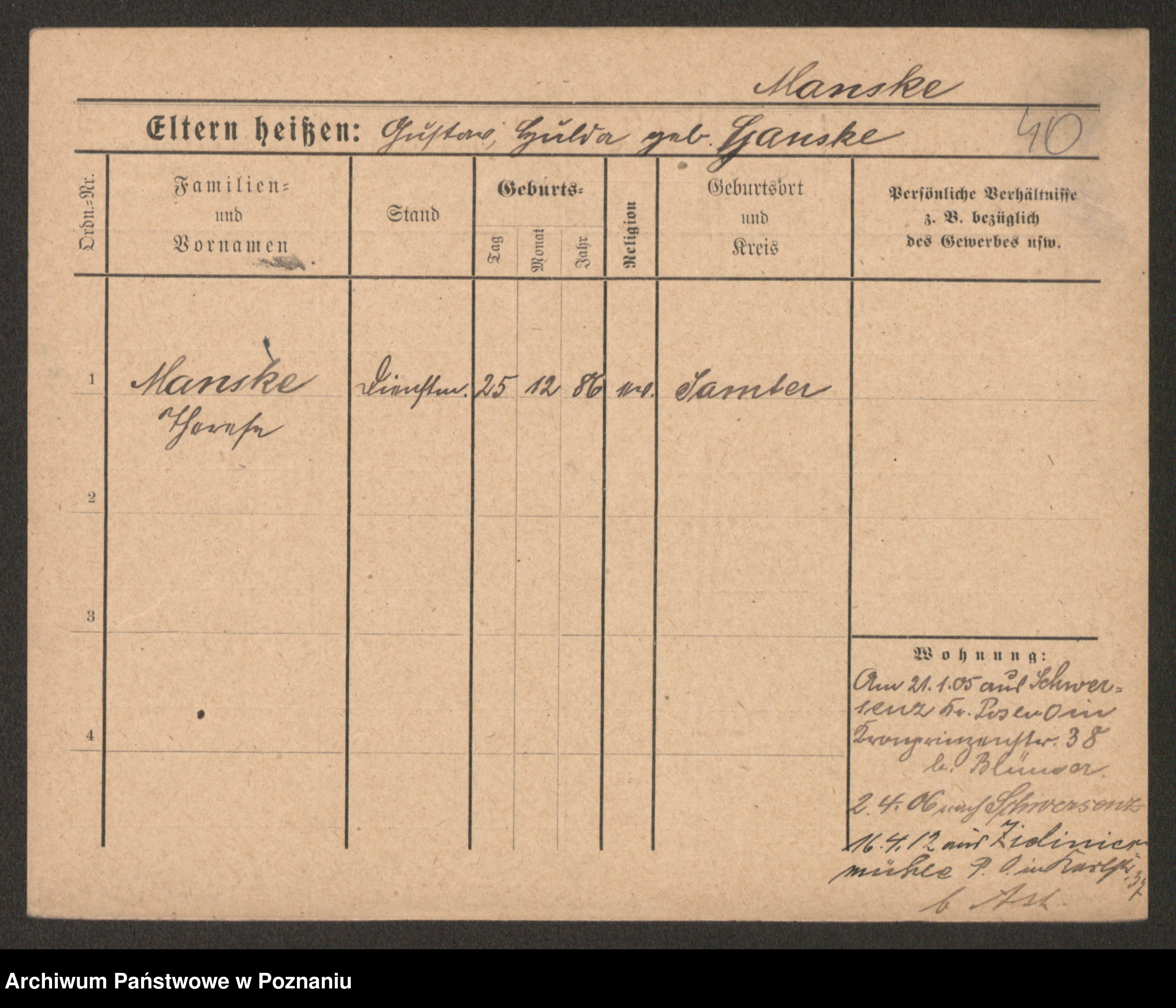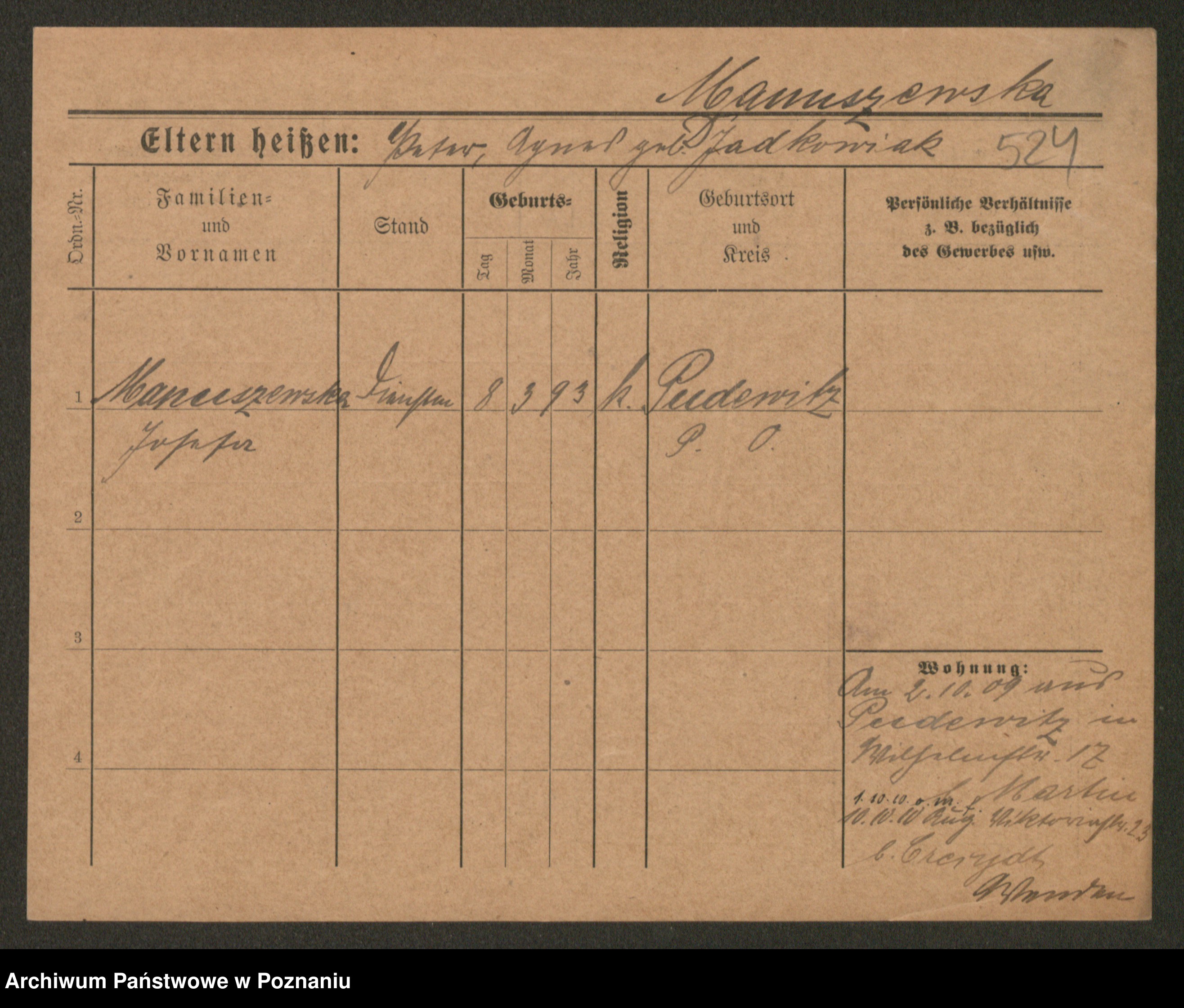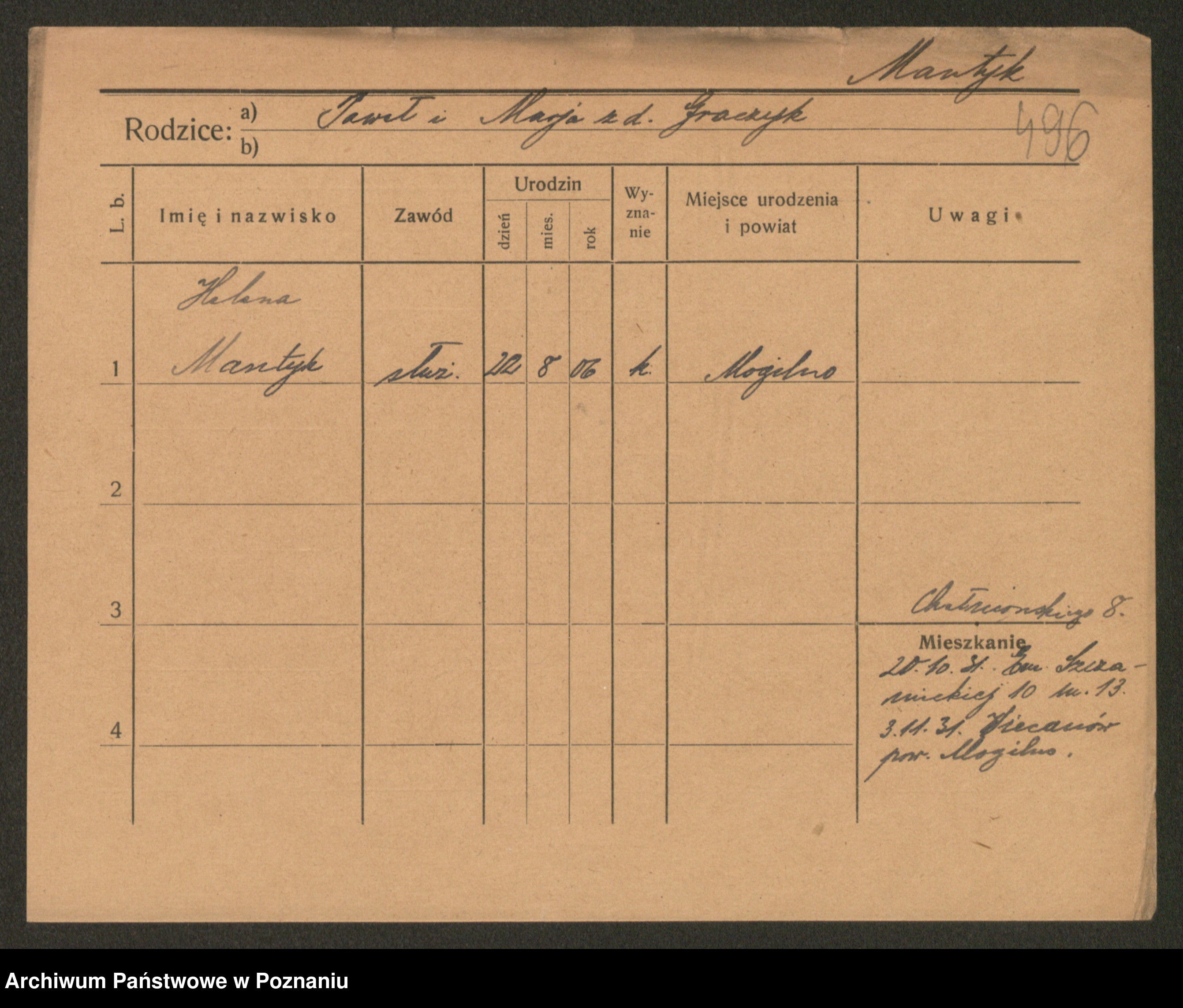 Manske zd. Cwojdzinska, Marie