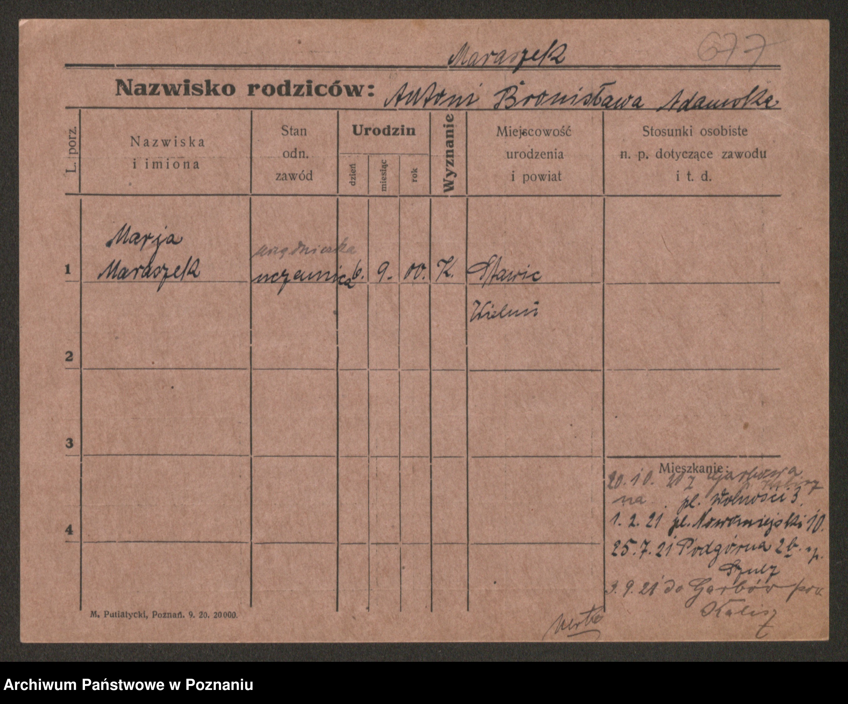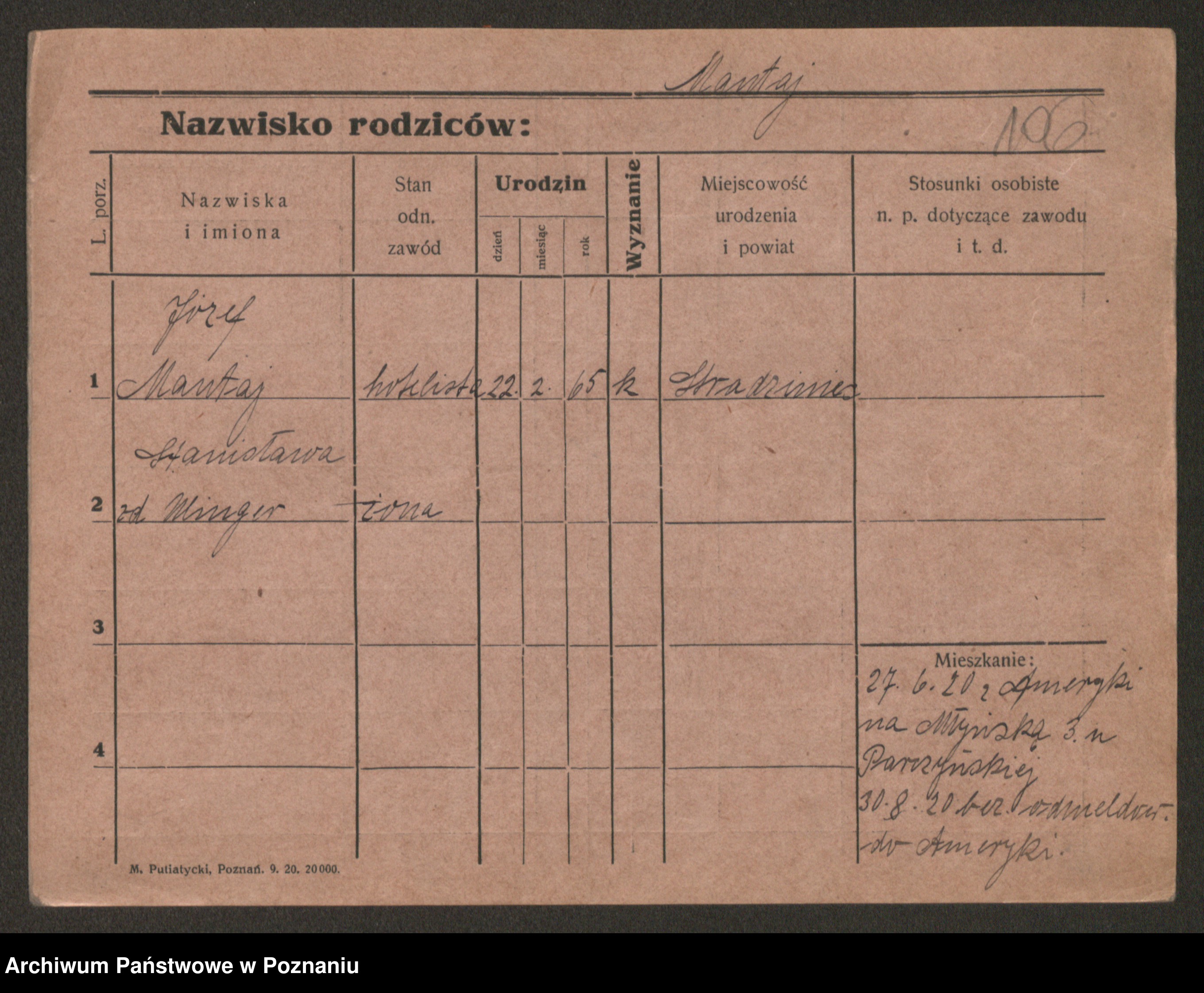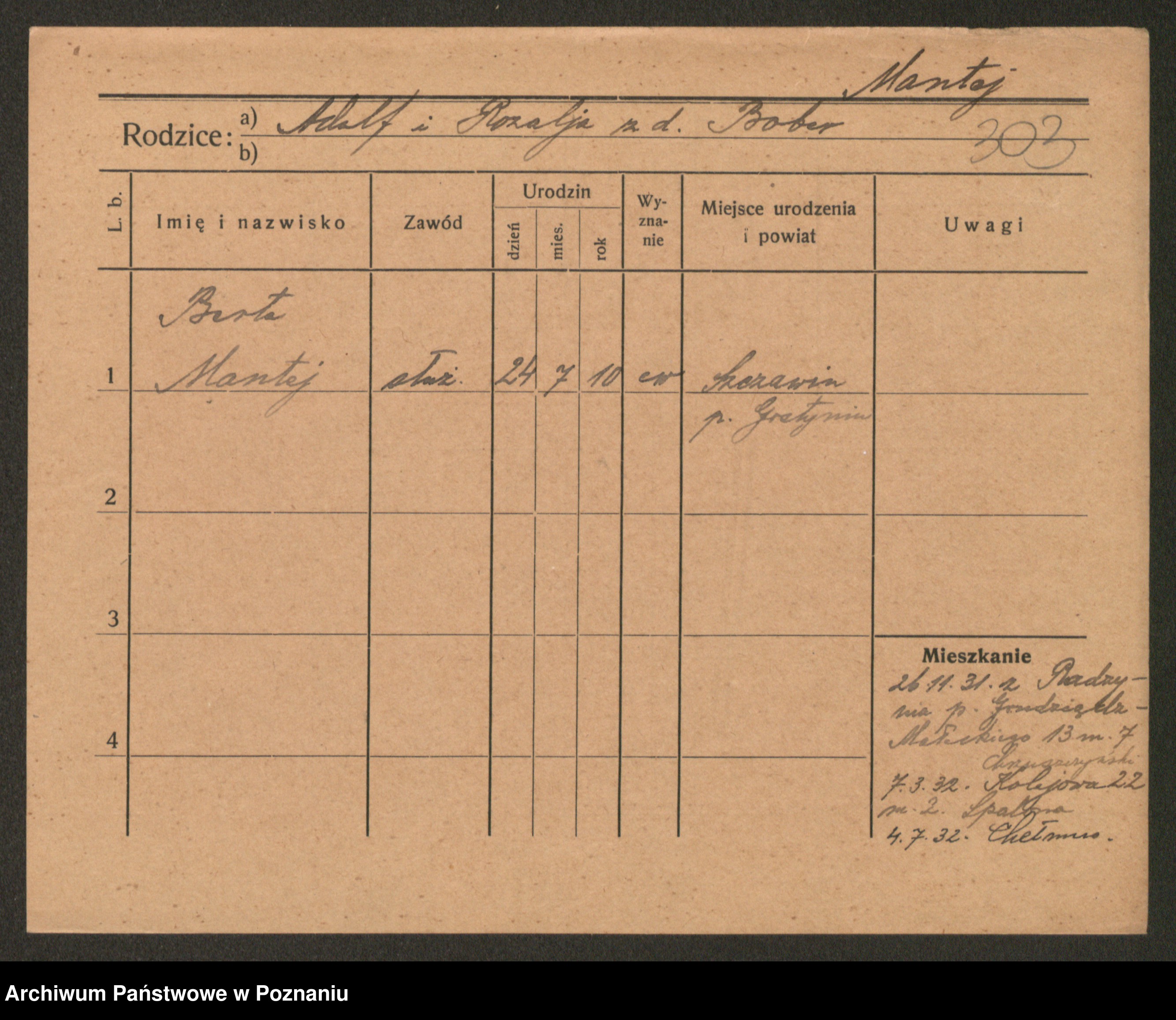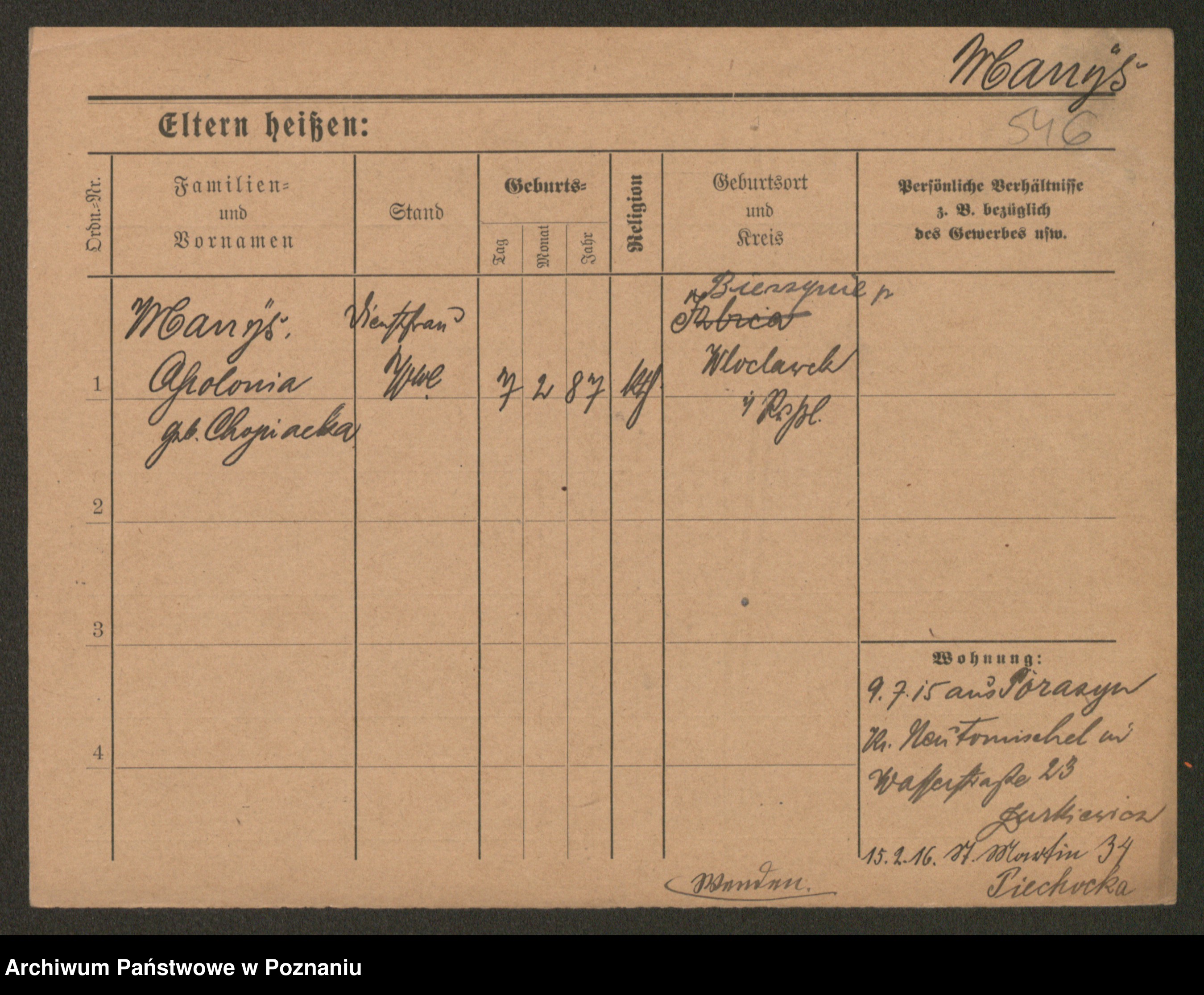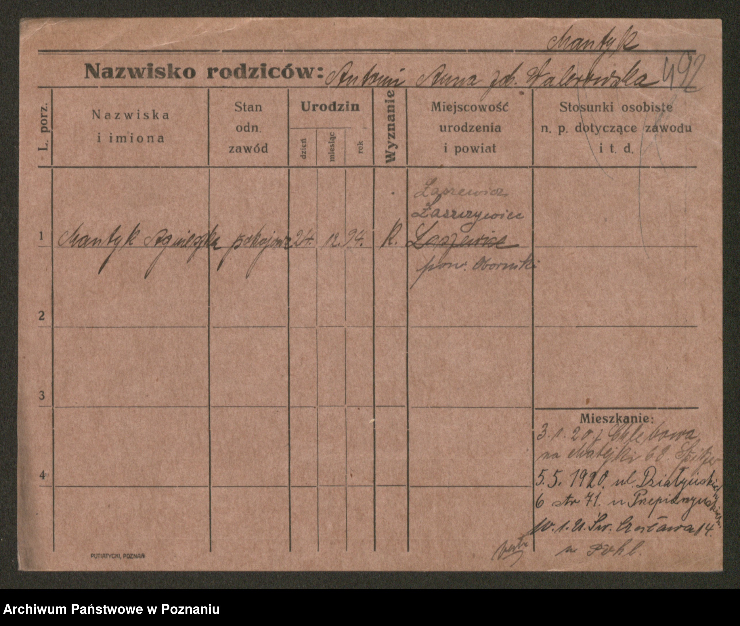 Manske zd. Cwojdzinska, Marie