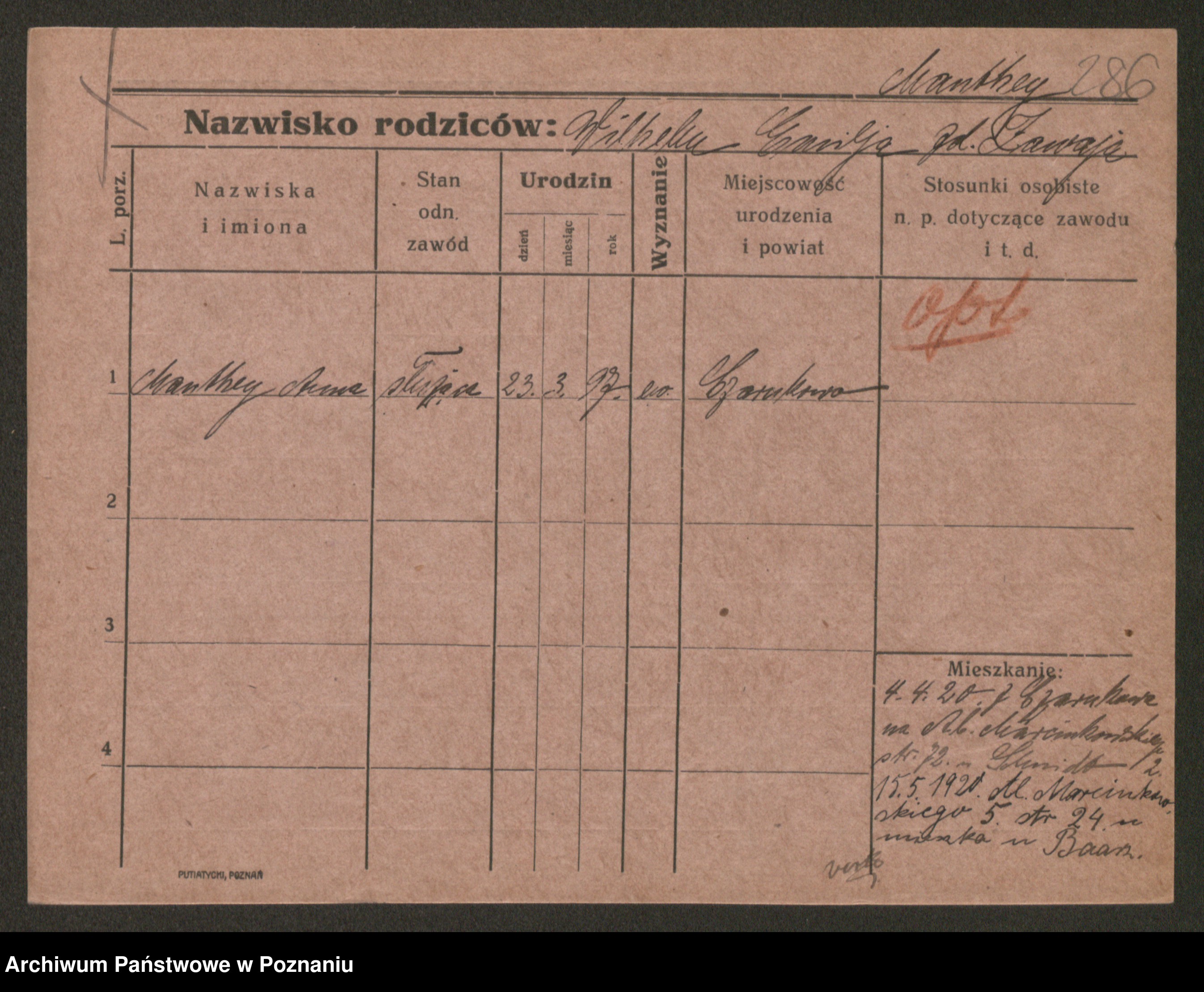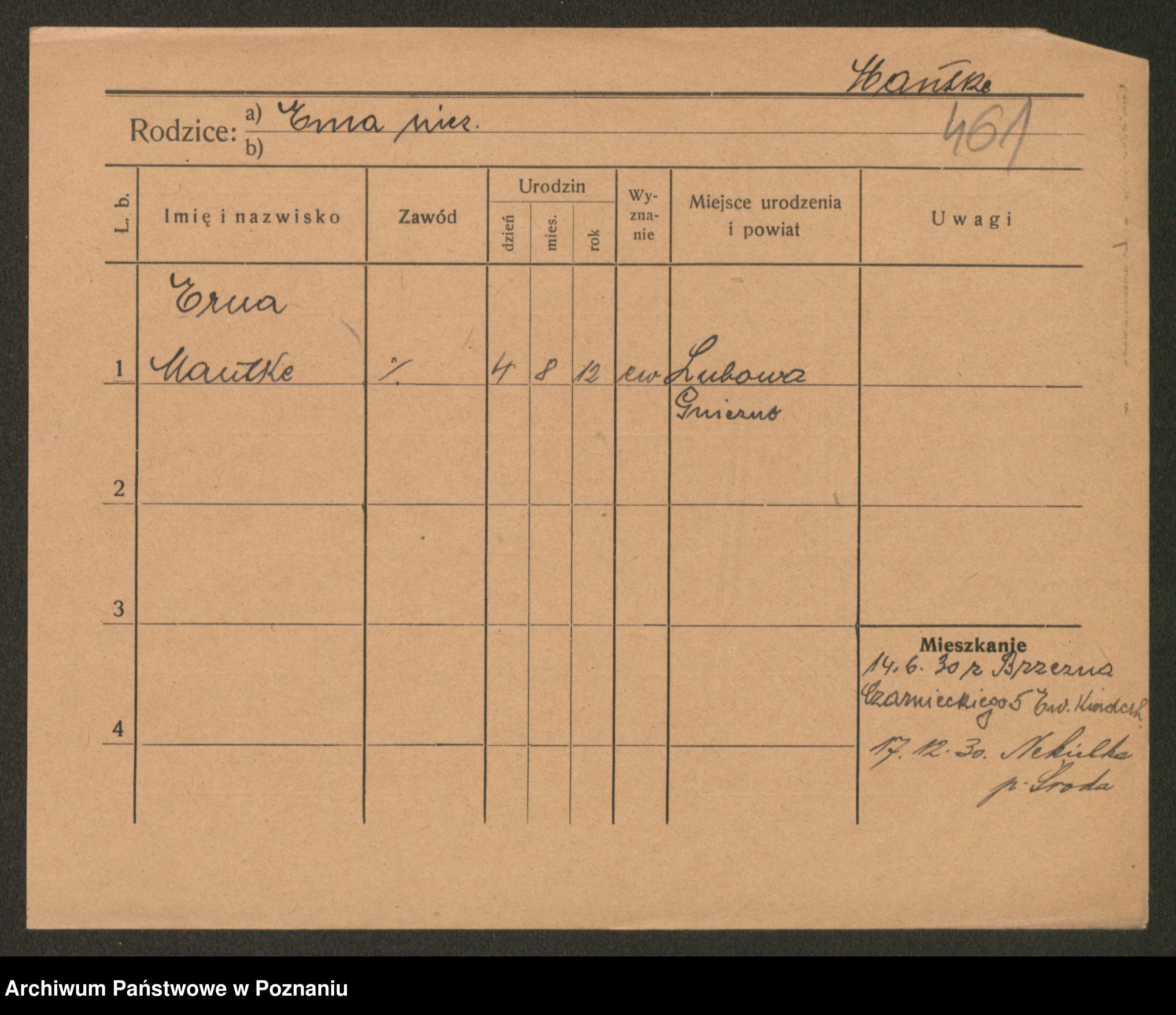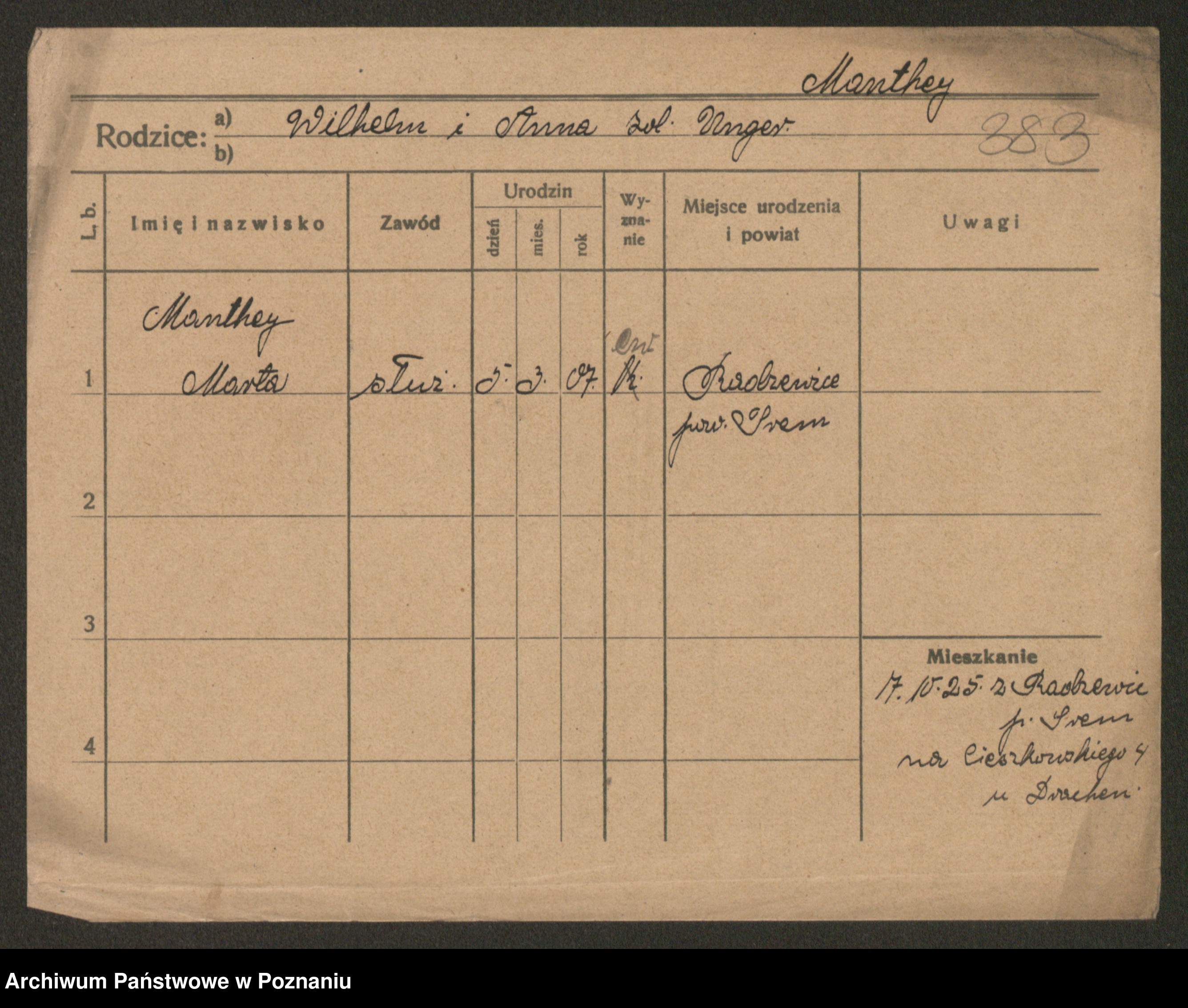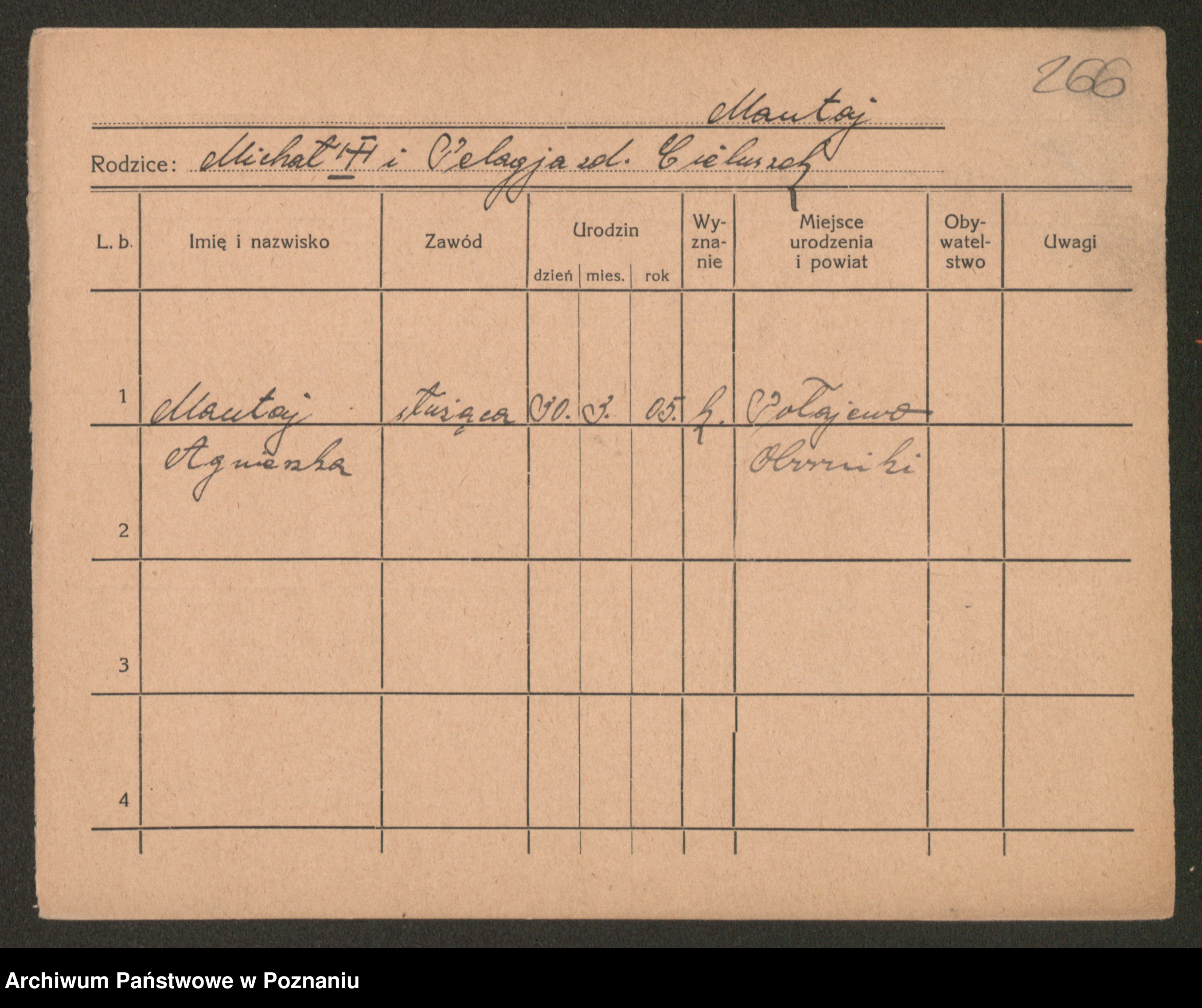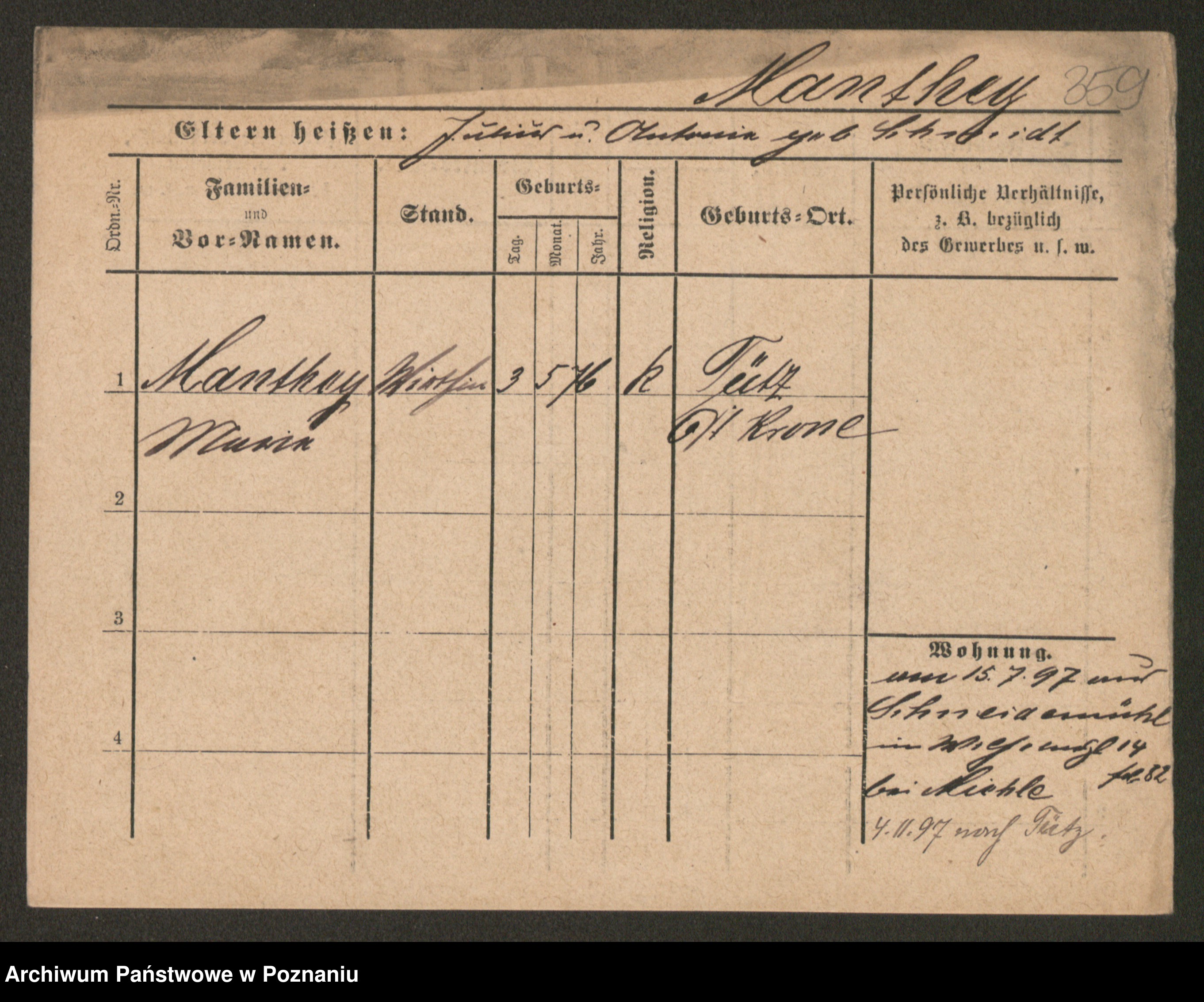 Manske zd. Cwojdzinska, Marie