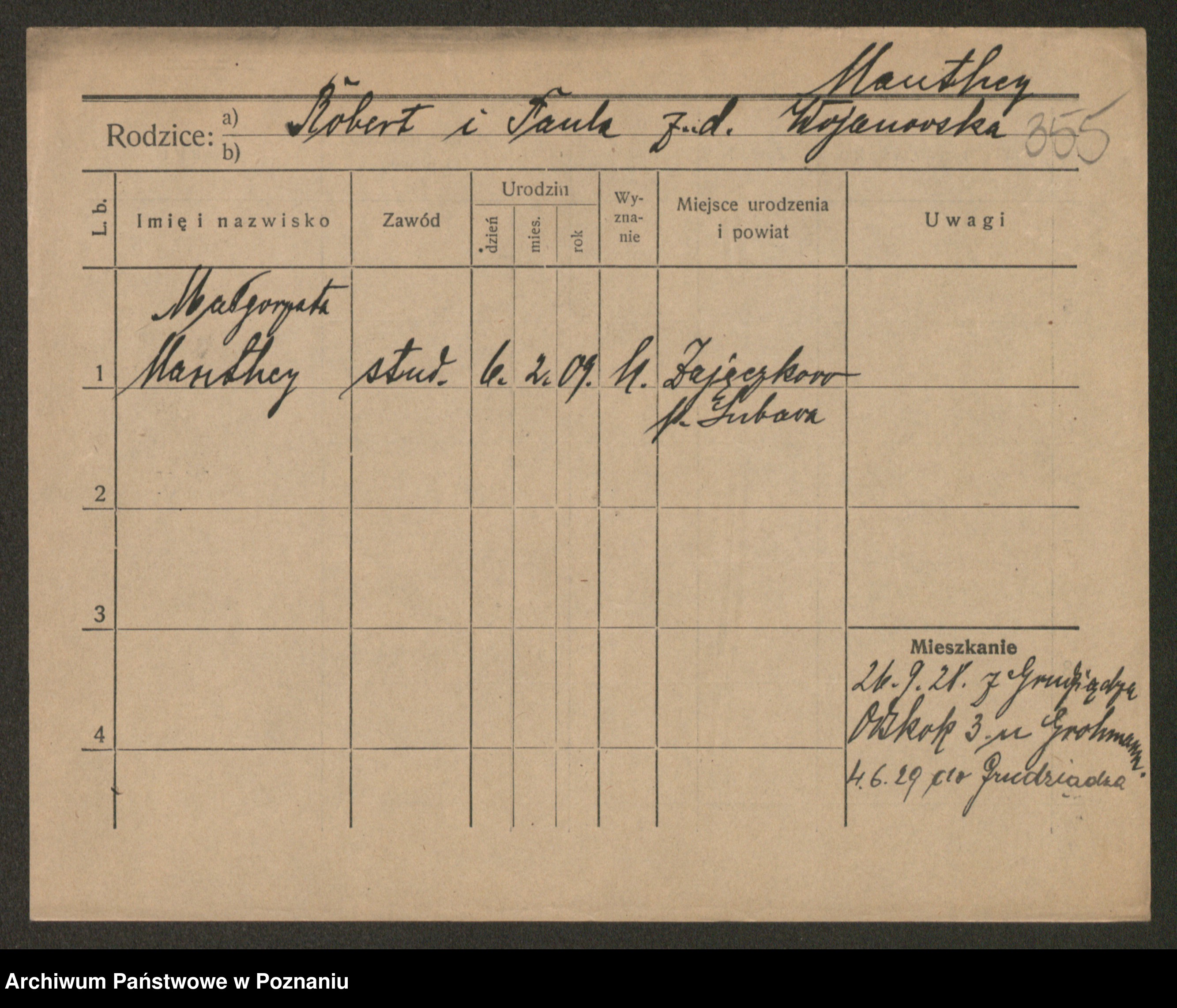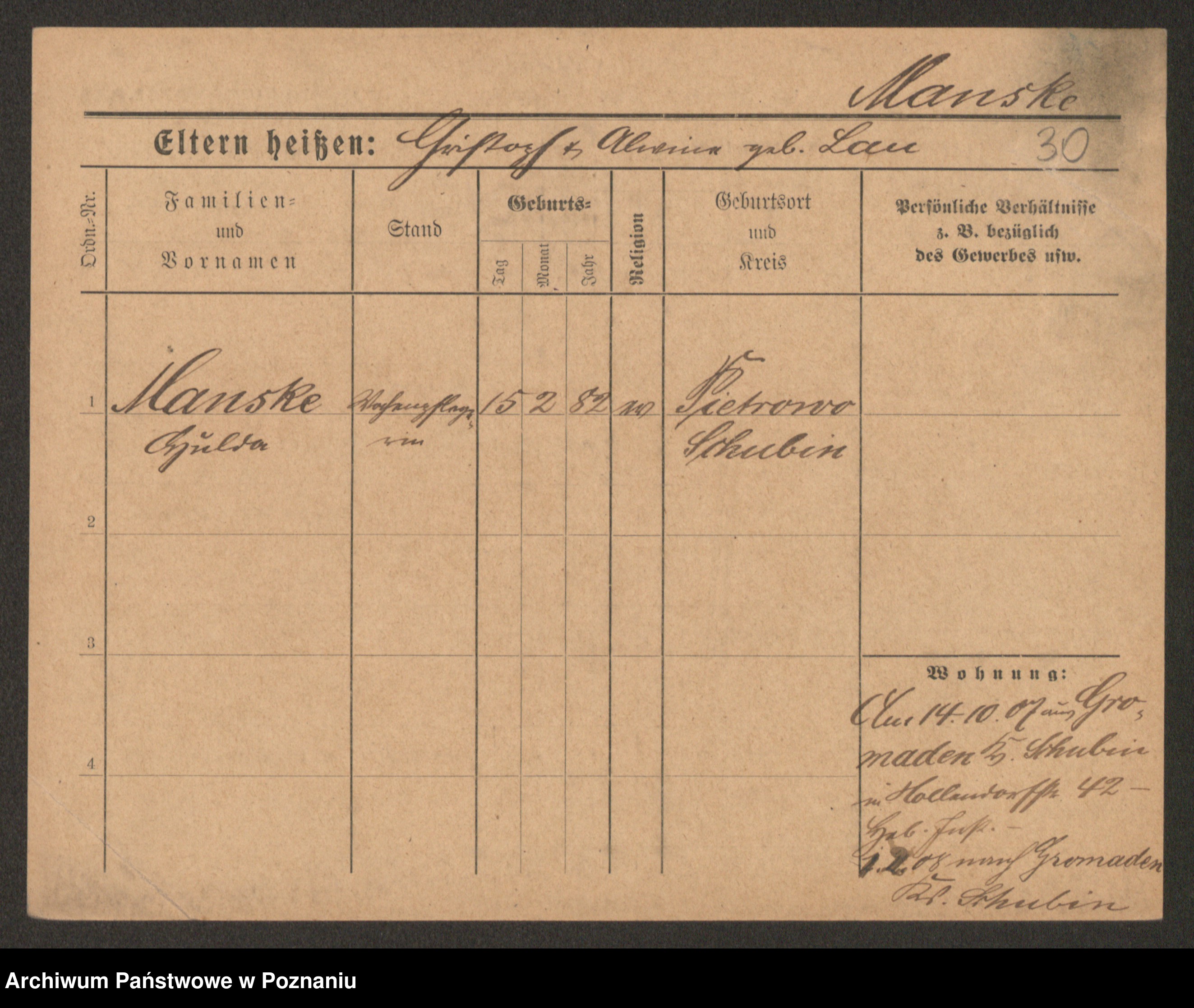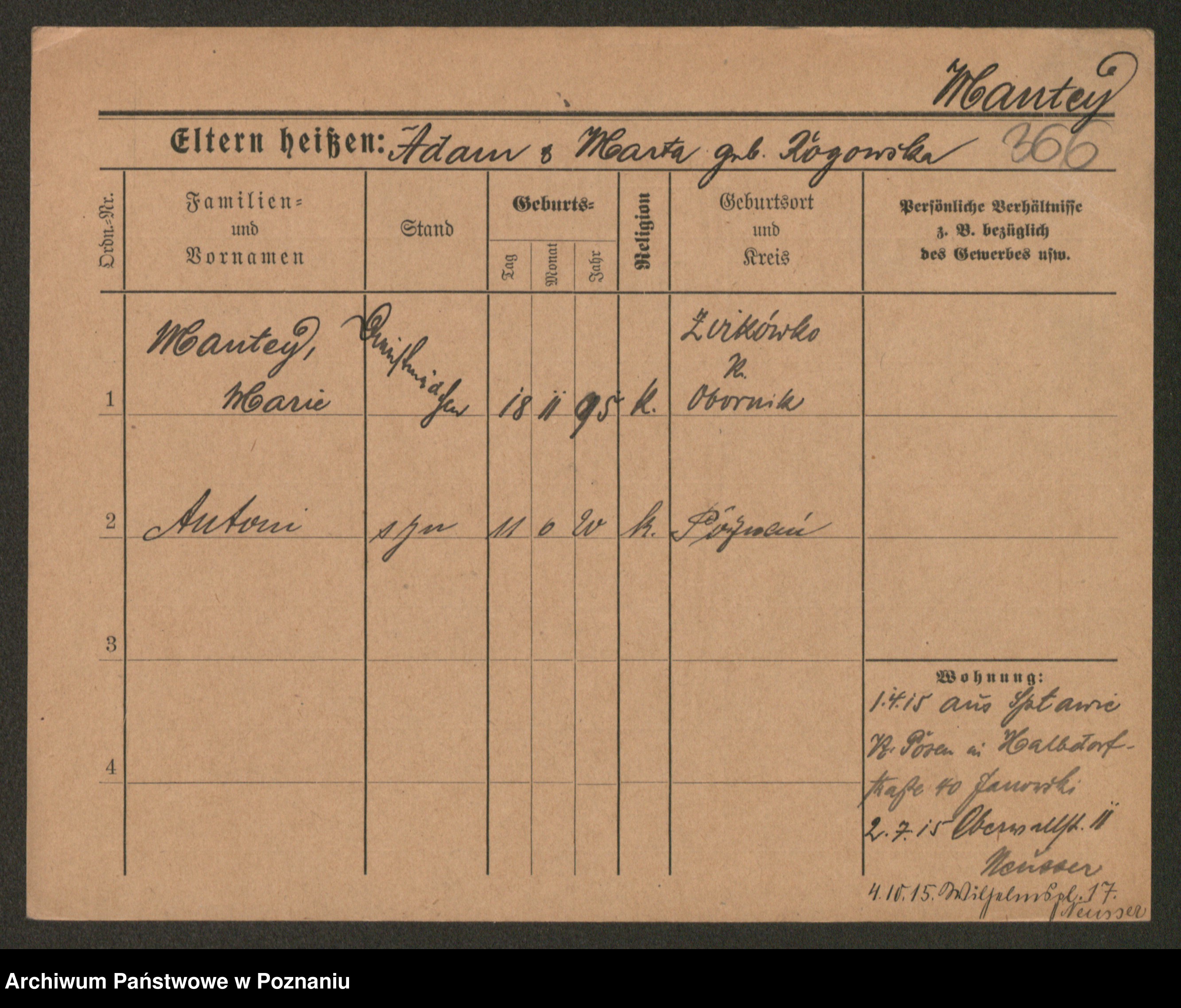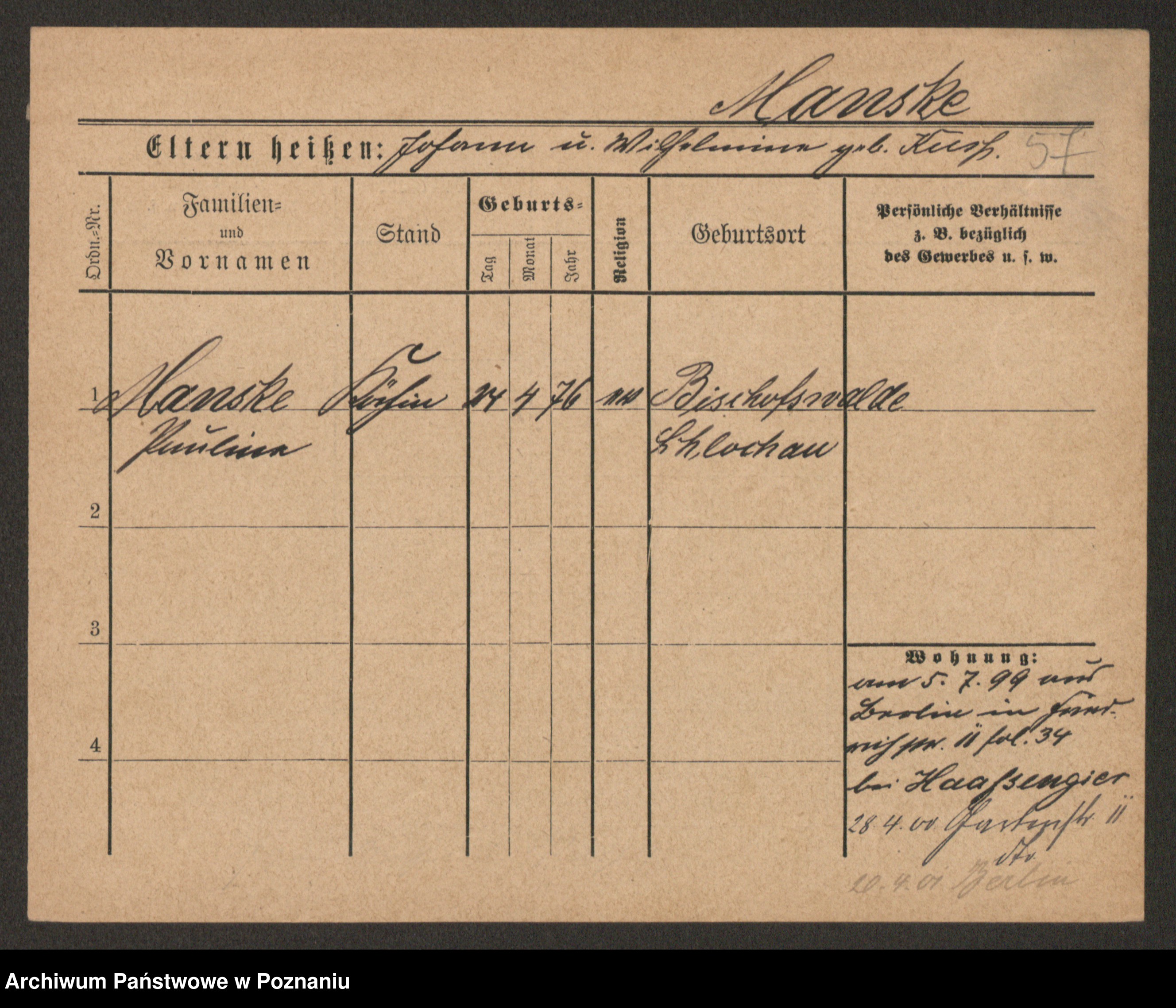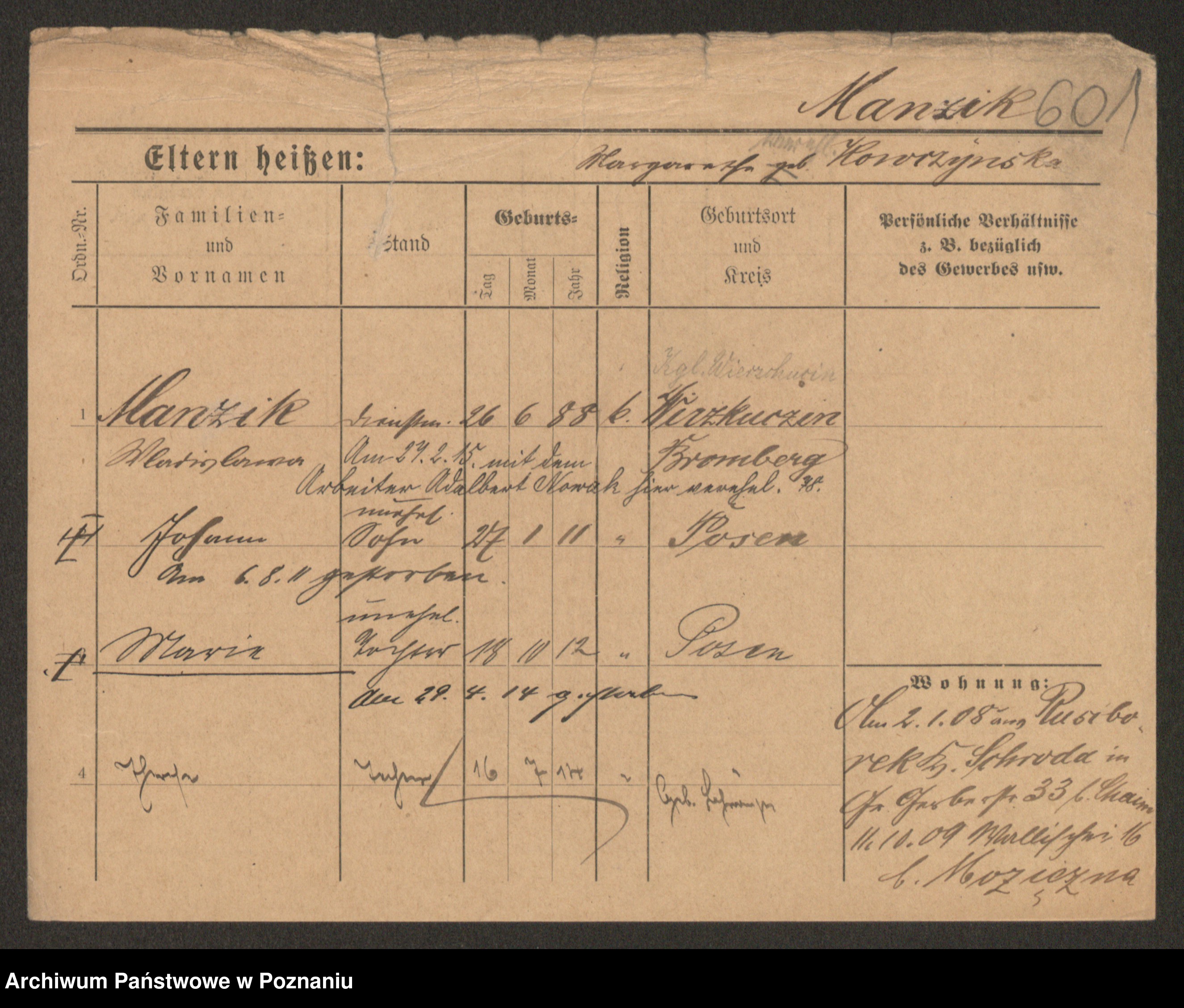 Manske zd. Cwojdzinska, Marie
