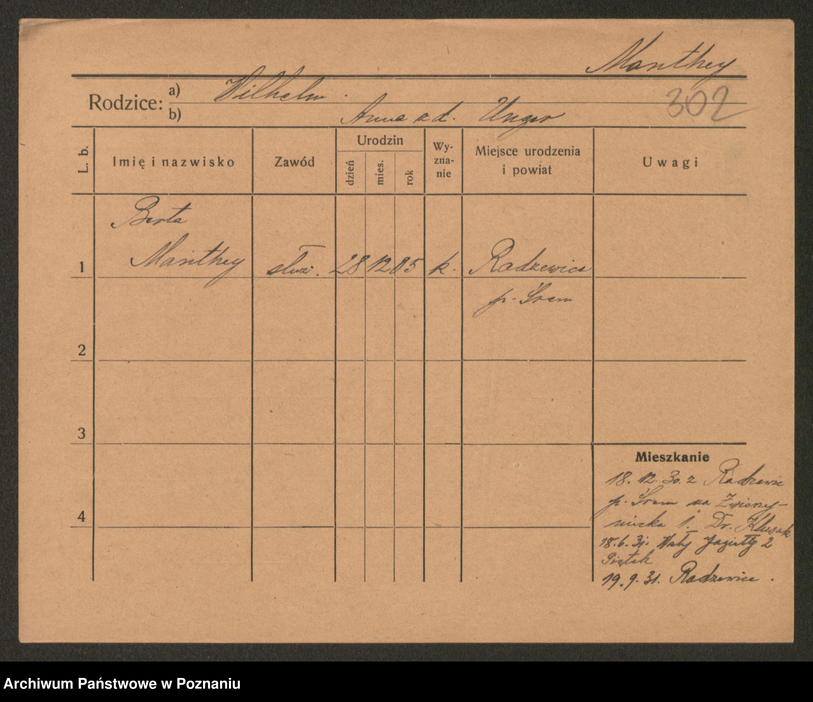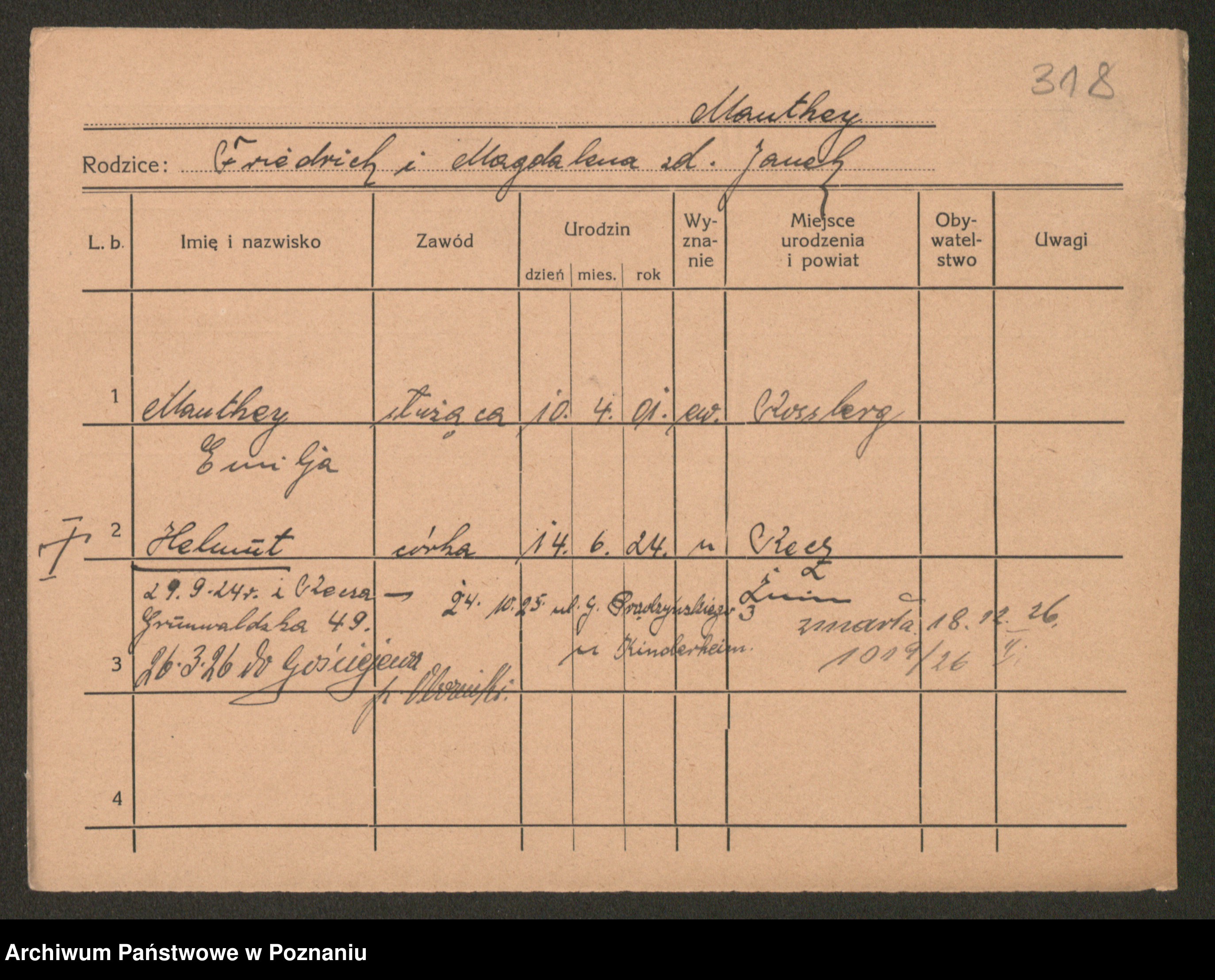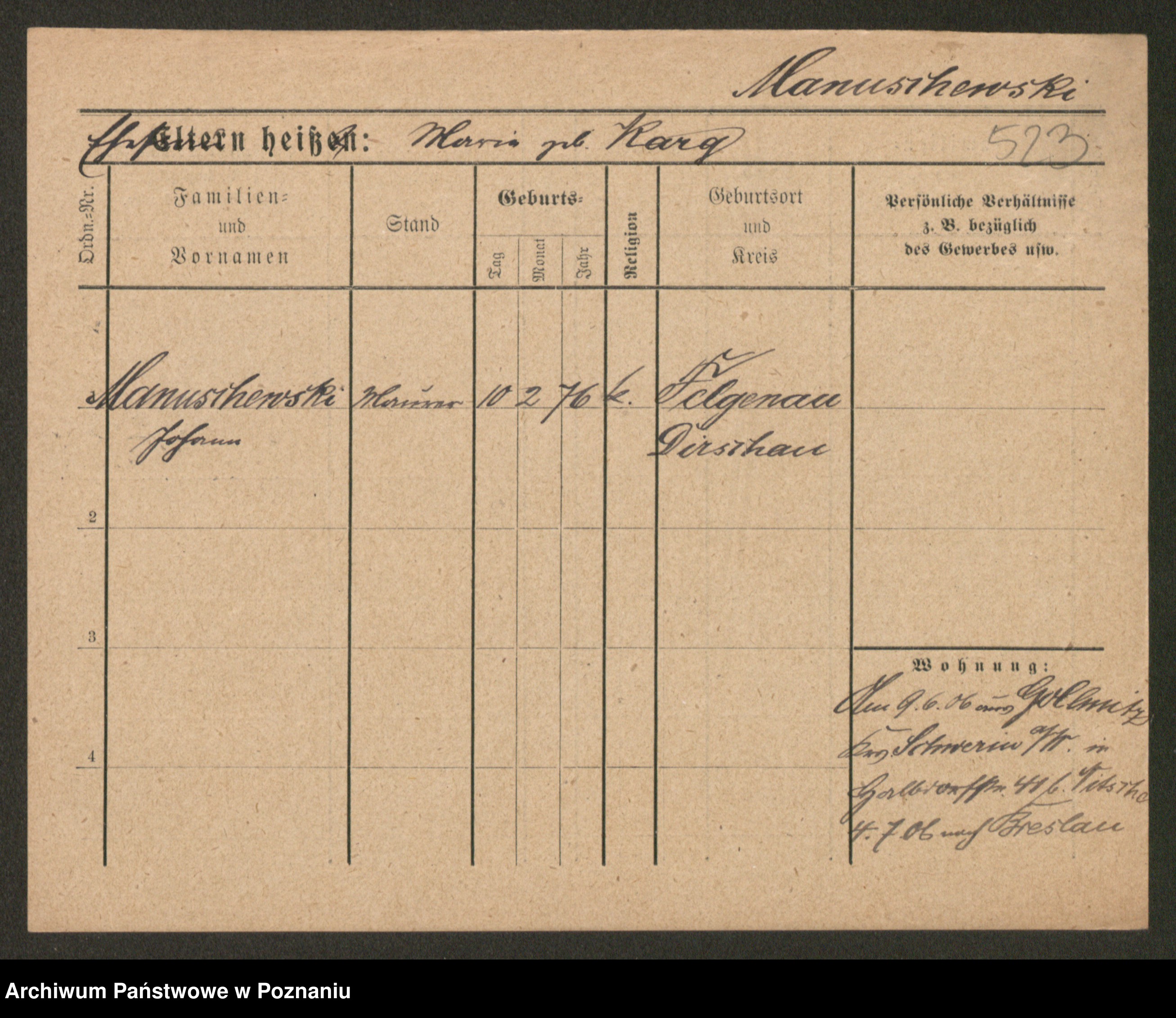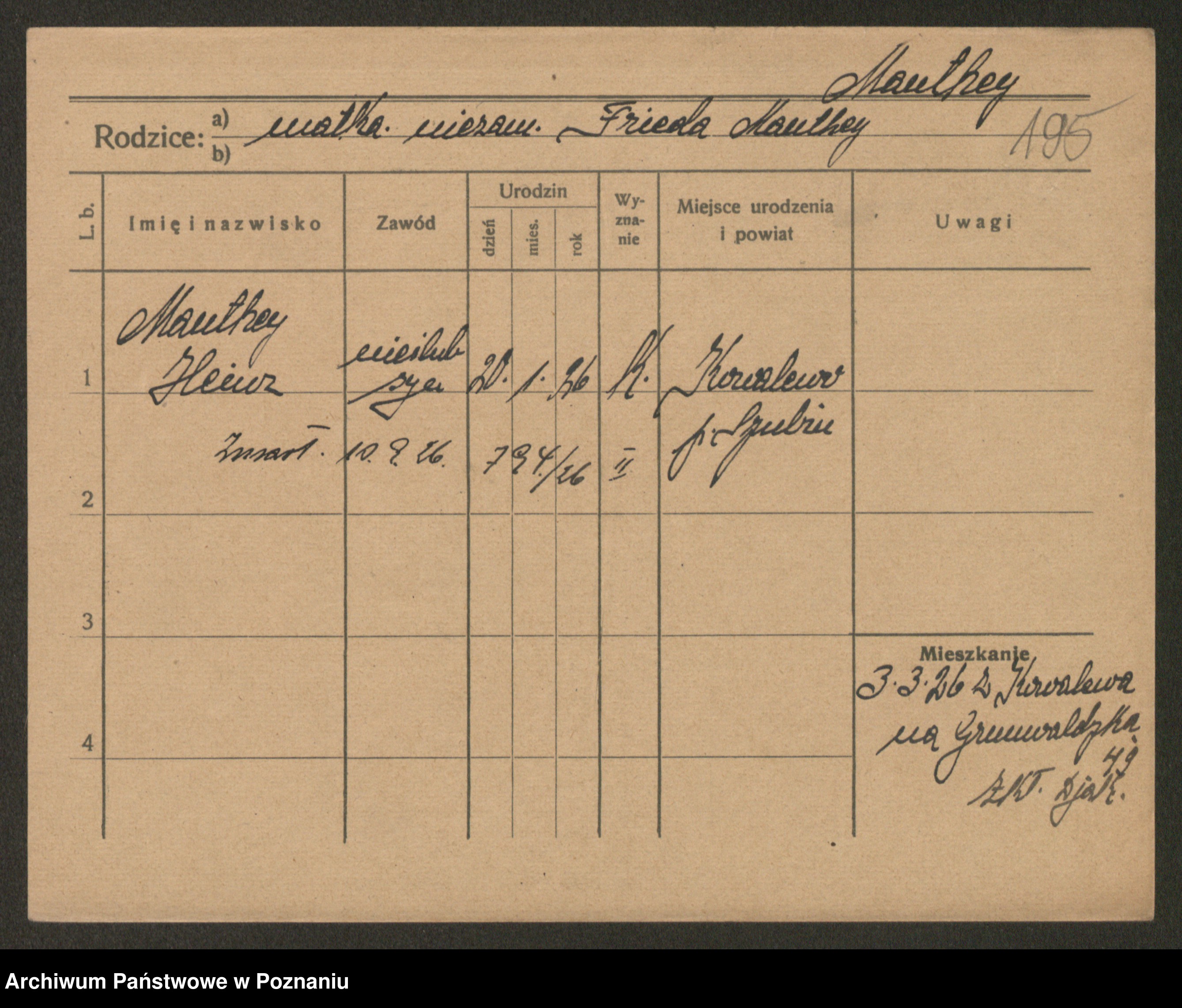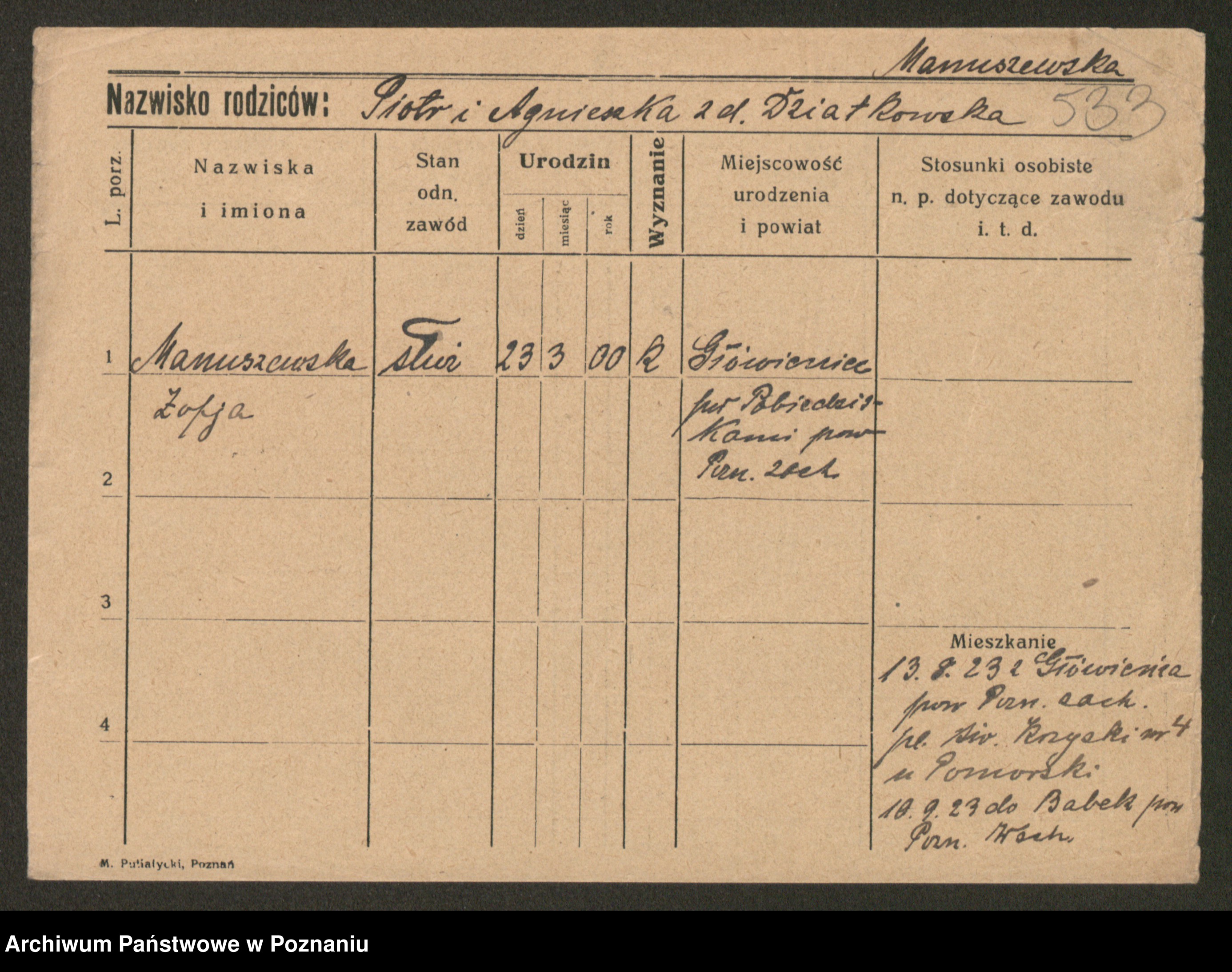 Manske zd. Cwojdzinska, Marie