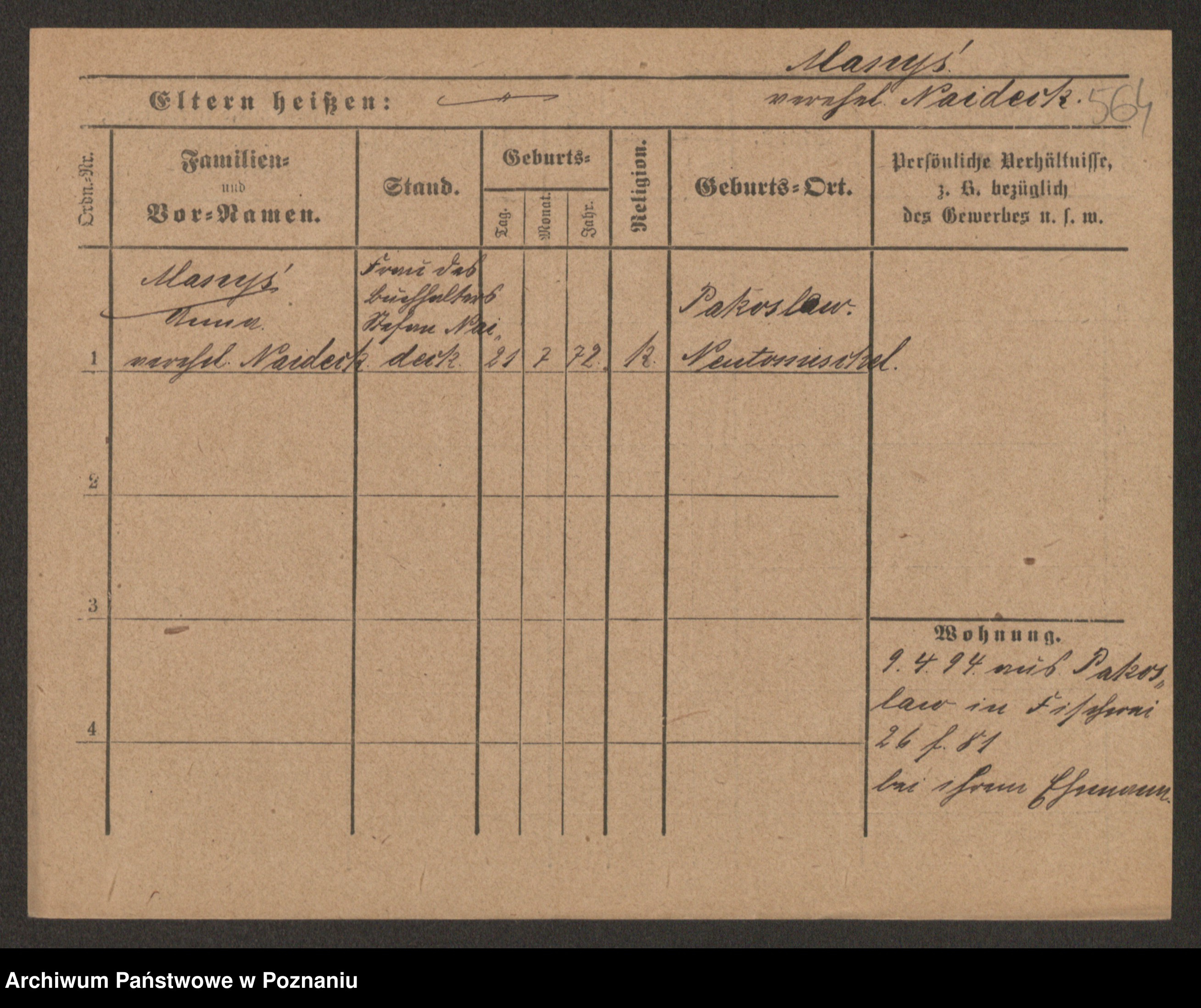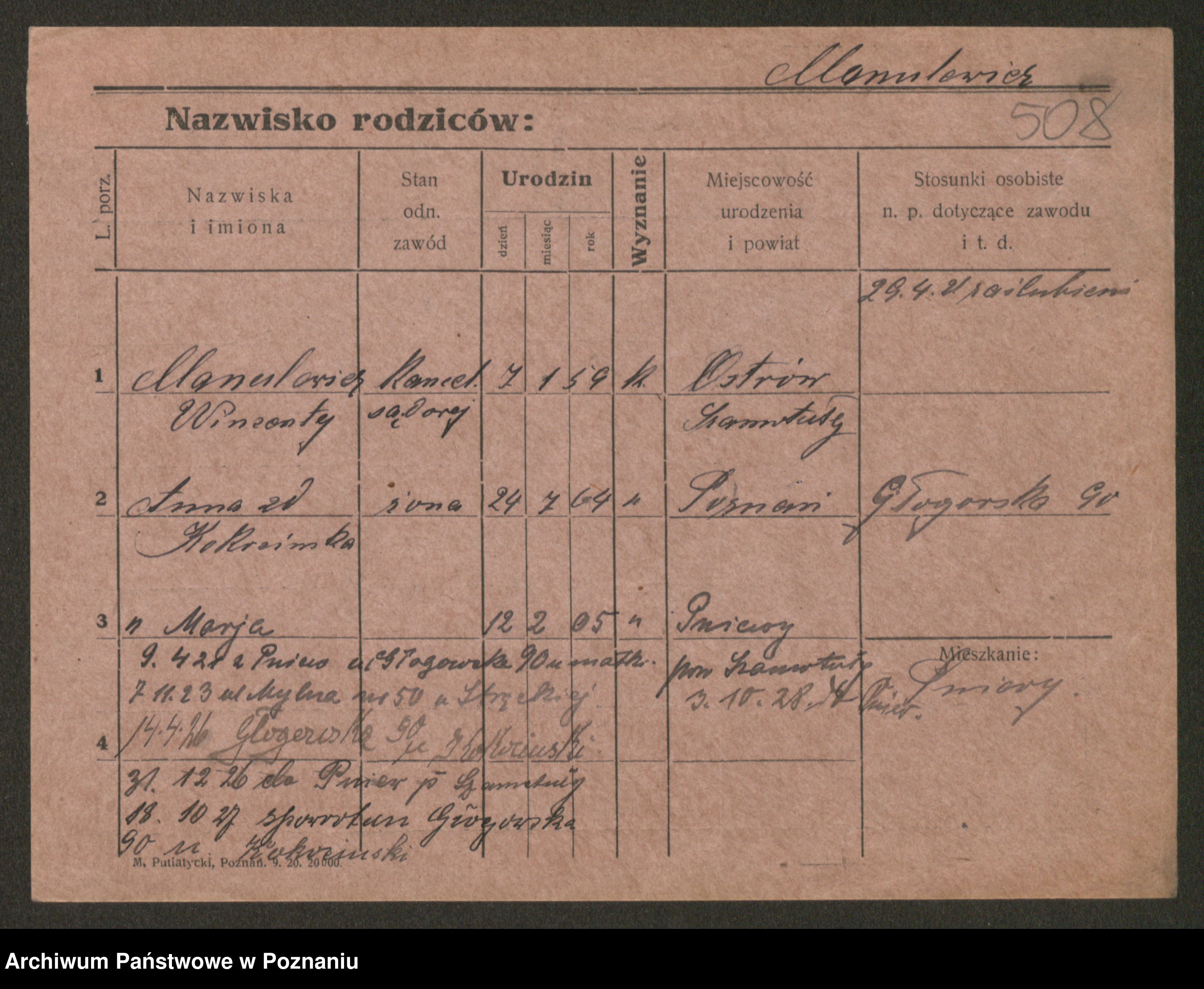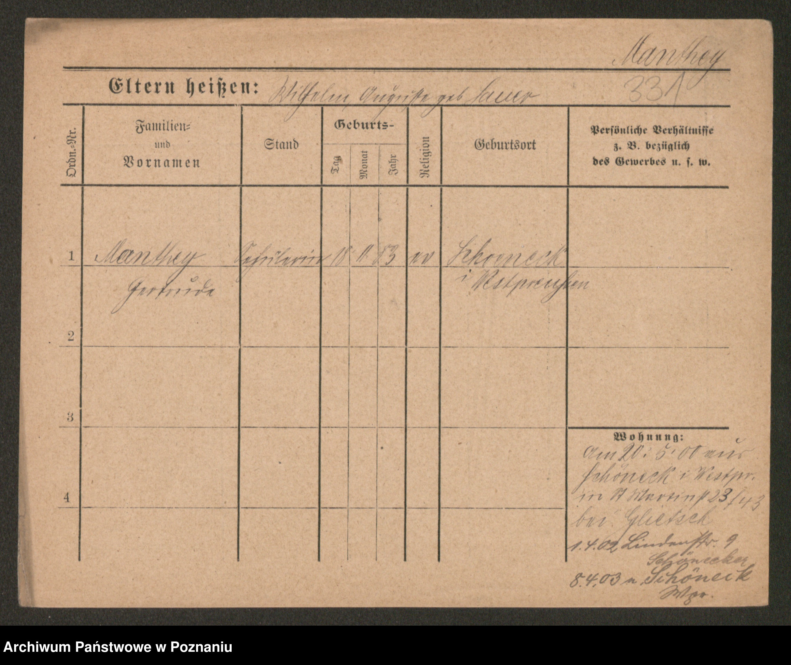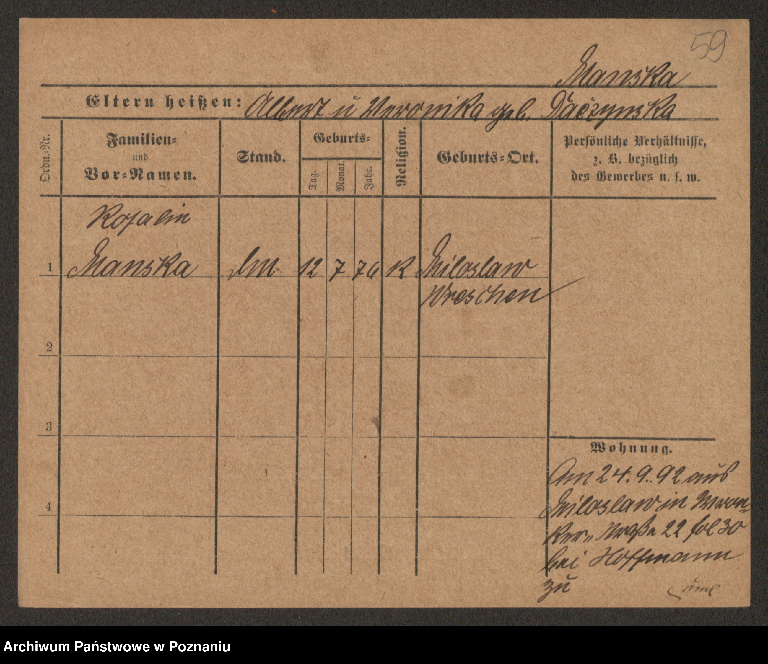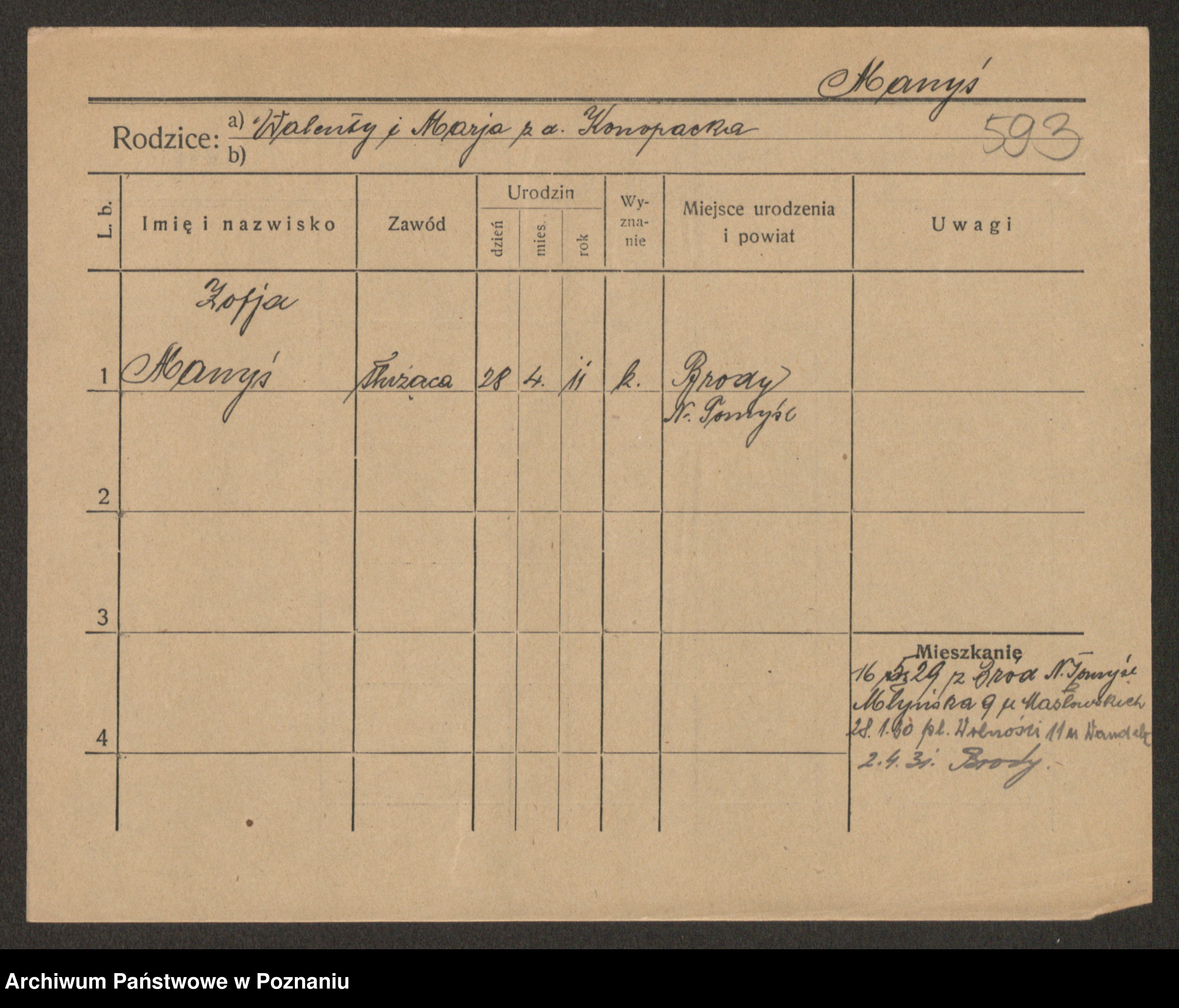 Manske zd. Cwojdzinska, Marie