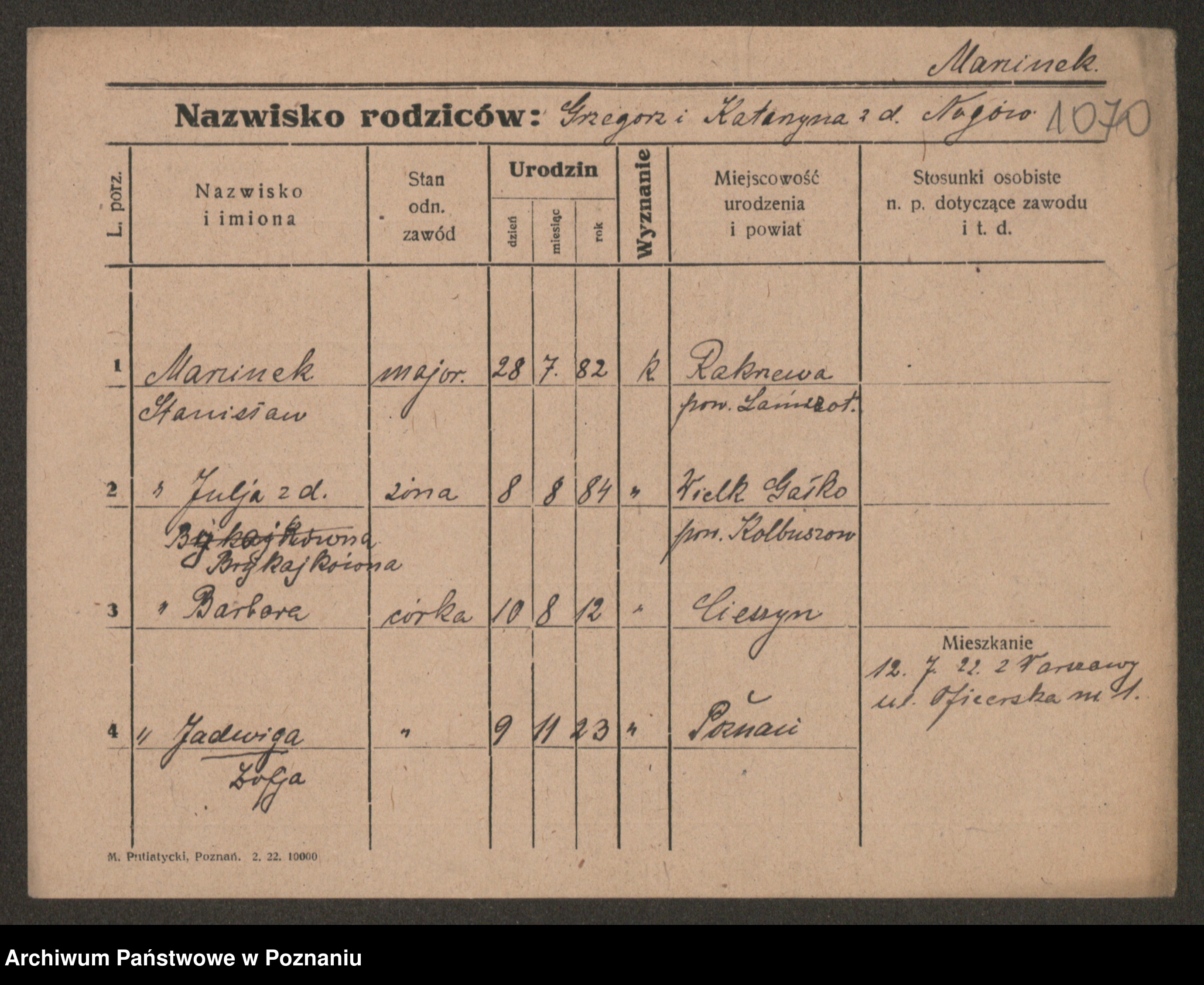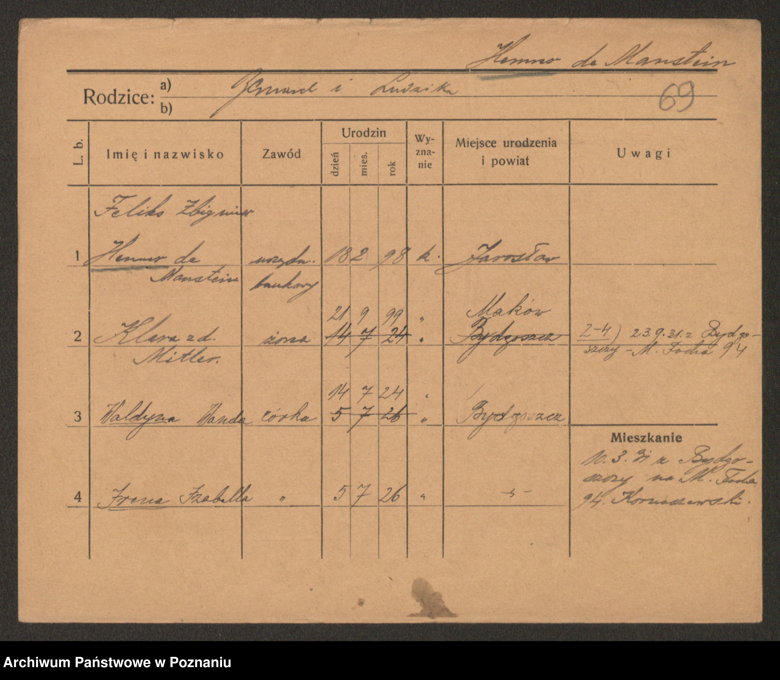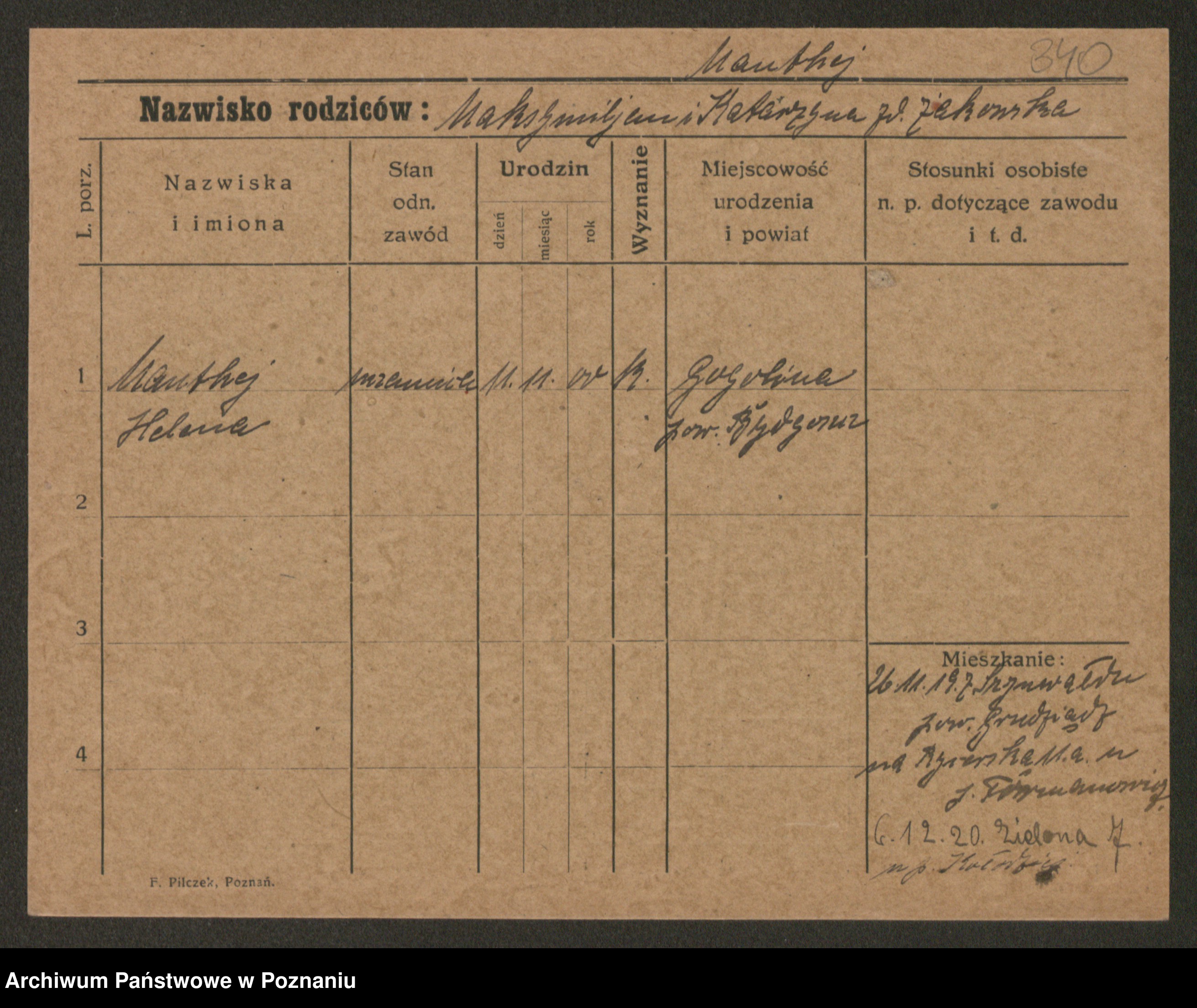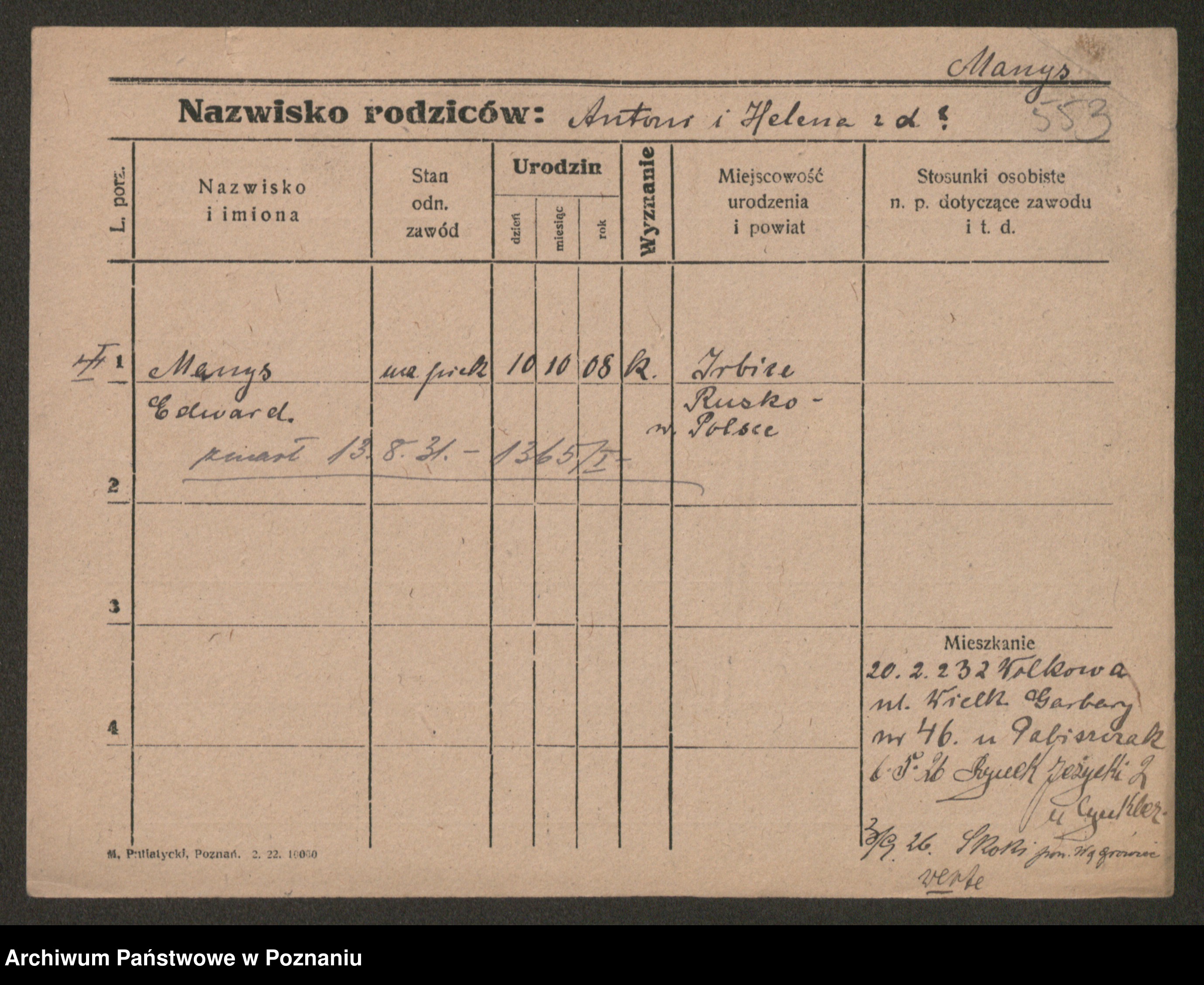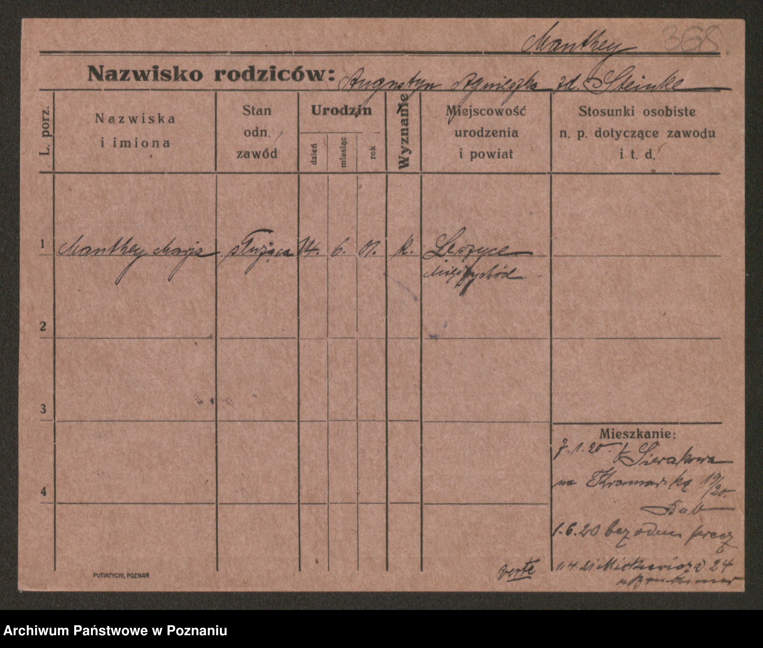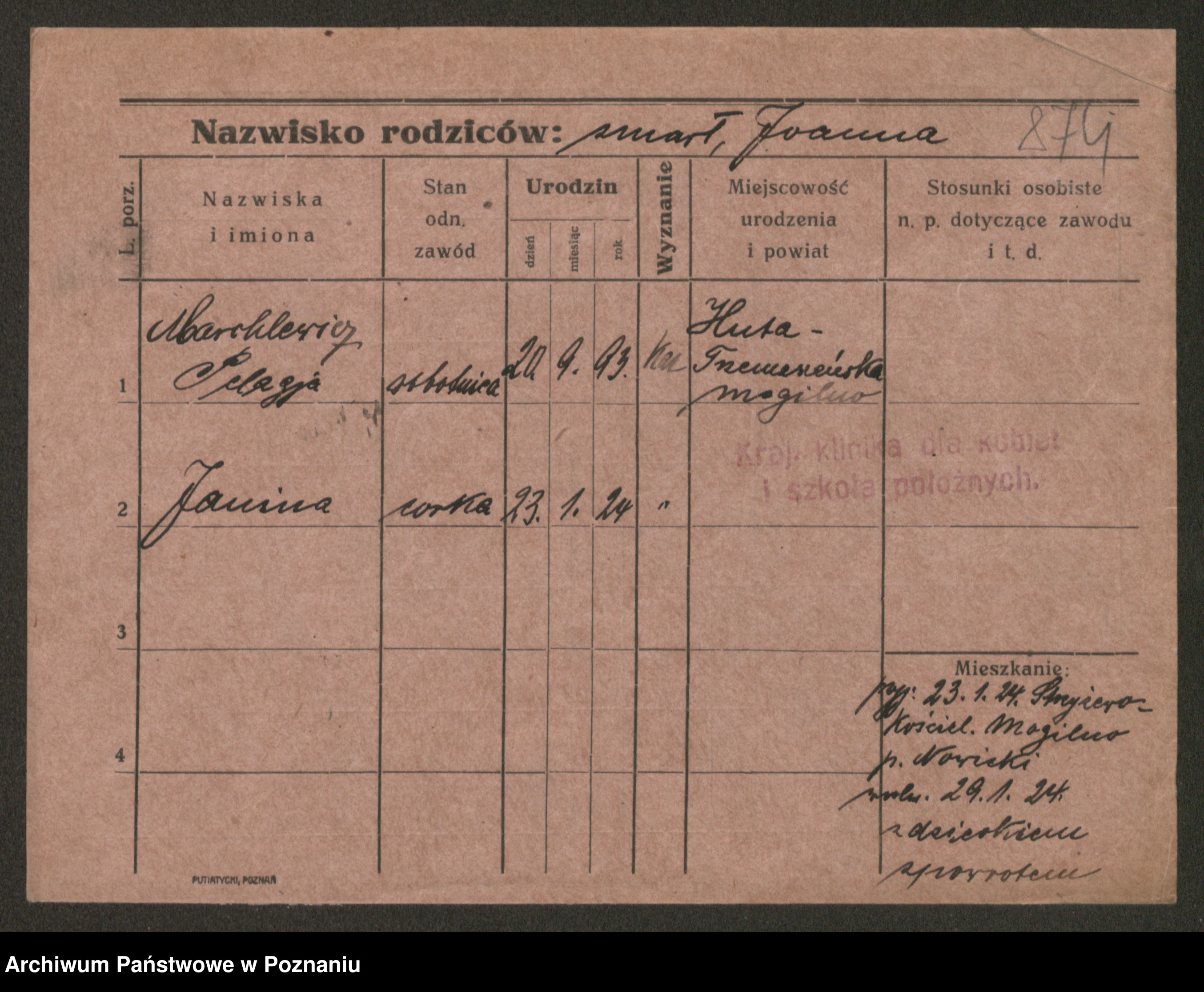 Manske zd. Cwojdzinska, Marie