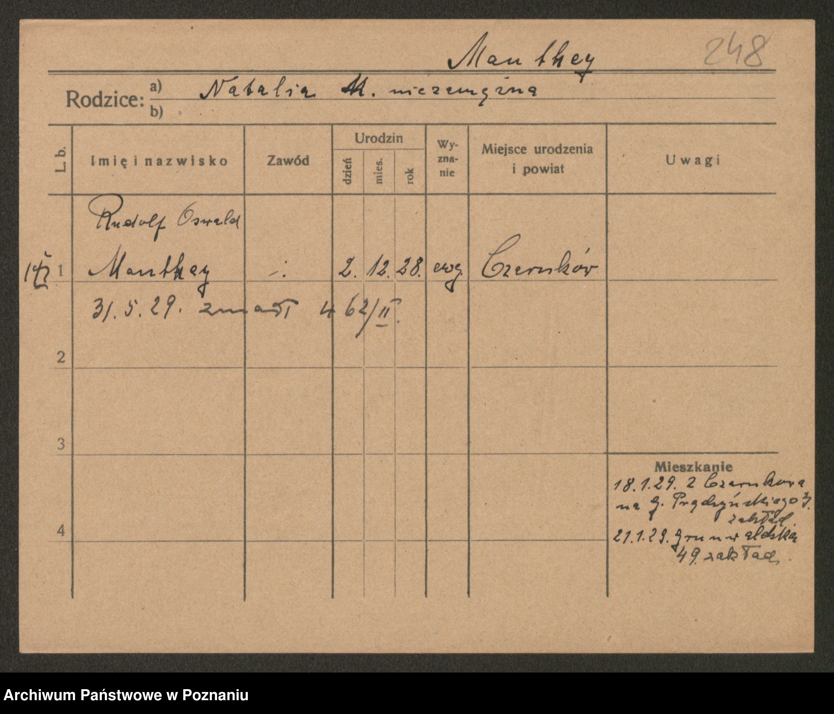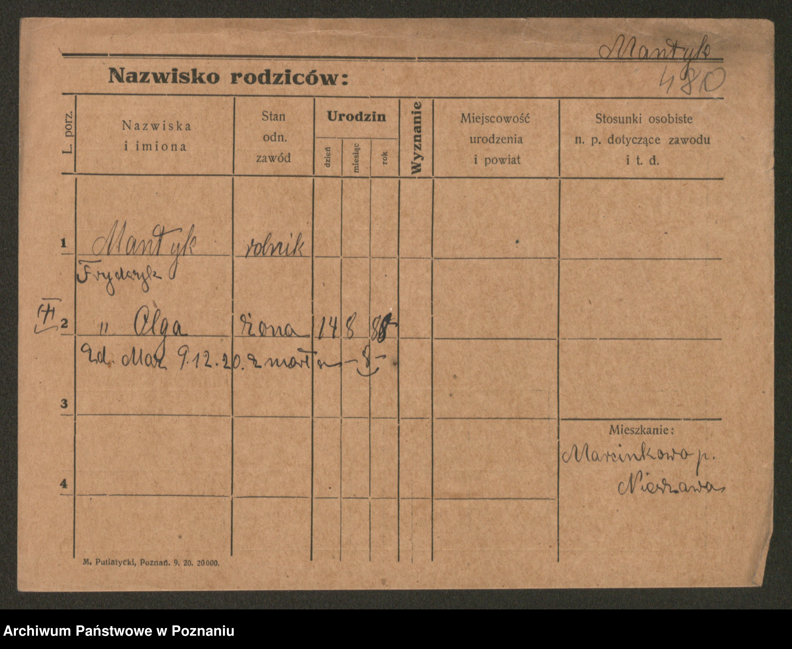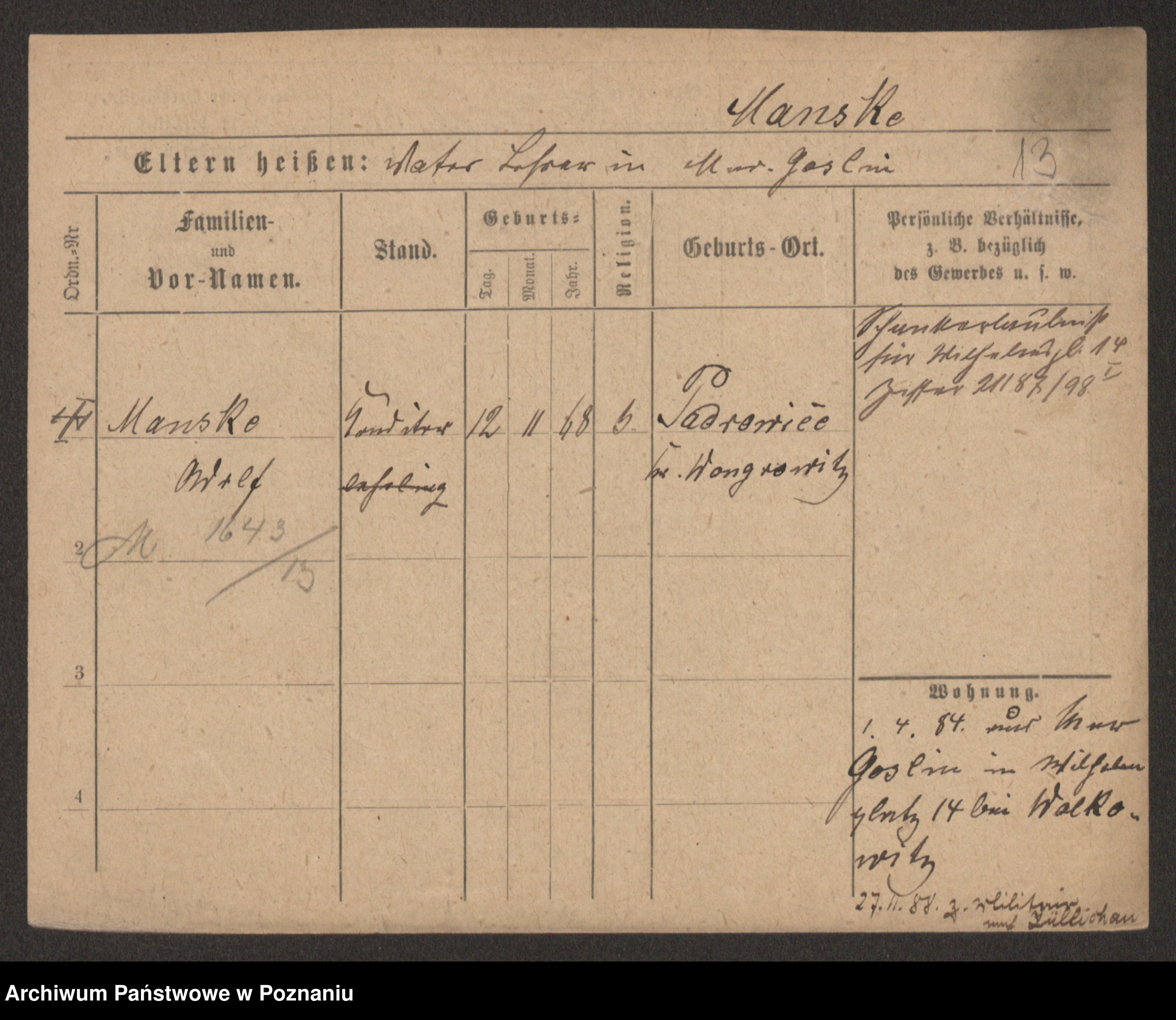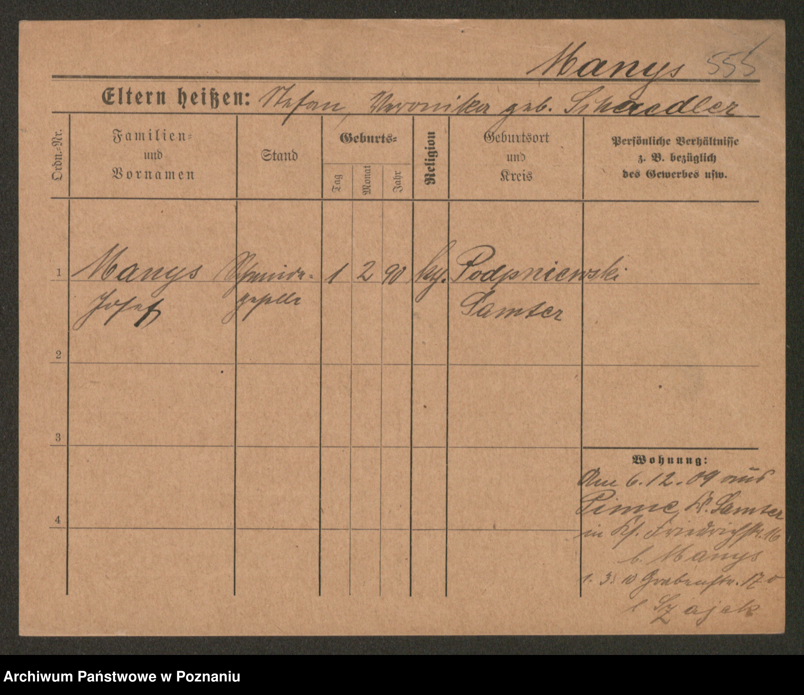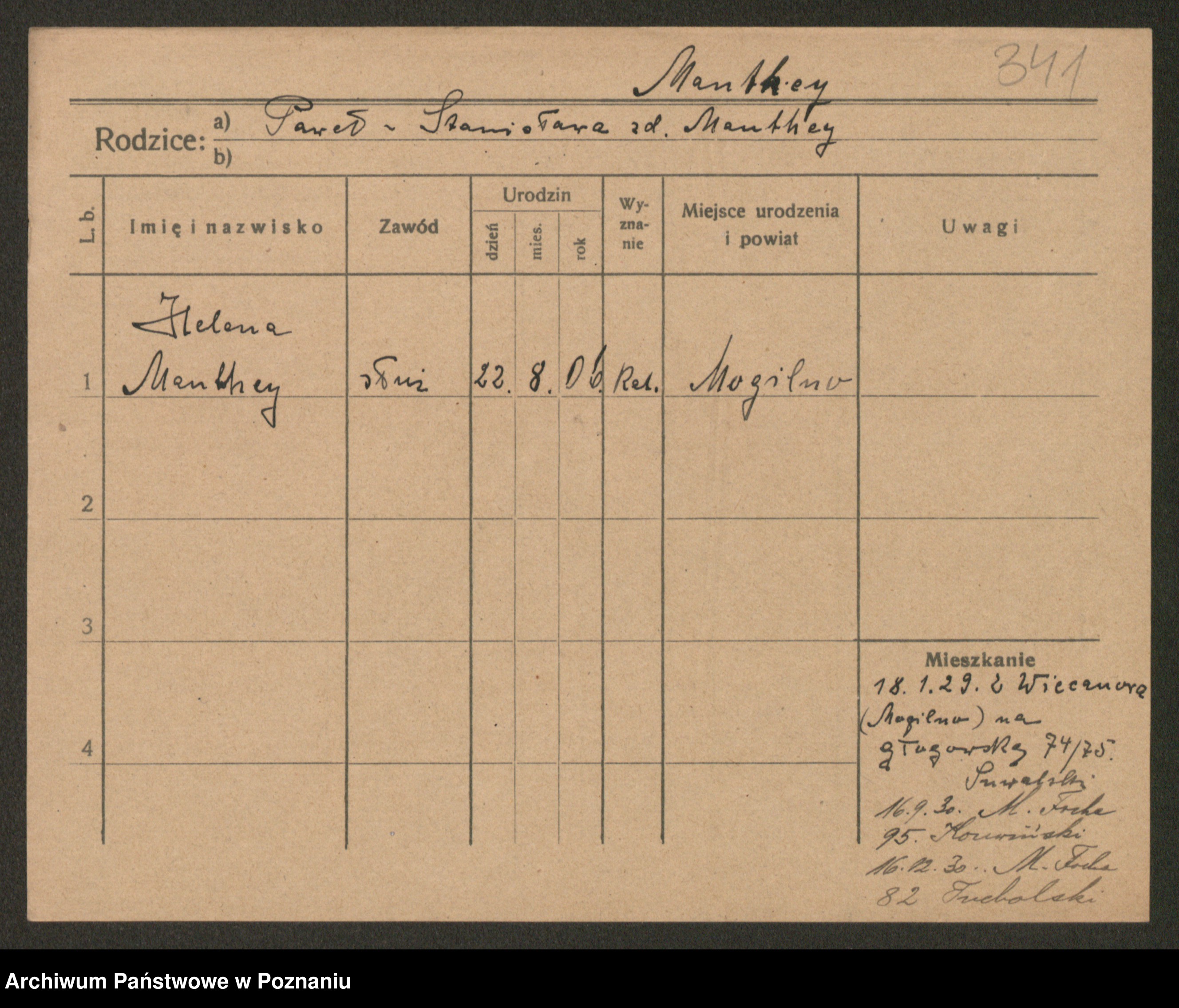 Manske zd. Cwojdzinska, Marie