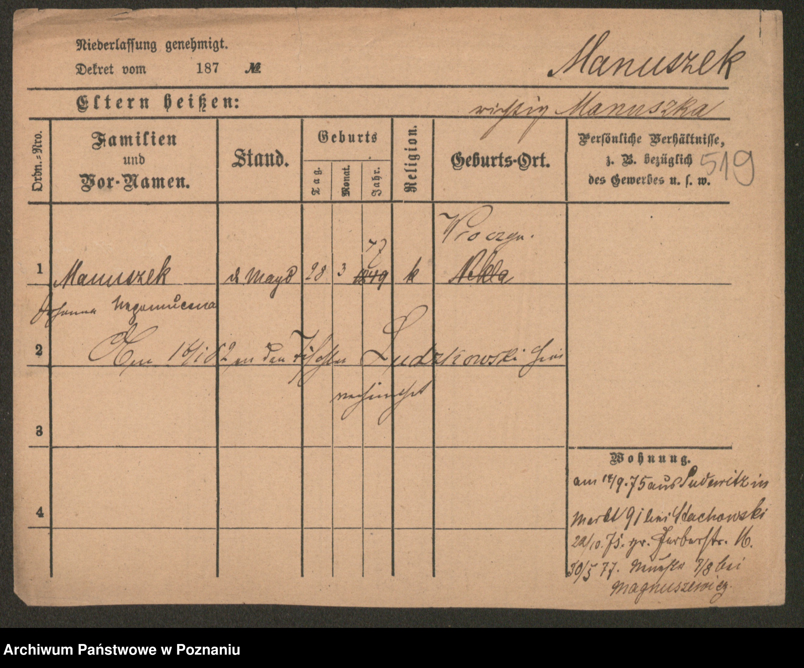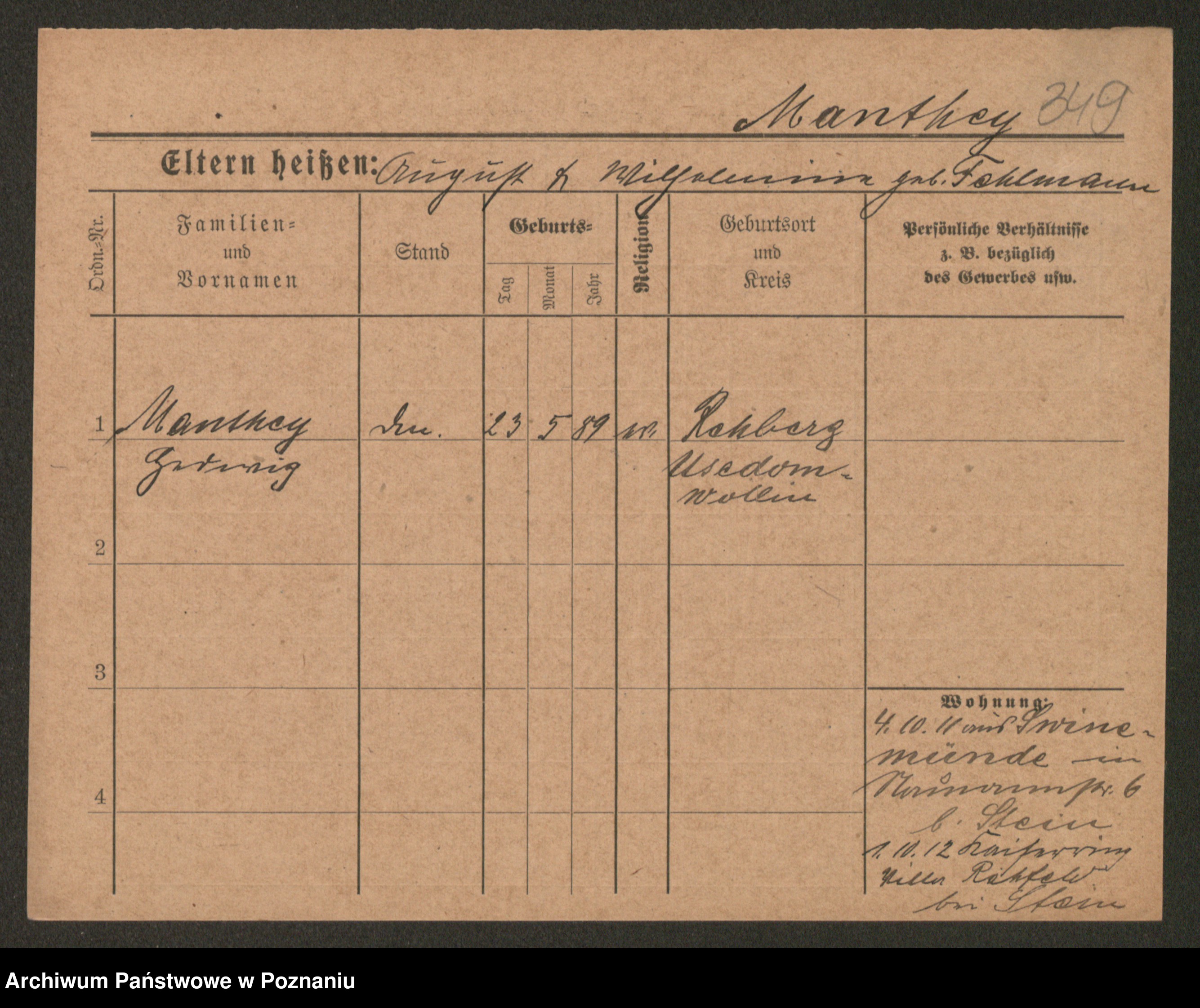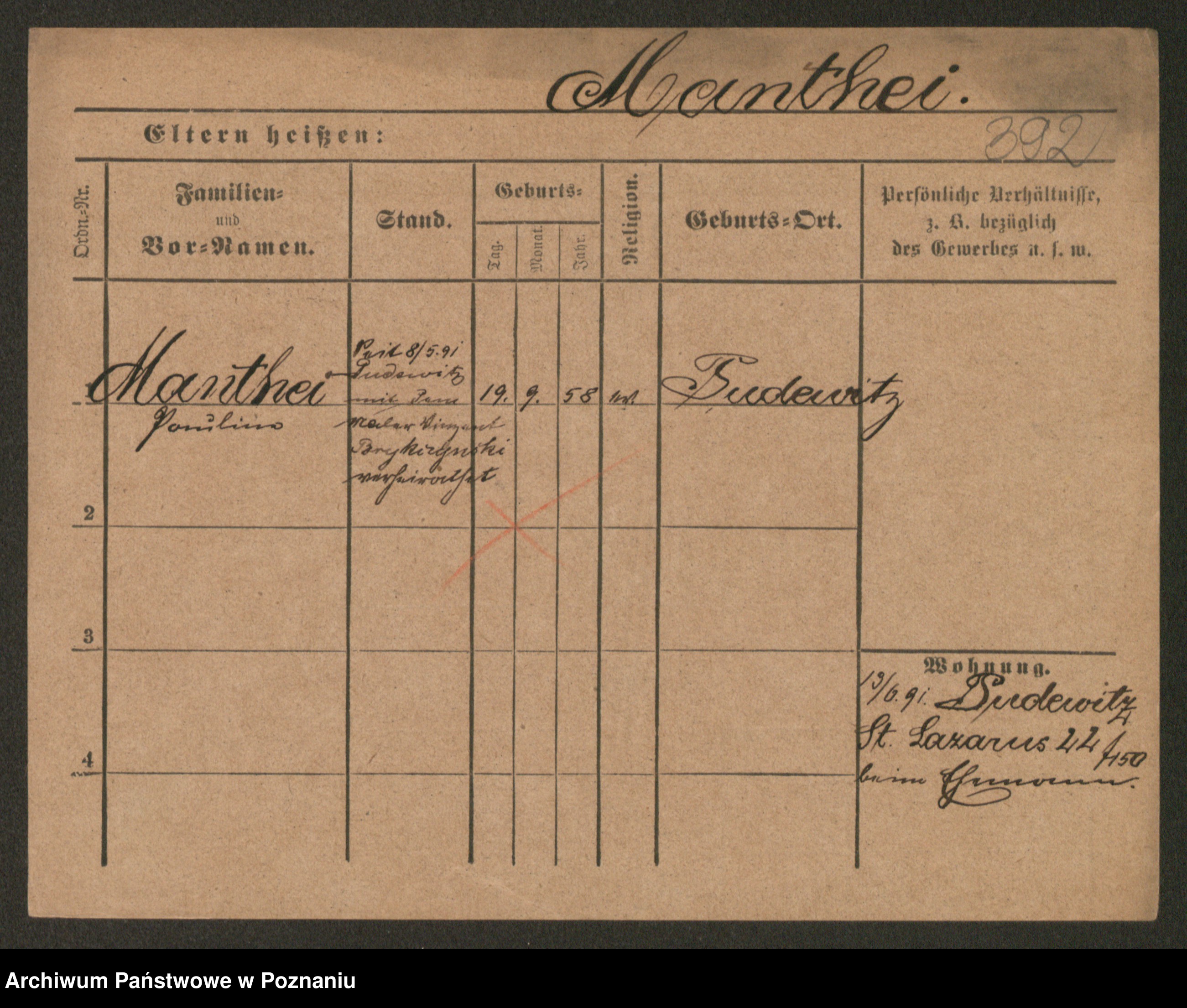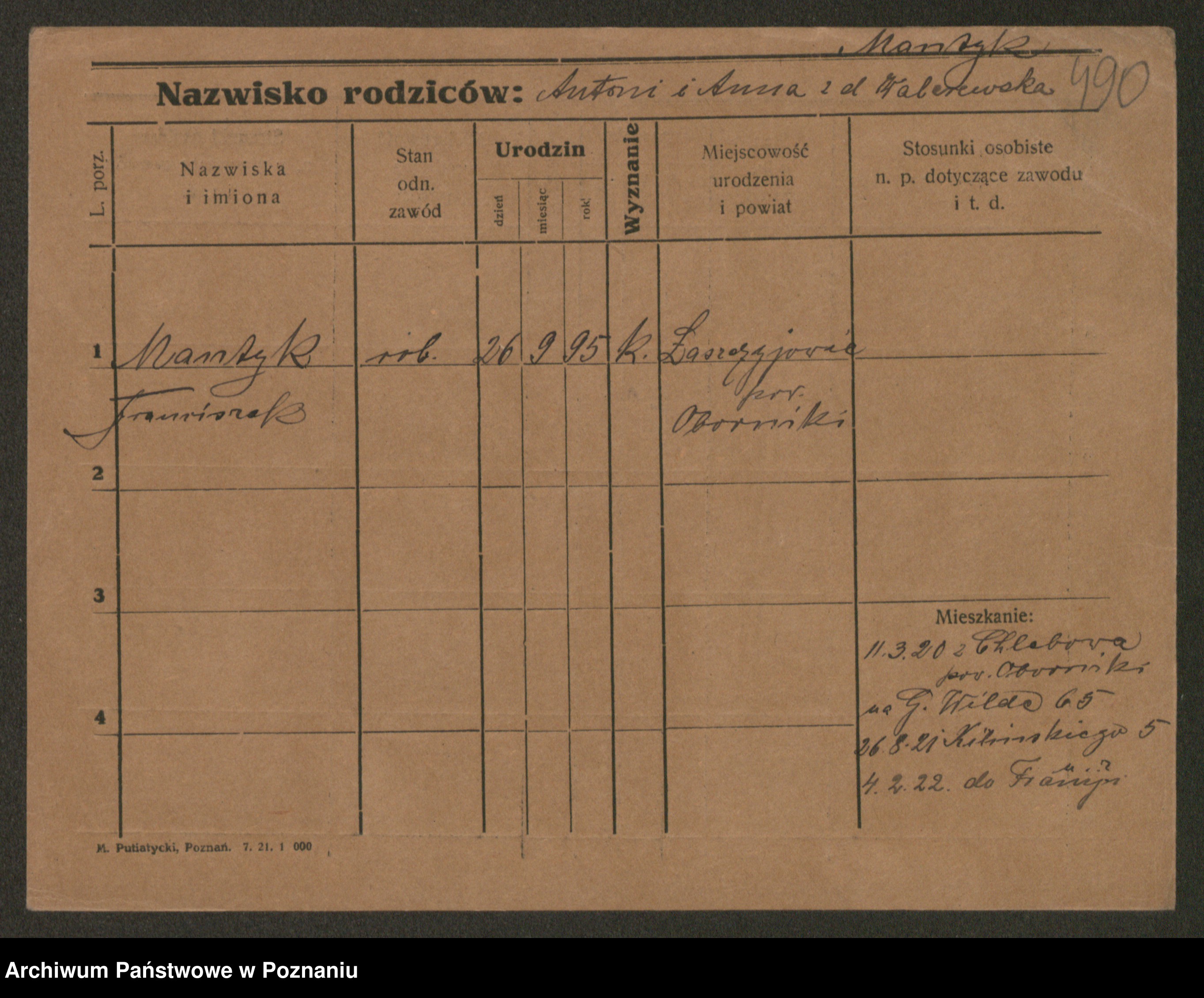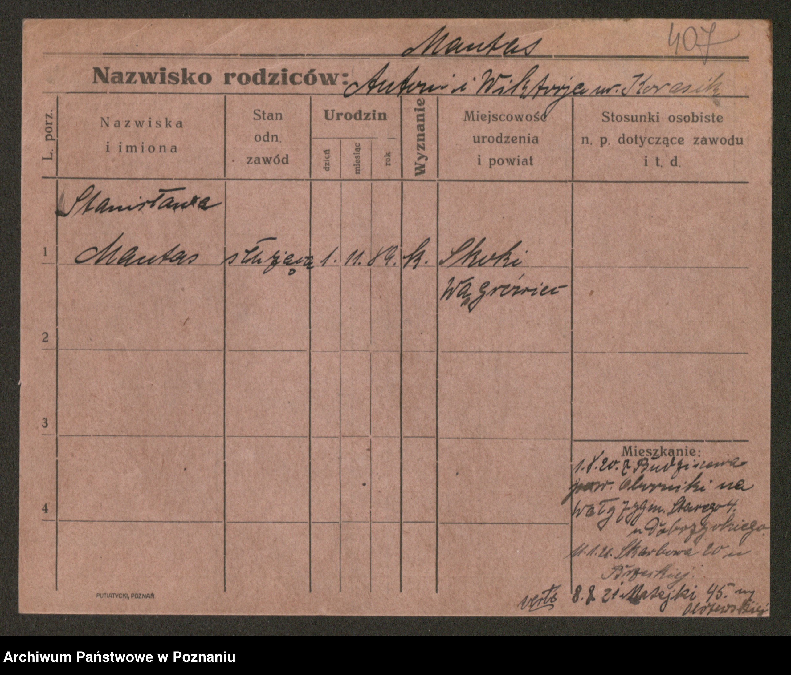 Manske zd. Cwojdzinska, Marie