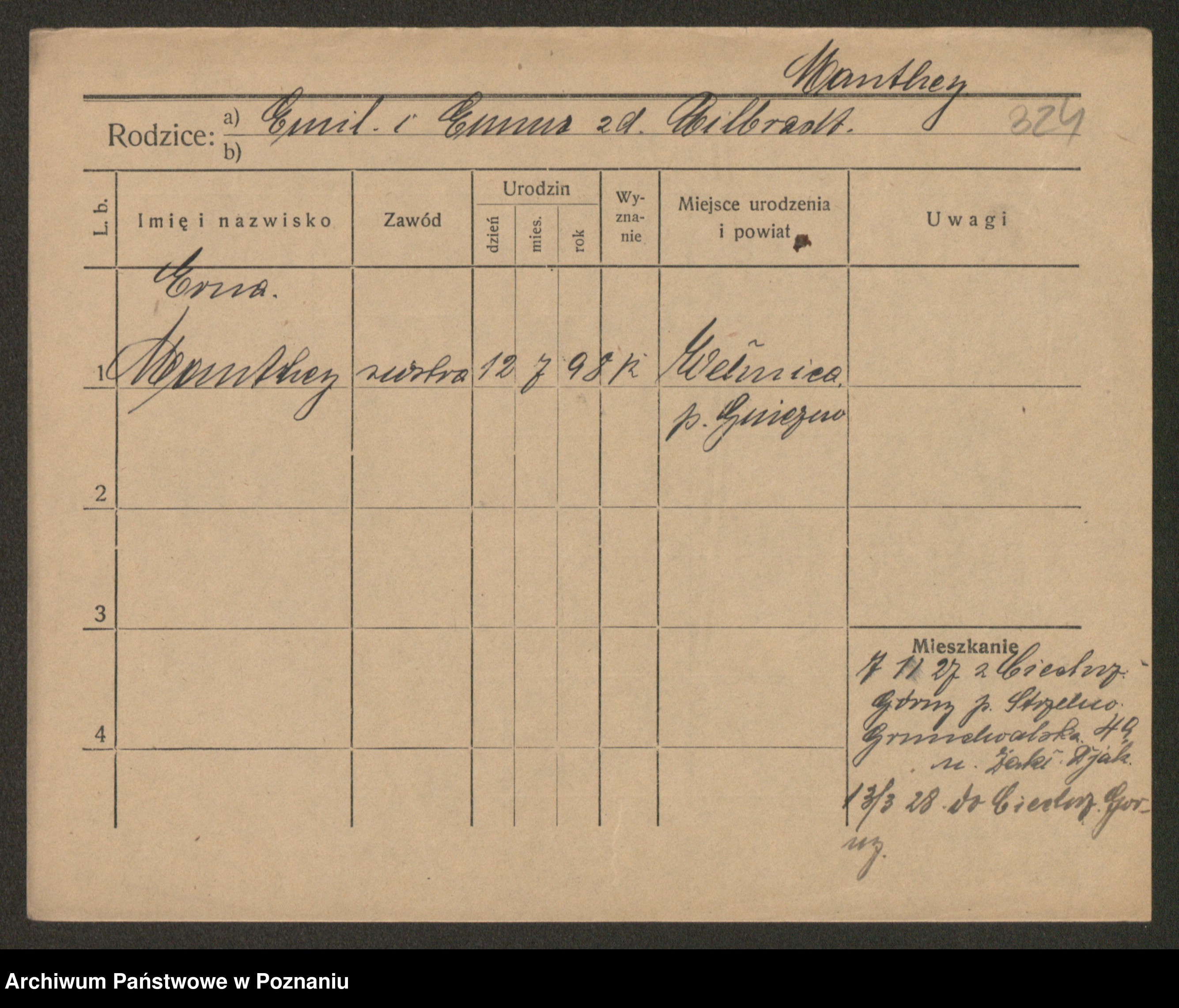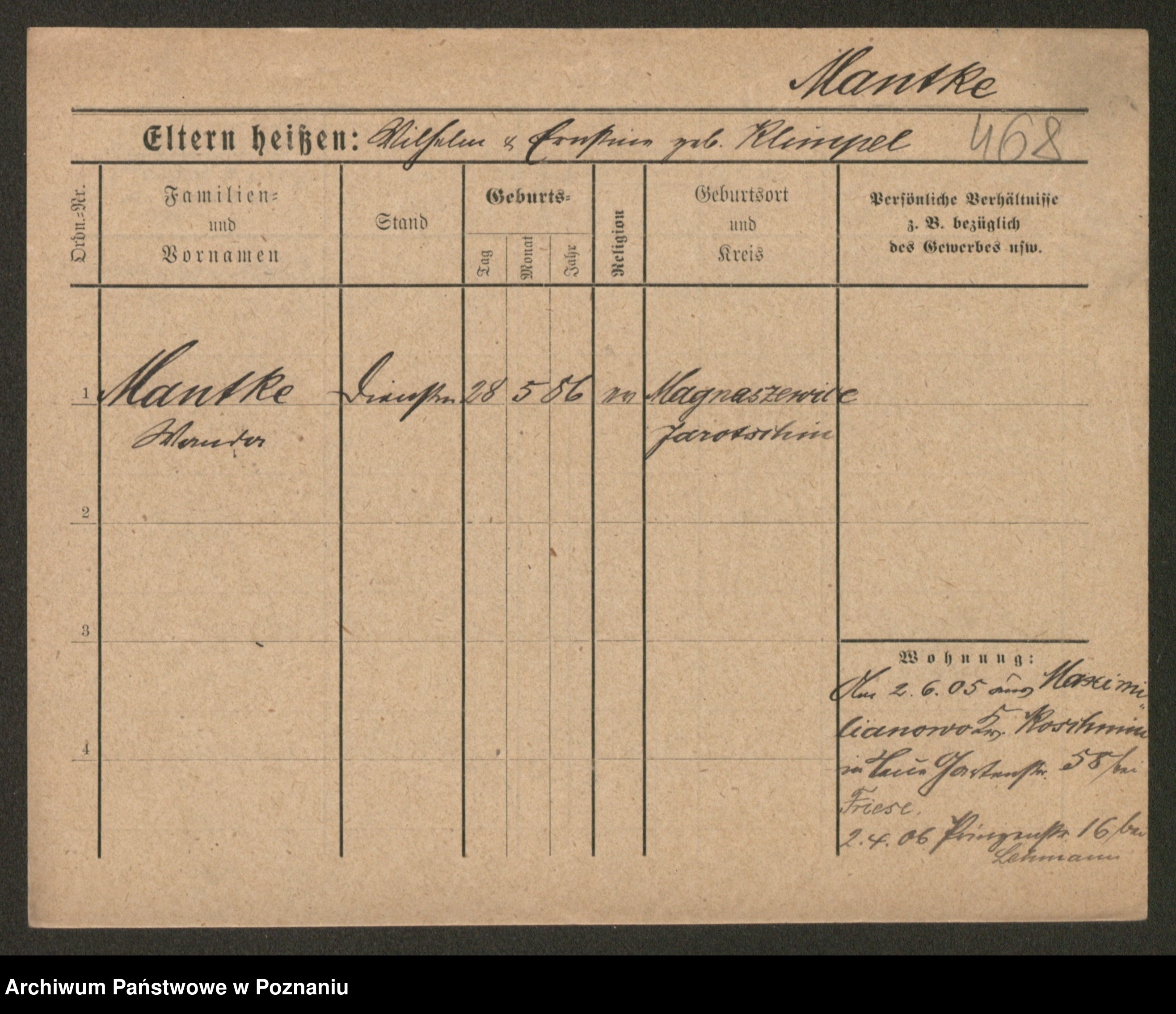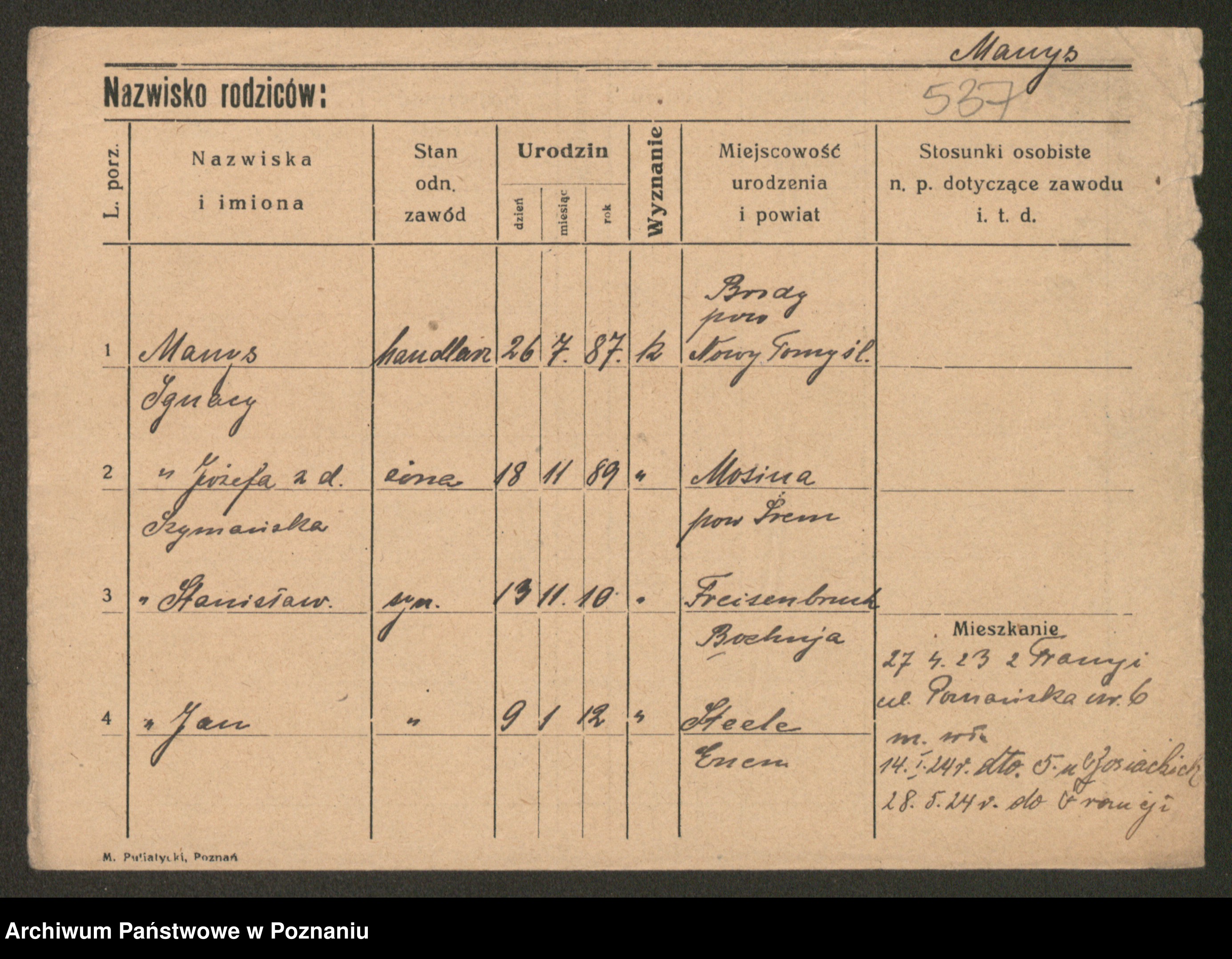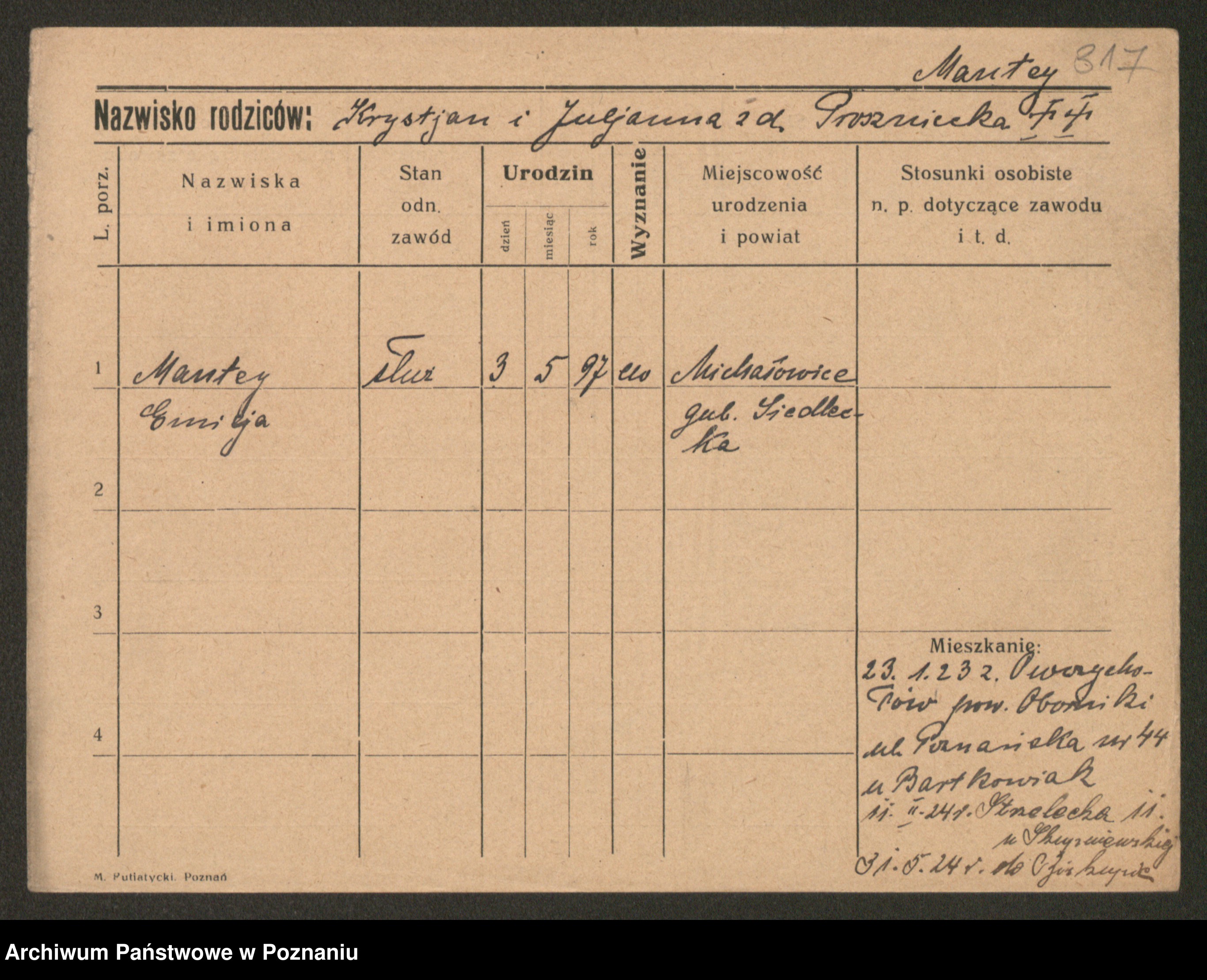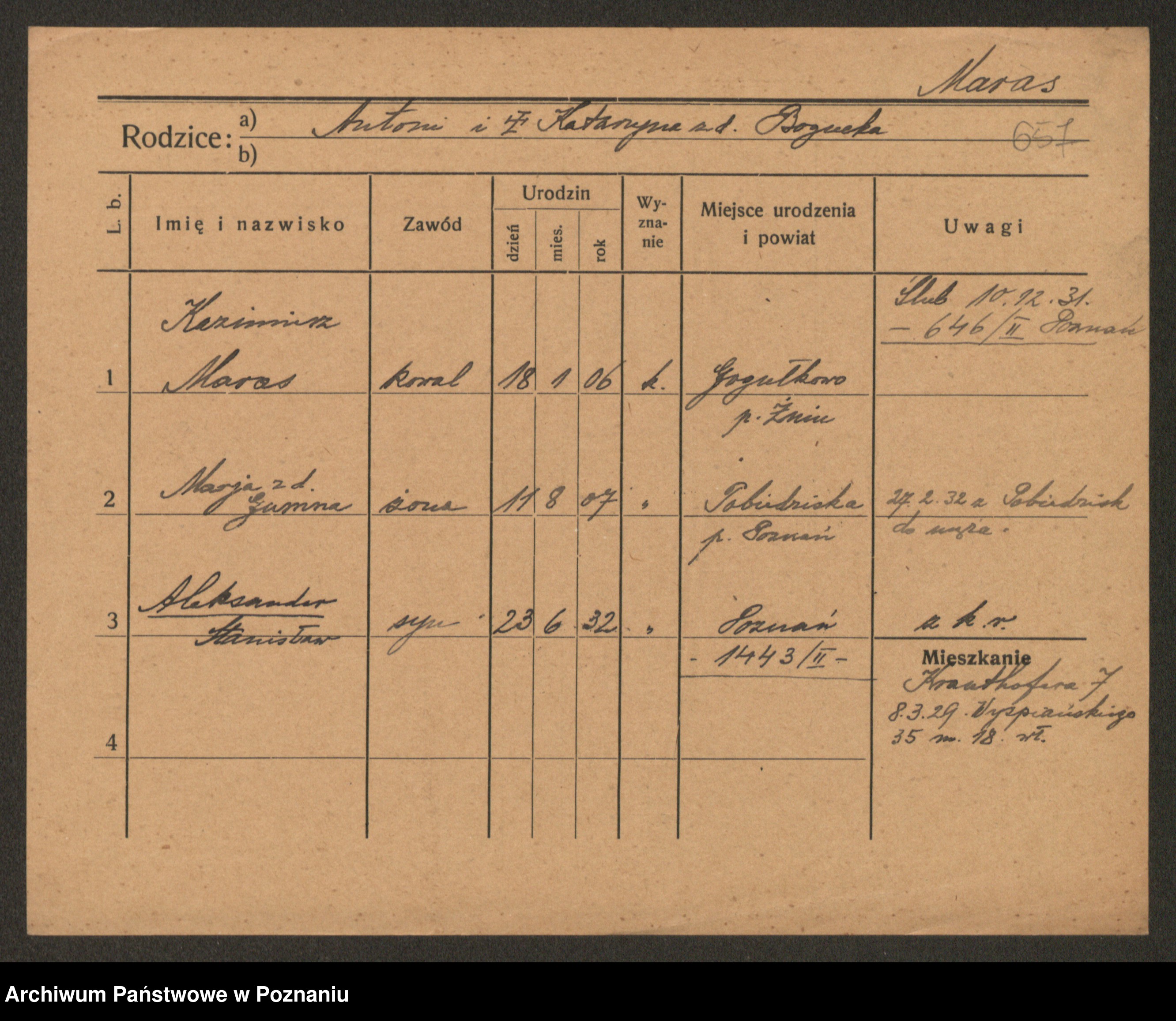 Manske zd. Cwojdzinska, Marie