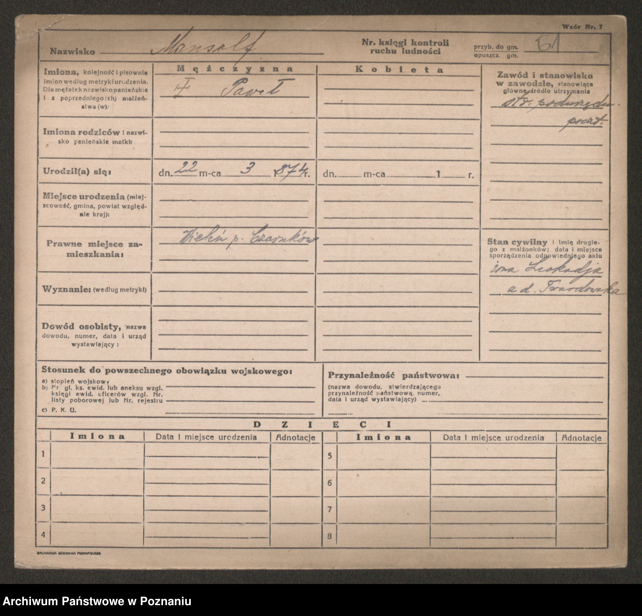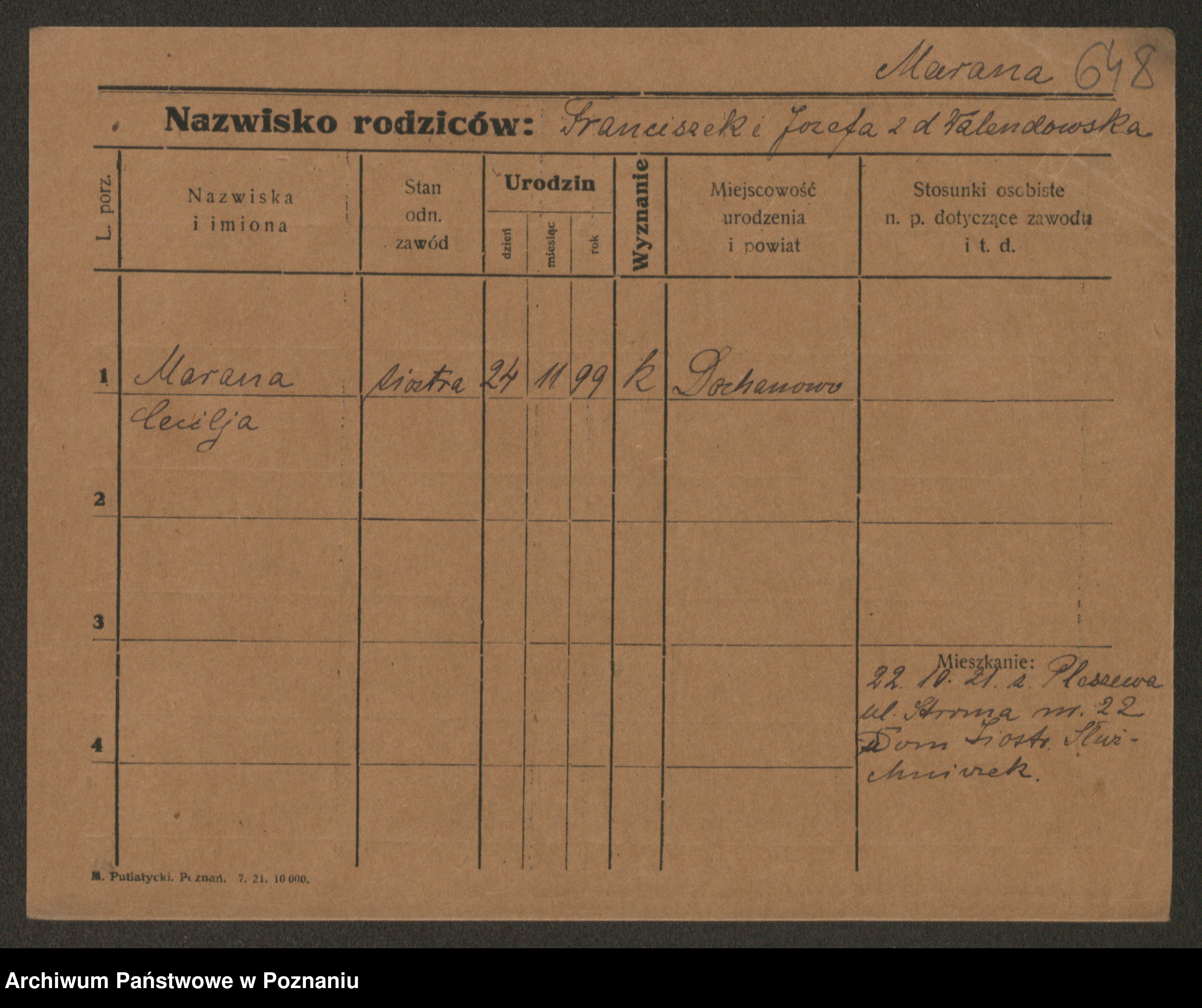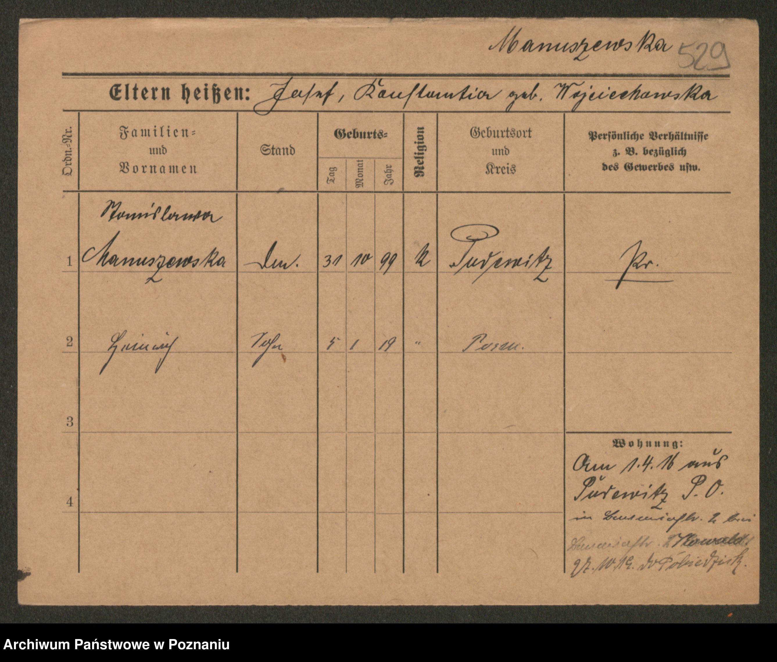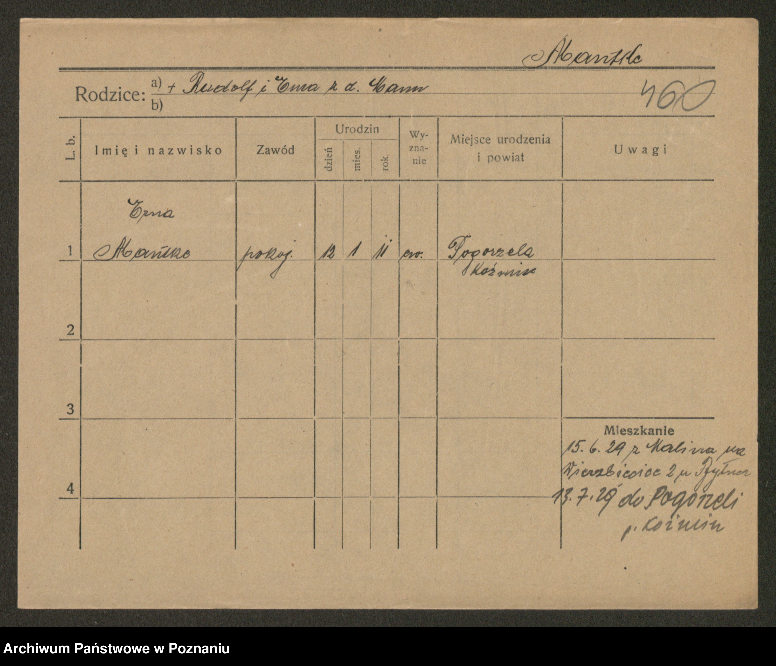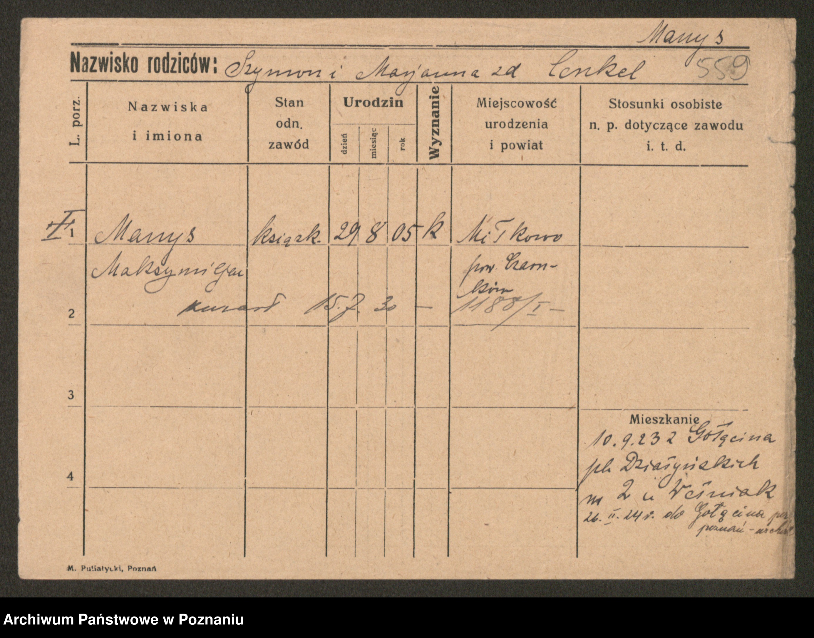 Manske zd. Cwojdzinska, Marie