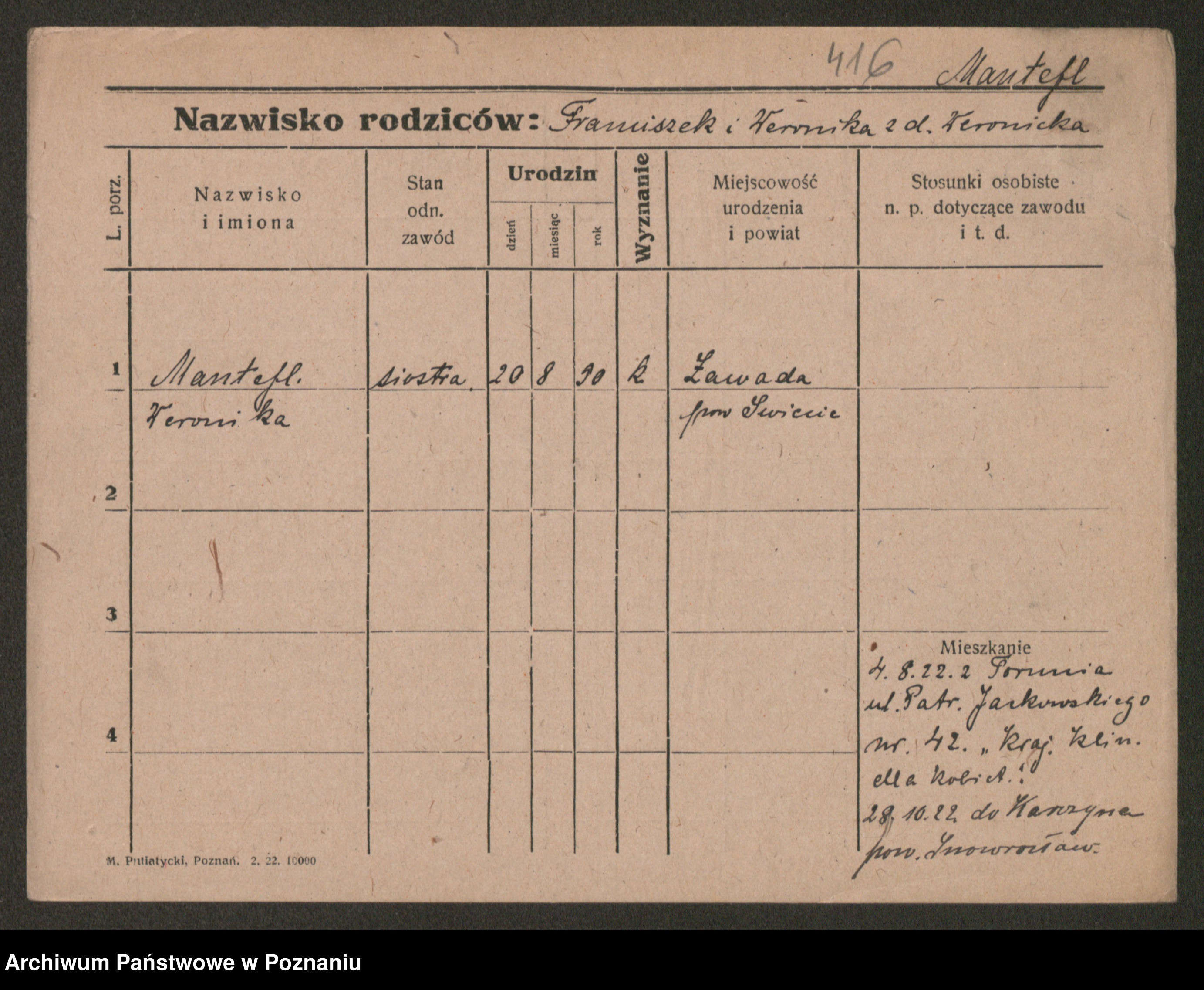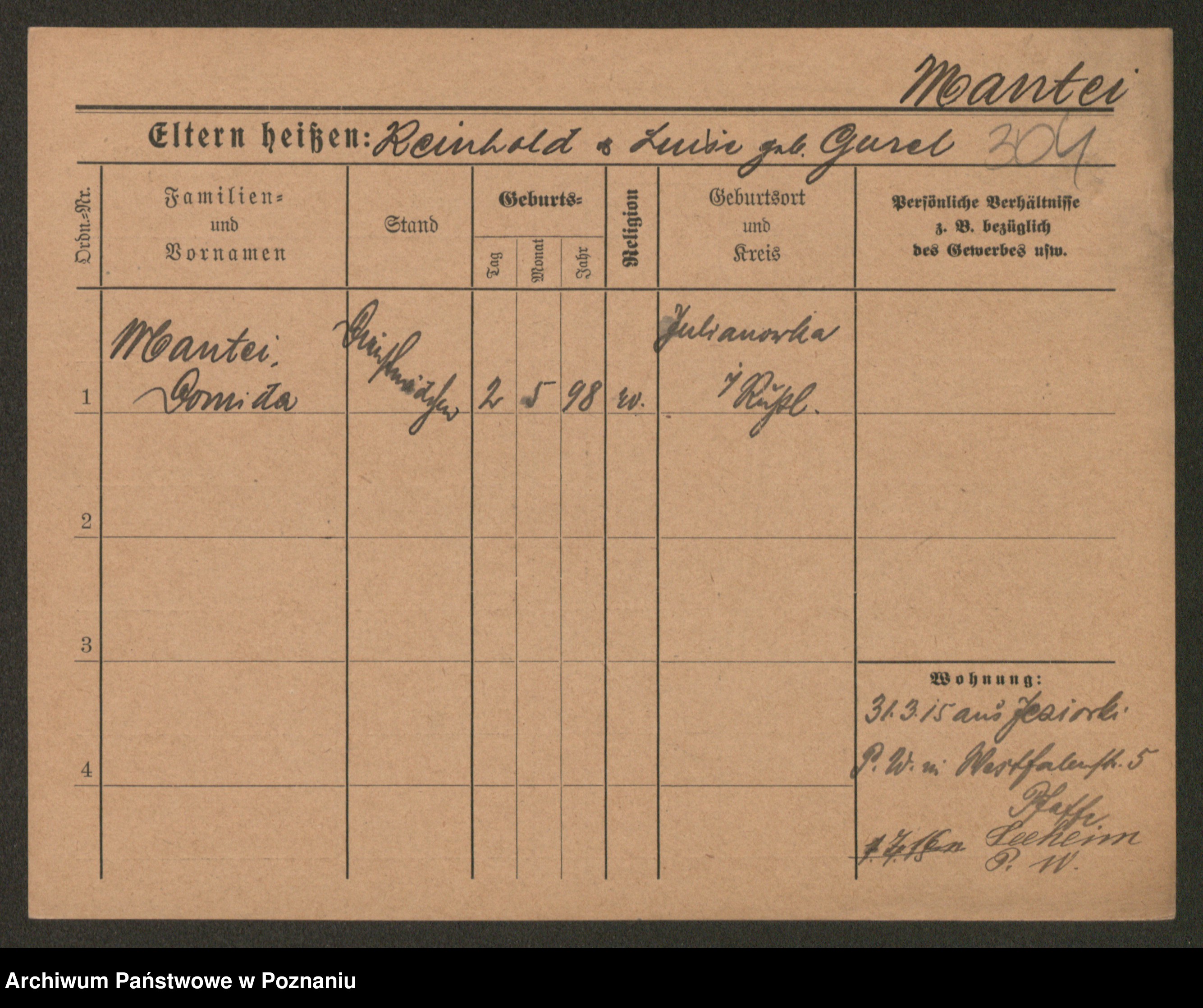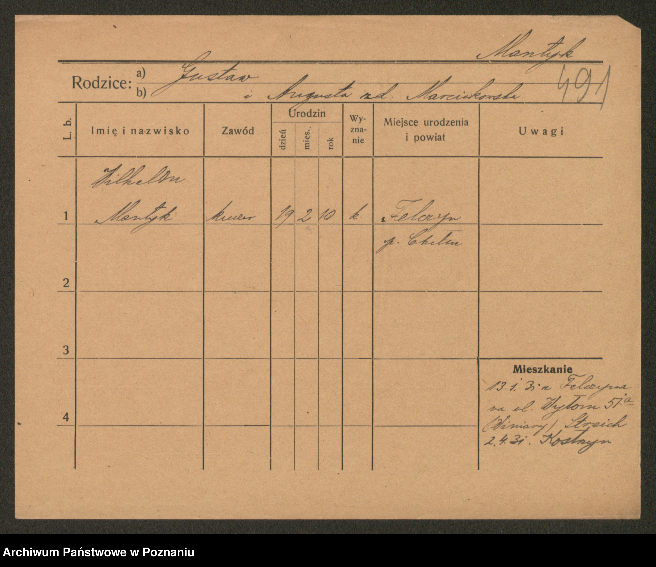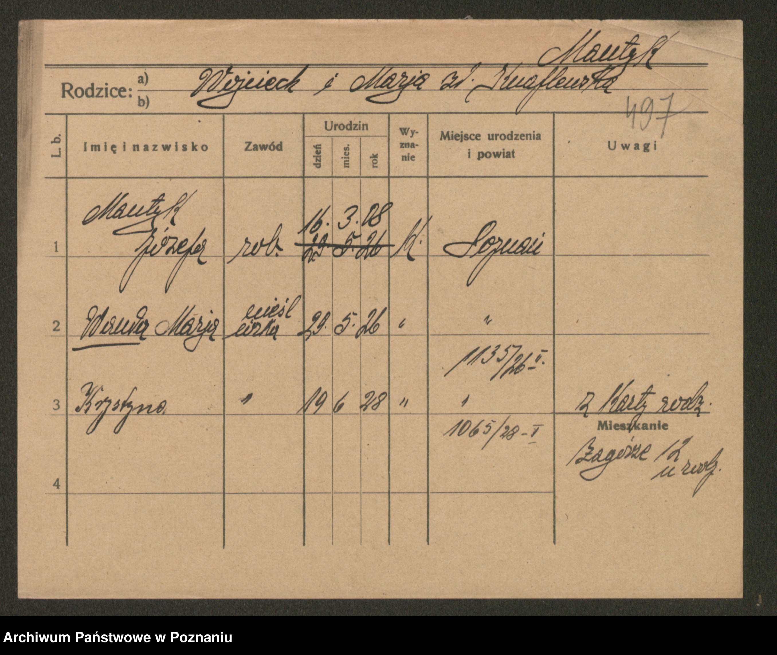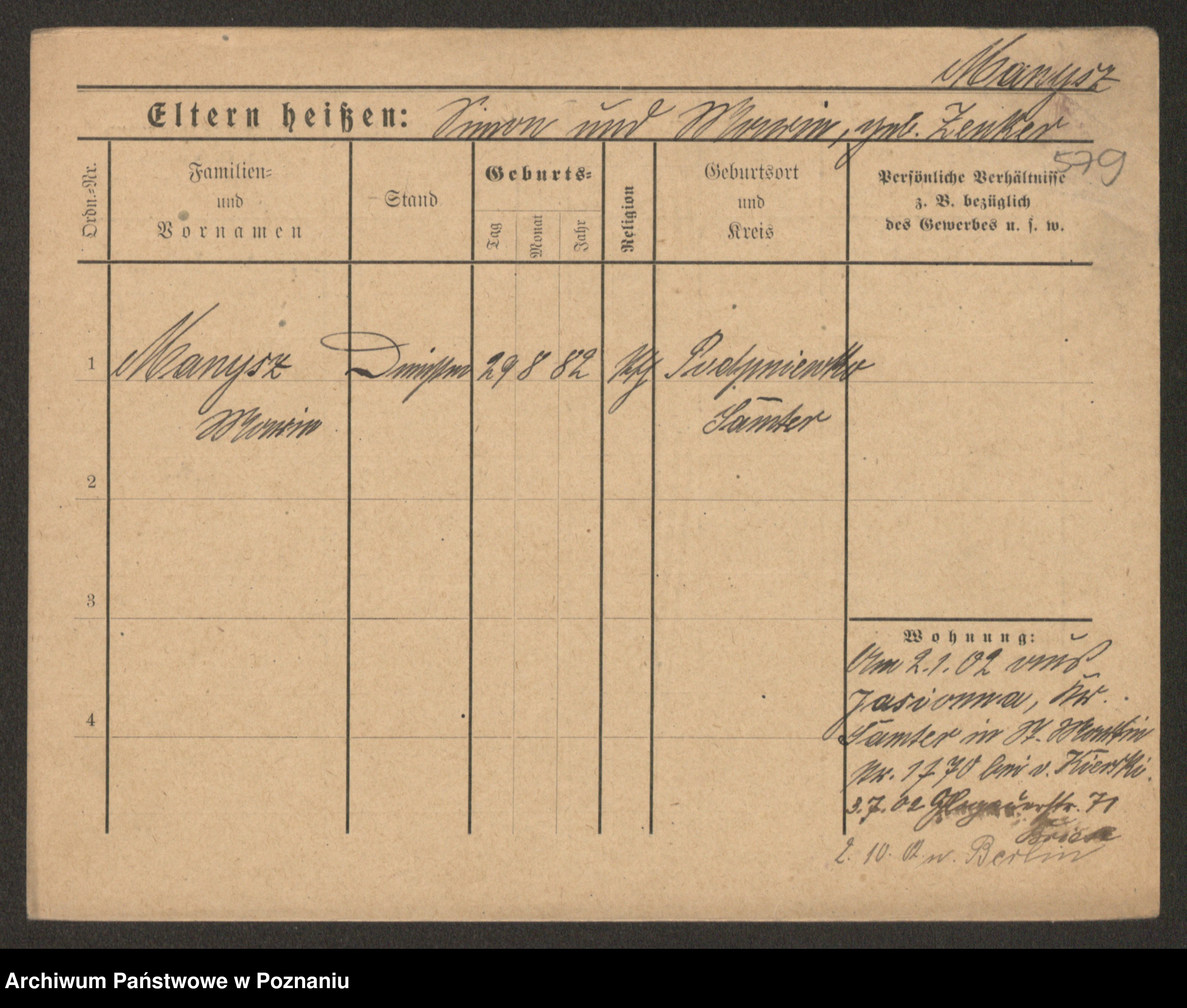 Manske zd. Cwojdzinska, Marie