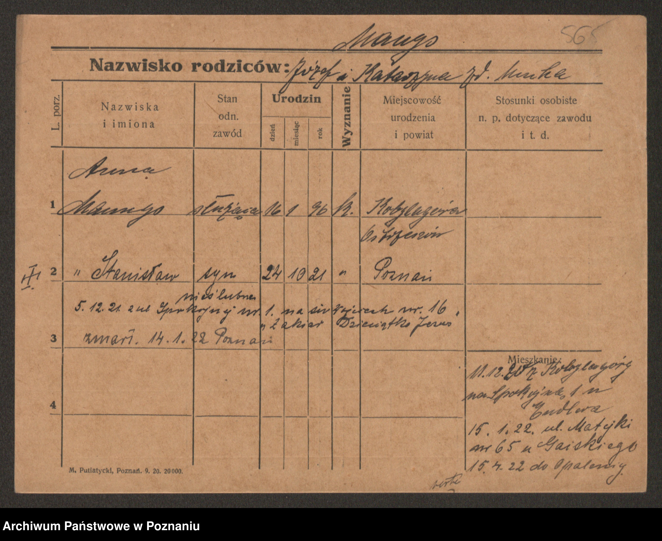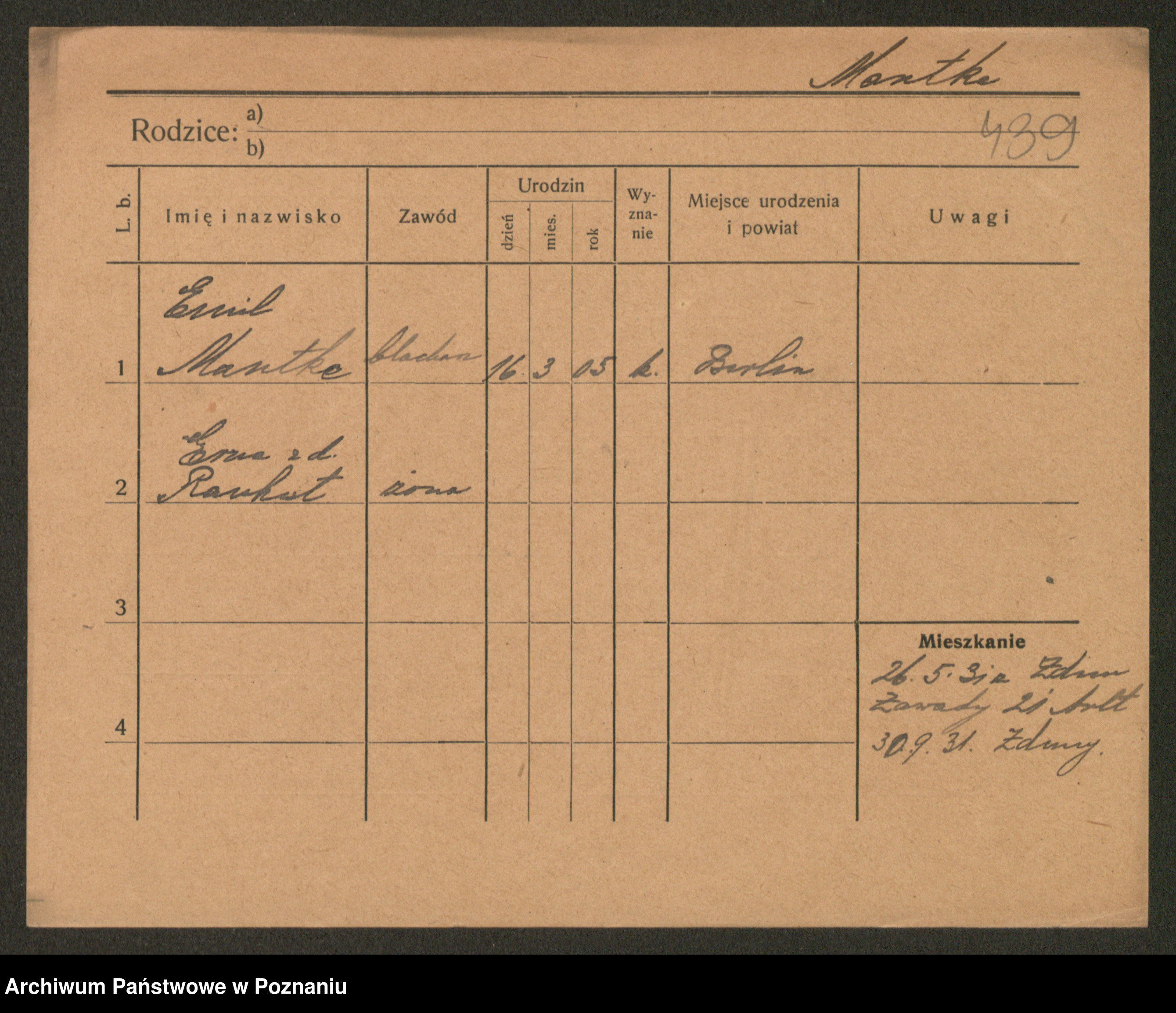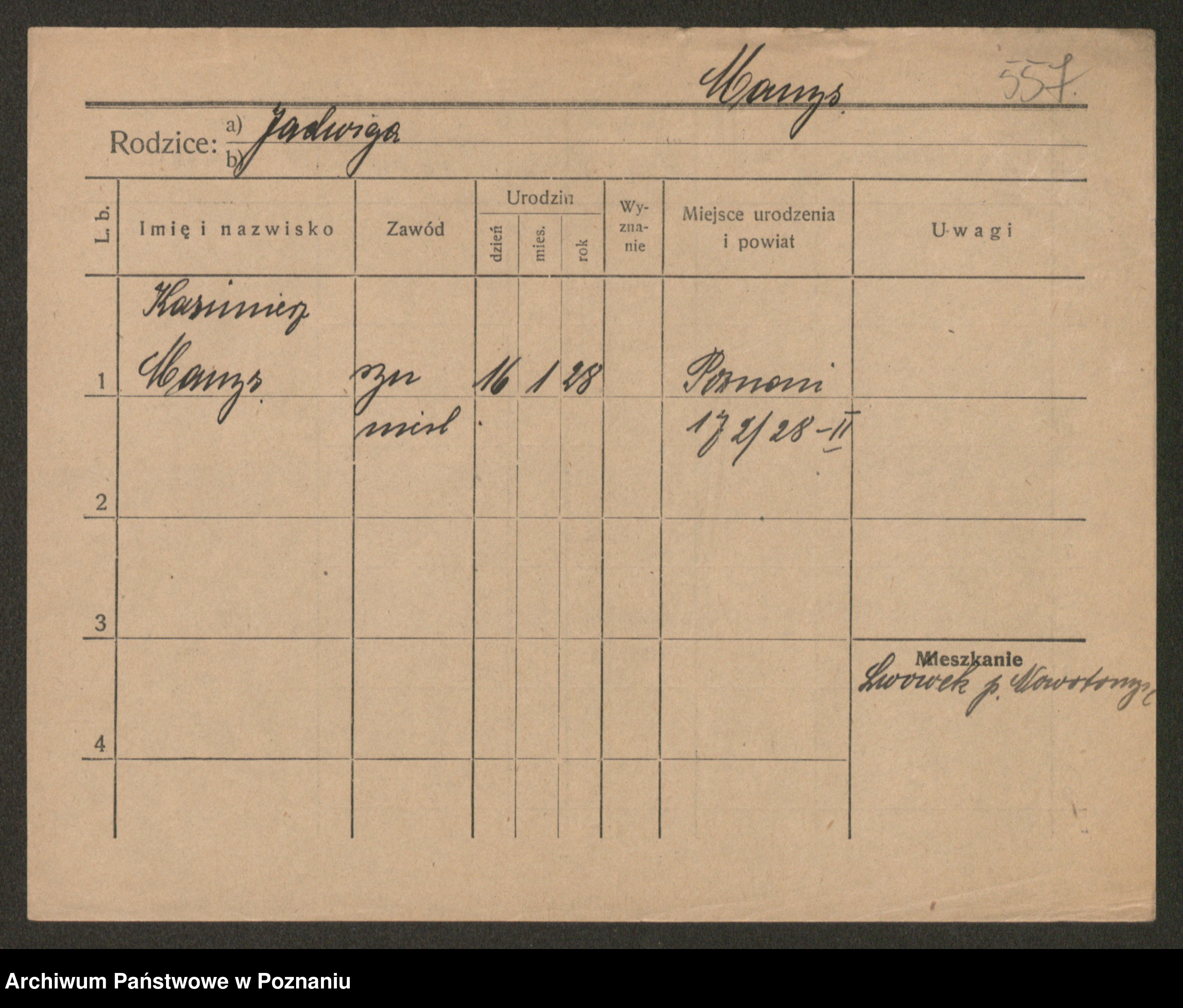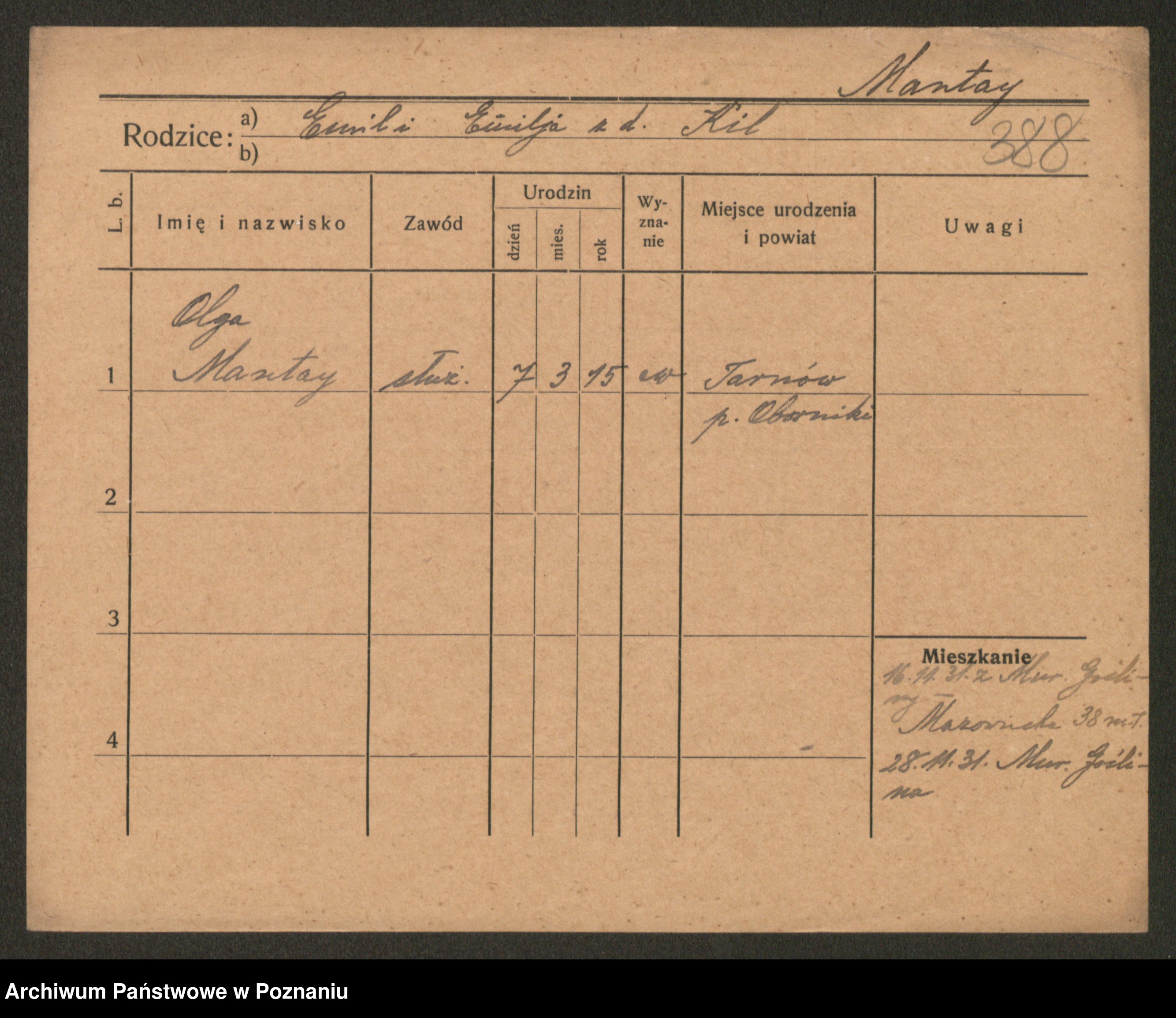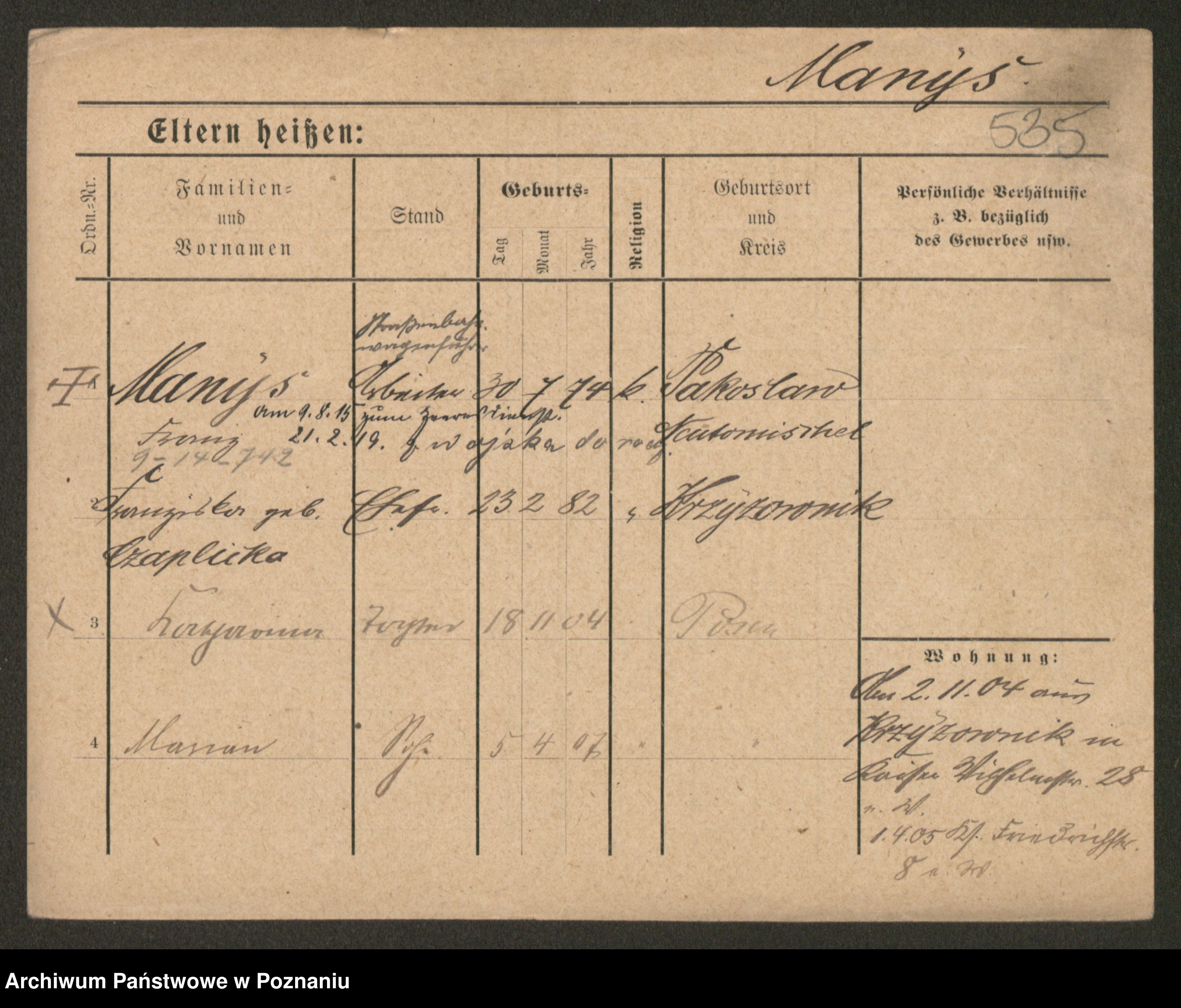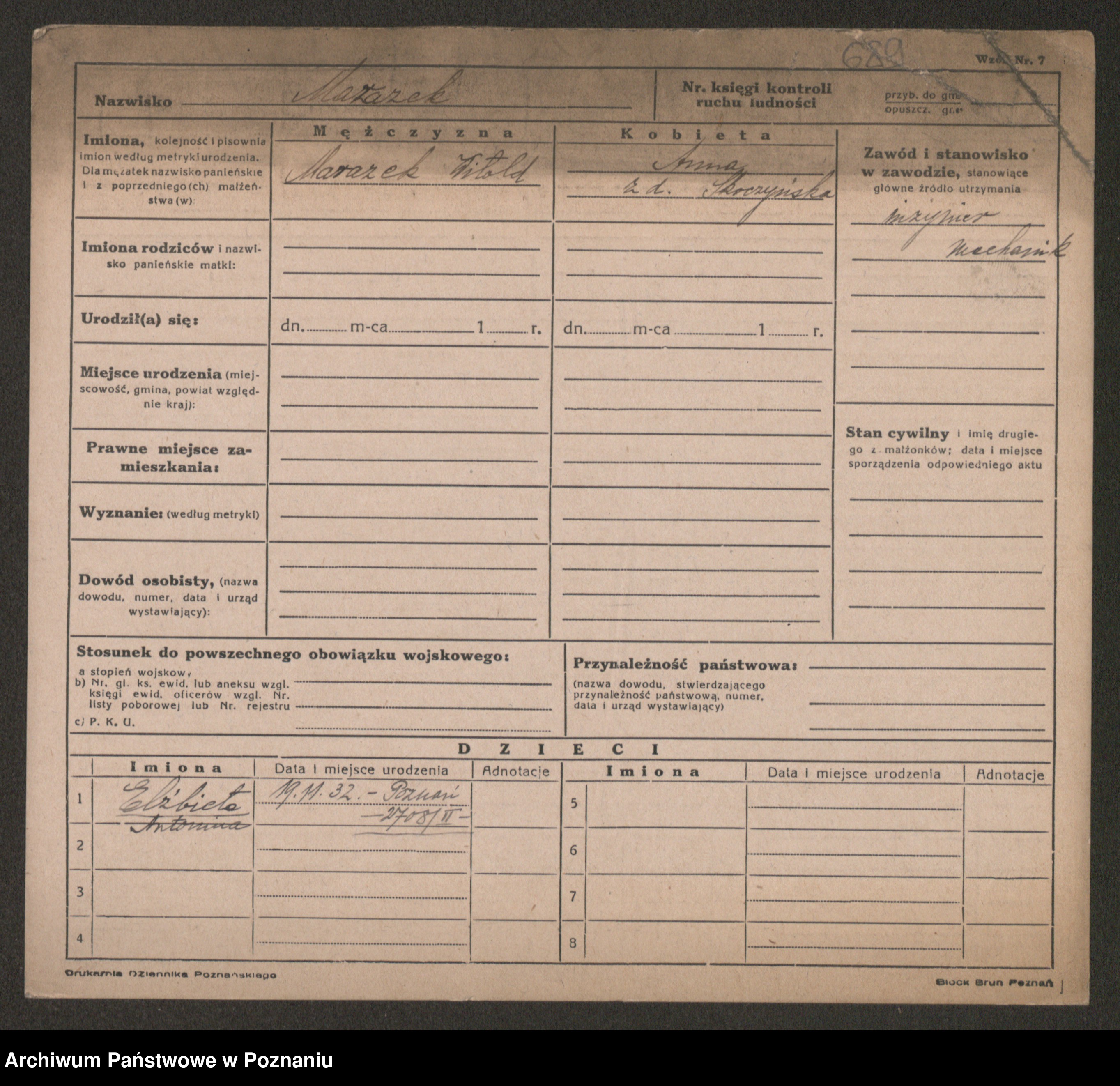 Manske zd. Cwojdzinska, Marie