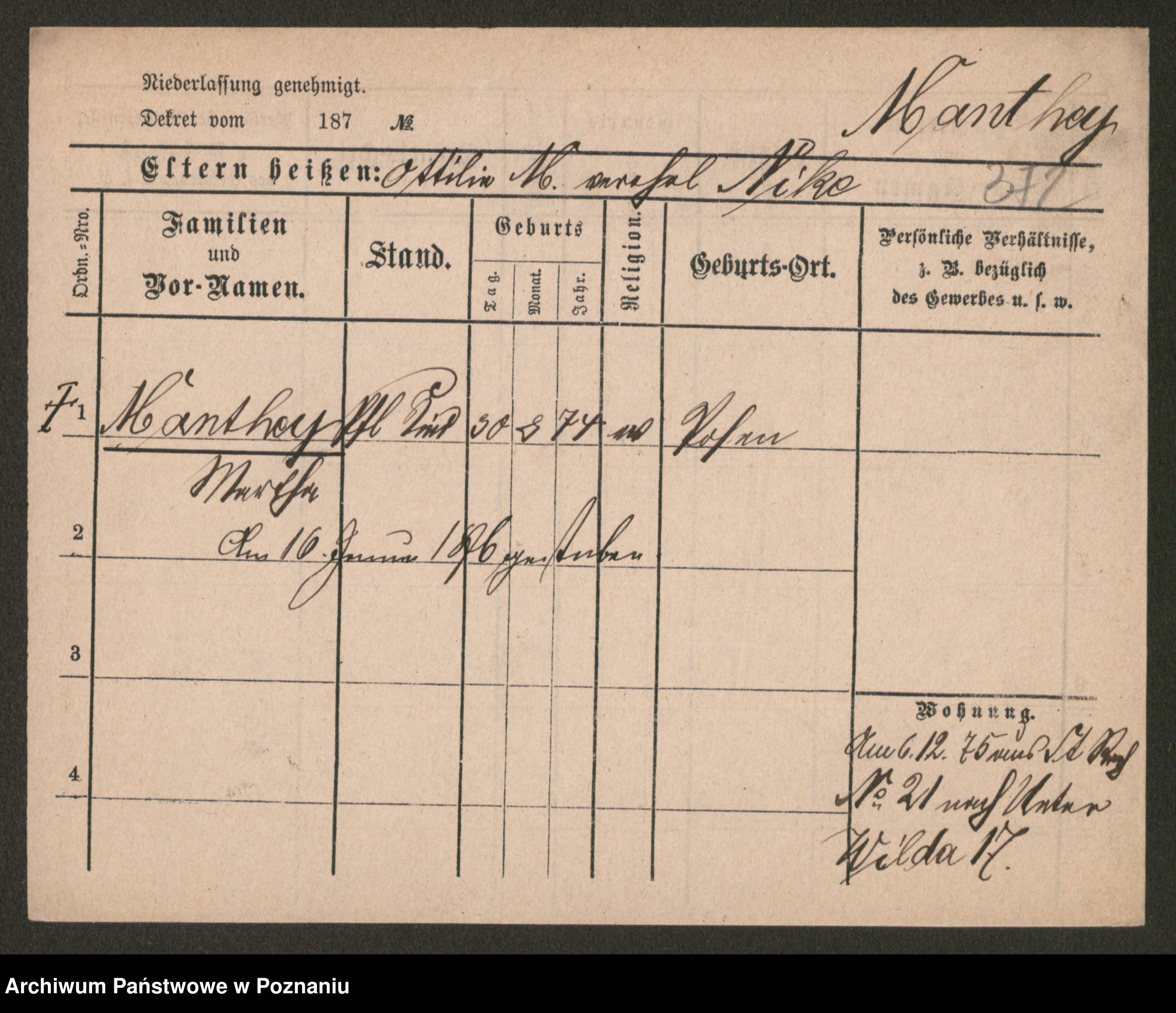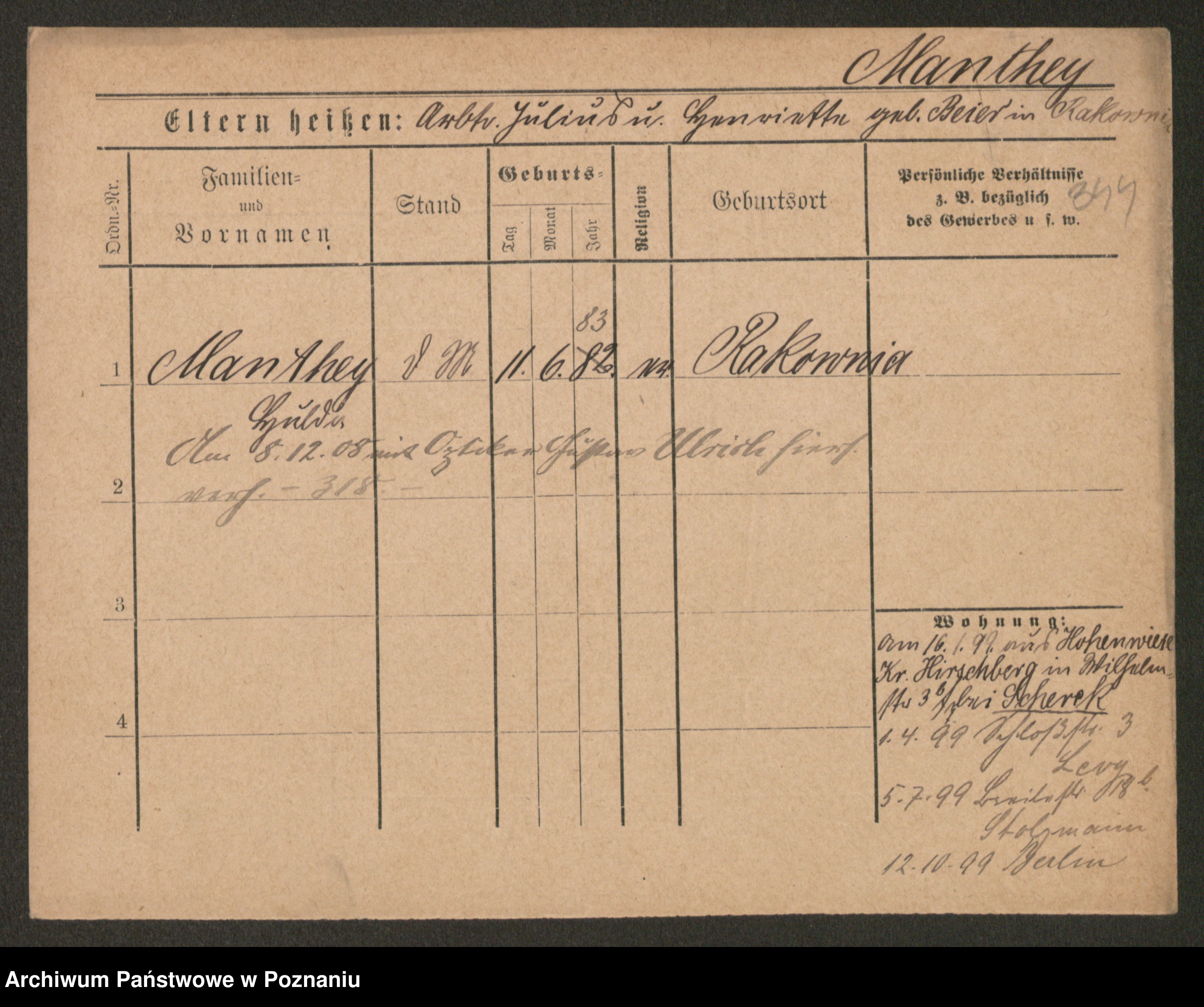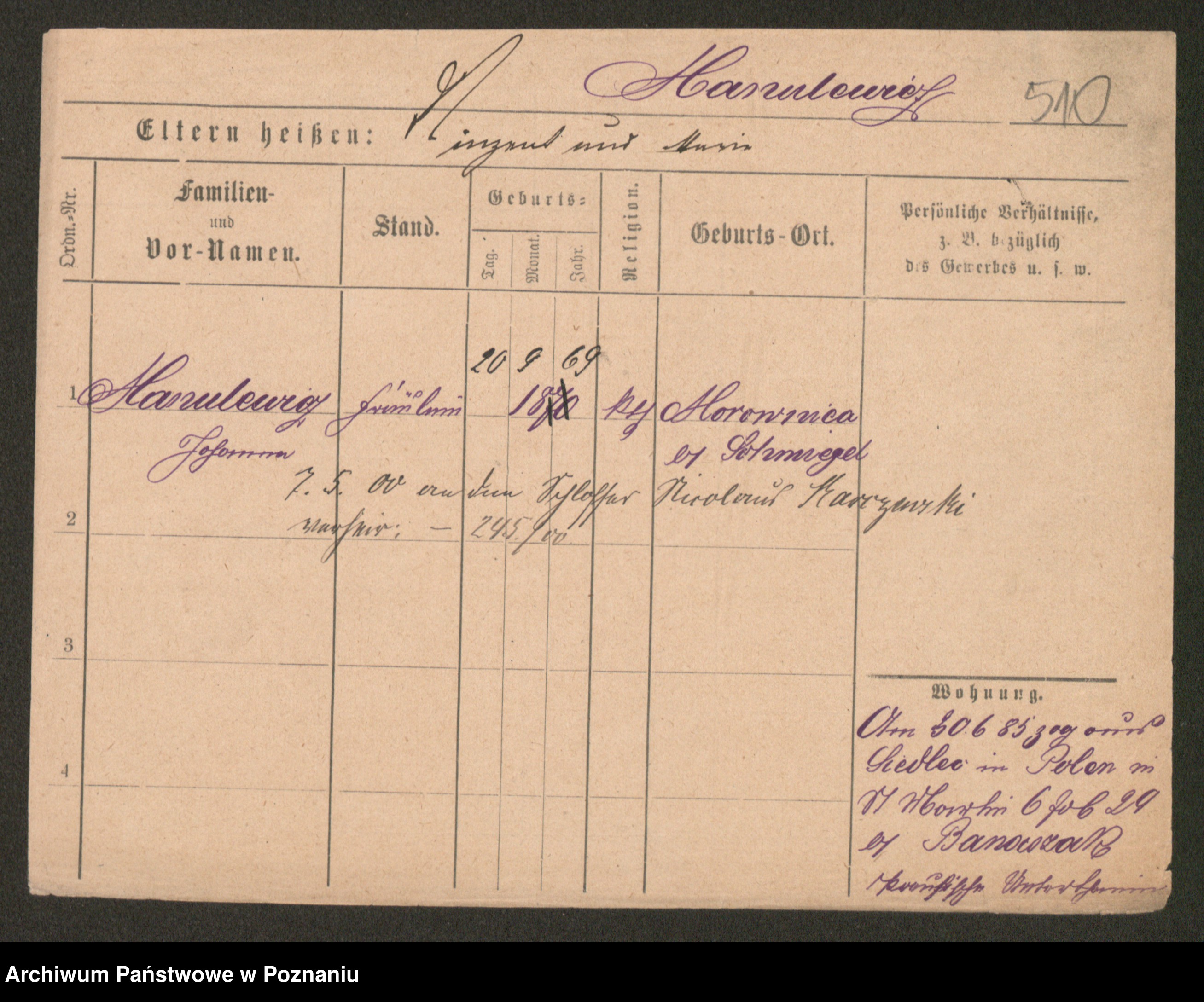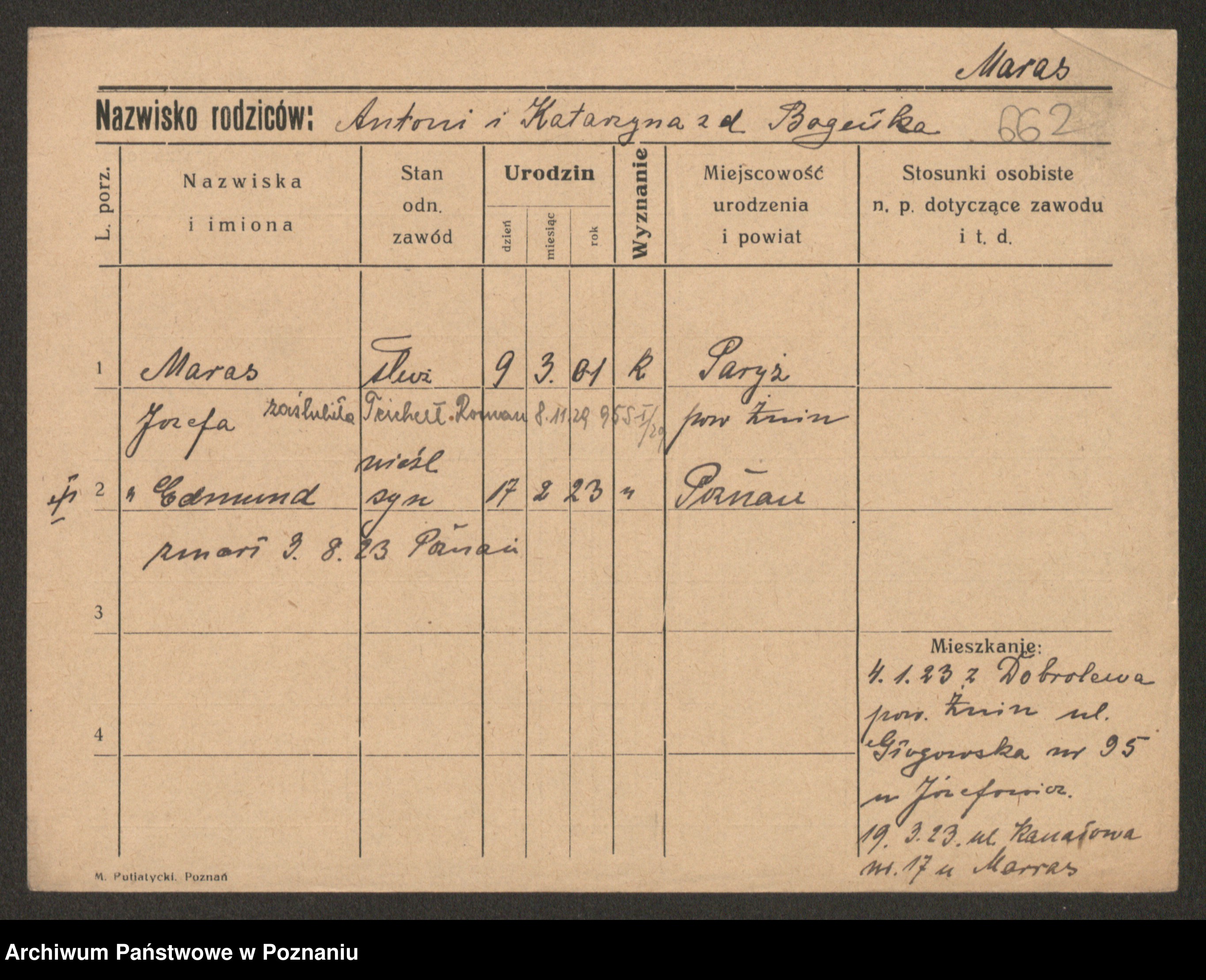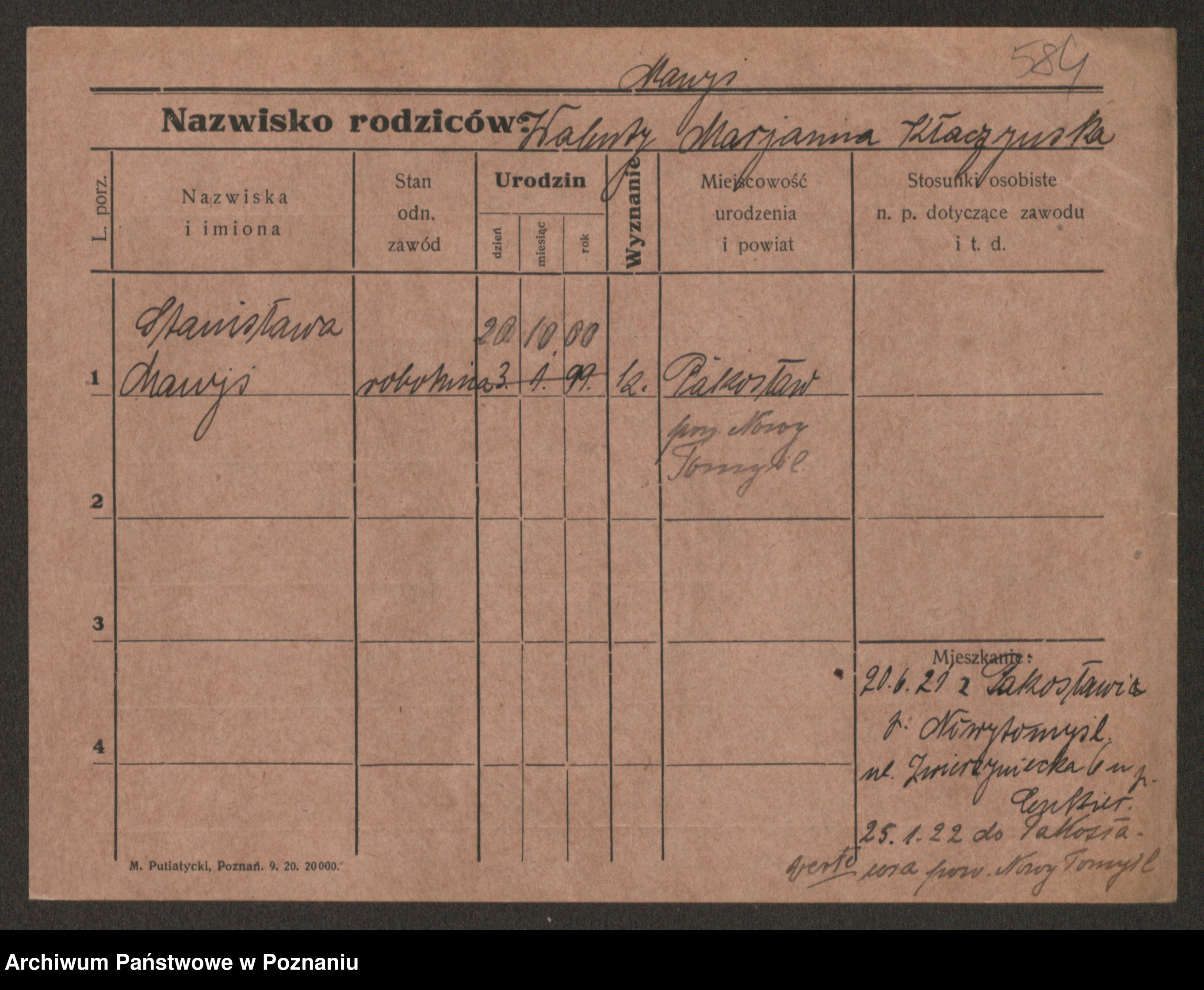 Manske zd. Cwojdzinska, Marie