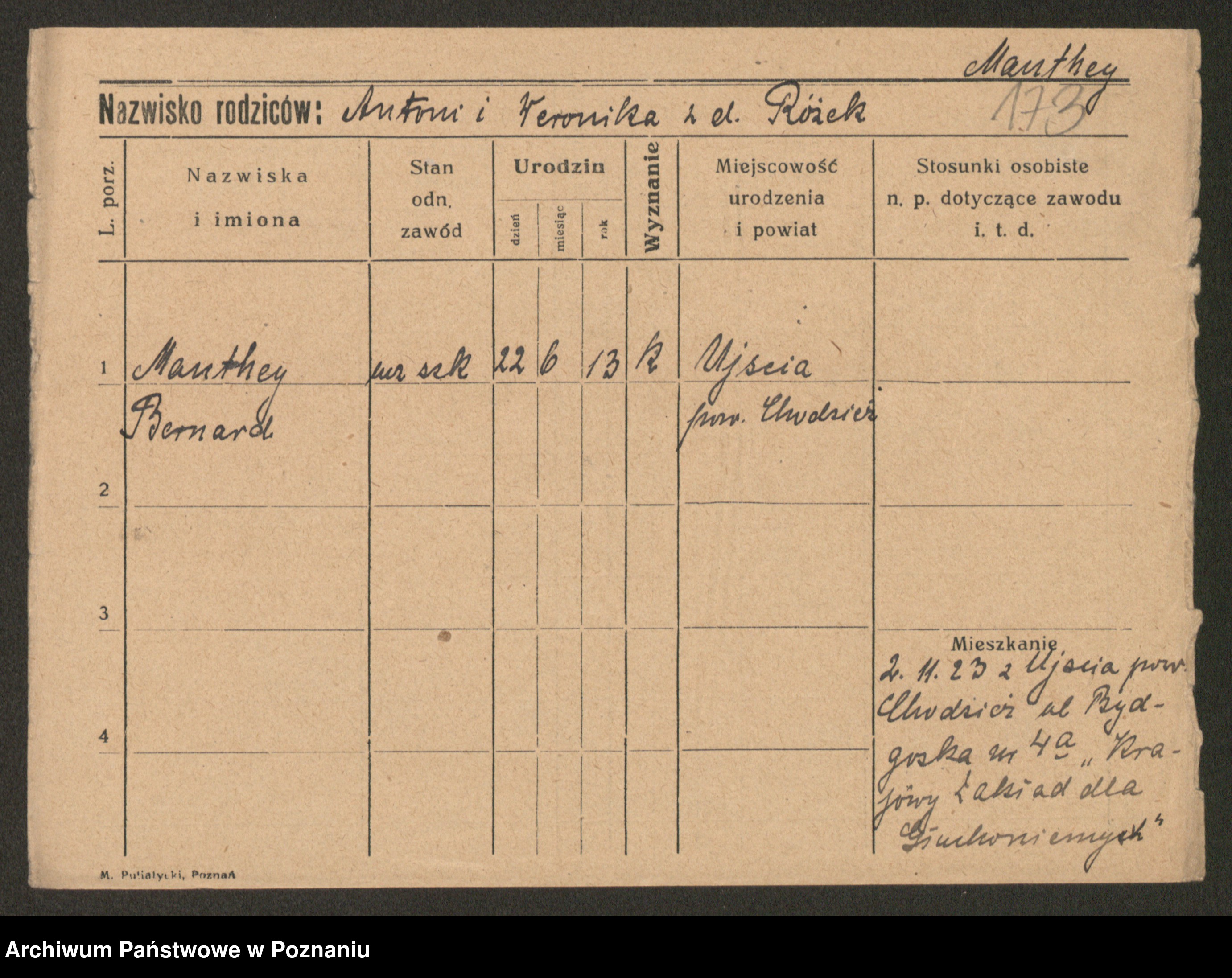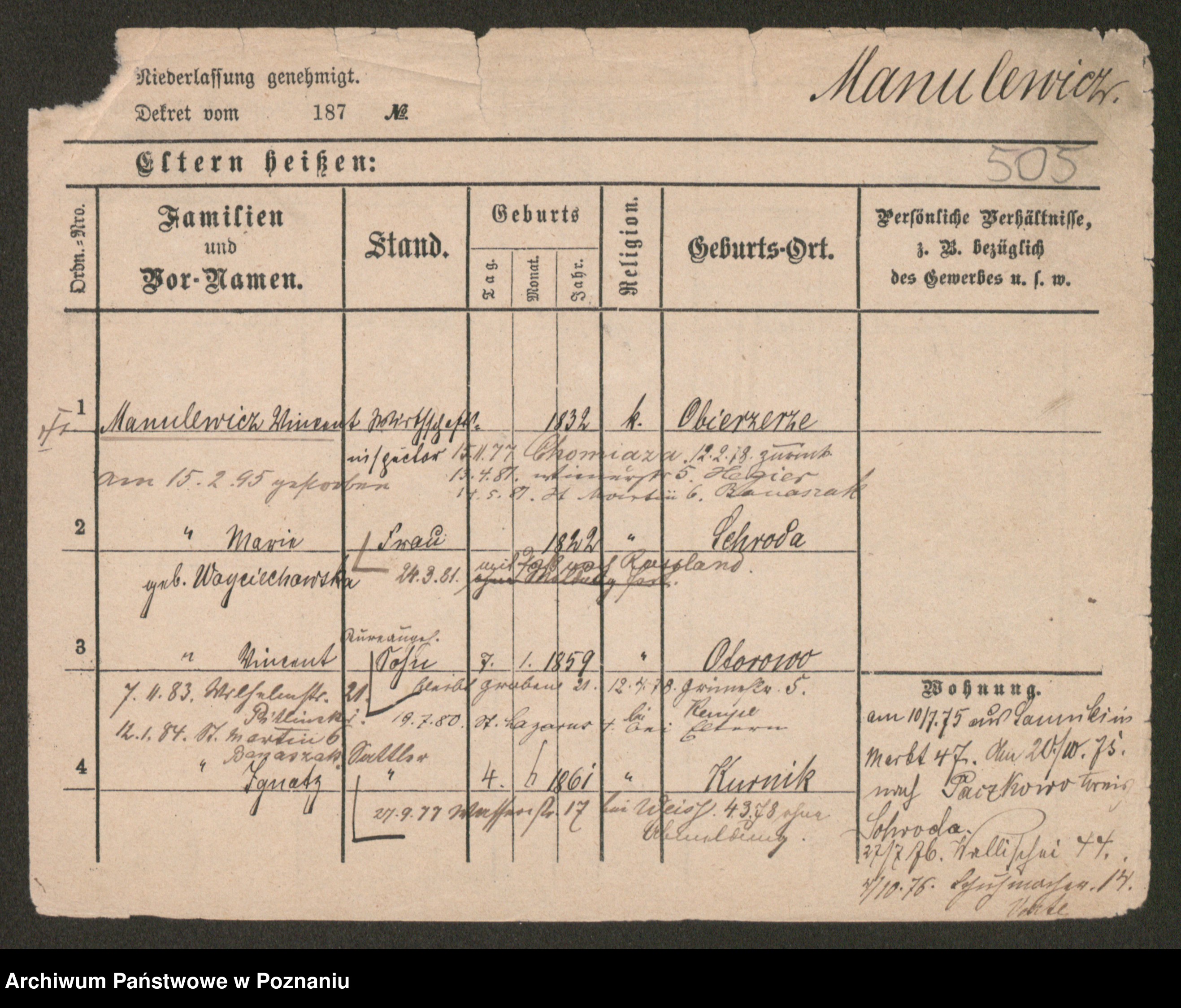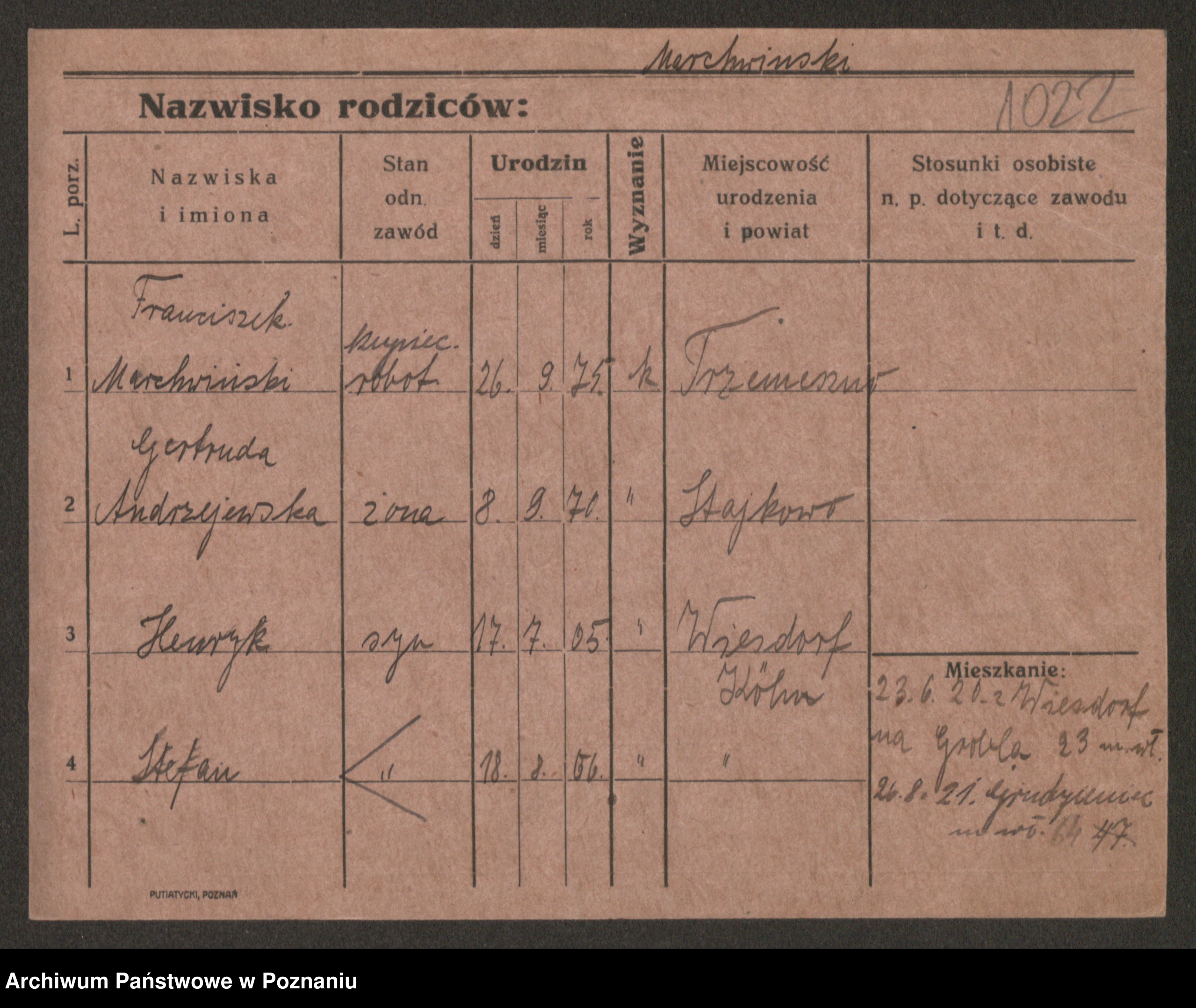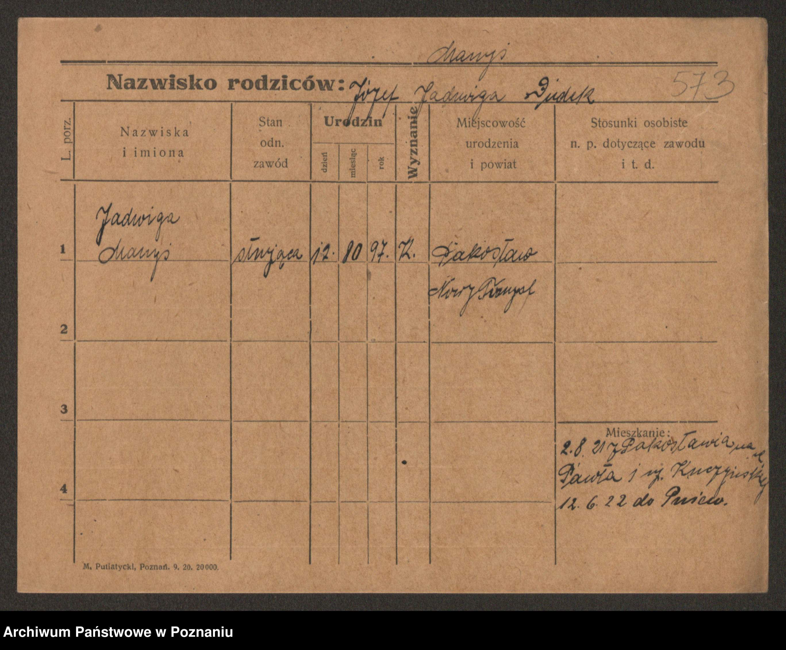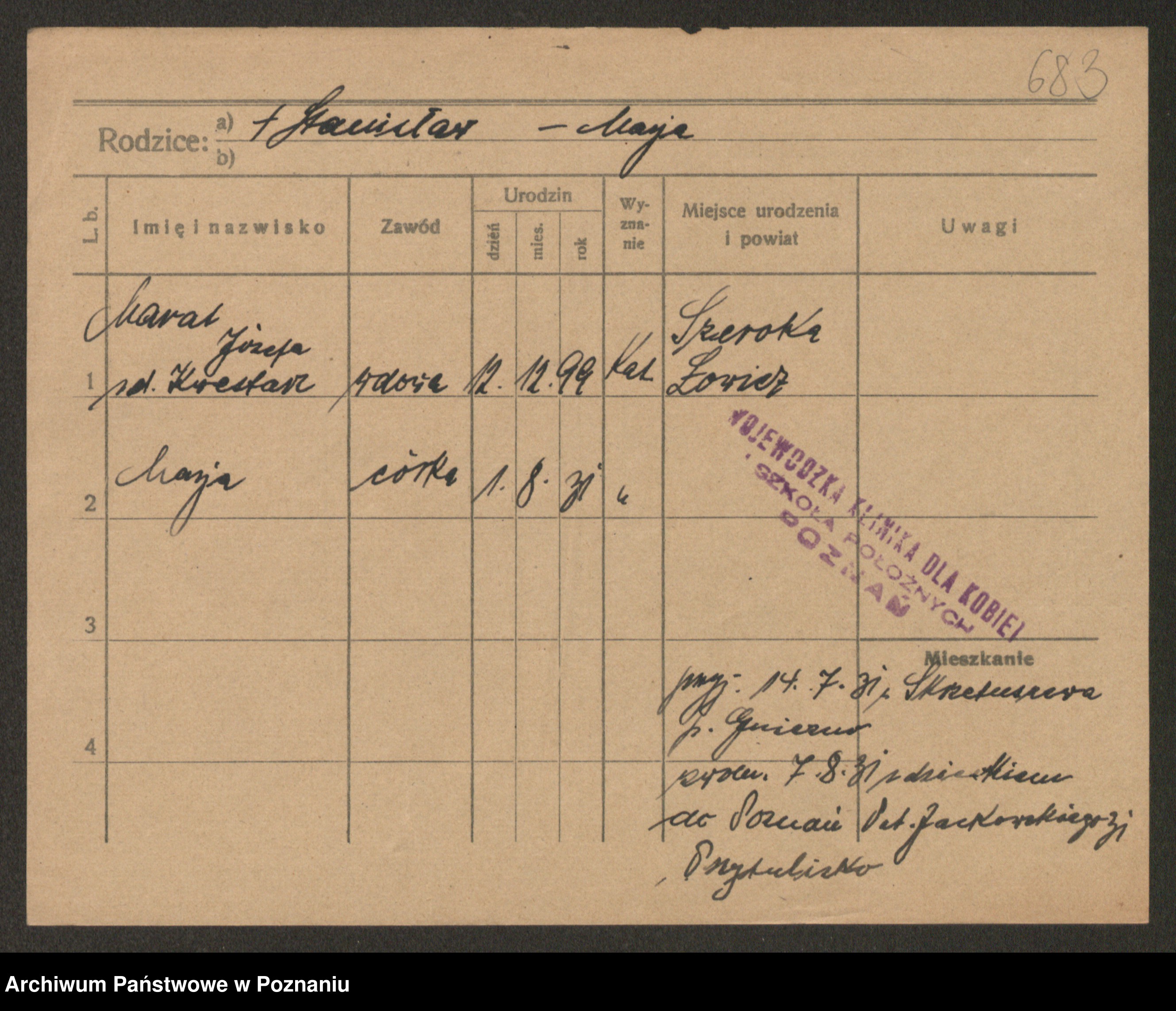 Manske zd. Cwojdzinska, Marie