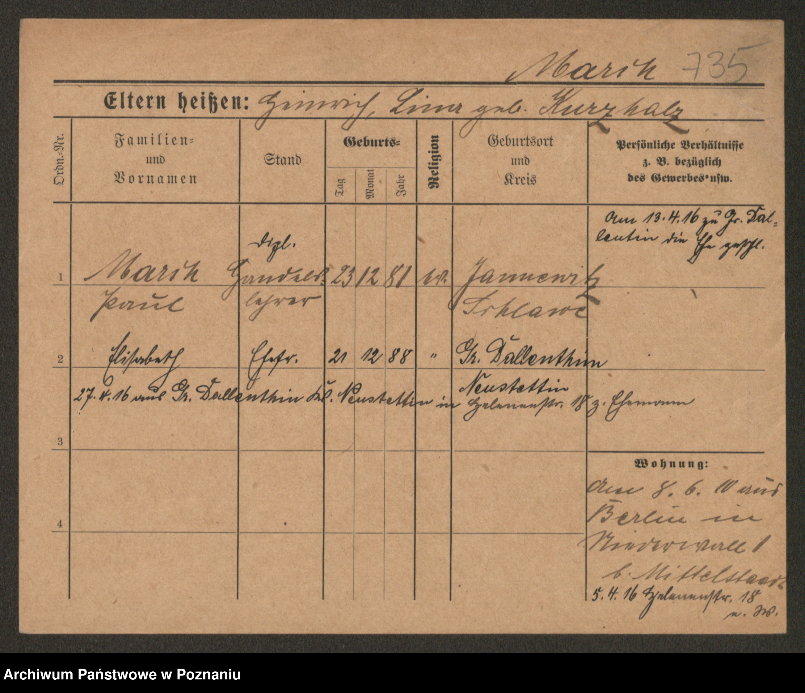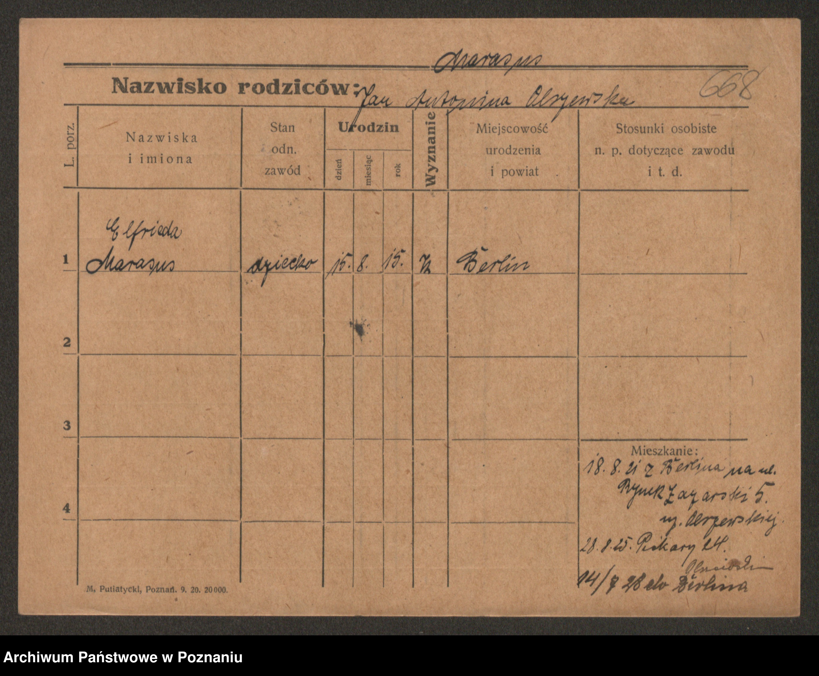 Marcinek, Marie